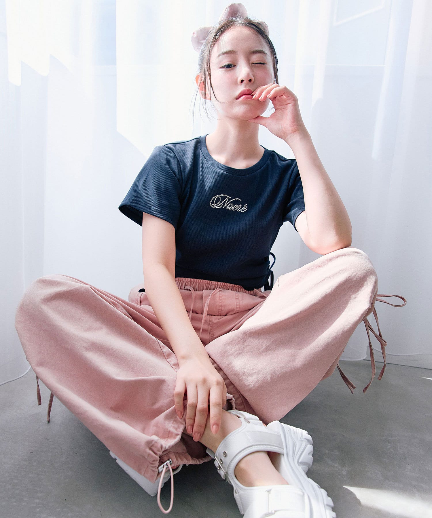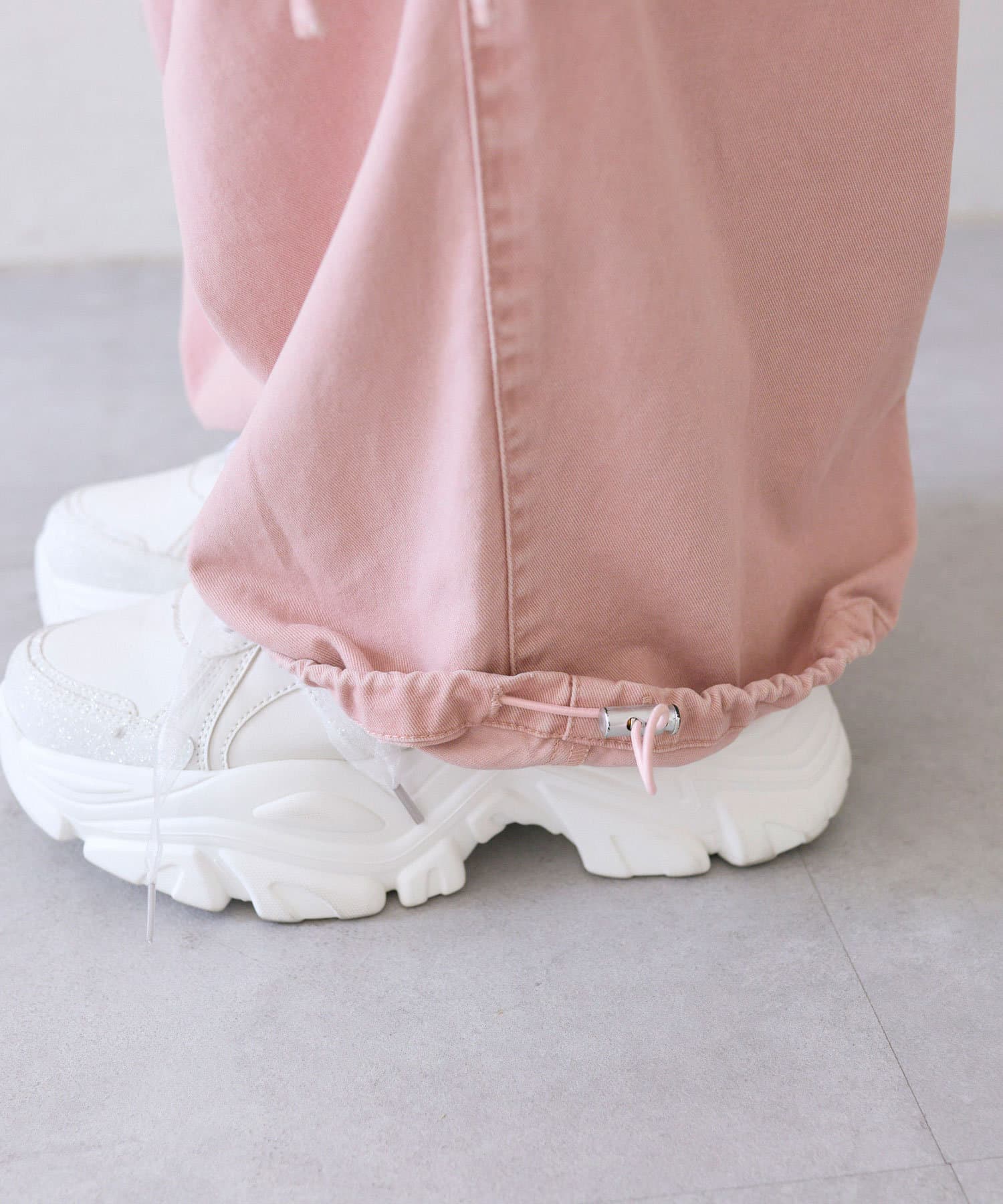 ・裾にゴムが入っていて、ドローコードでお好みのシルエットに調節していただけます。