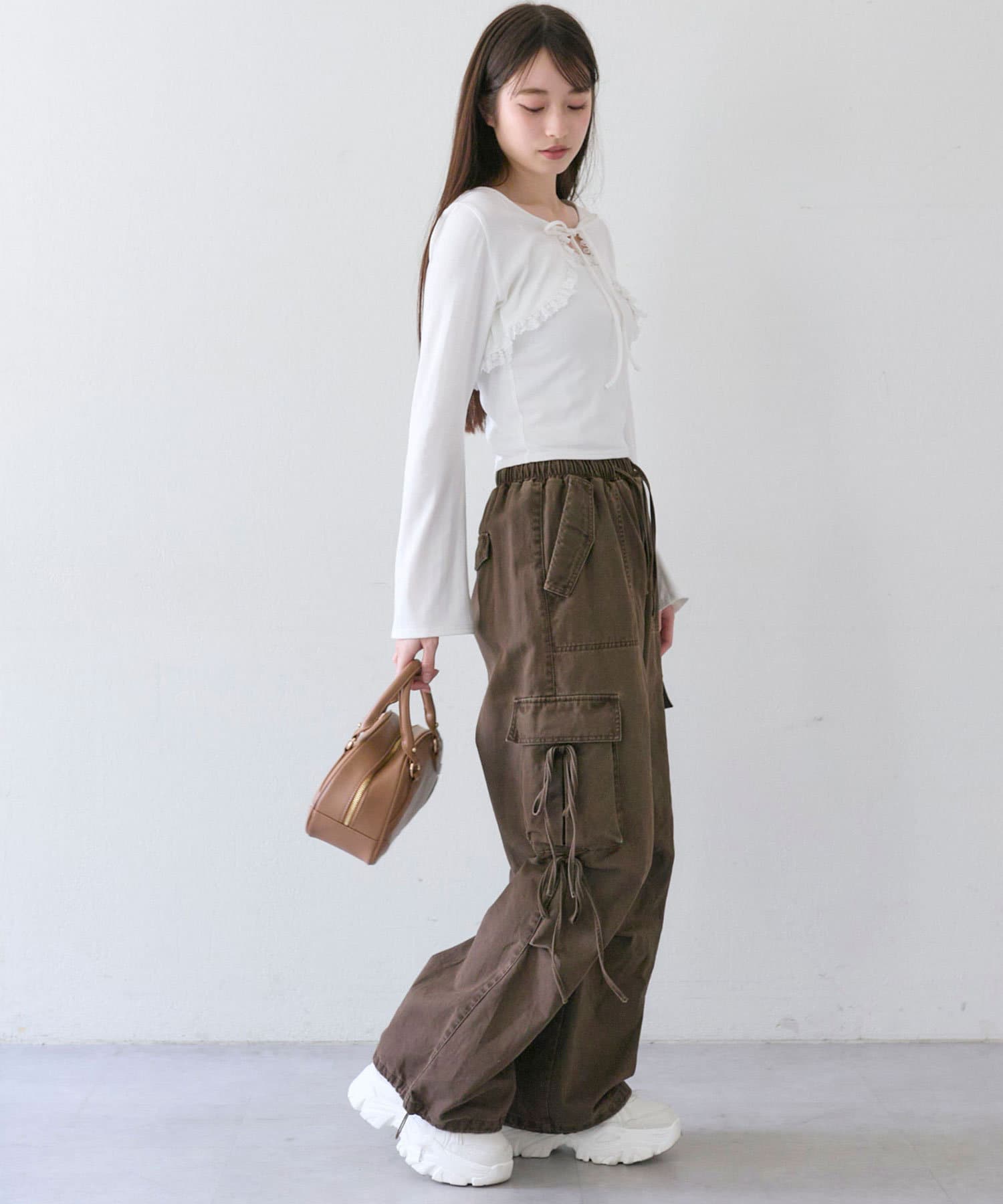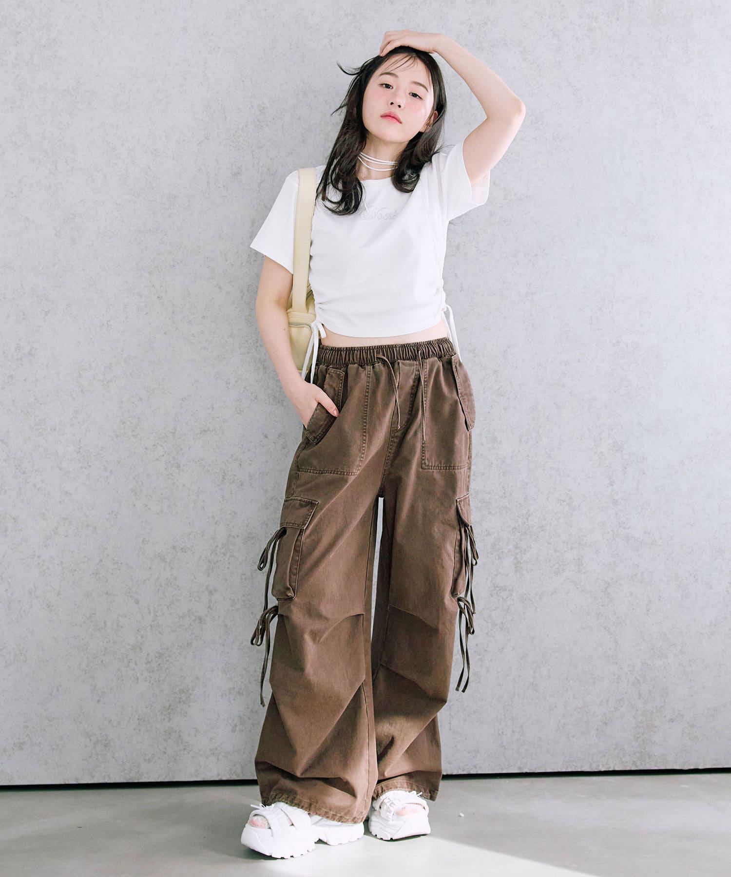 品番 1051030070 素材 【オフ・ピンク・ブラウン】綿100% 【ブラック系】綿90%, レーヨン5%, ポリエステル5% 原産国 中国 サイズ FREE カテゴリ パンツ > カーゴパンツ タイプ レディース ギフト ラッピング 可 取り扱い 本体:手洗い可能 アイテムサイズ