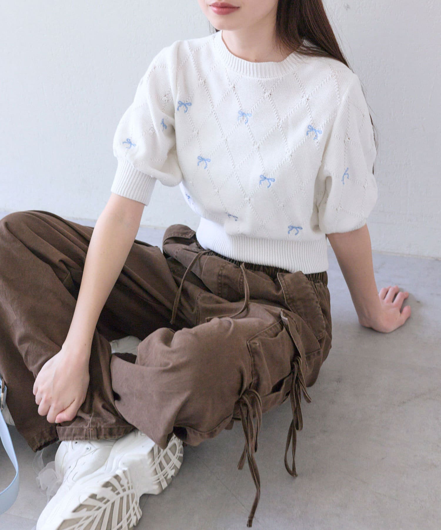 ・サイドにはリボン付きで、程よく甘さをプラスしたデザインです。