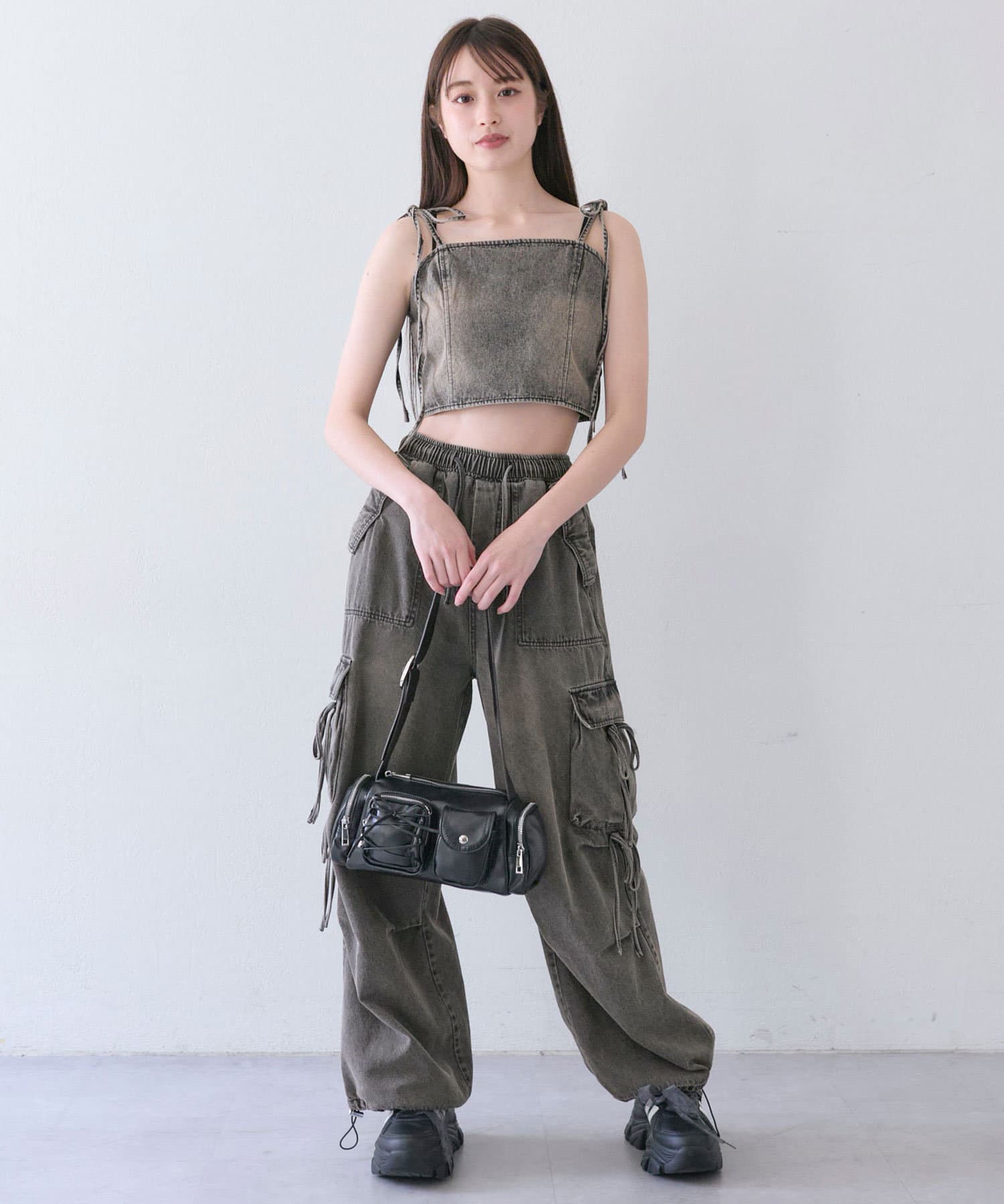 ・同色のデニムビスチェ(商品番号:1051040070)と合わせてセットアップで着用していただけます。