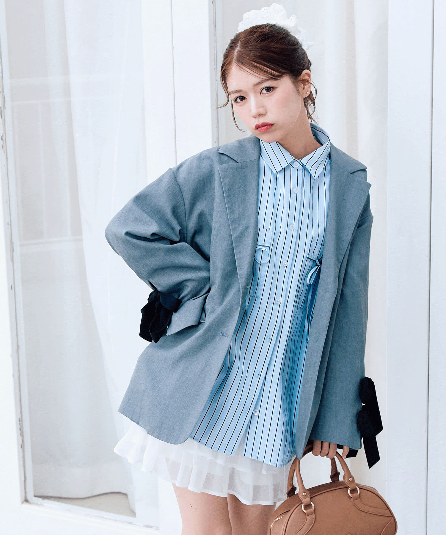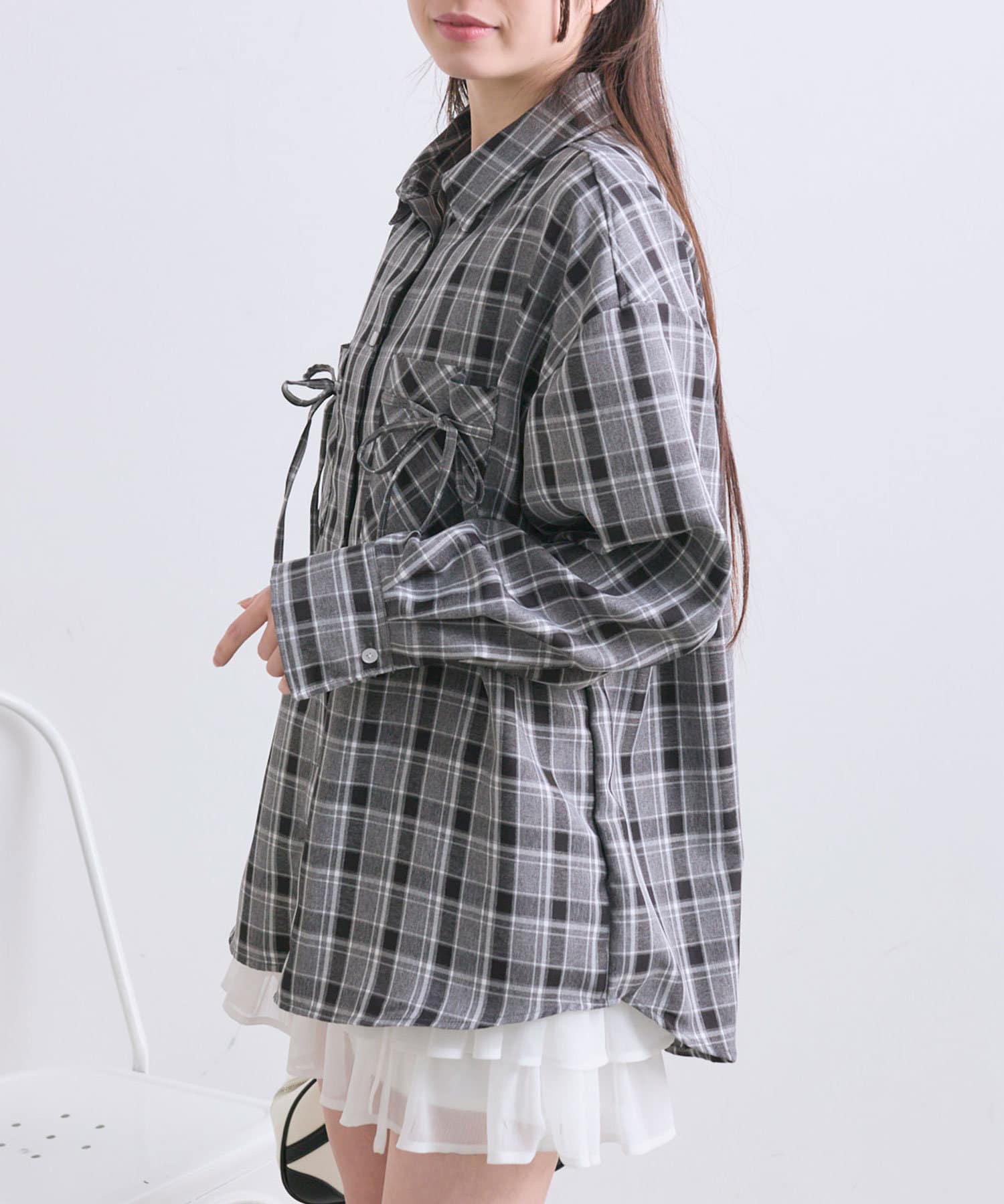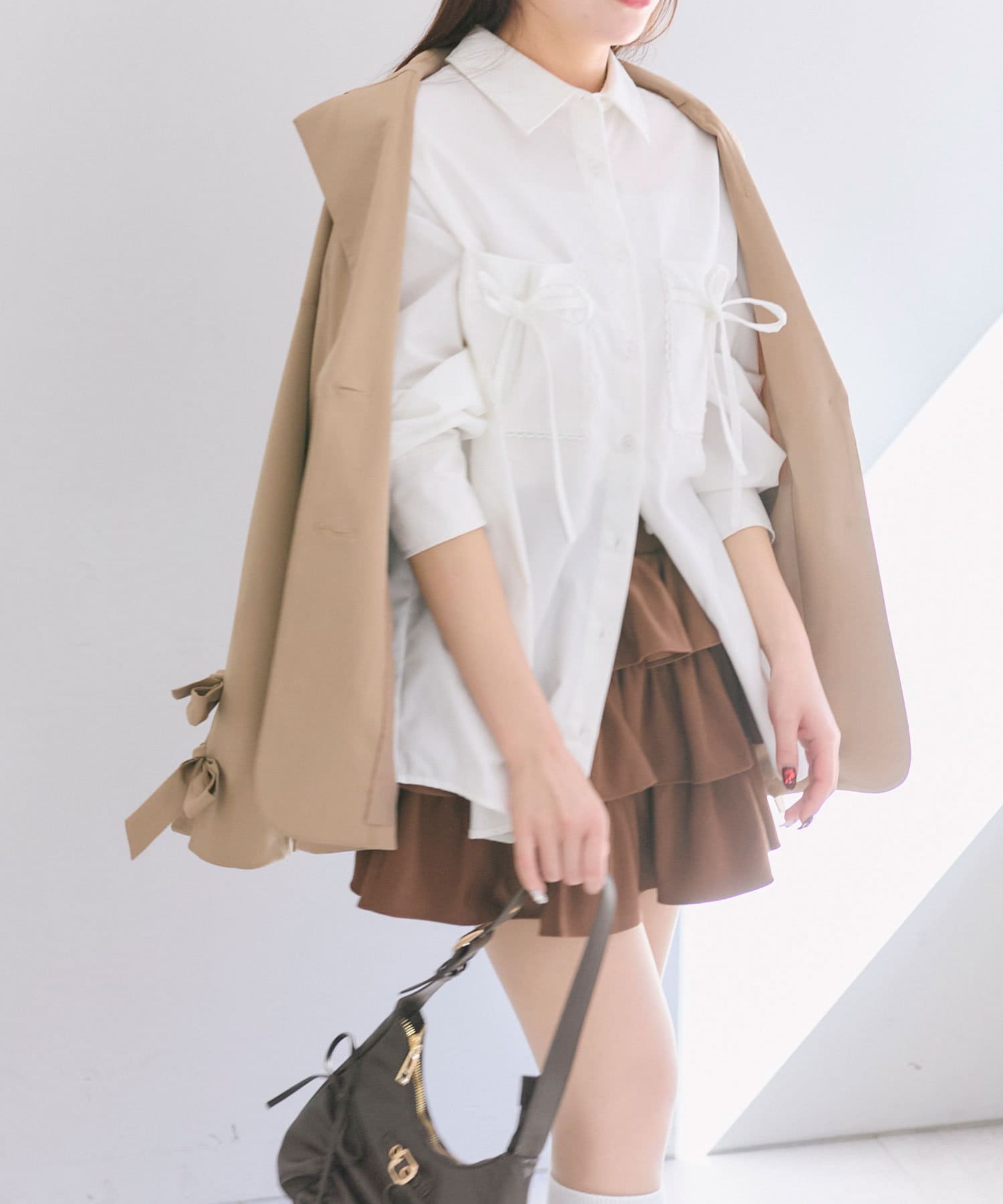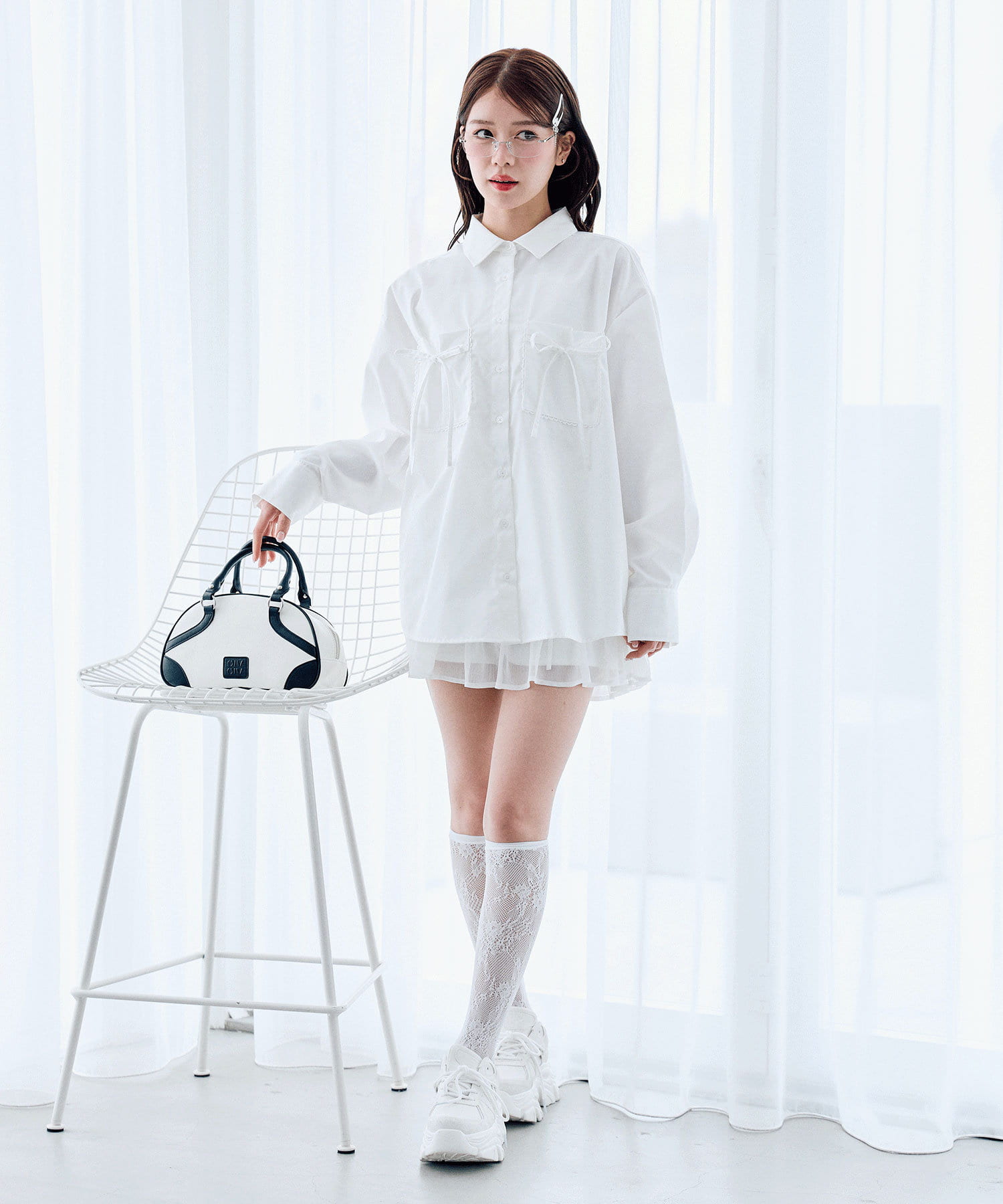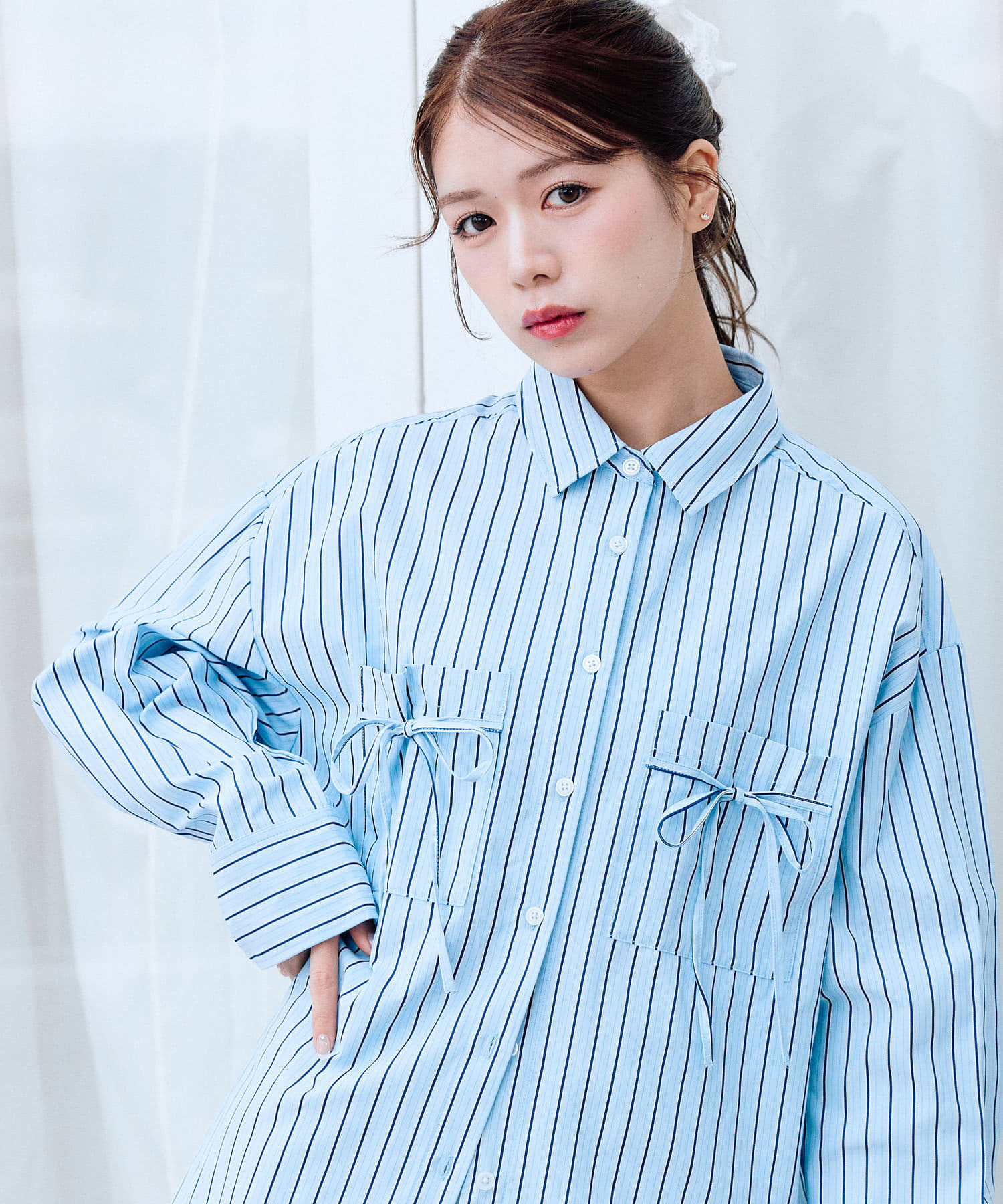 ・ポケット部分にリボンを施し、程よい甘さがプラスされたオーバーサイズのシャツ。