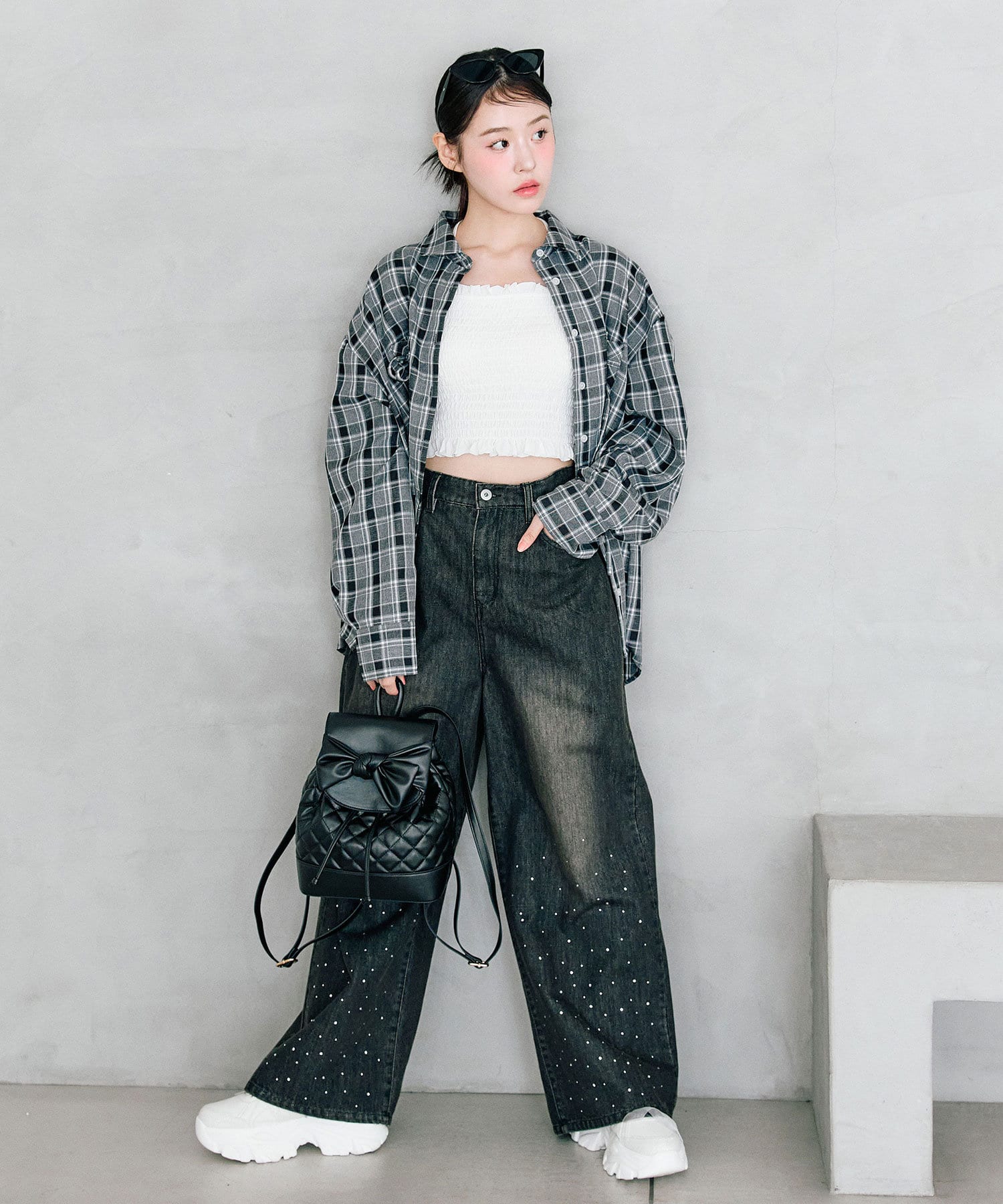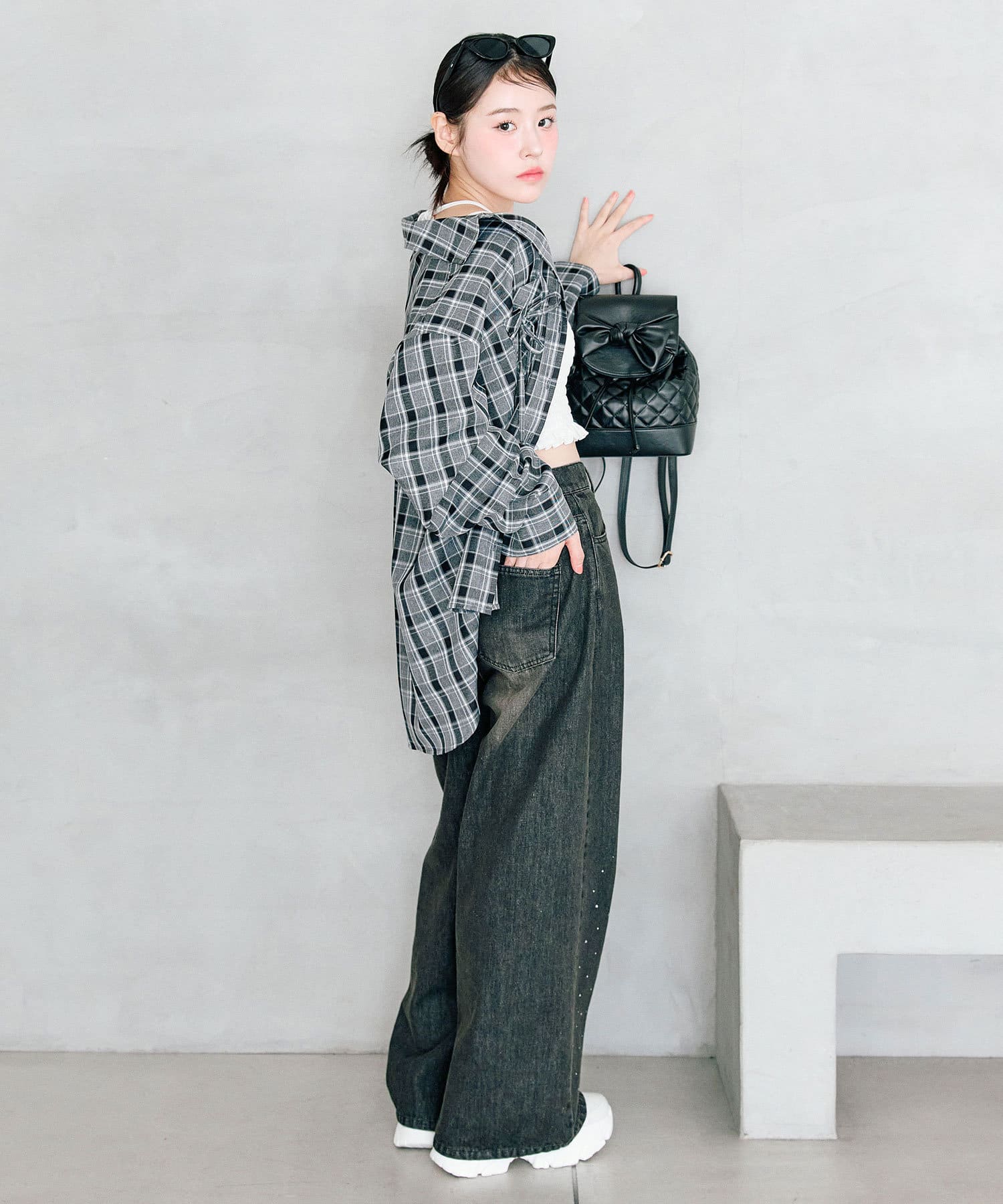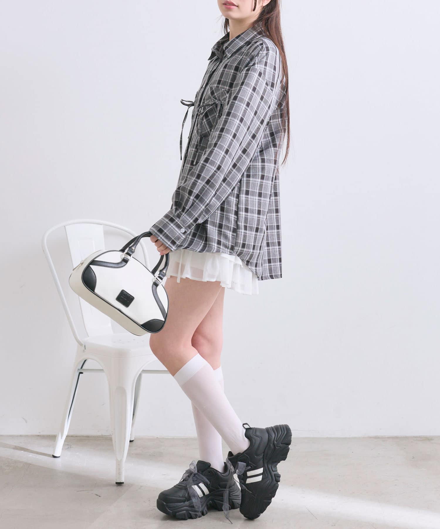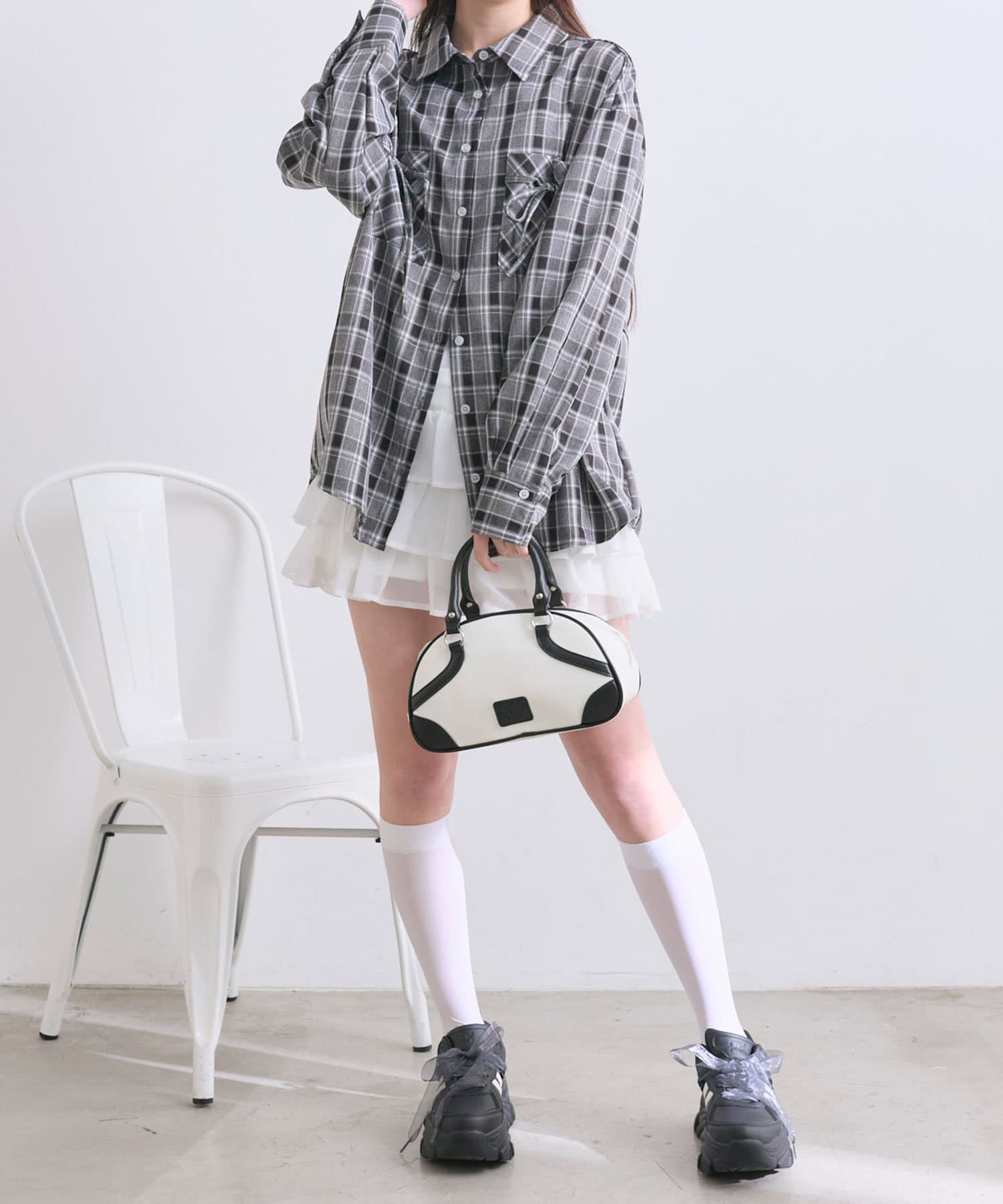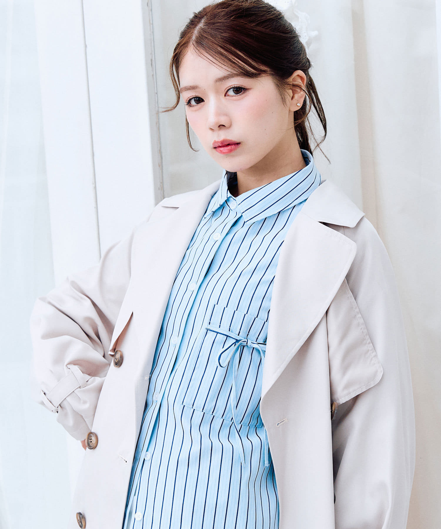 ・ポケット部分にリボンを施し、程よい甘さがプラスされたオーバーサイズのシャツ。