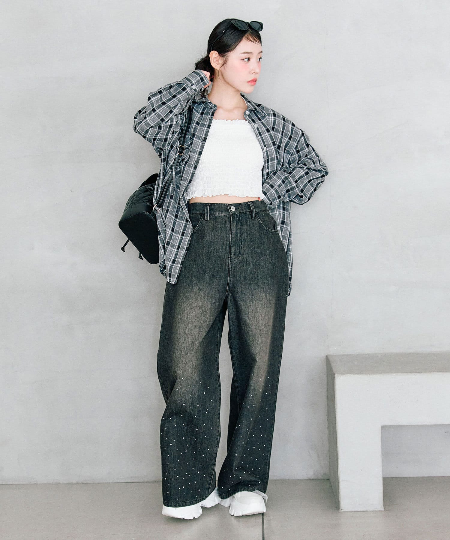 ・ミニボトムを合わせてチュニック風に着るのがおすすめ。