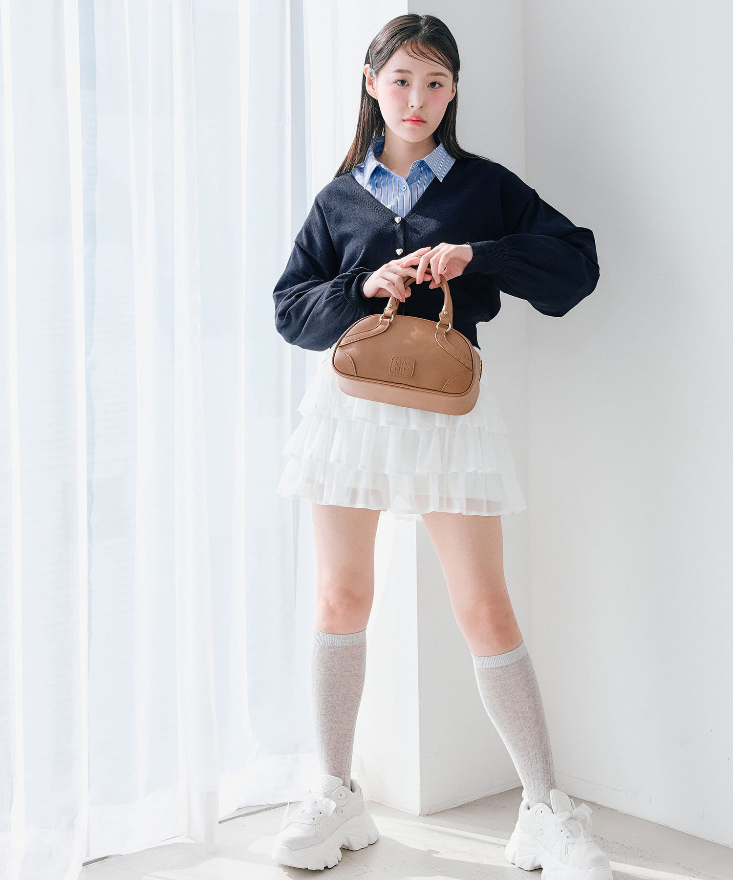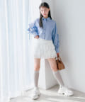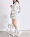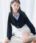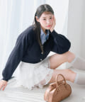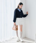 ・プリーツミニスカートで合わせればプレッピースタイルに。