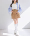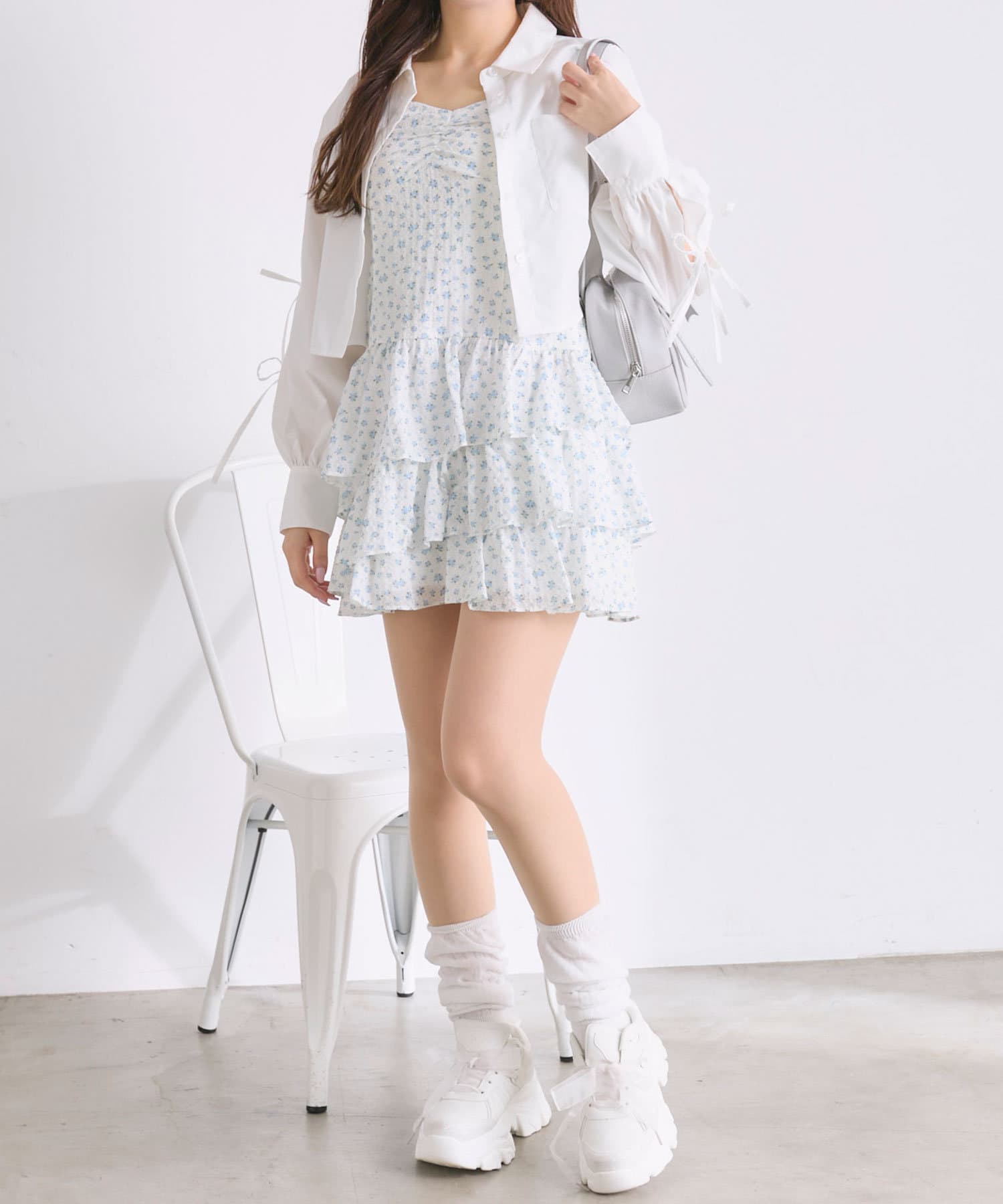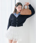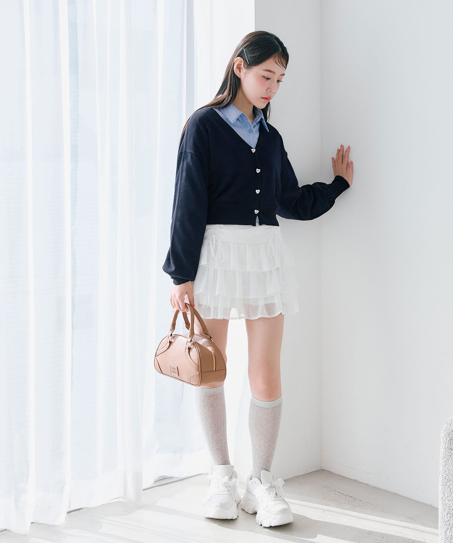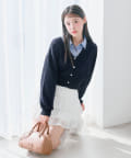 ・上にカーディガンを合わせたレイヤードコーデもかわいいです。