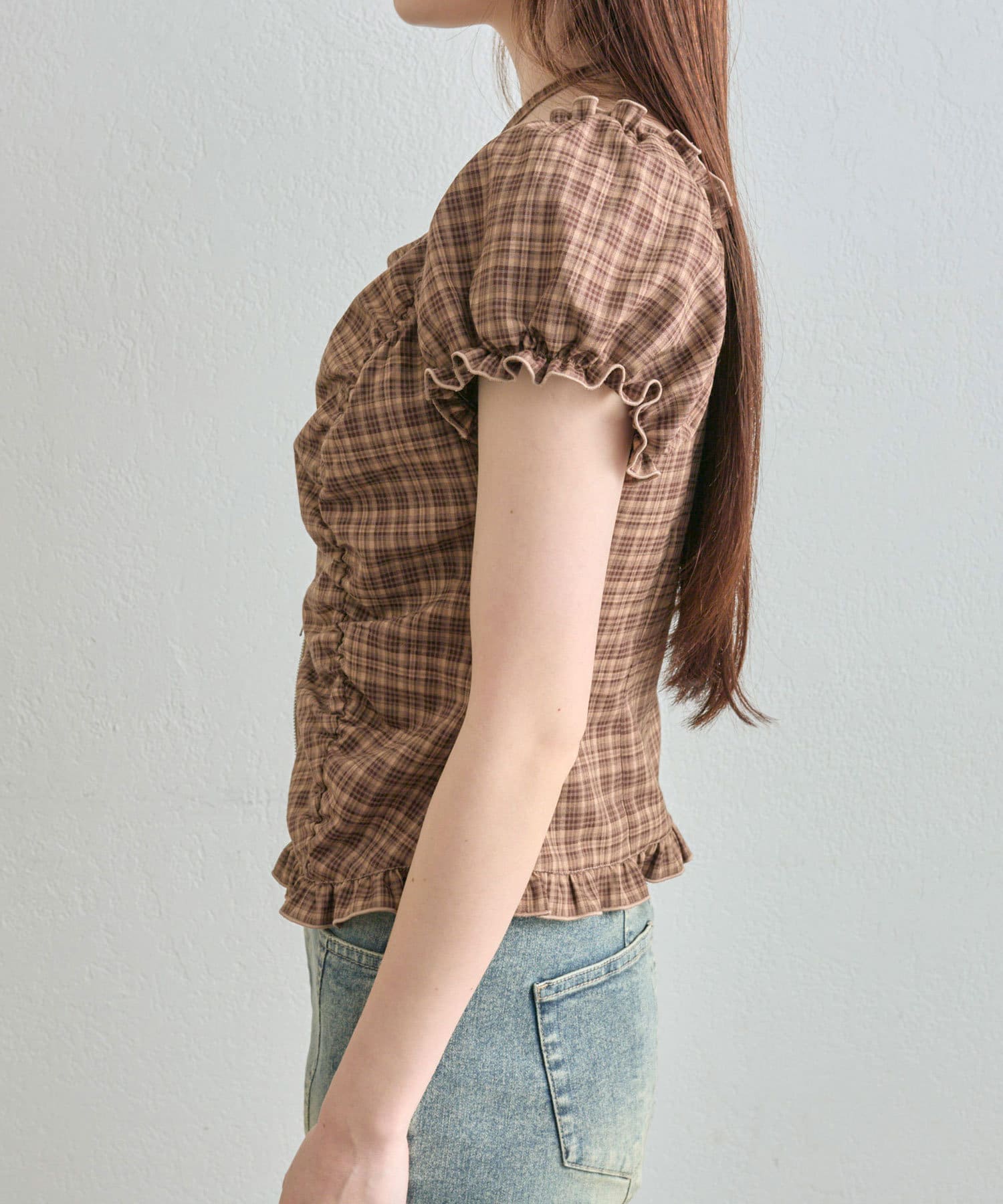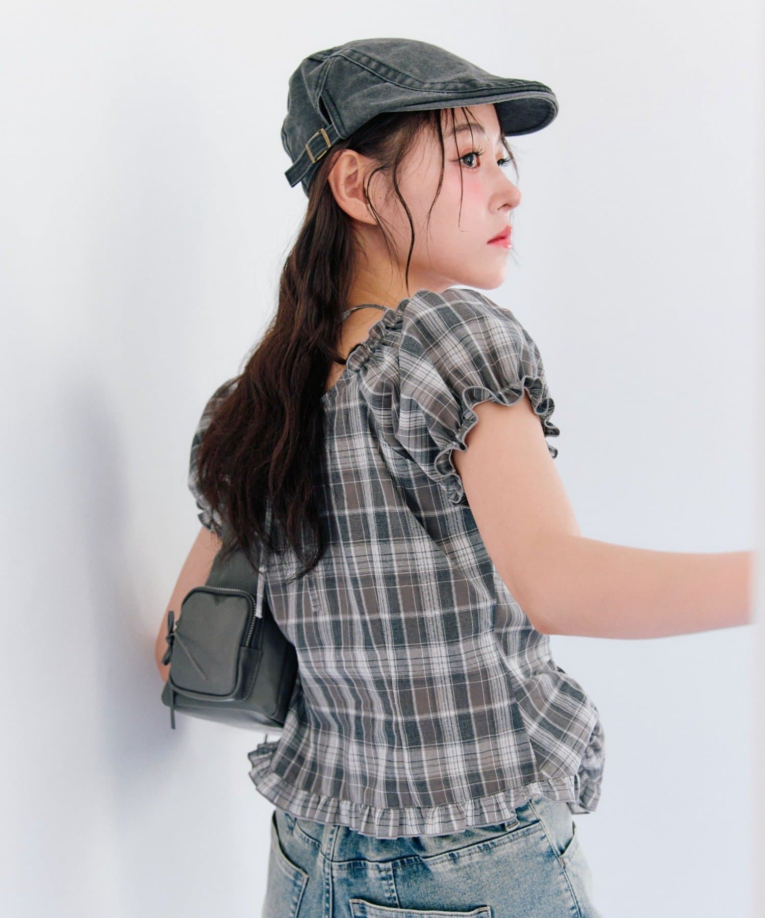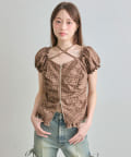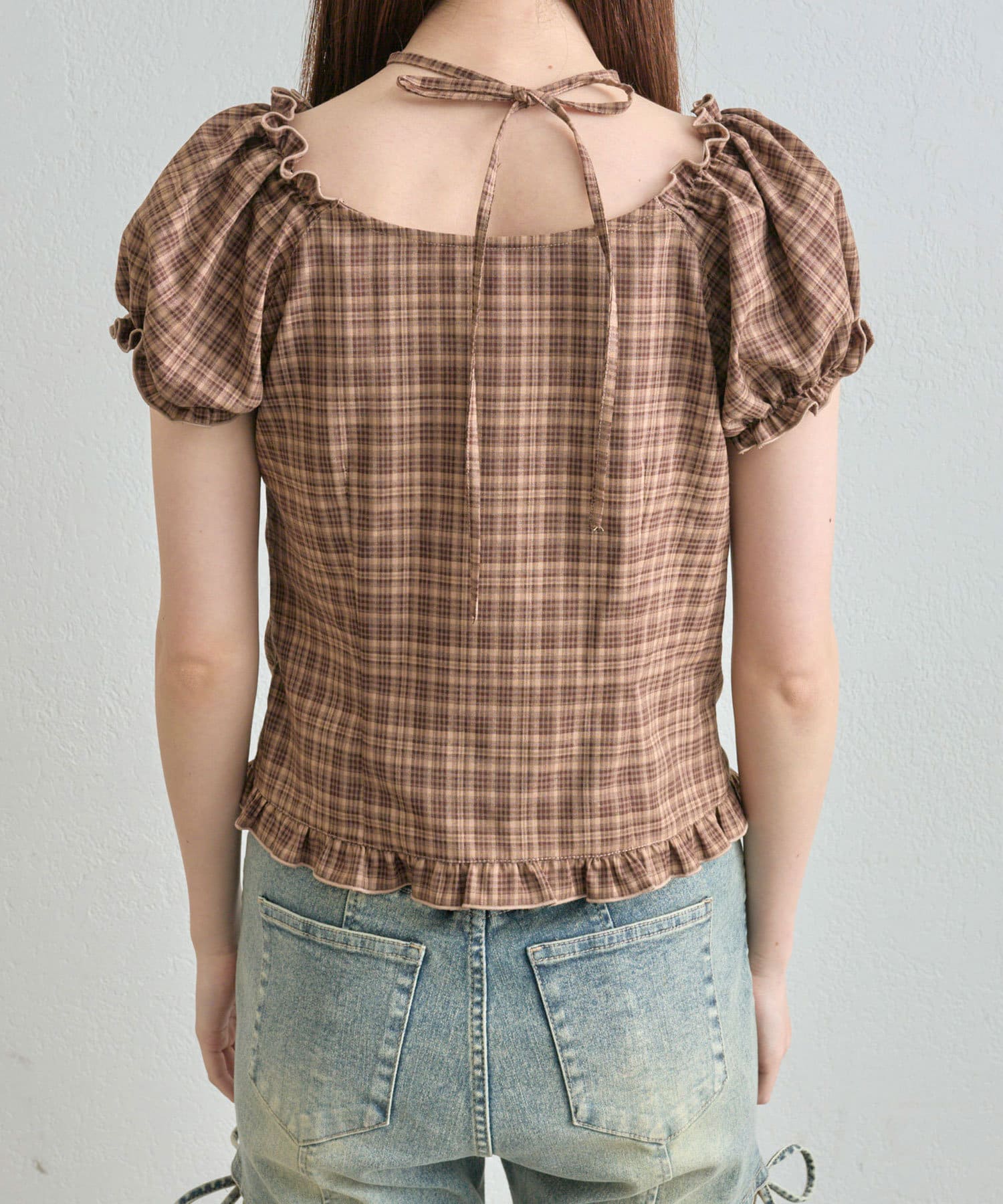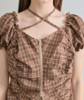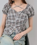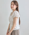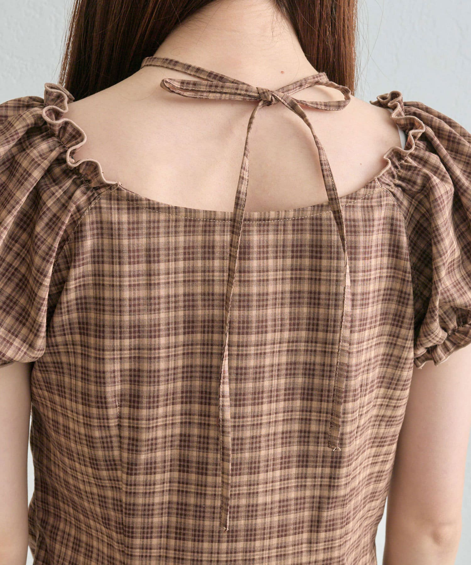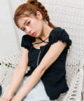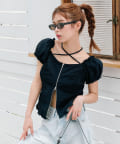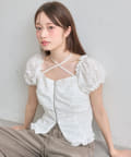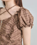 ・ふんわりパフスリーブとストラップデザインで、デコルテが華奢見えするデザインです。