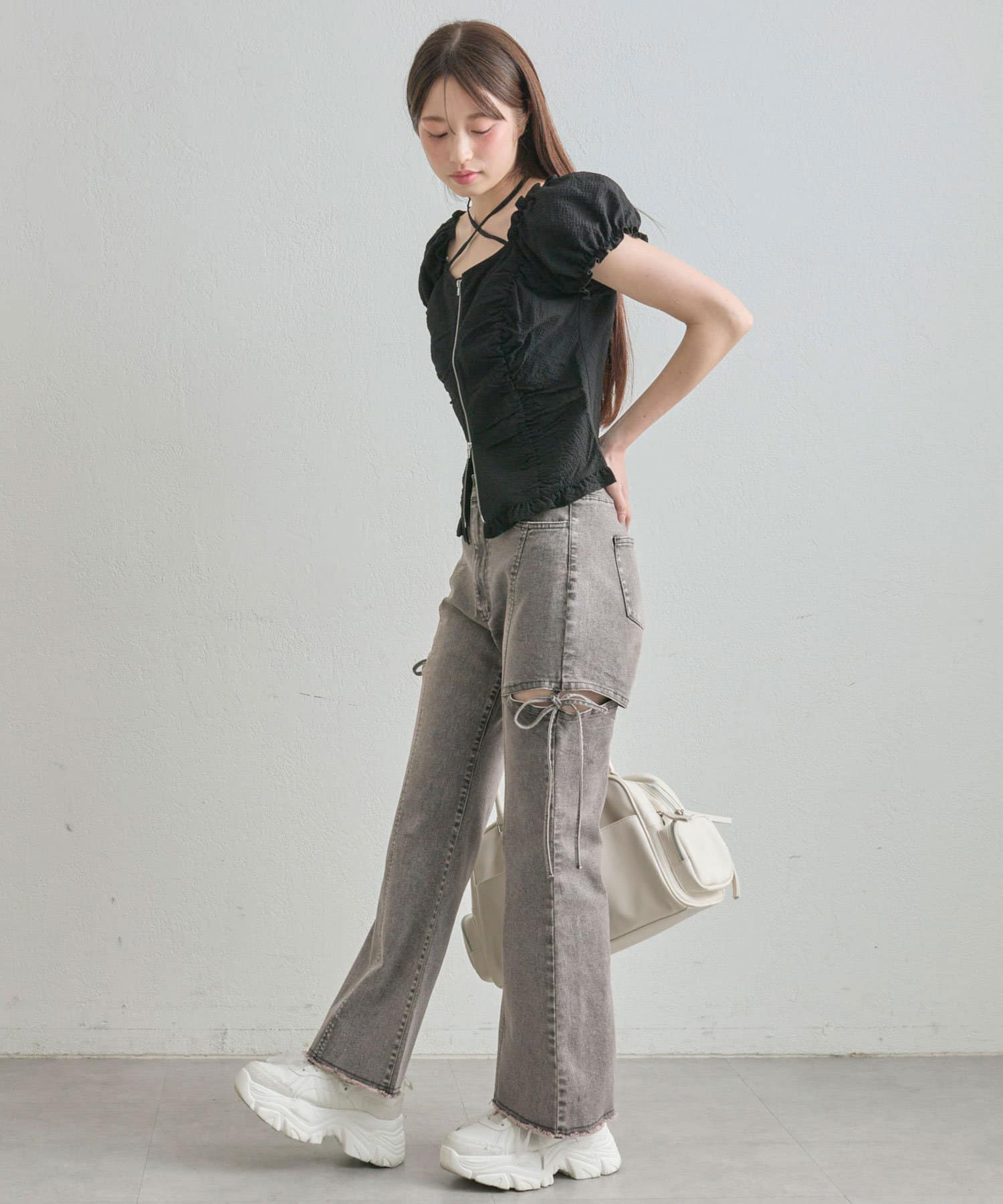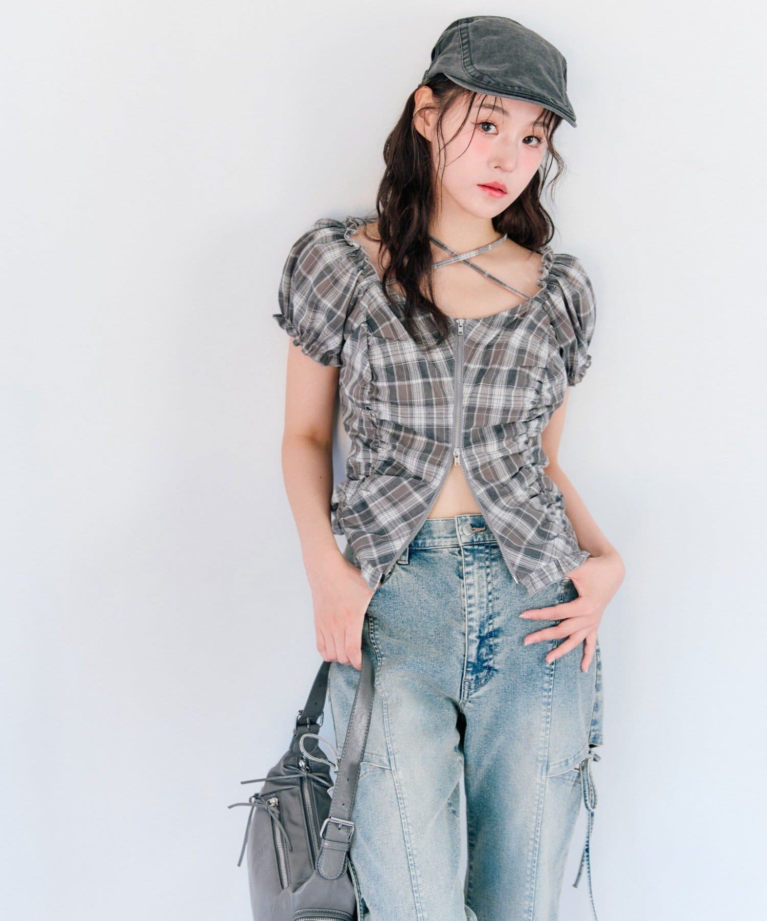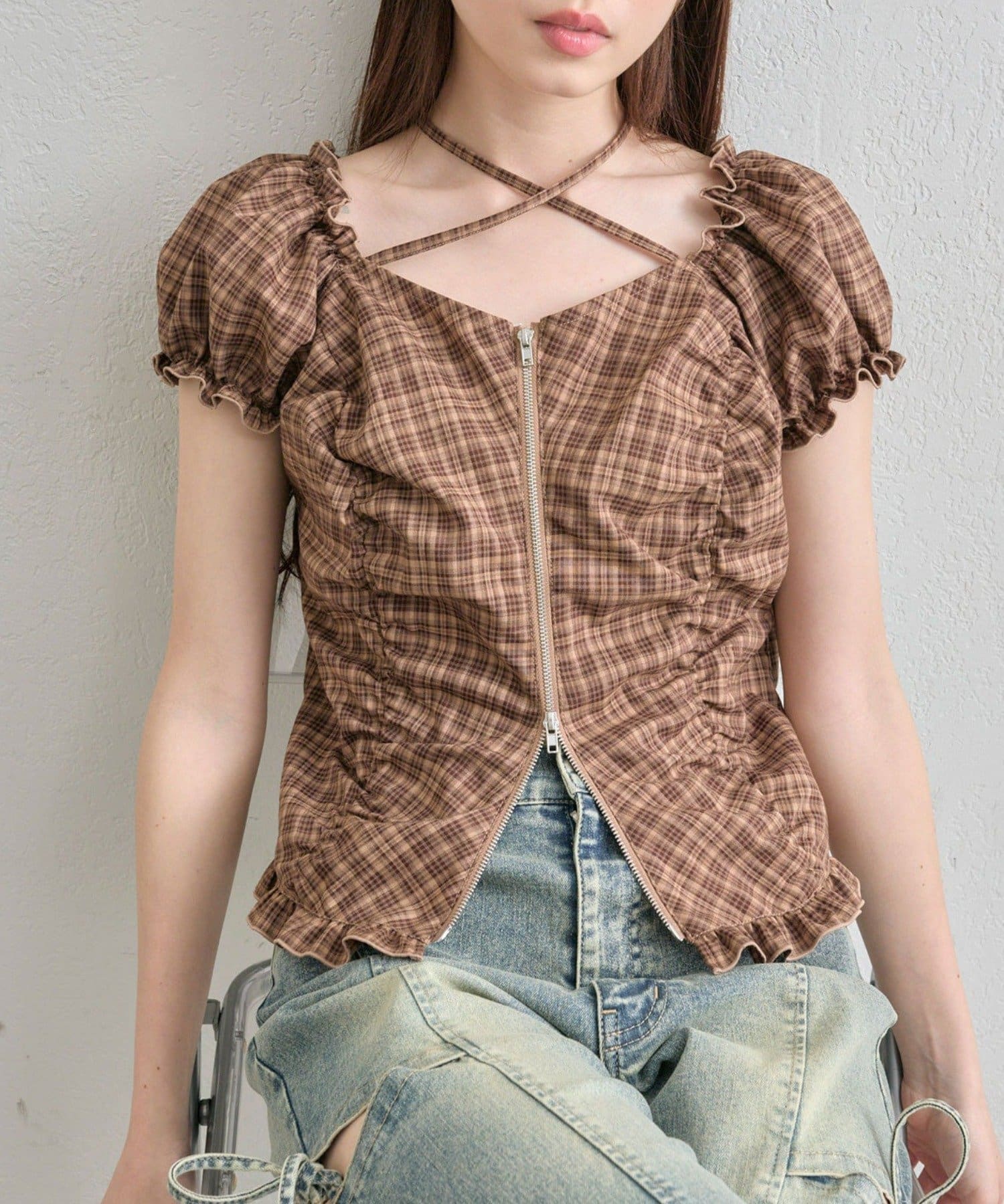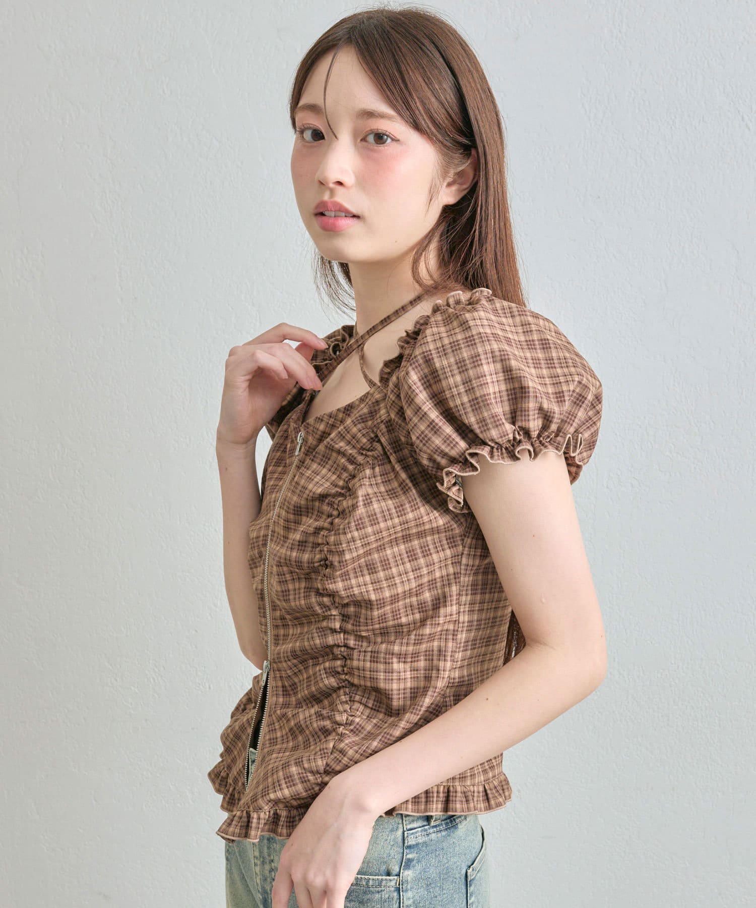 【デコルテ綺麗見え】ダブルジップオフショルブラウス