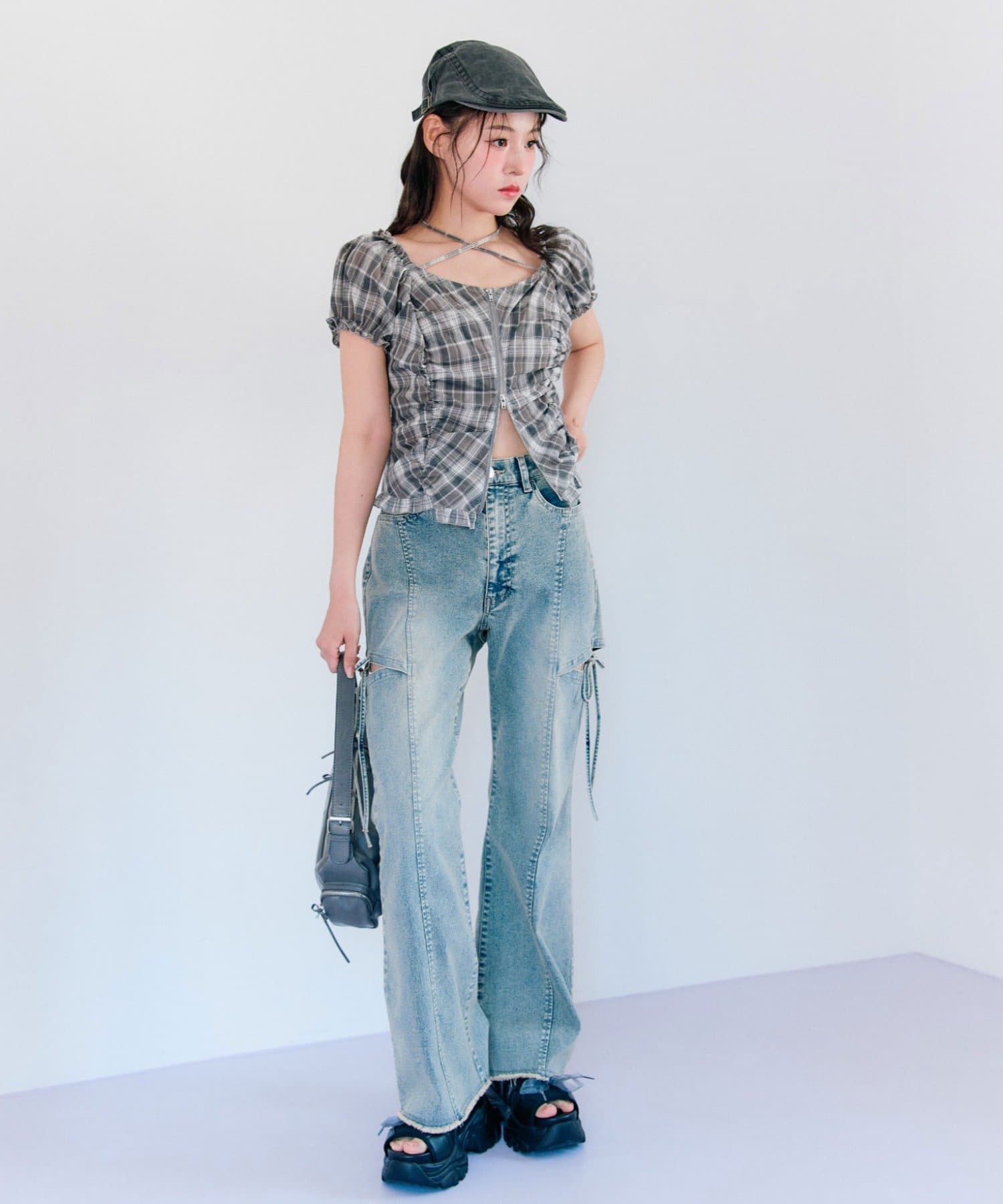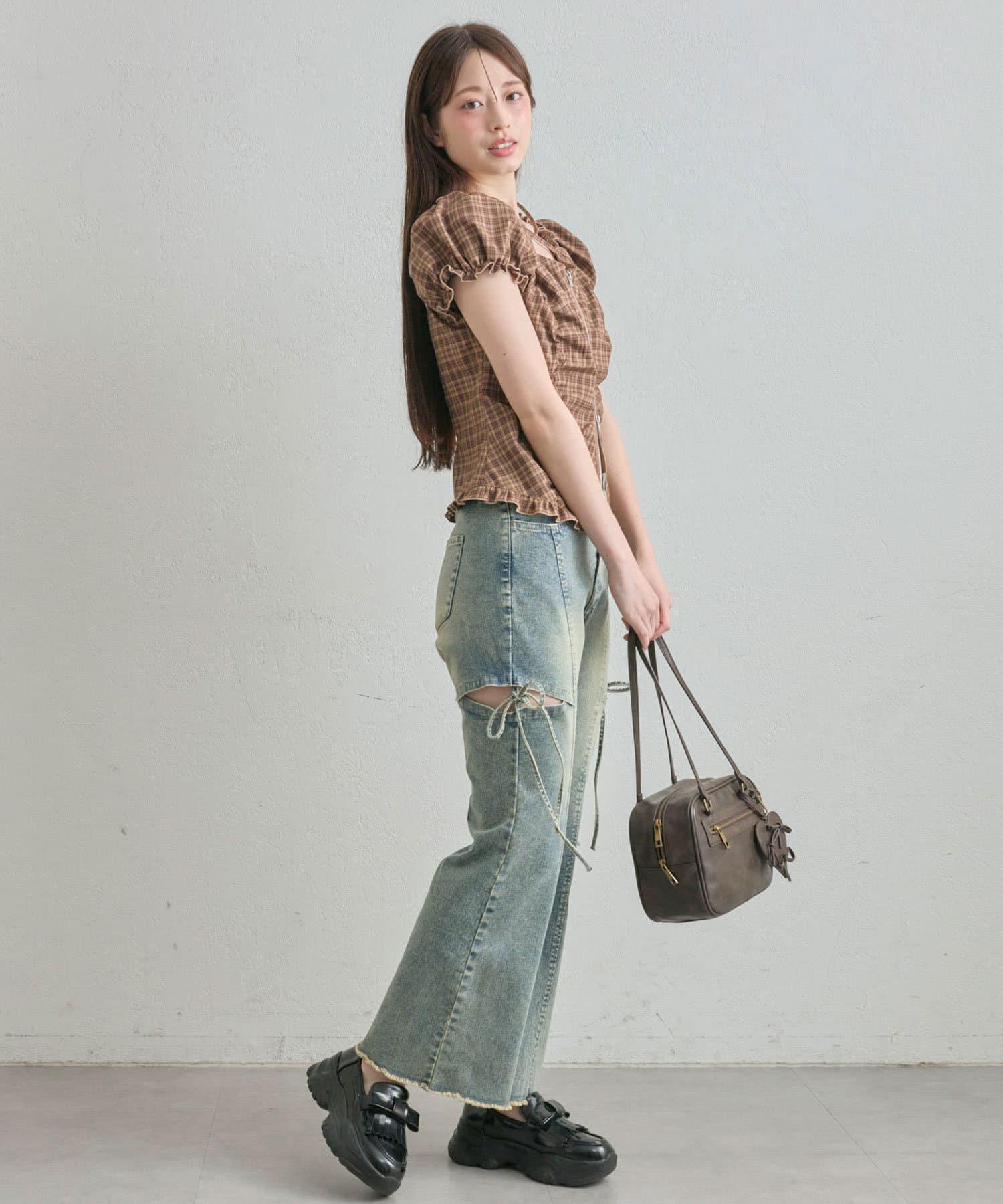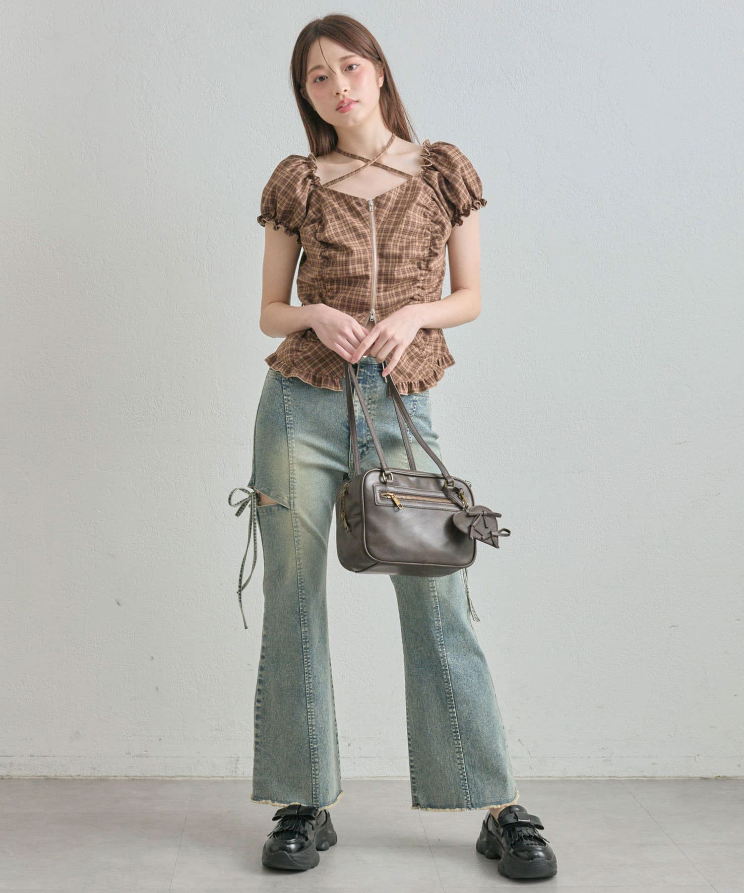 ・ティアードスカートを合わせて、ガーリーにまとめてもかわいいです。