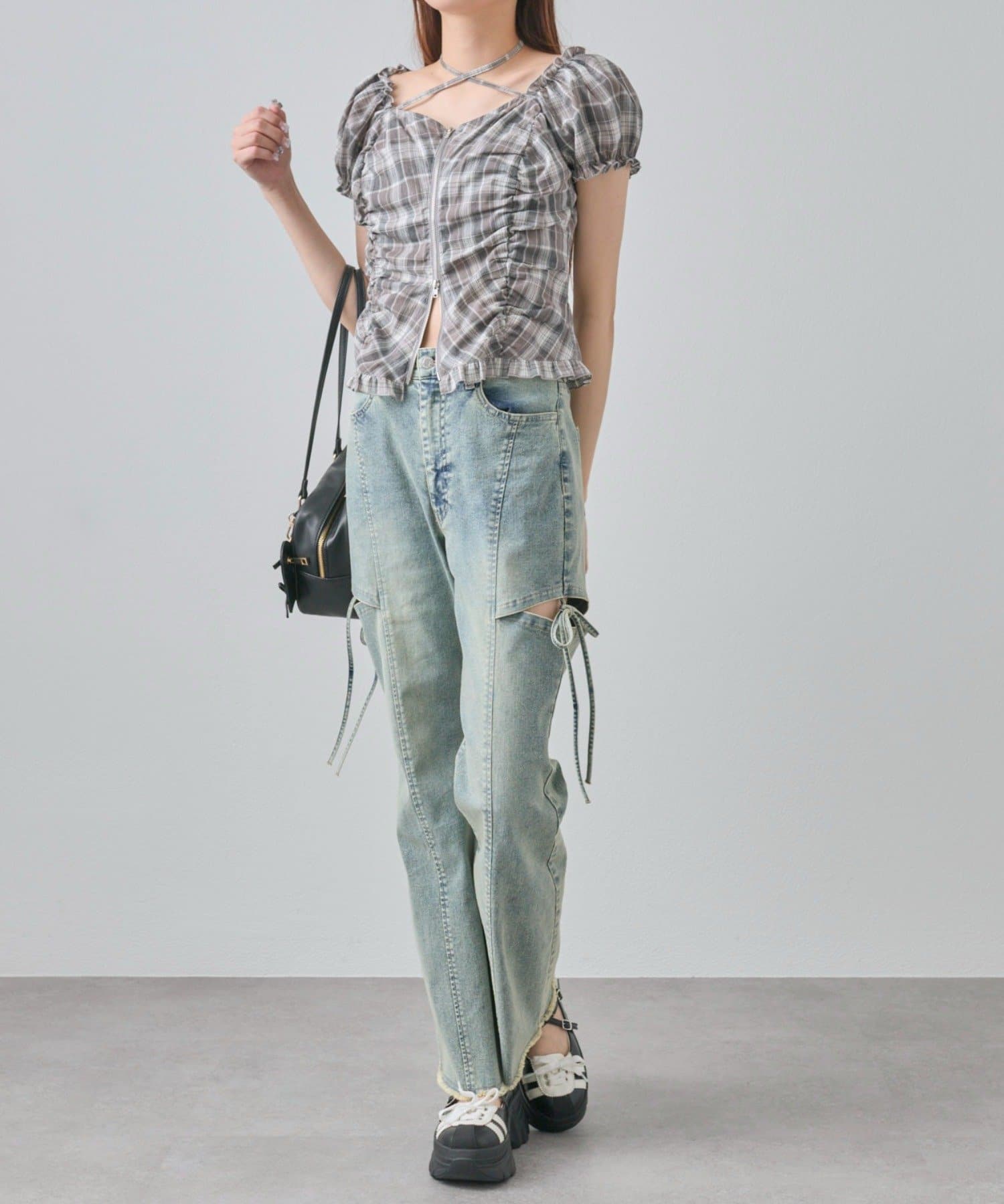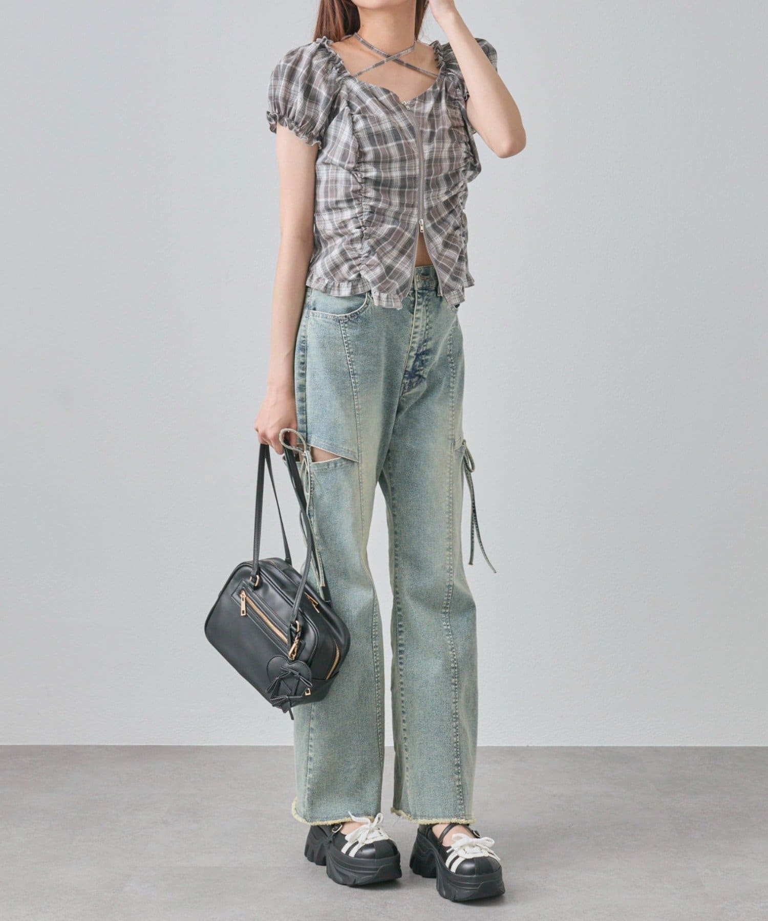 ・トレンド感のあるウエストラインにかかる丈感で、腰回りのカバーも叶います。