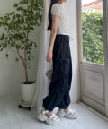・背中側にはシャーリングゴムが入っているので、ウエストラインに沿うきれいなシルエットです。