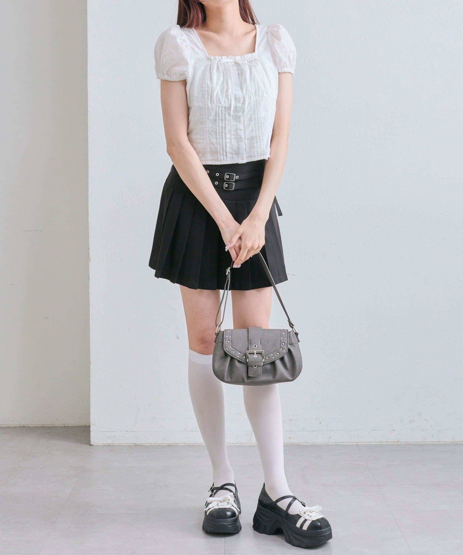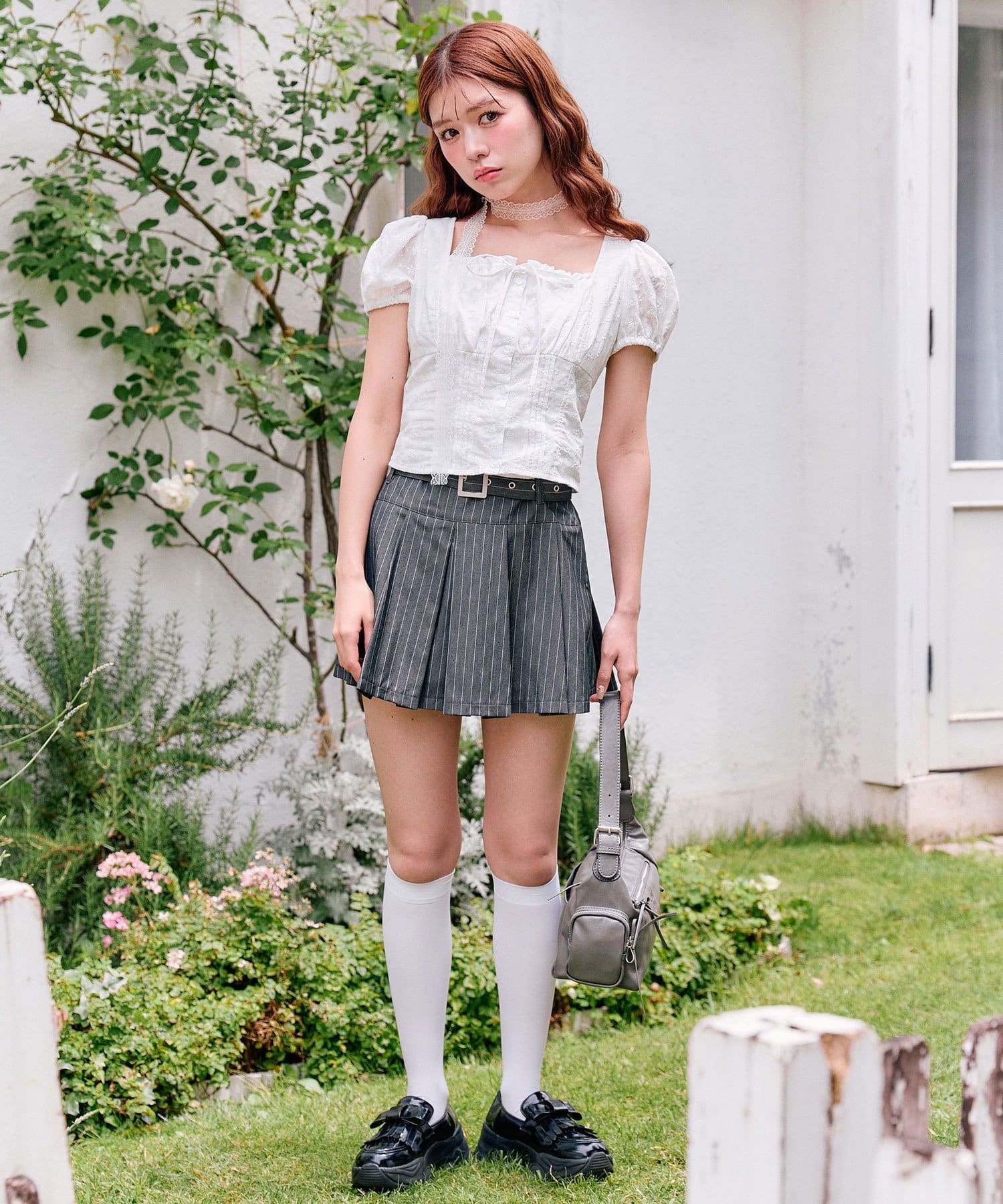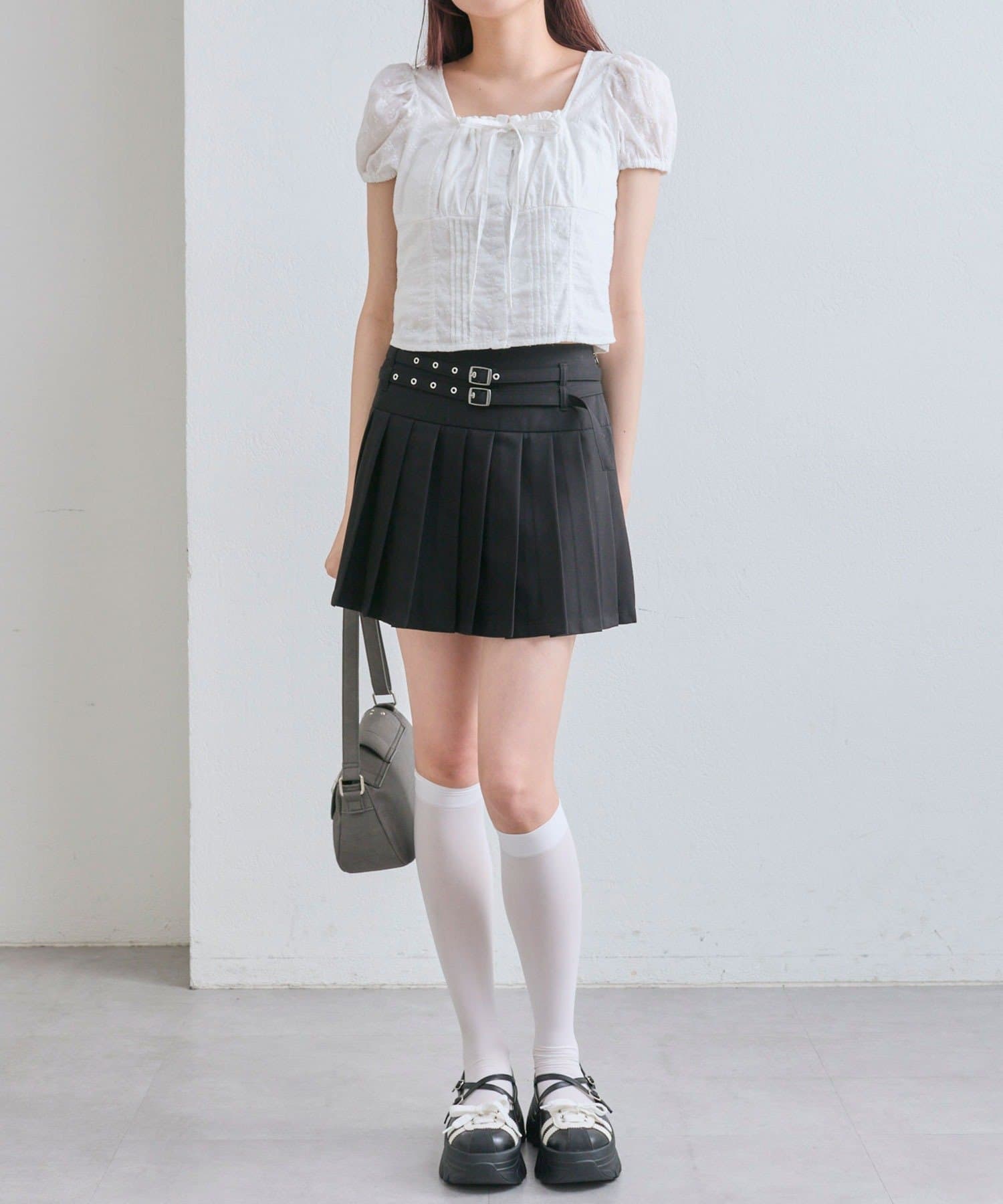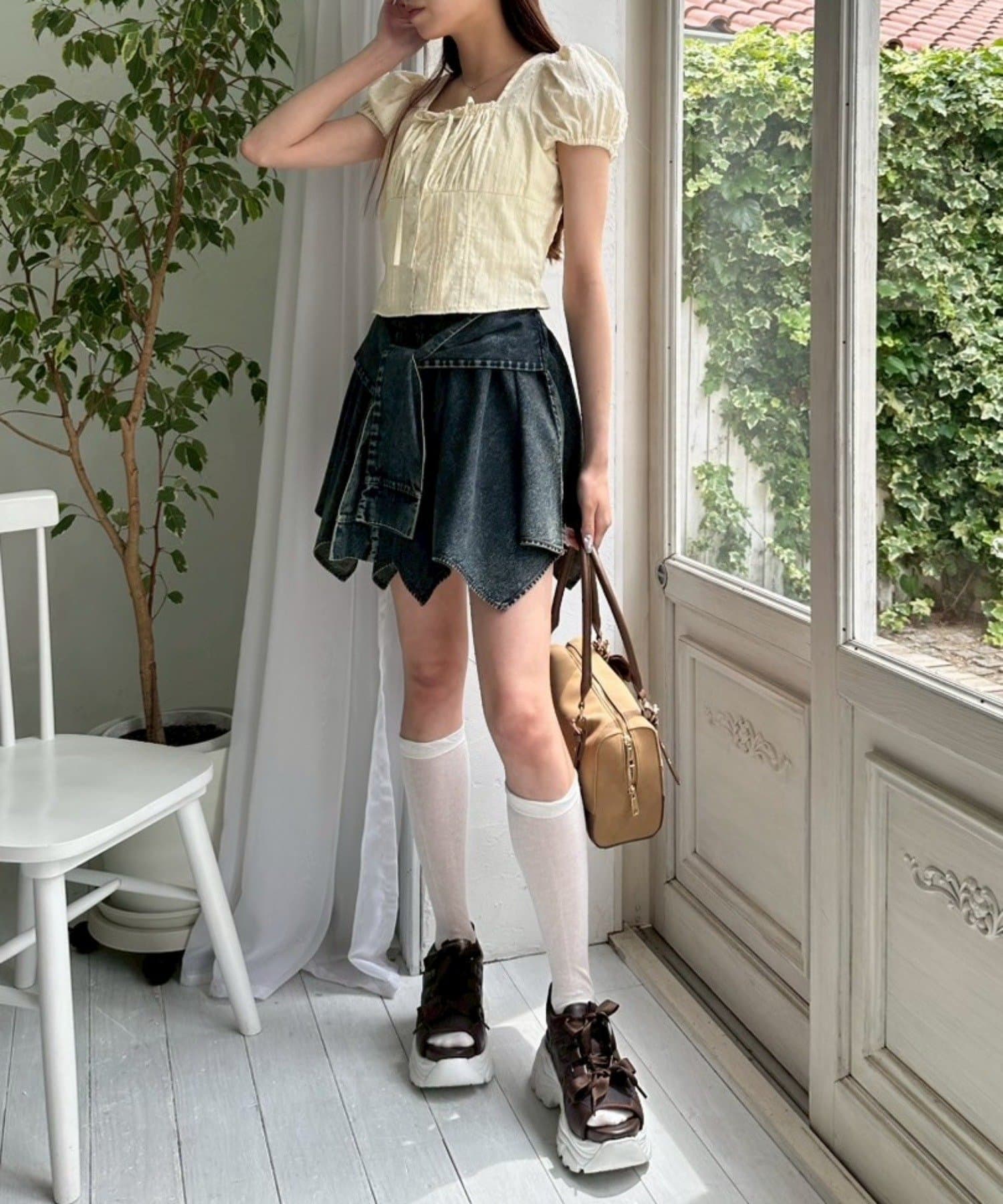 ・スカートを合わせるとガーリーな雰囲気にまとまります。