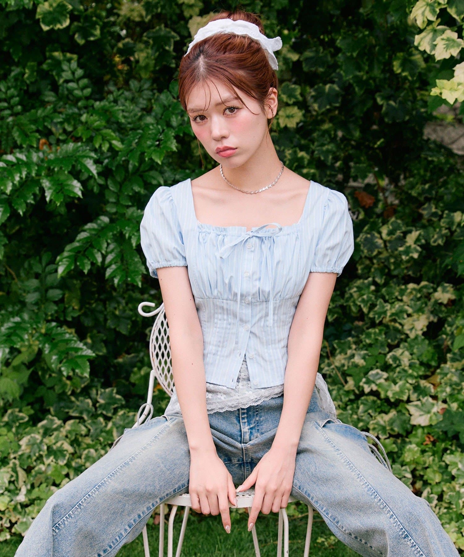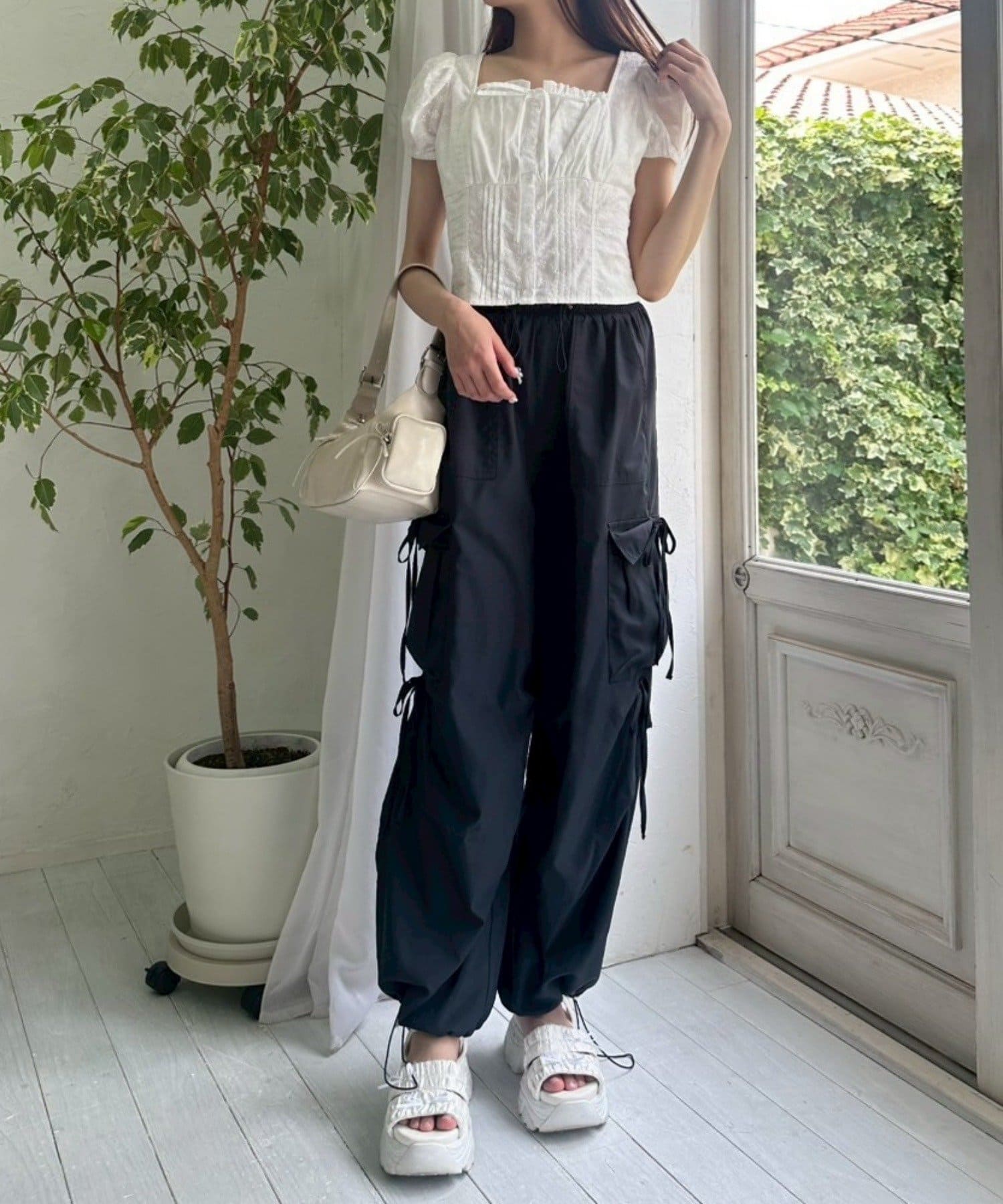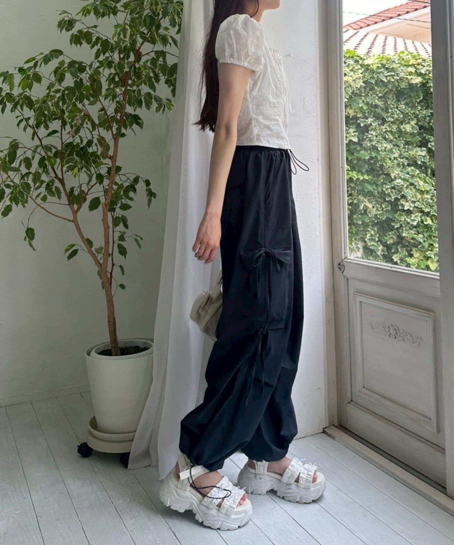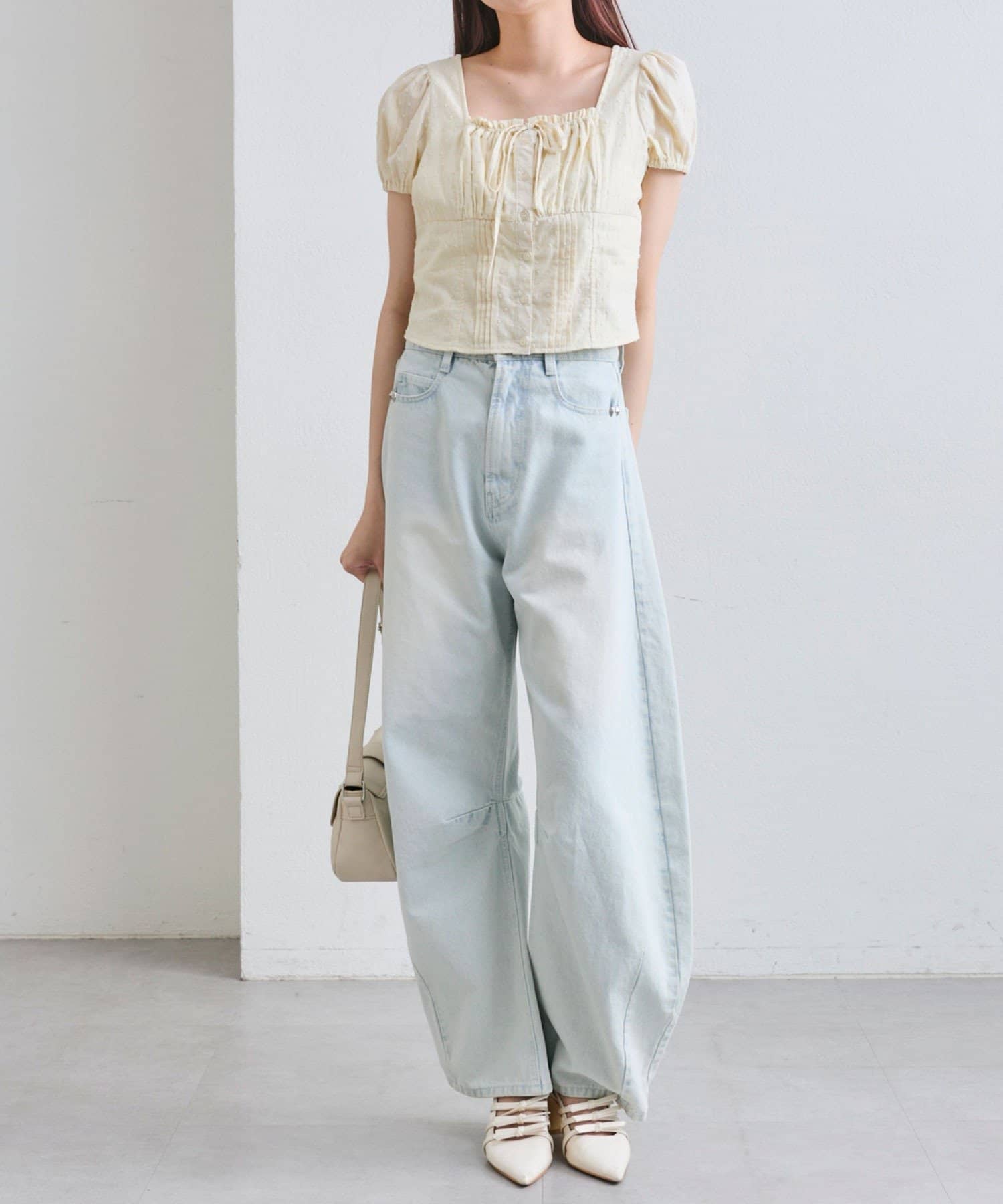 ・胸元のリボンやふわっとしたパフスリーブなど甘め要素がしっかりあるデザインです。