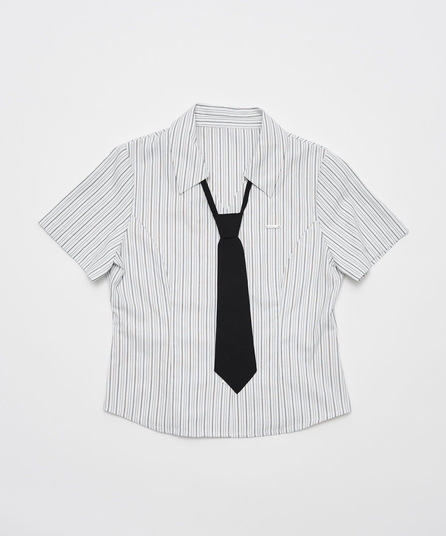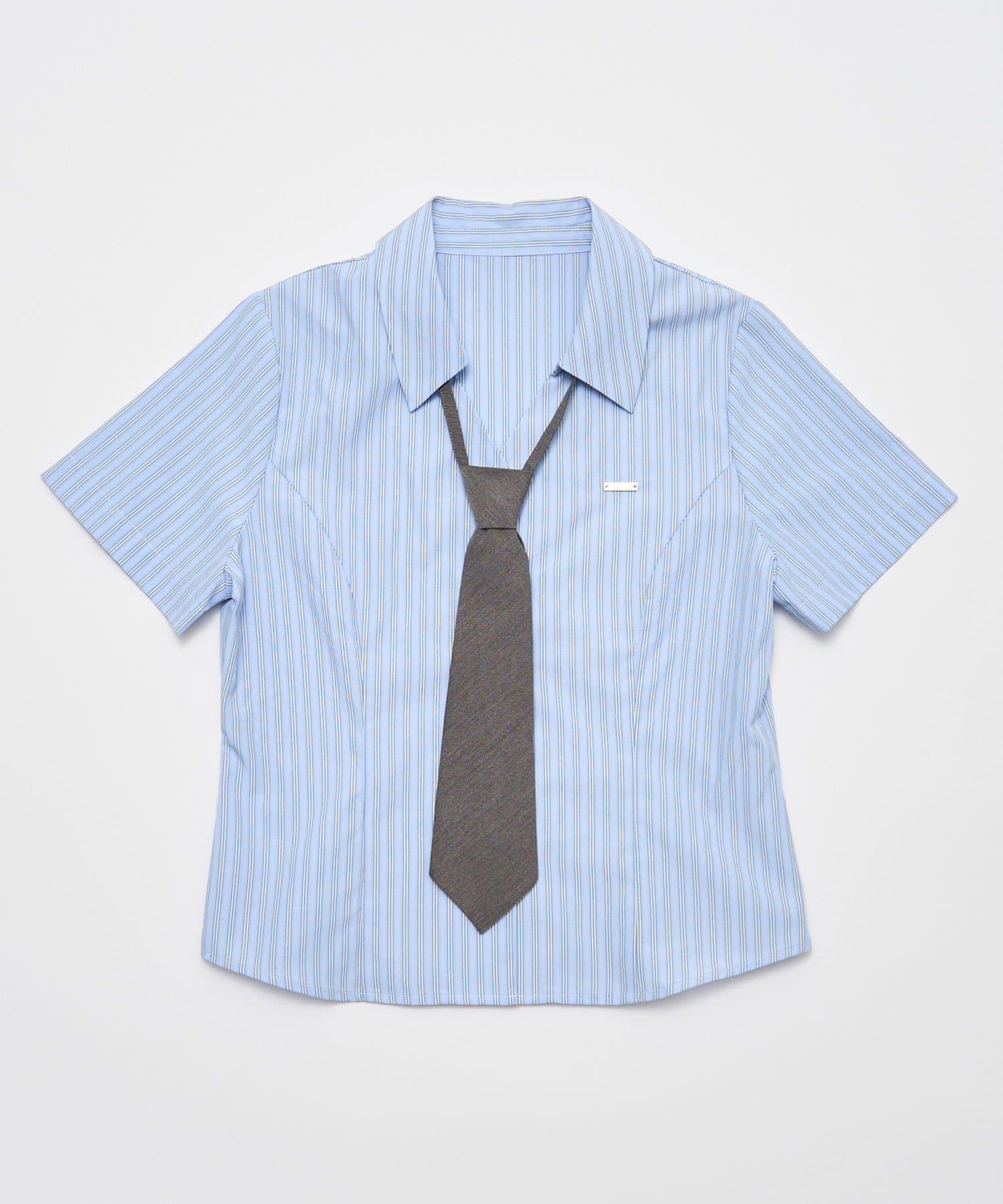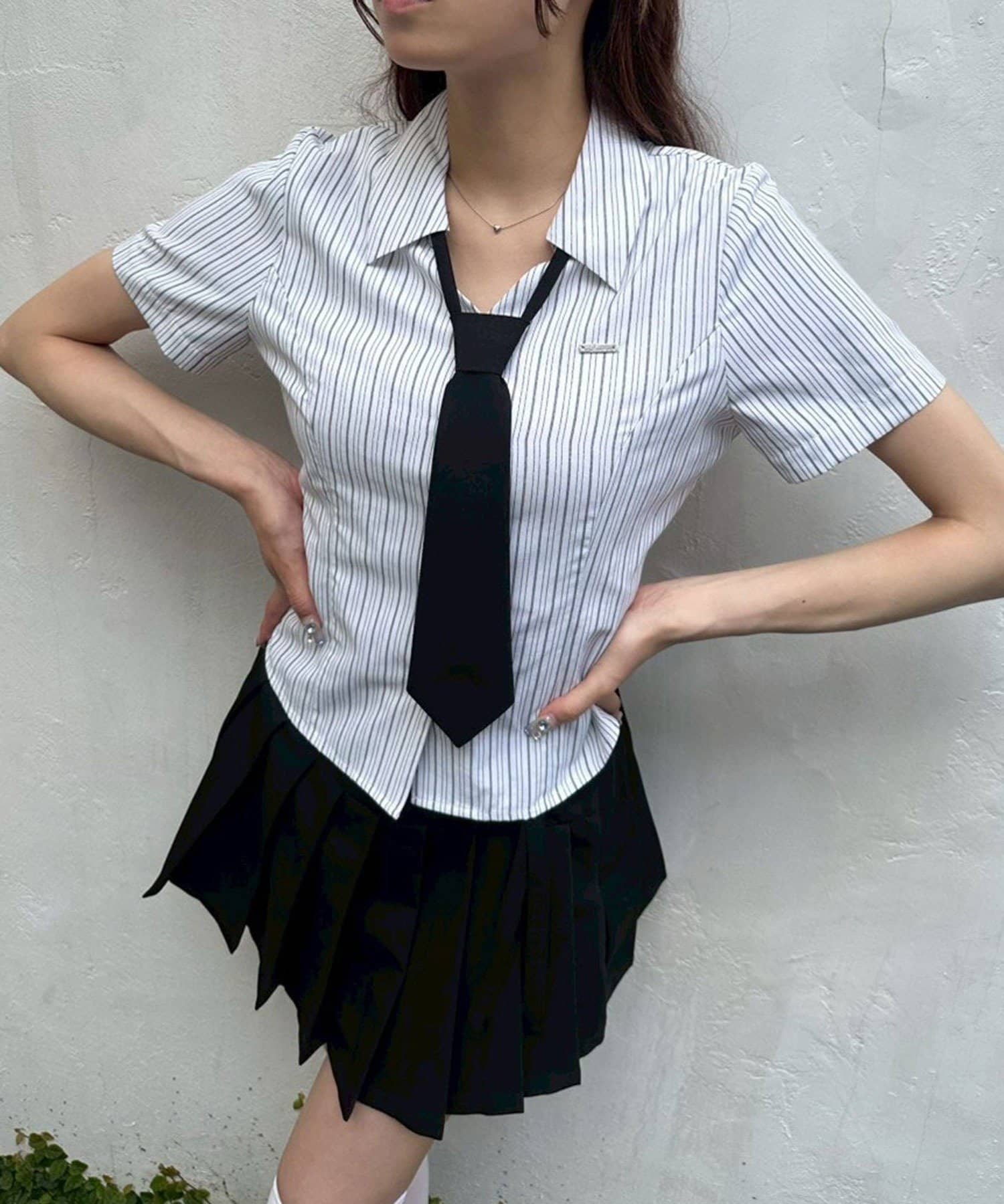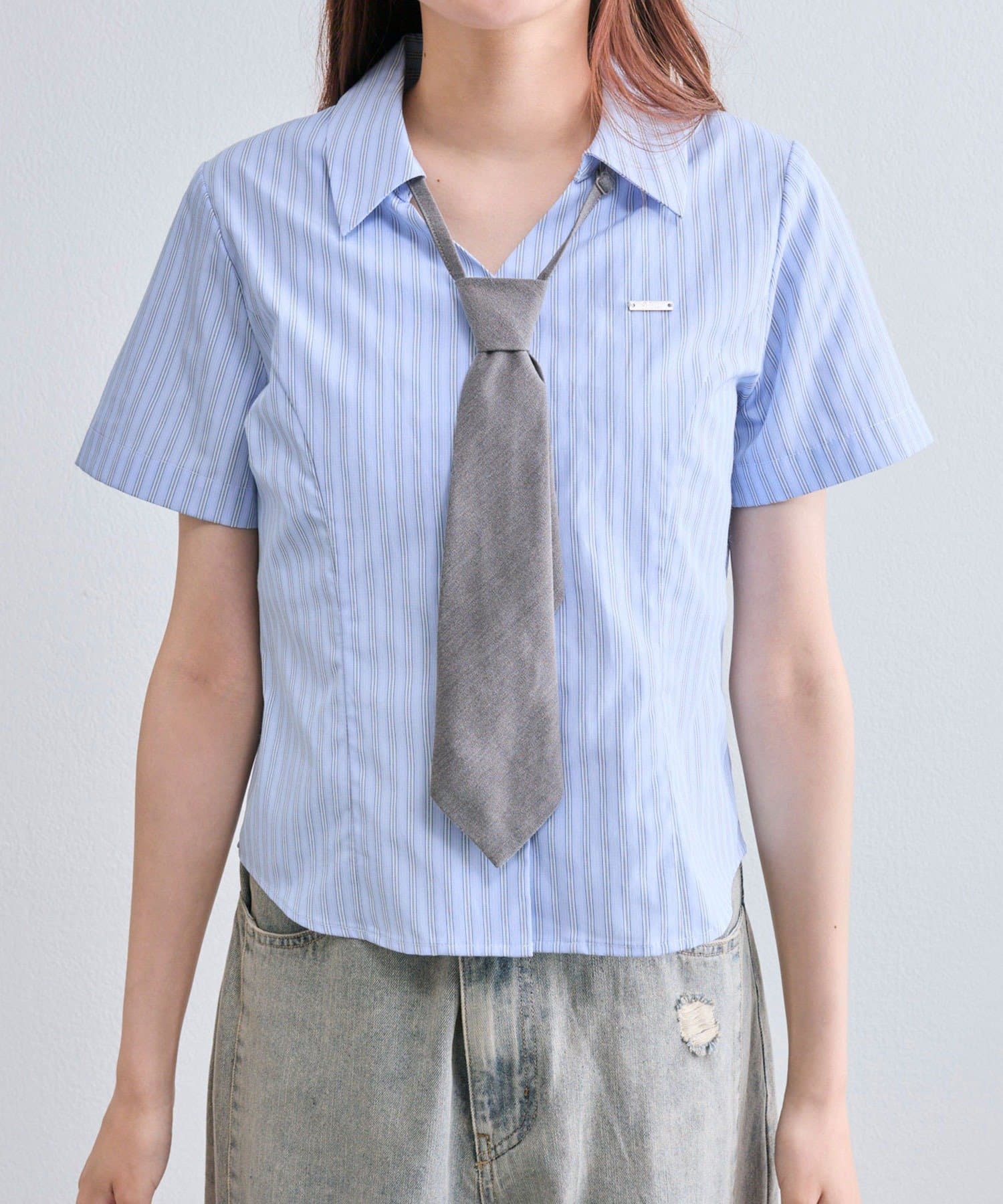 ・取り外し可能なネクタイ付きで、プレッピー感を簡単にプラスできるデザイン。
