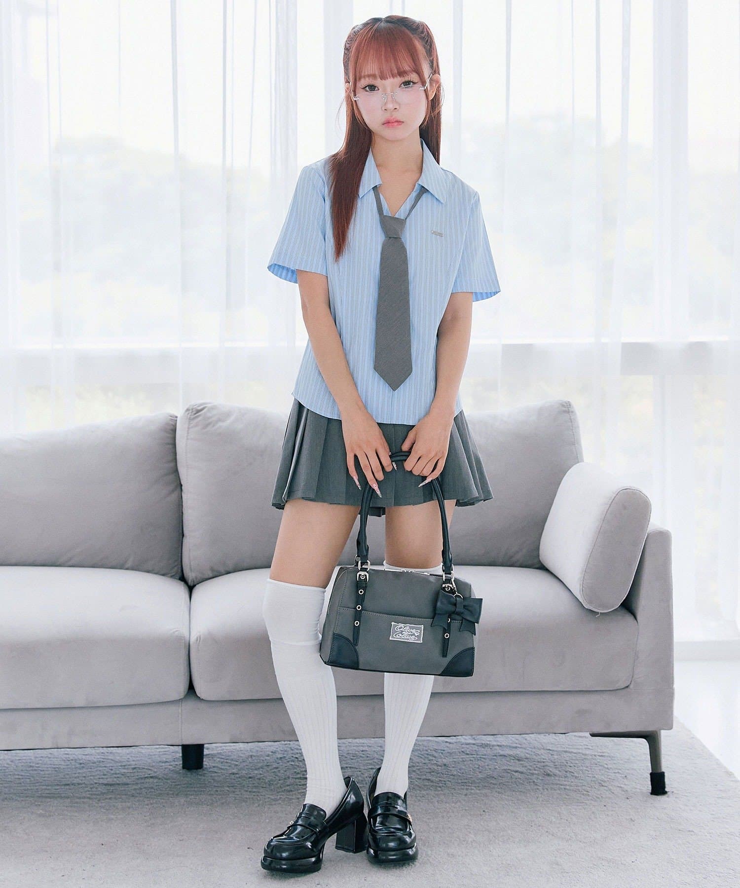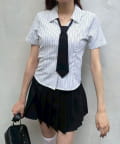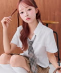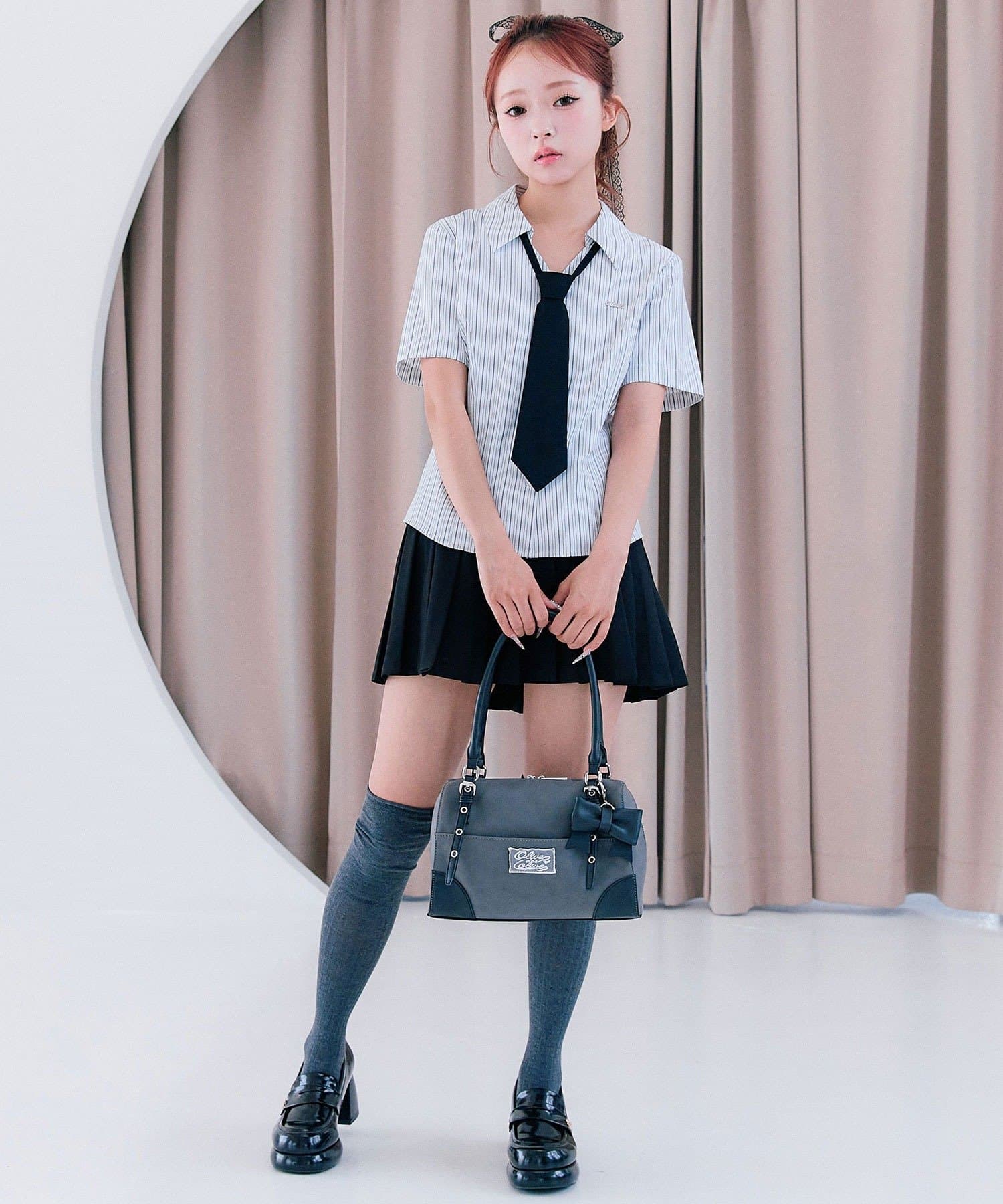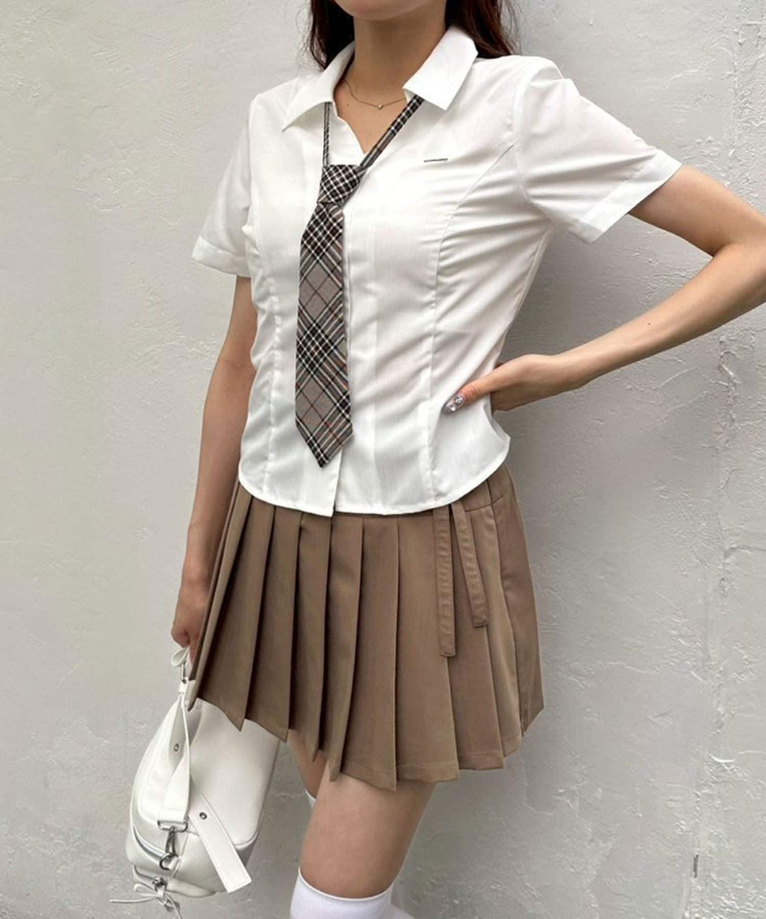 ・取り外し可能なネクタイ付きで、プレッピー感を簡単にプラスできるデザイン。