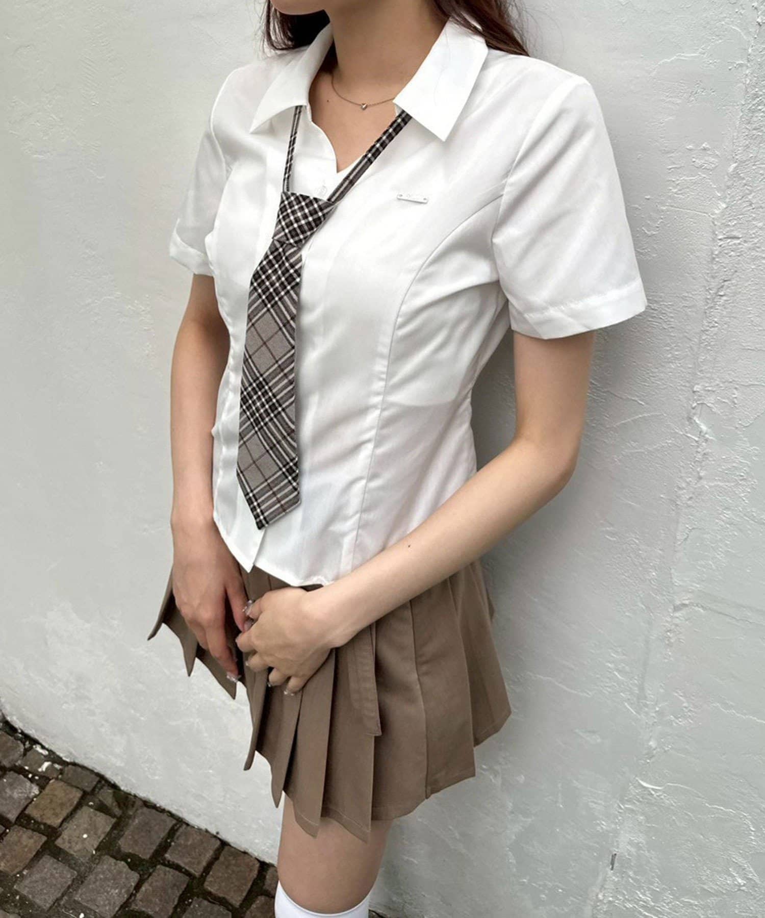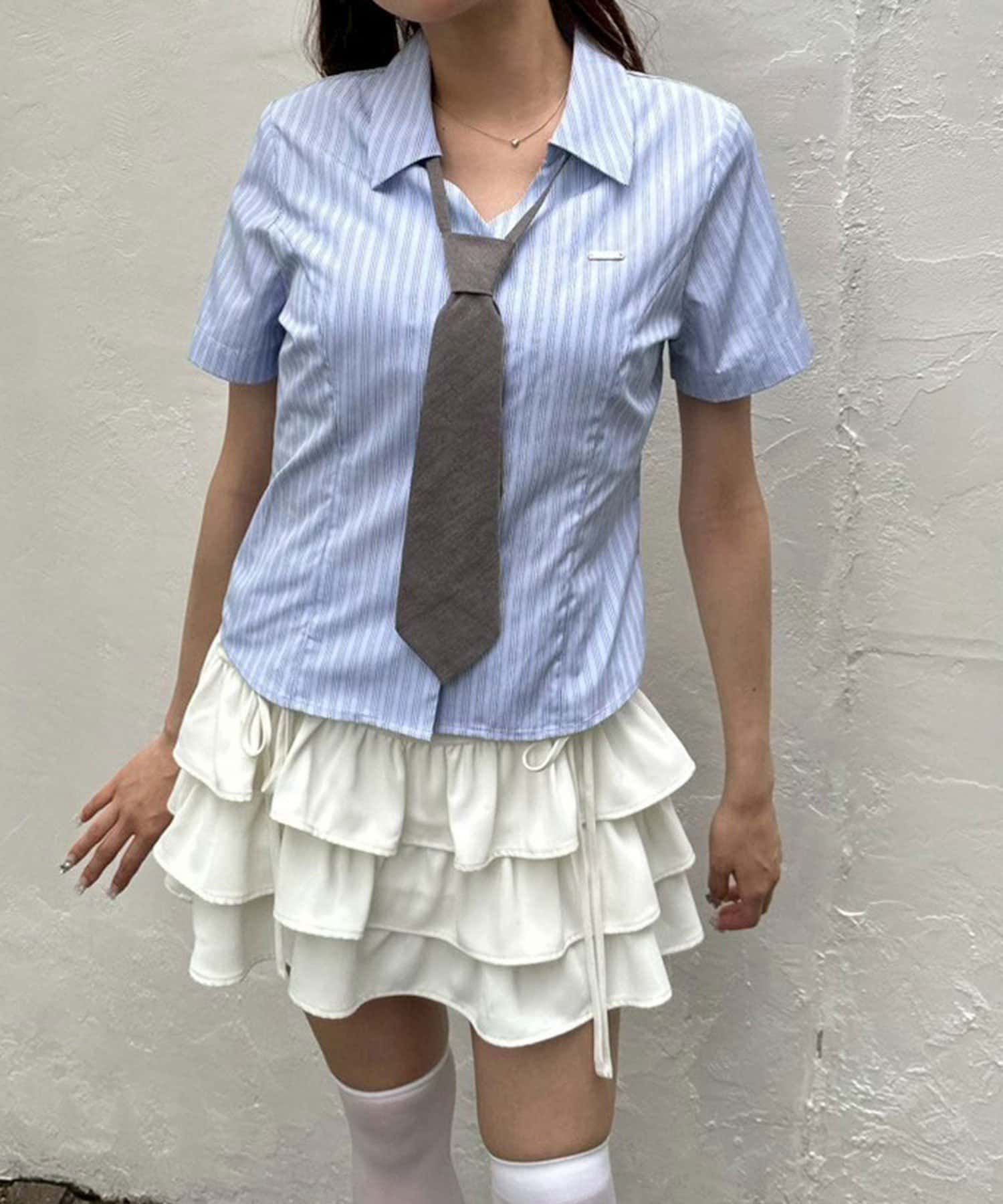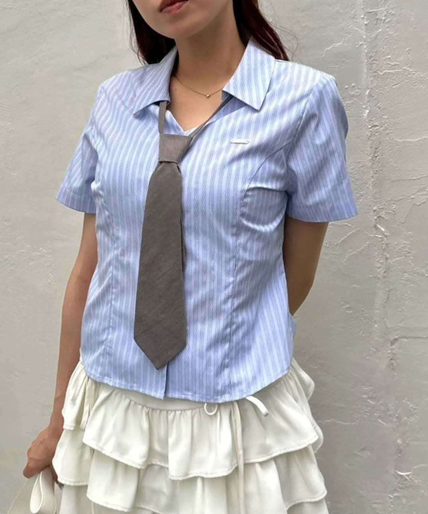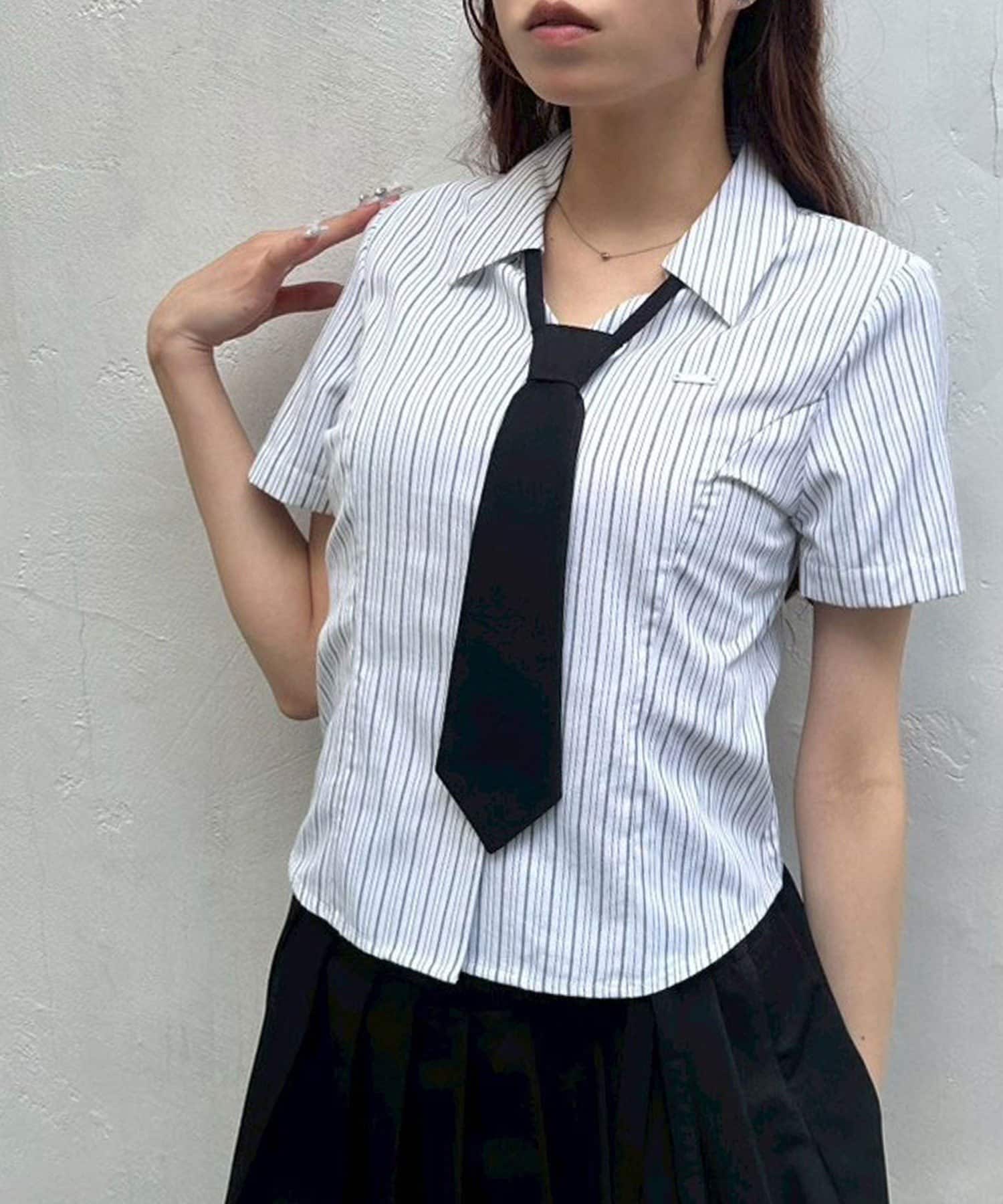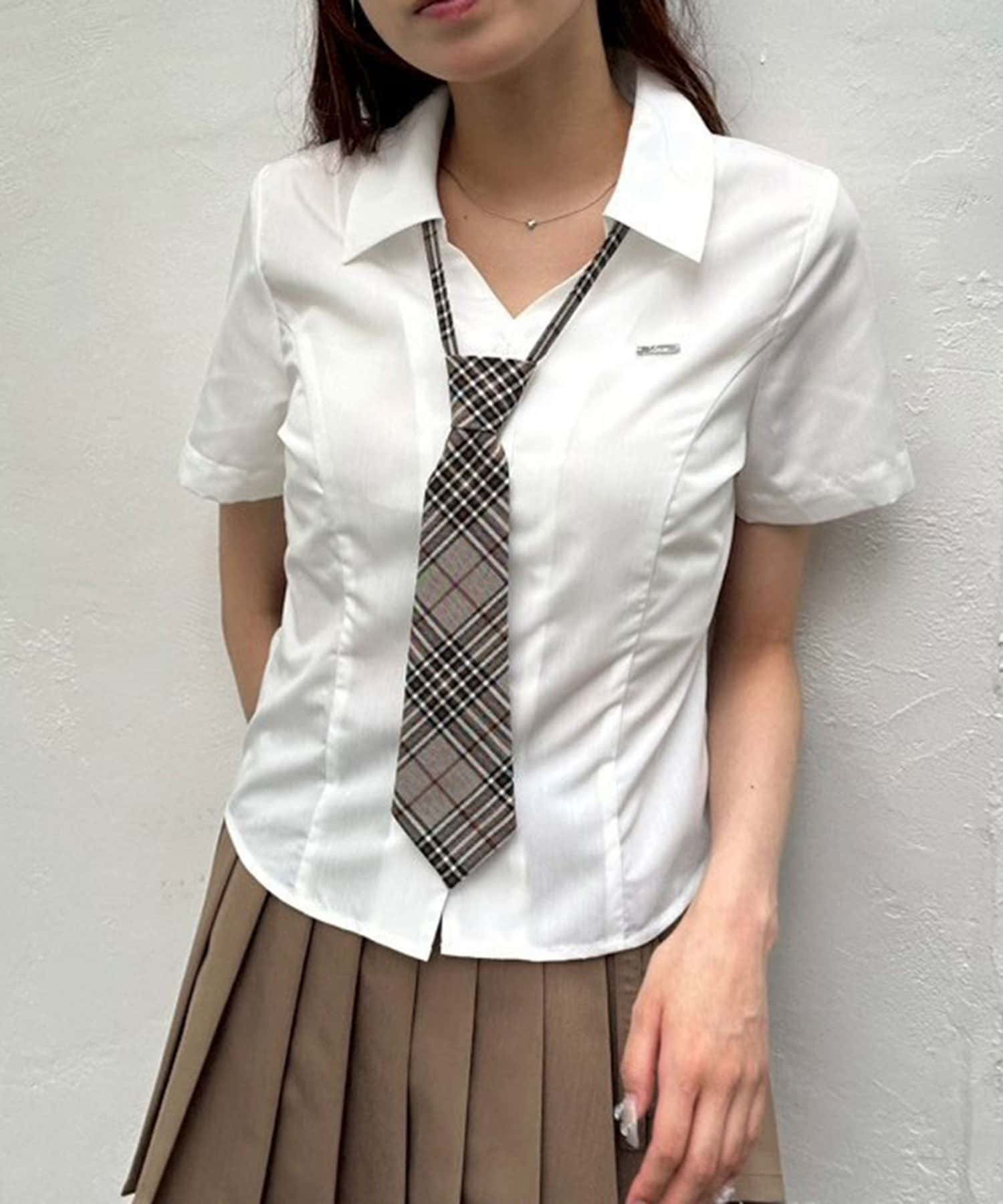 TOP > OLIVE des OLIVE > レディース > トップス > シャツ/ブラウス(ボタン) > ネクタイ付半袖シャツ