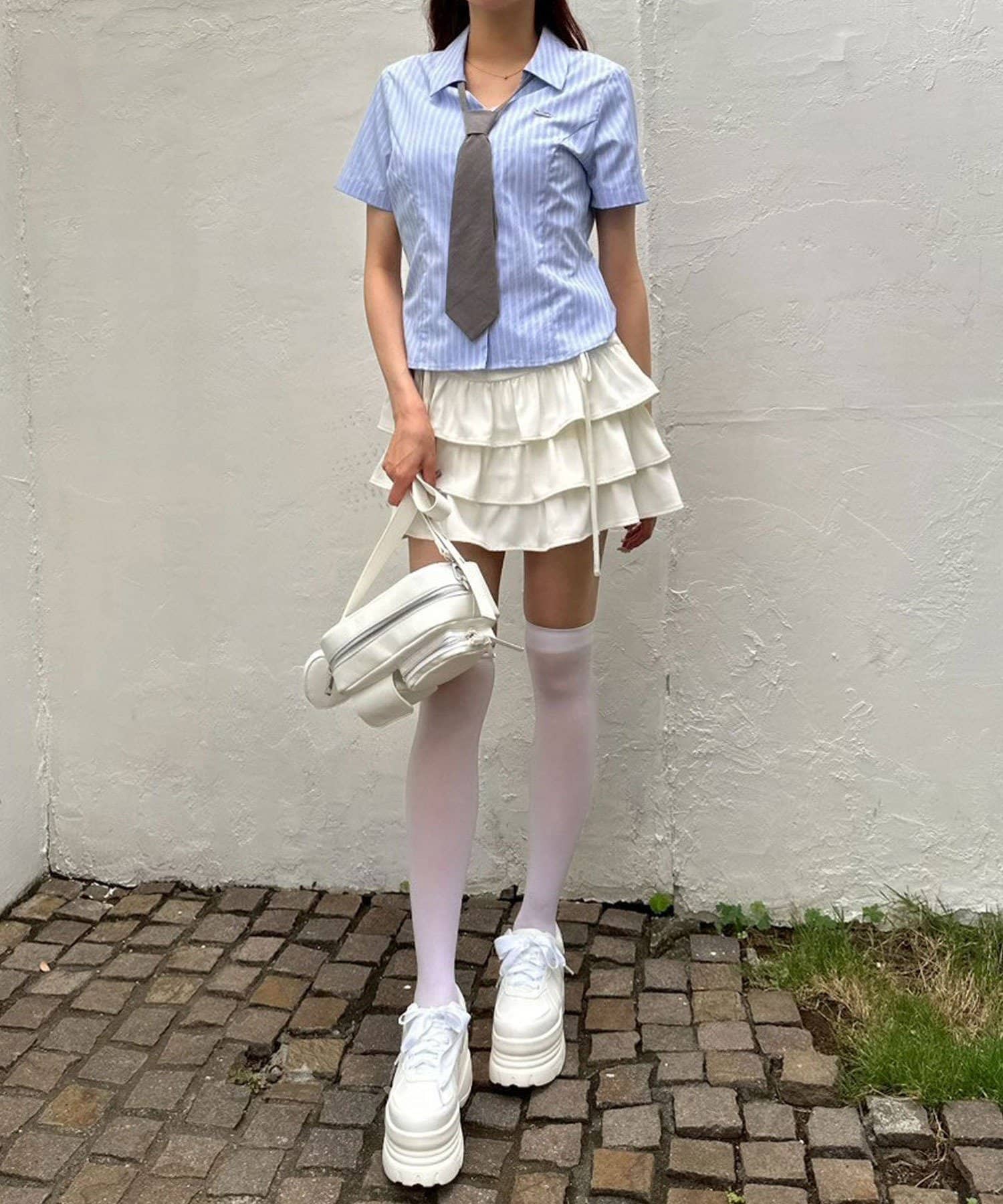 ・ティアードスカートを合わせると寄りガーリーな印象になります。