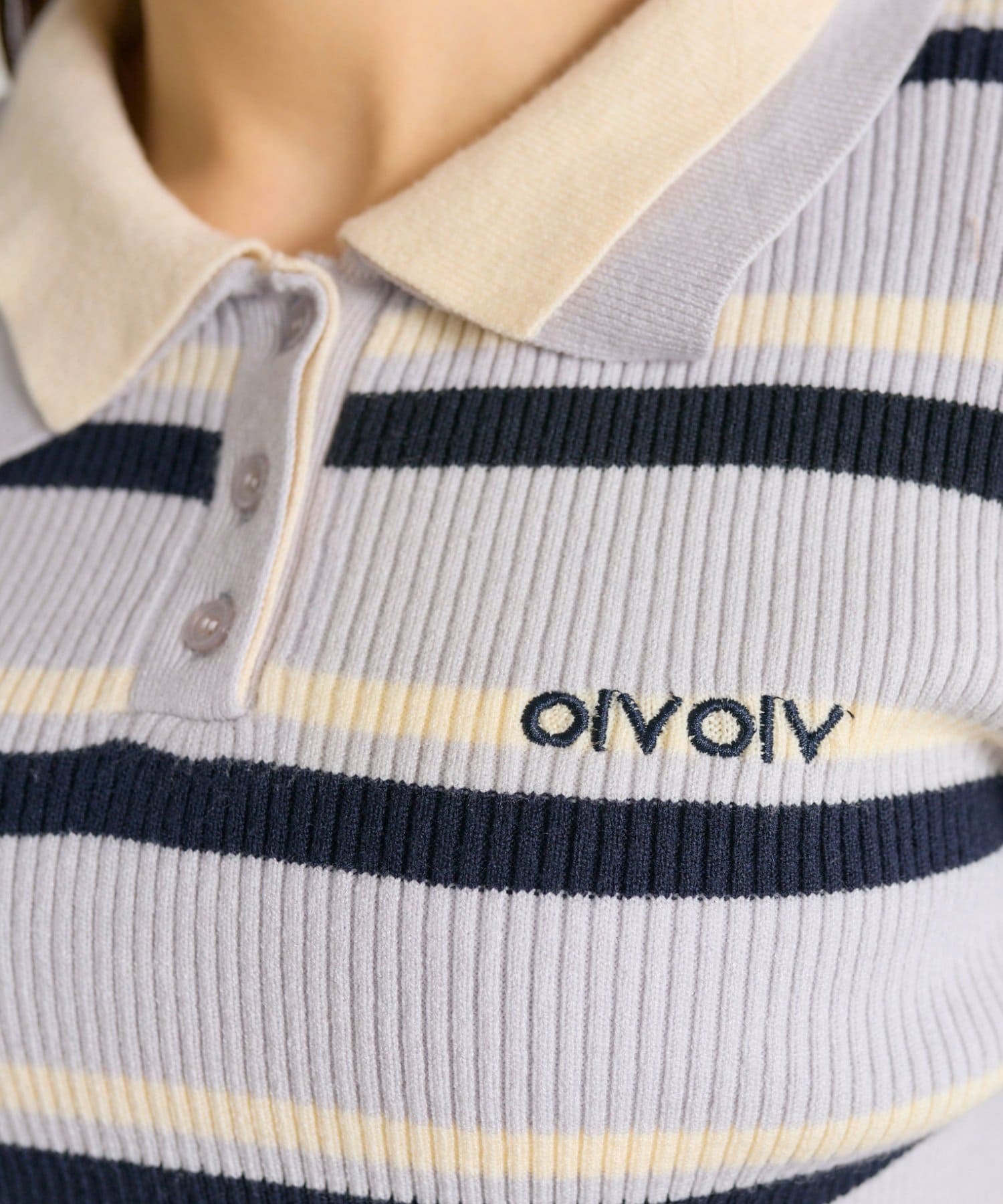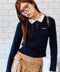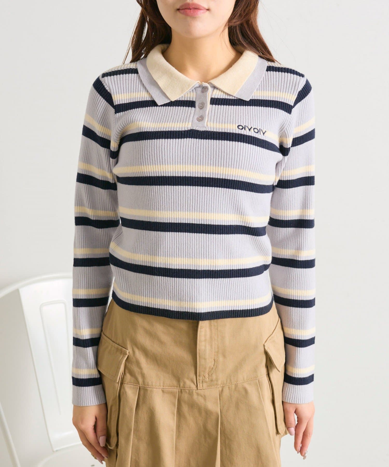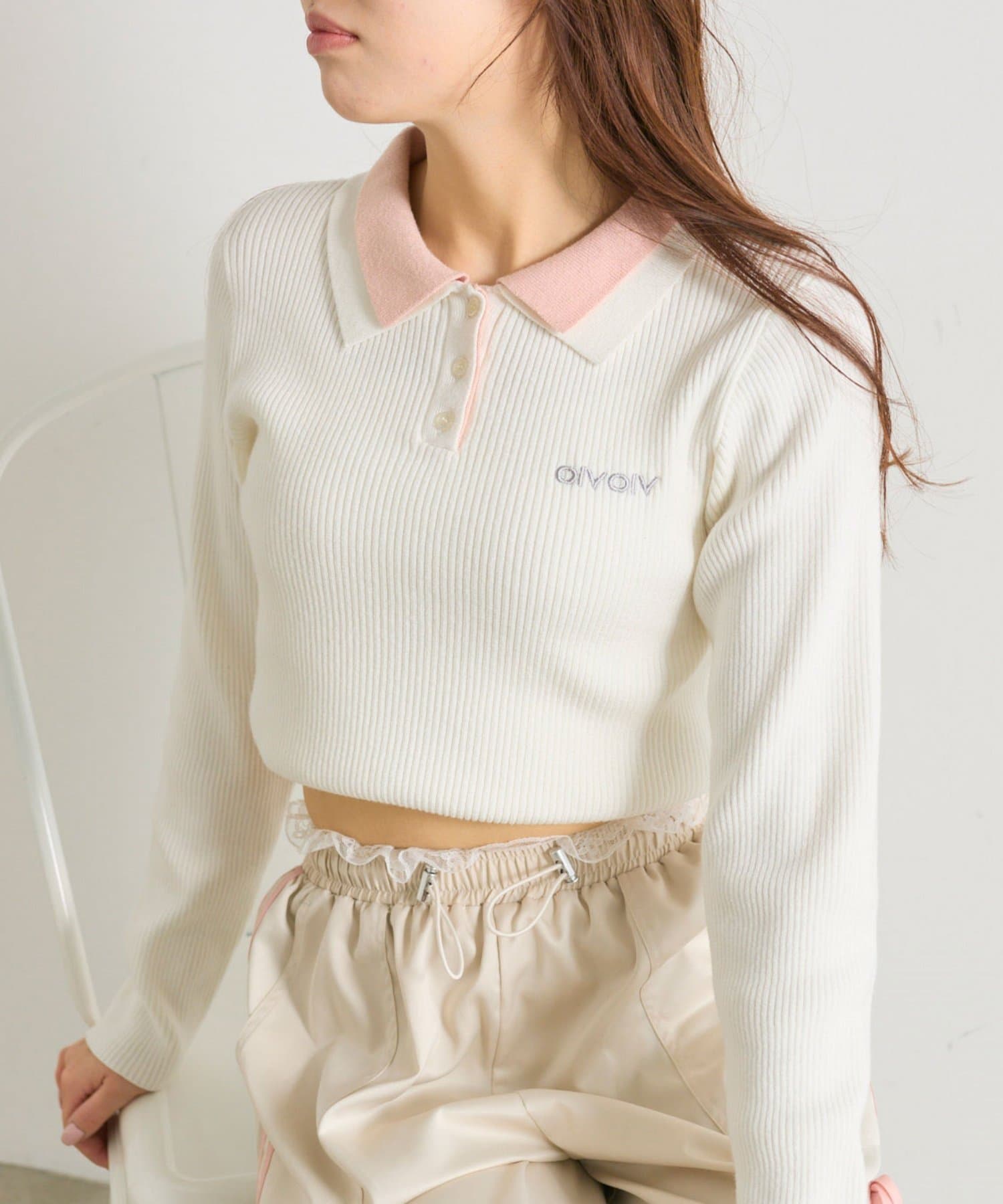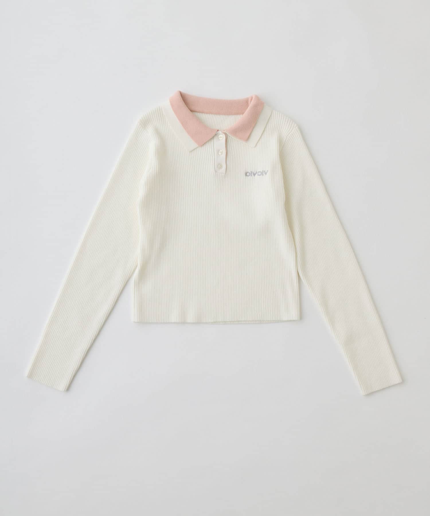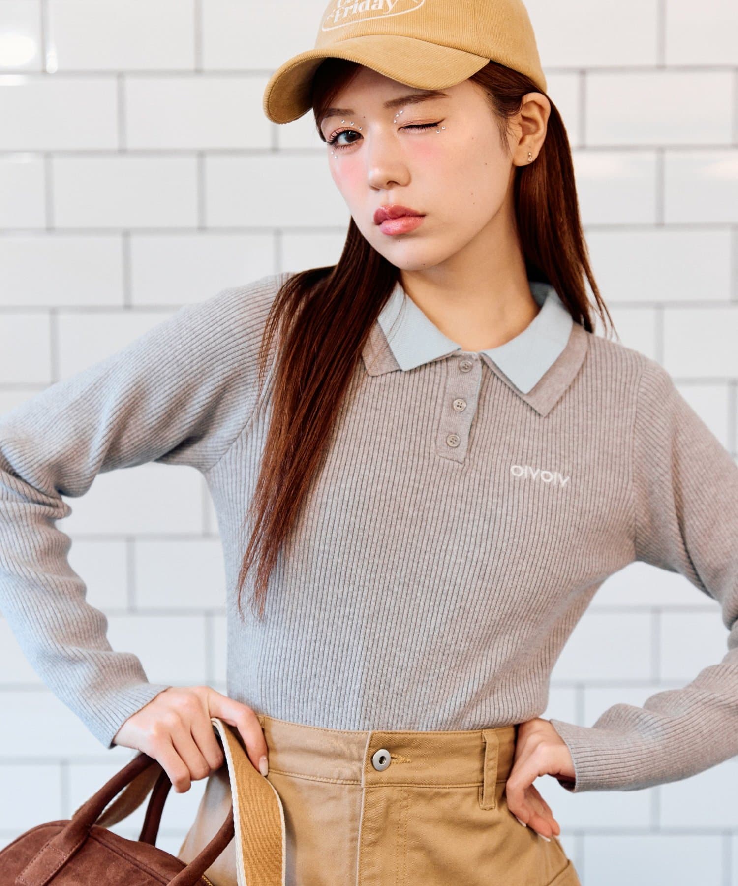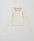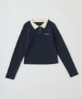 ・胸元のロゴ刺繍と衿の配色カラーがあることでシンプルすぎずコーデのポイントになります。