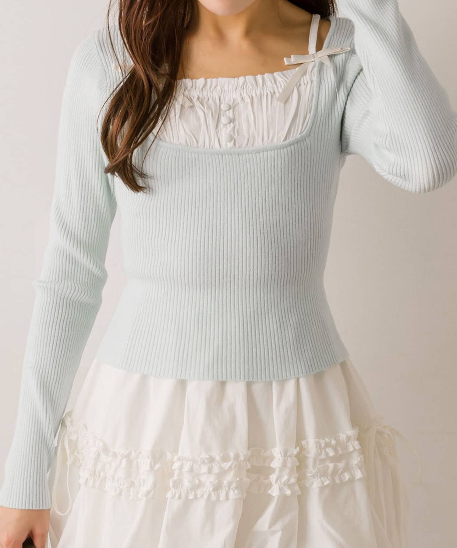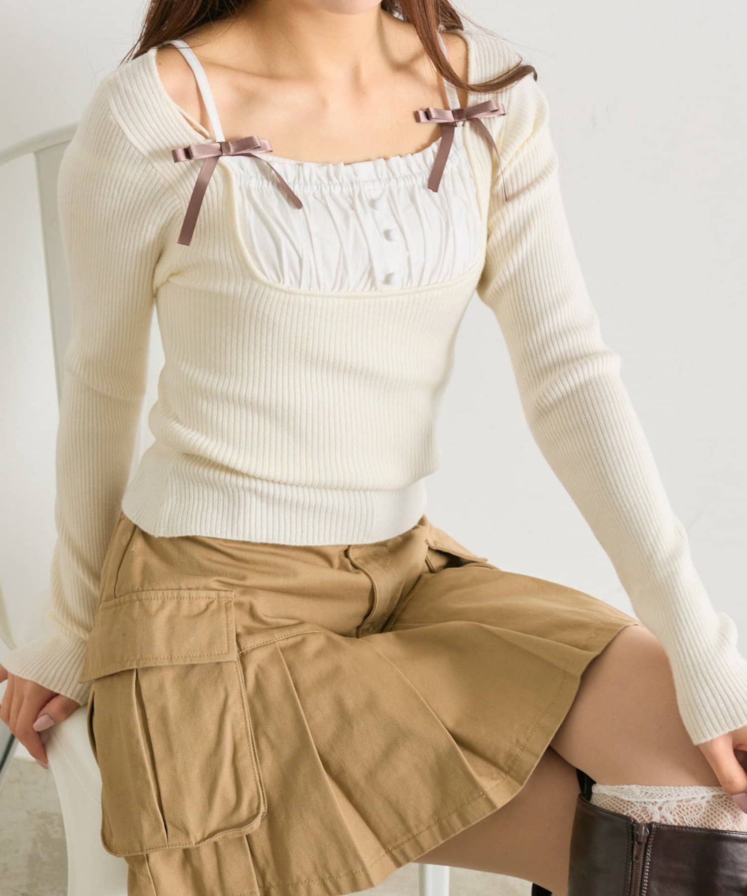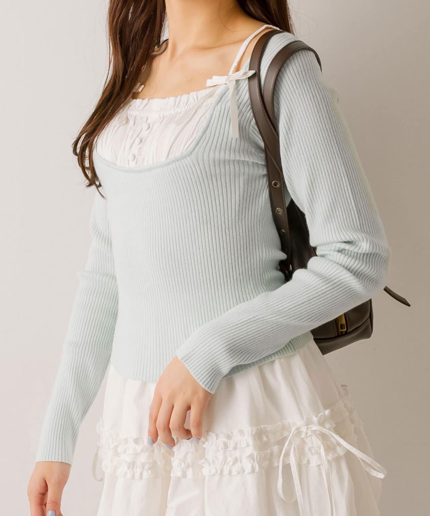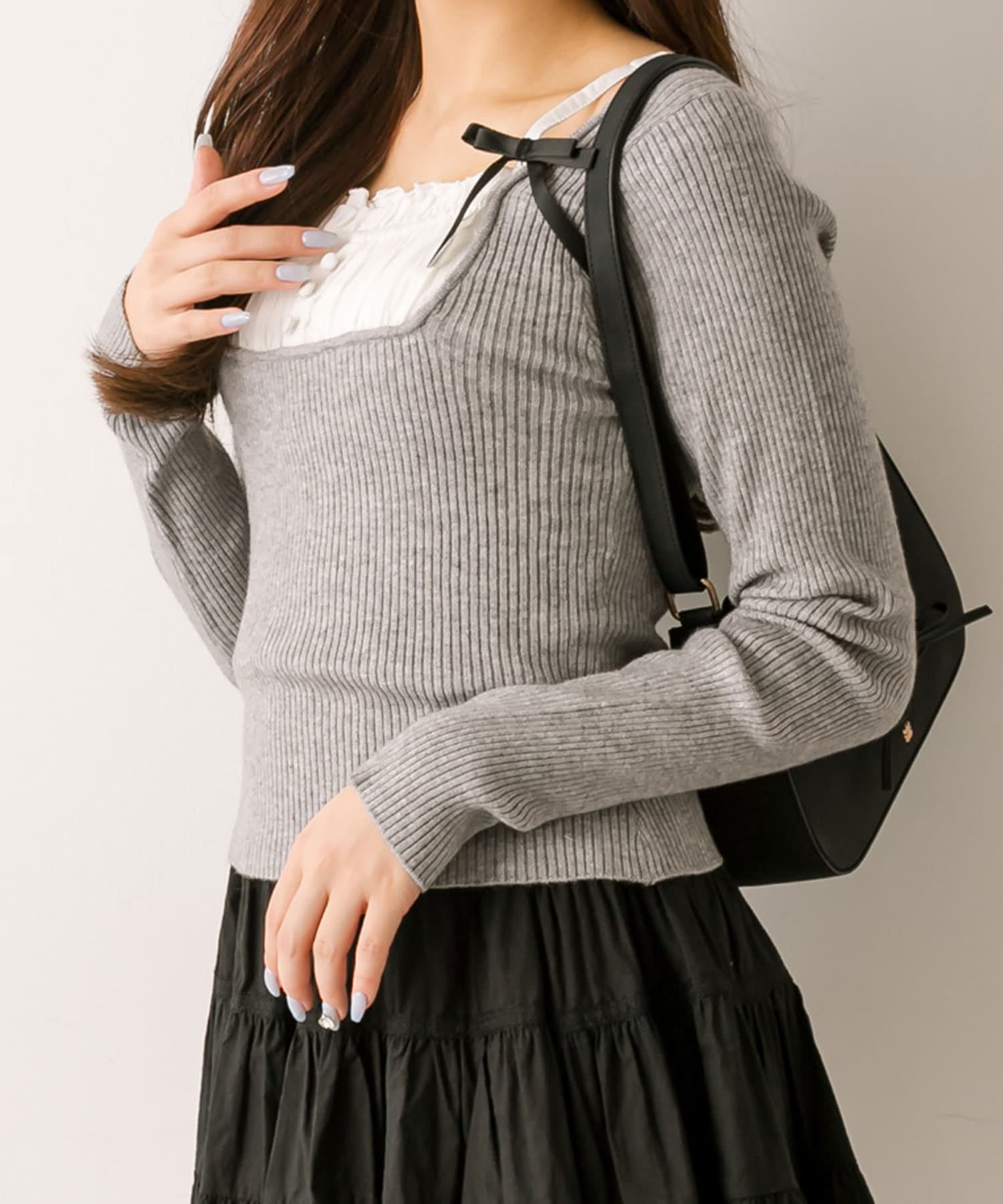 ・フリルインナーをレイヤードしているようなデザインがかわいいニット。