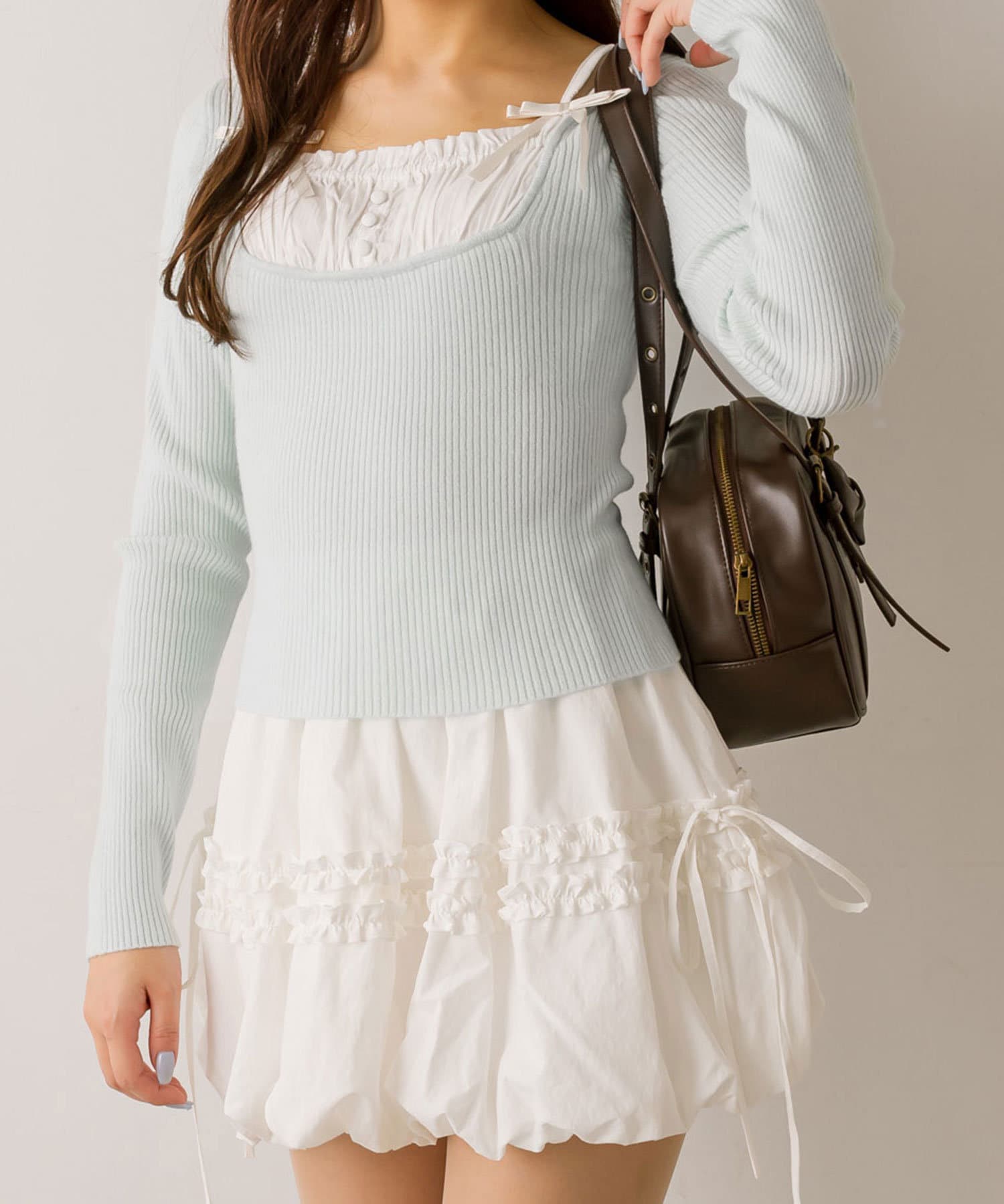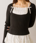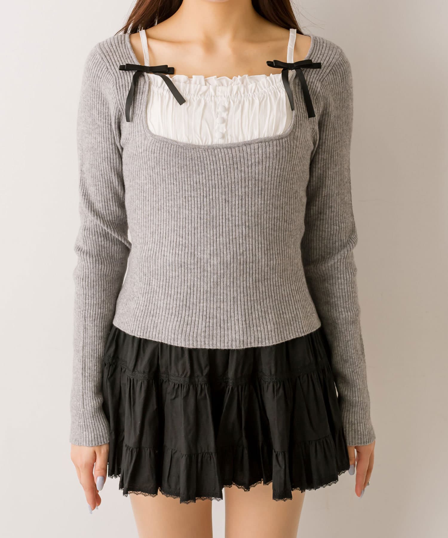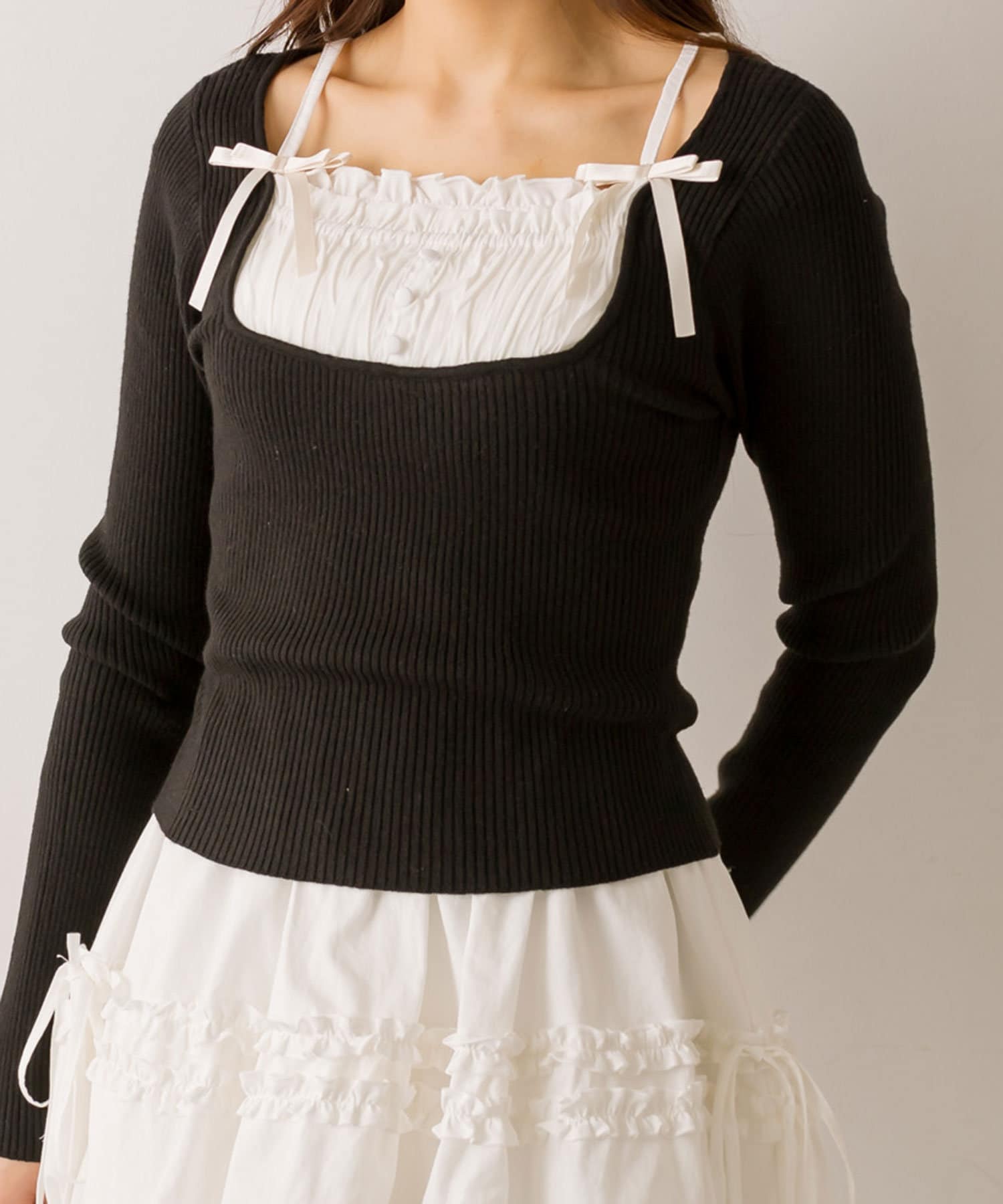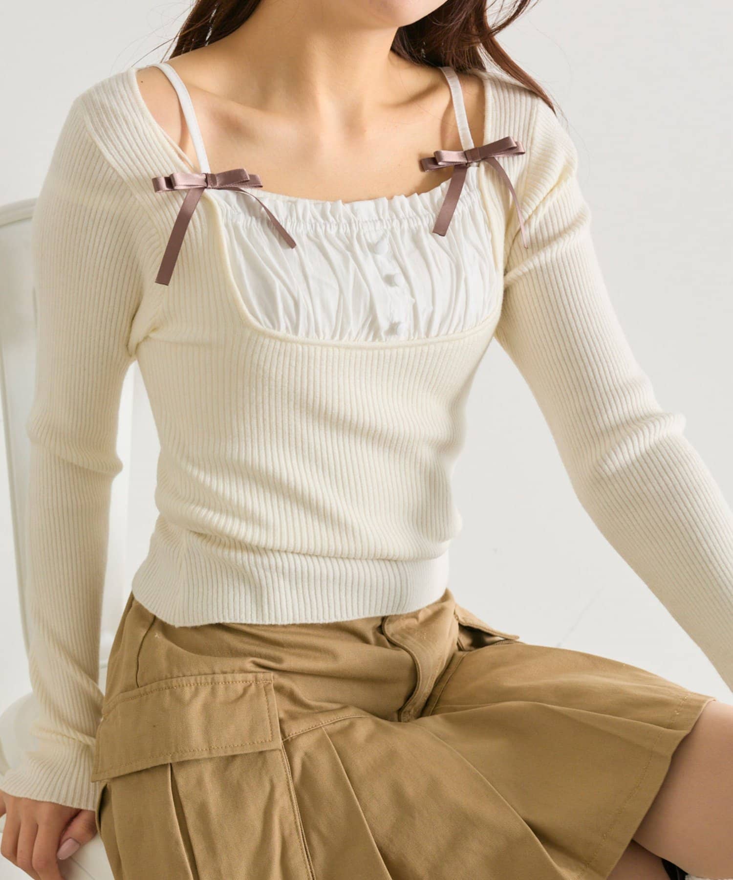 ・フリルインナーをレイヤードしているようなデザインがかわいいニット。