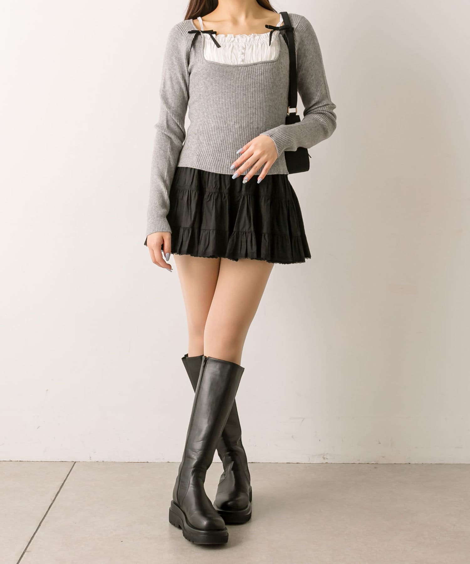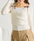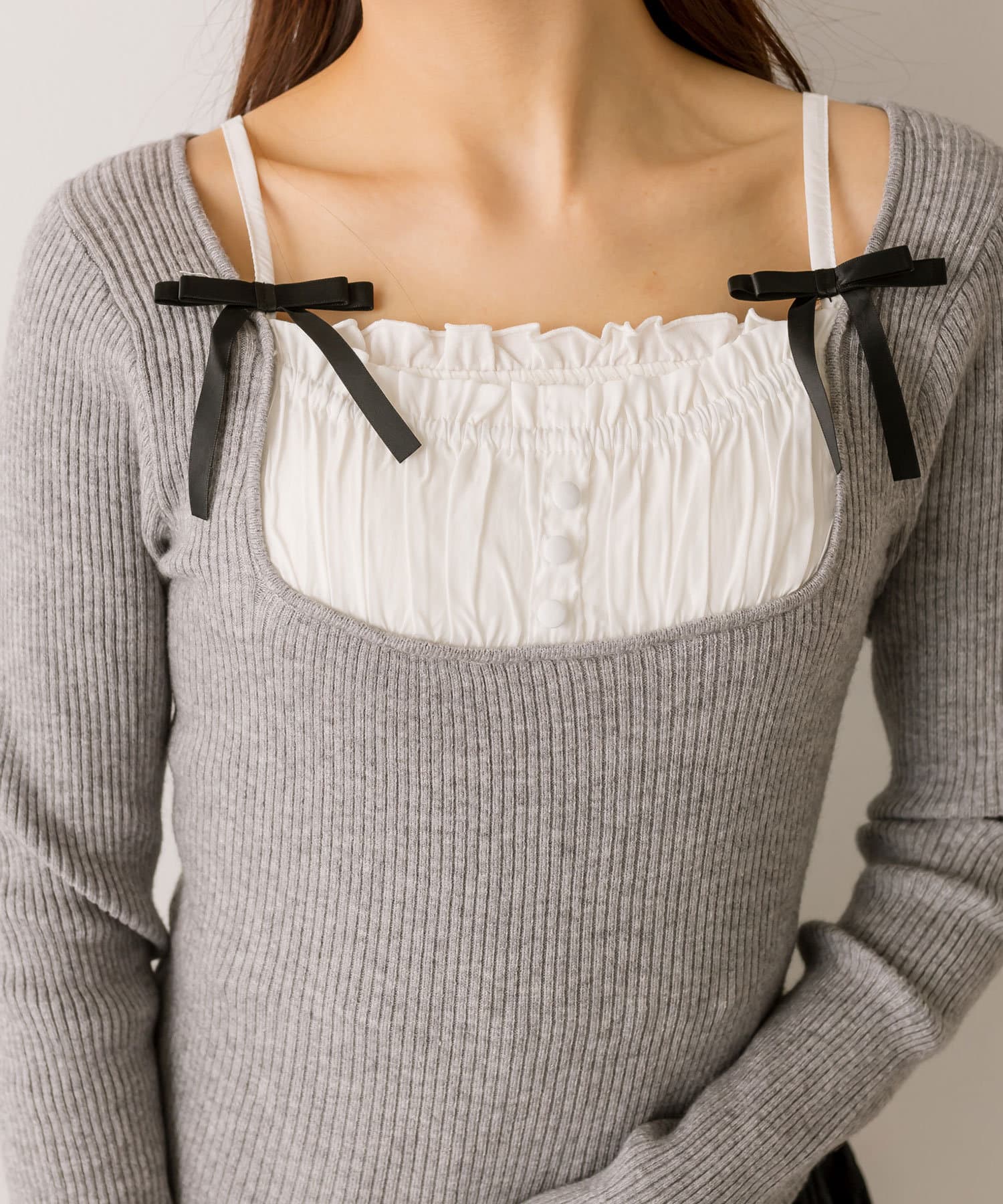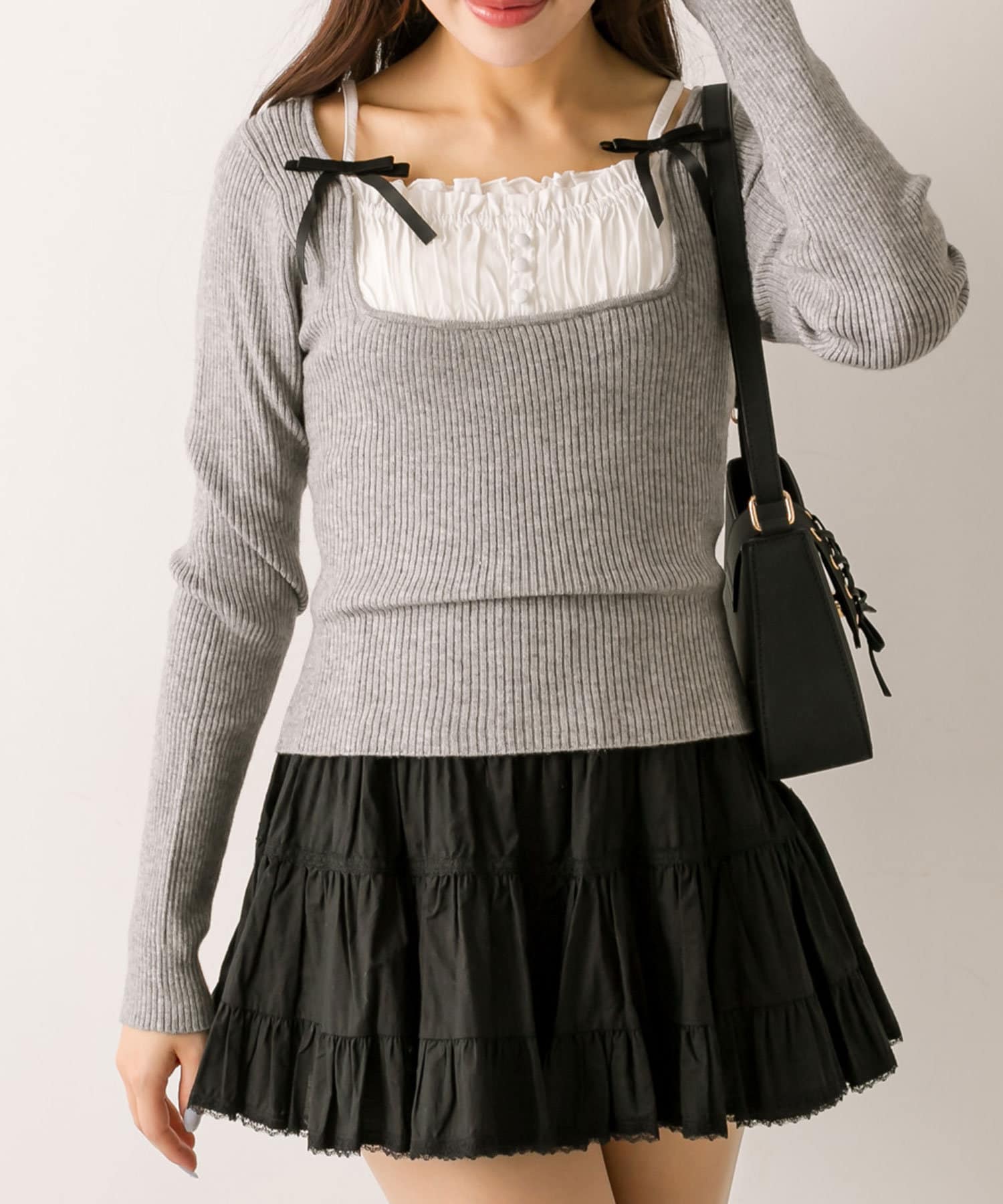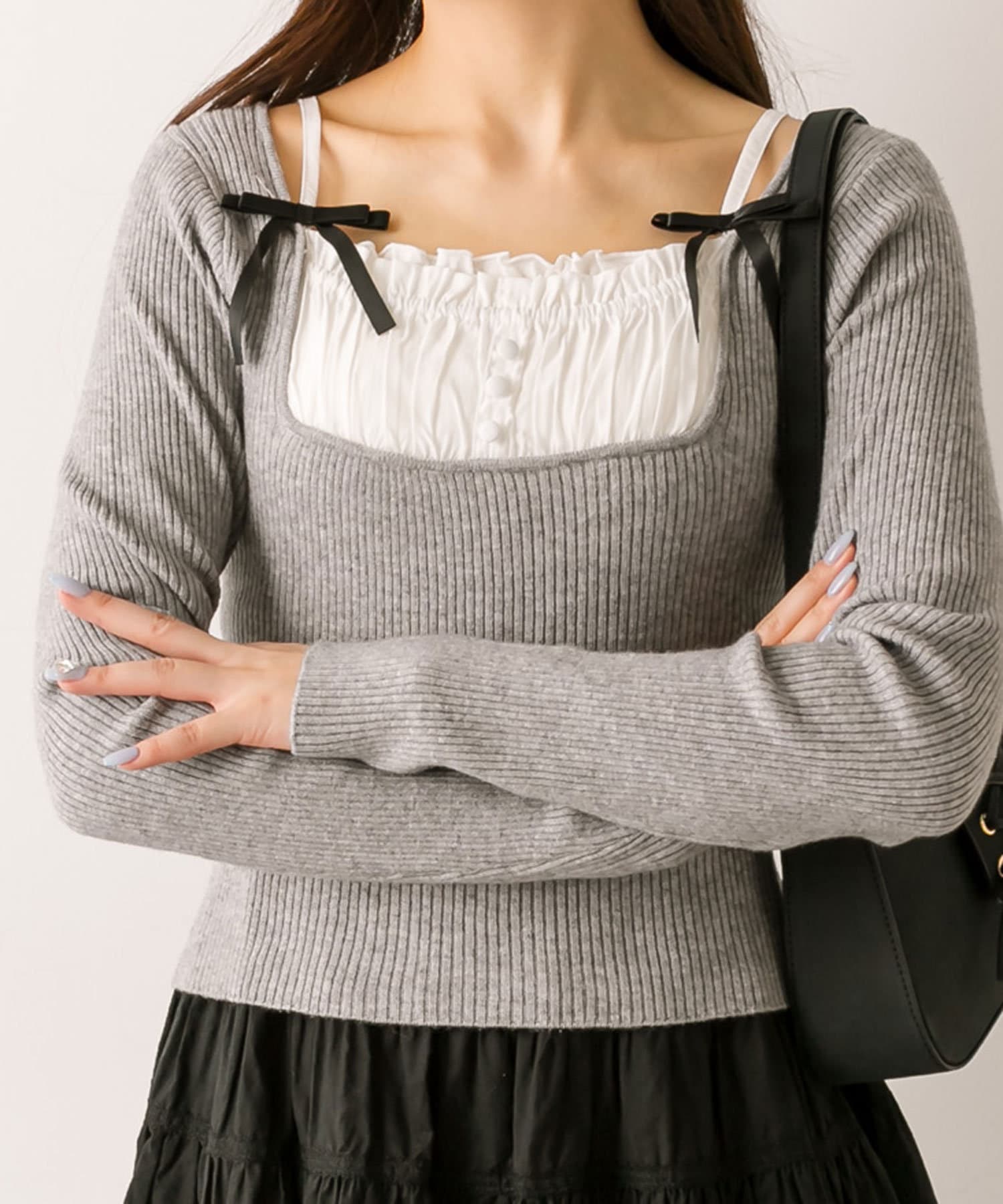 ・フリルインナーをレイヤードしているようなデザインがかわいいニット。