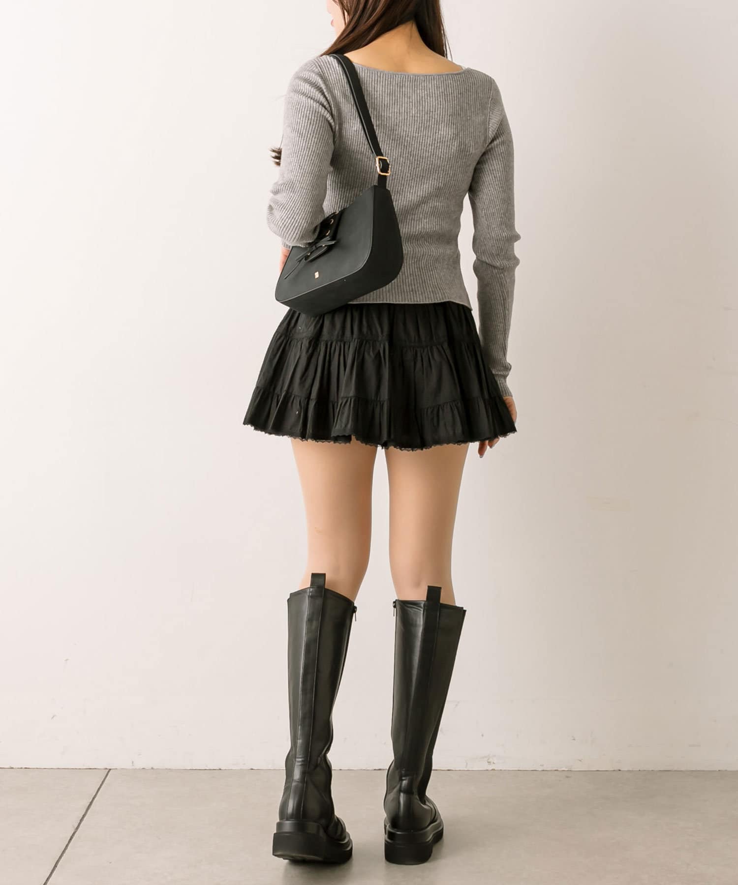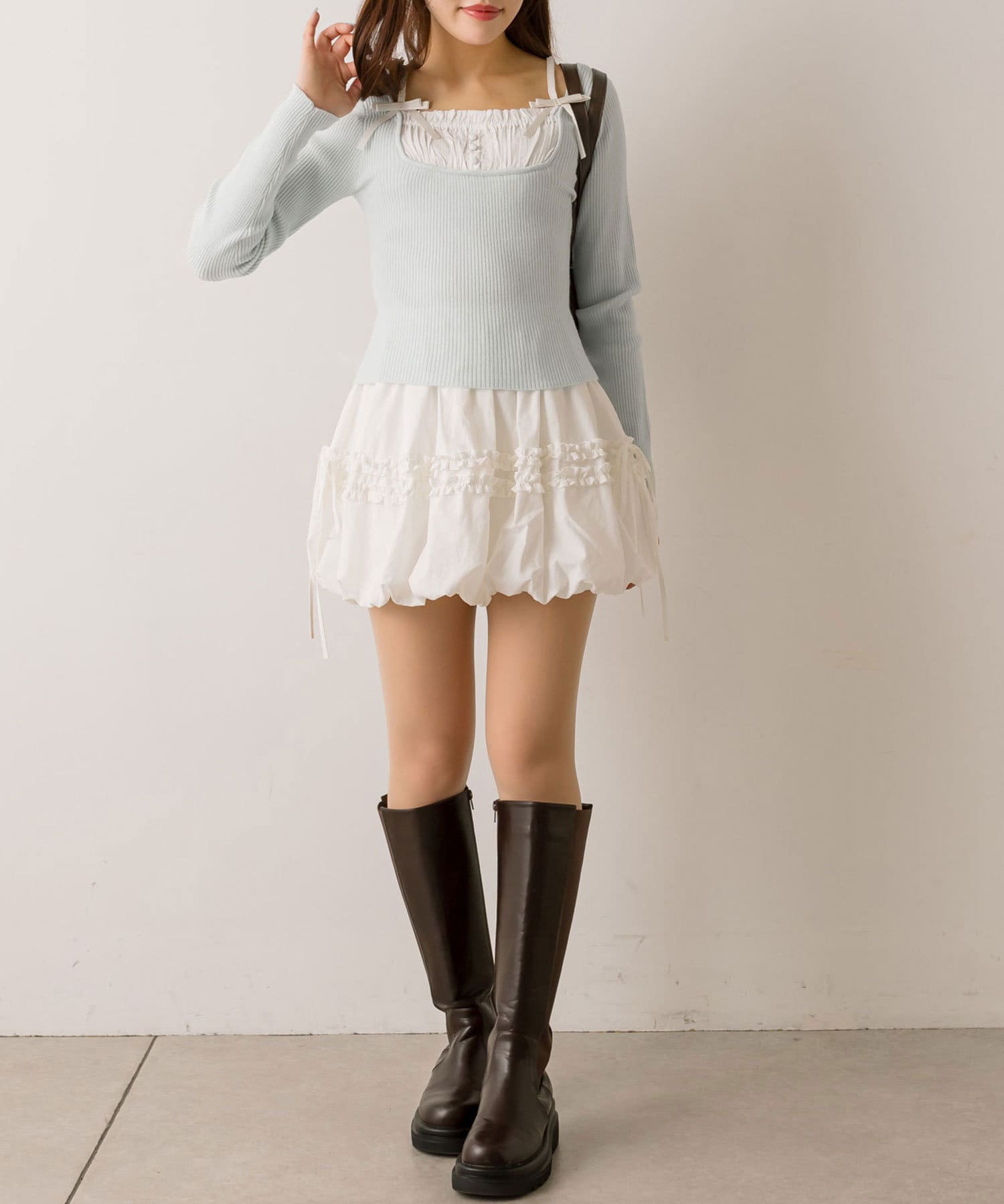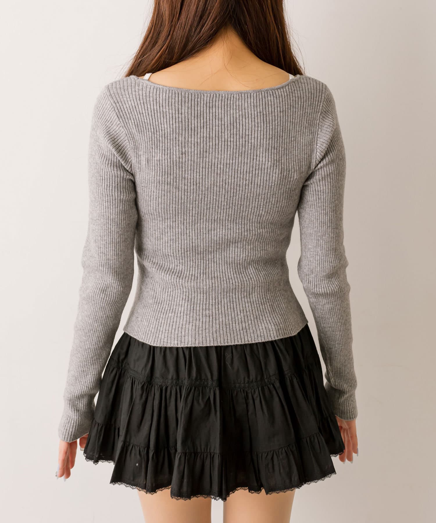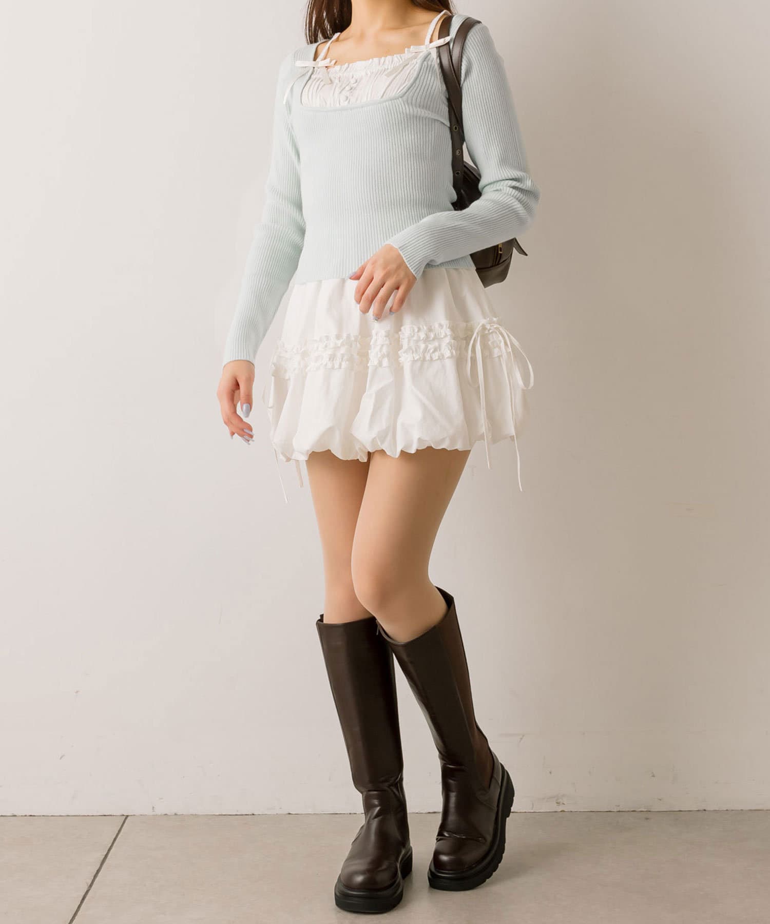 ・フリルインナーをレイヤードしているようなデザインがかわいいニット。