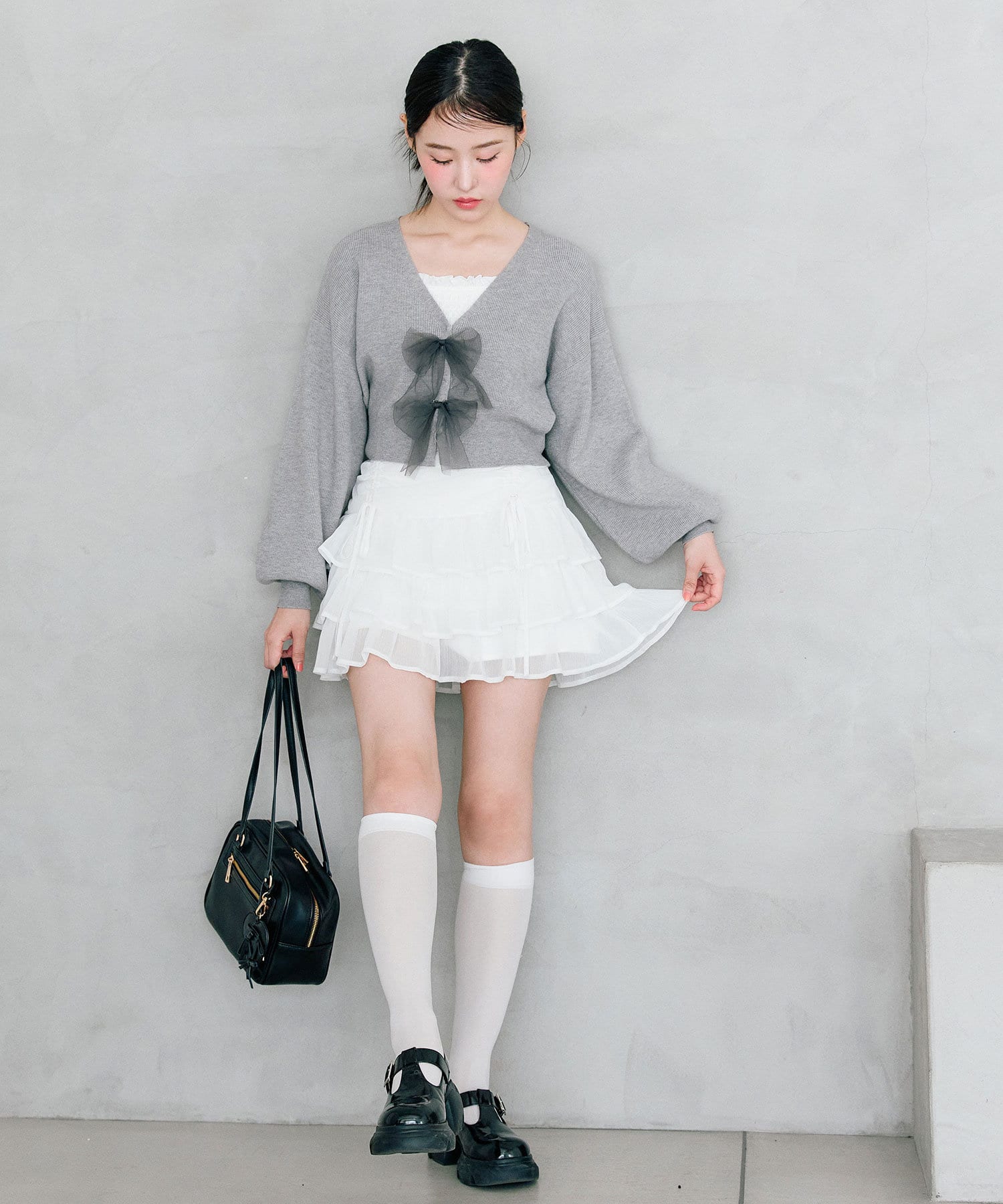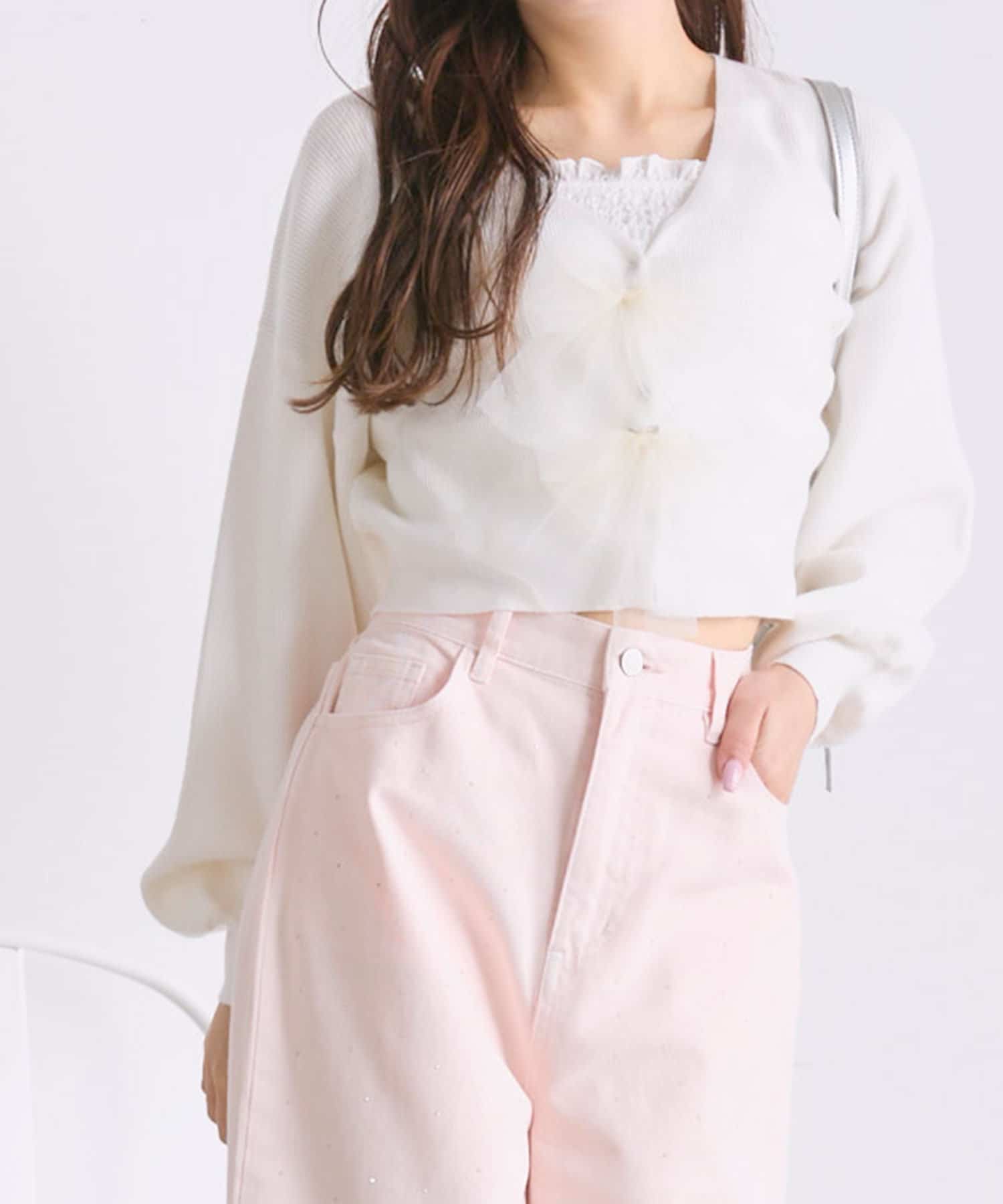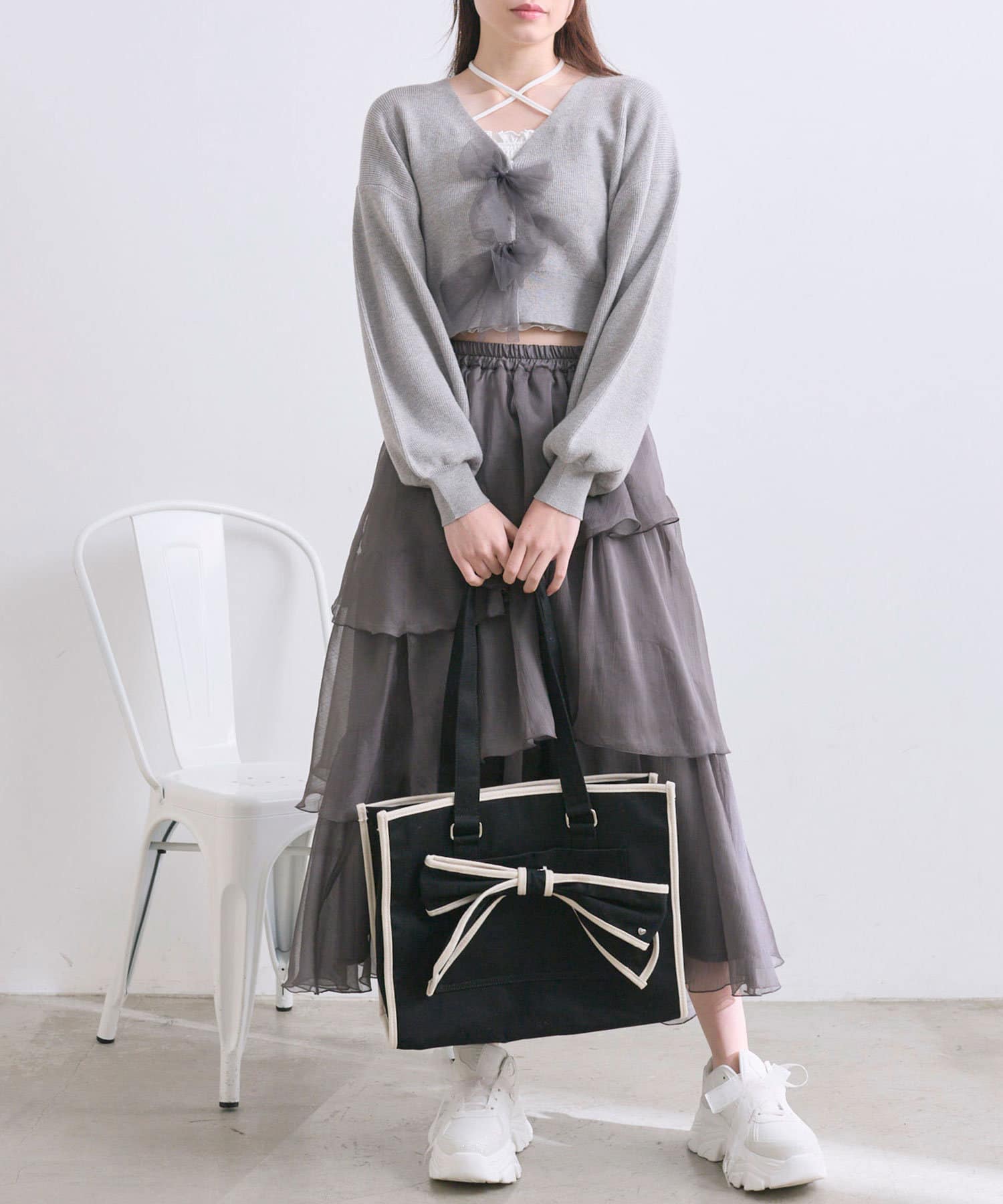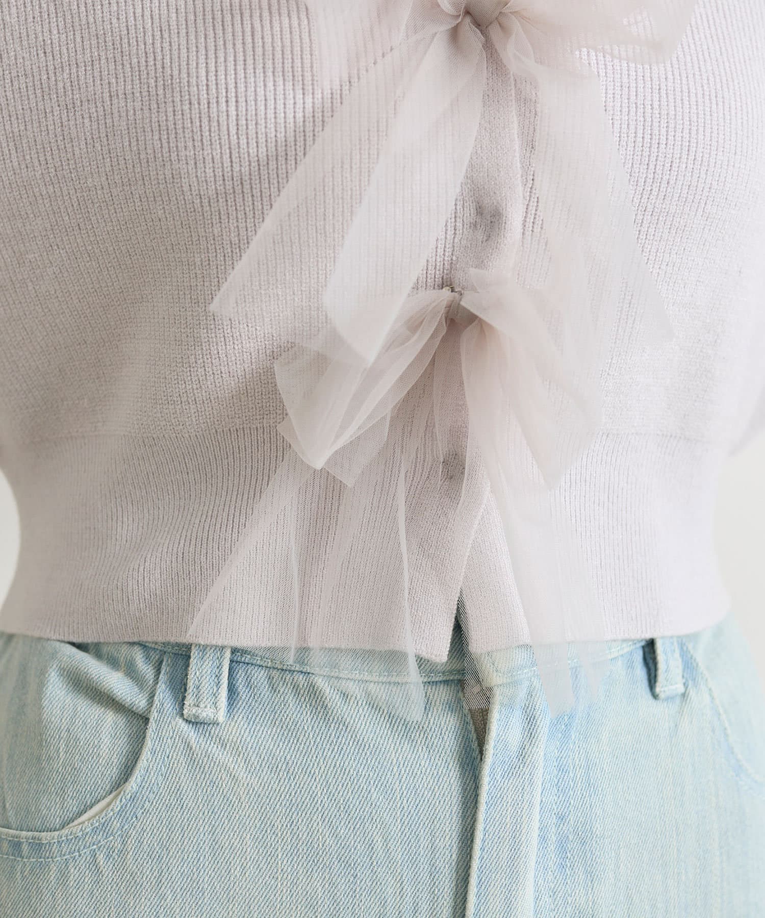 ・チュールのリボンがコーデに甘さと華やかさをプラスします。