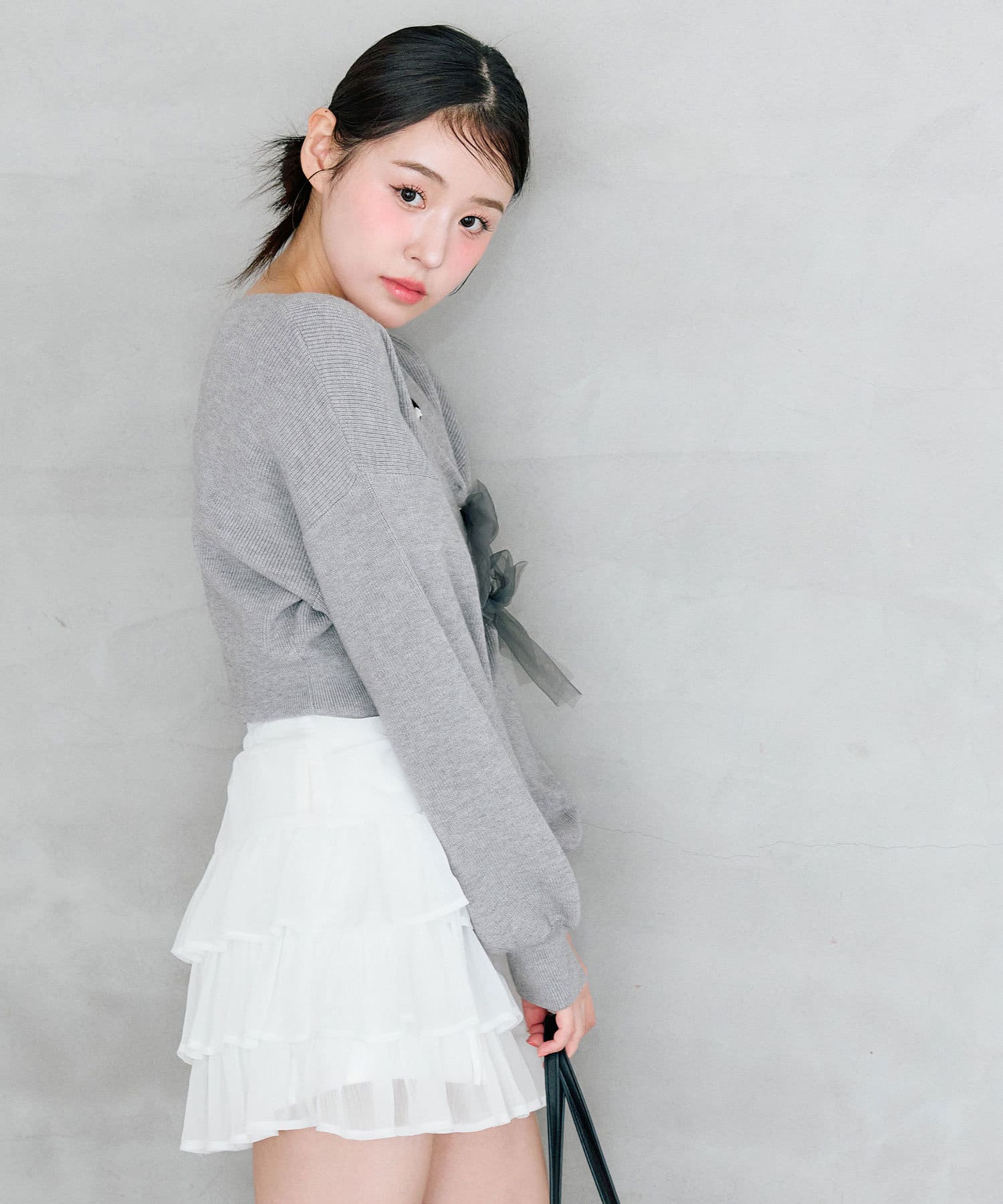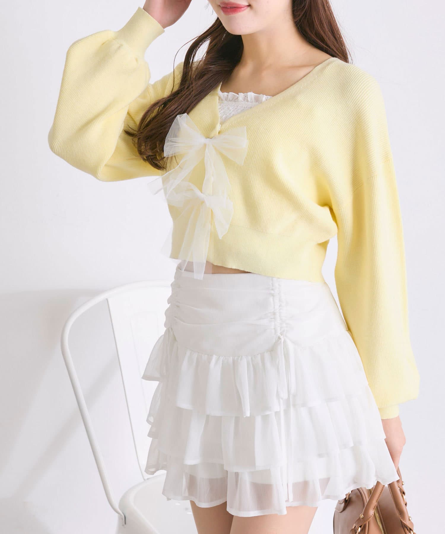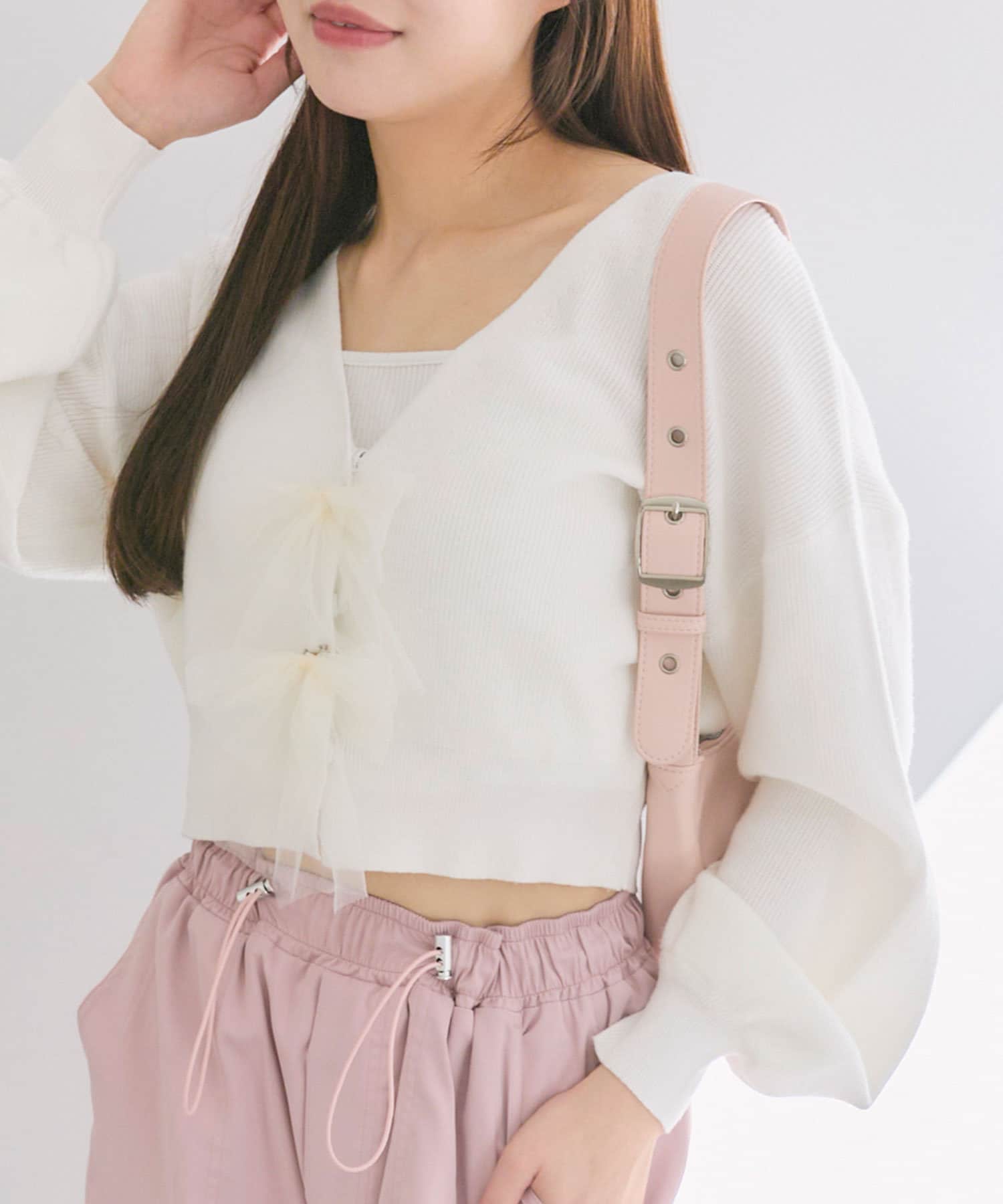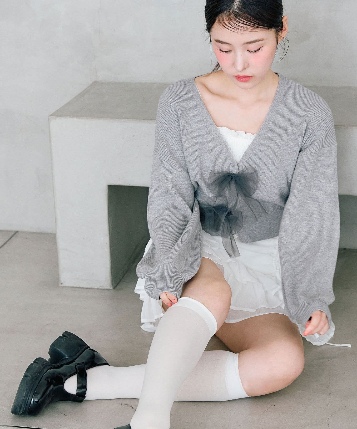 ・チュールのリボンがコーデに甘さと華やかさをプラスします。