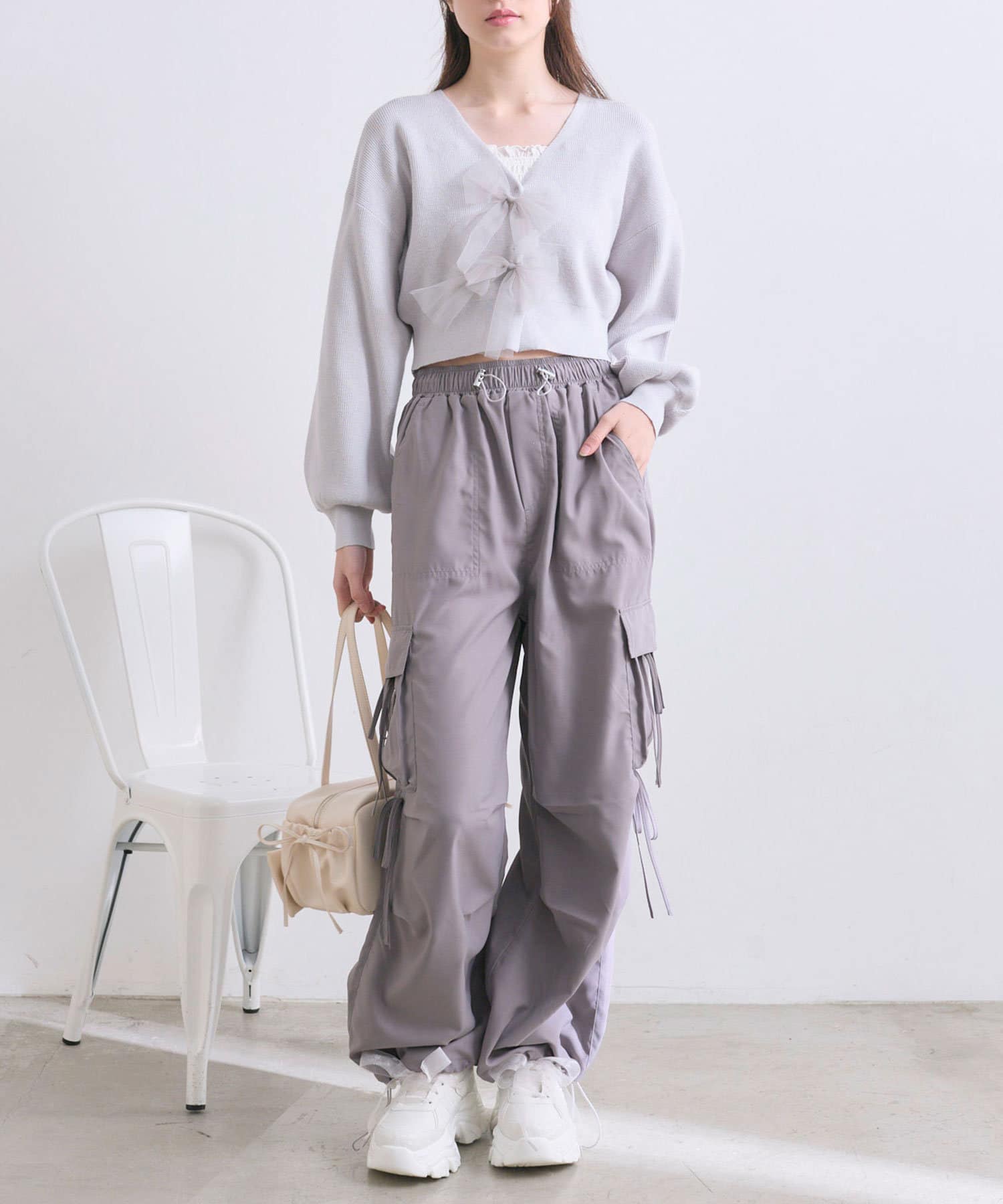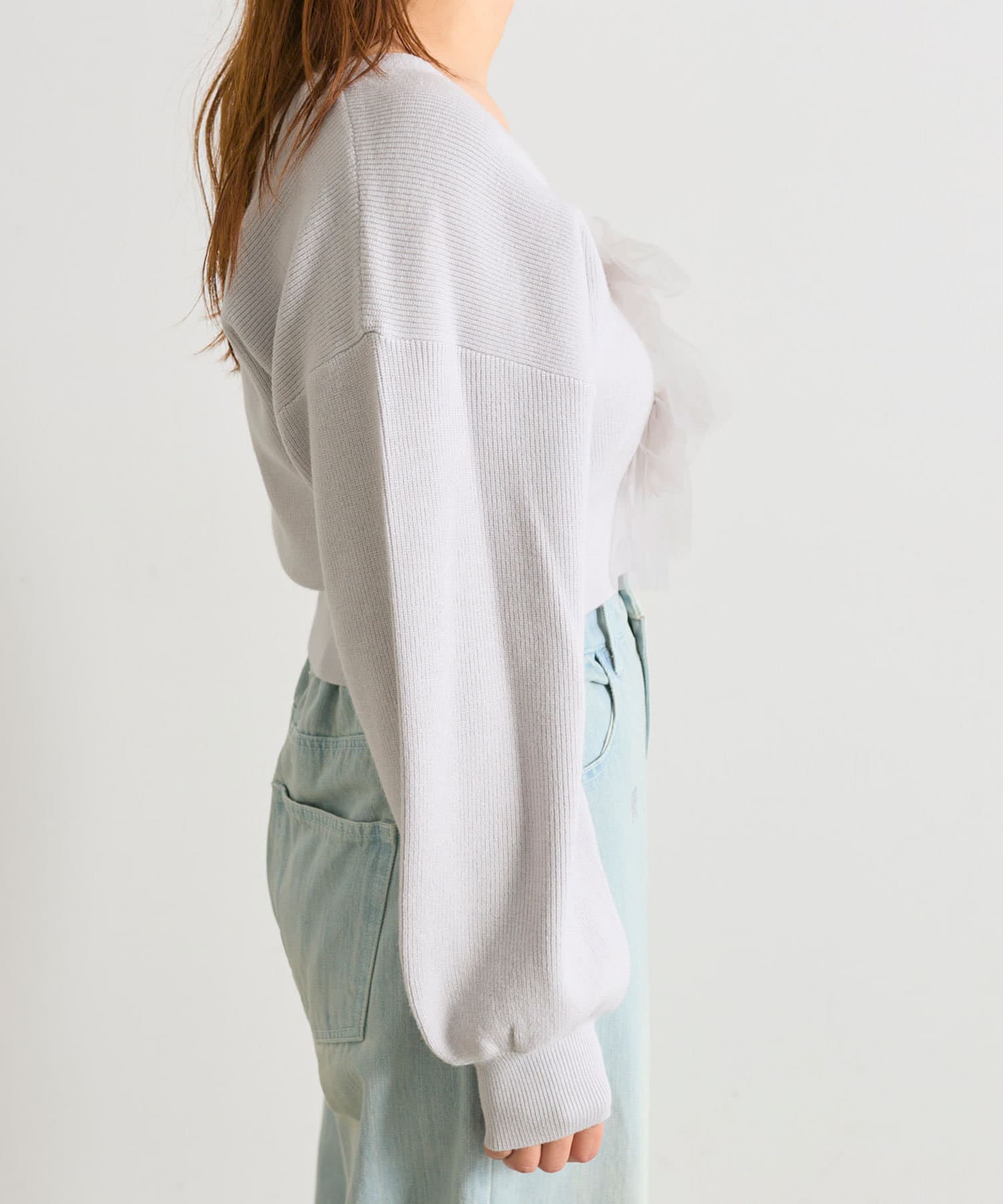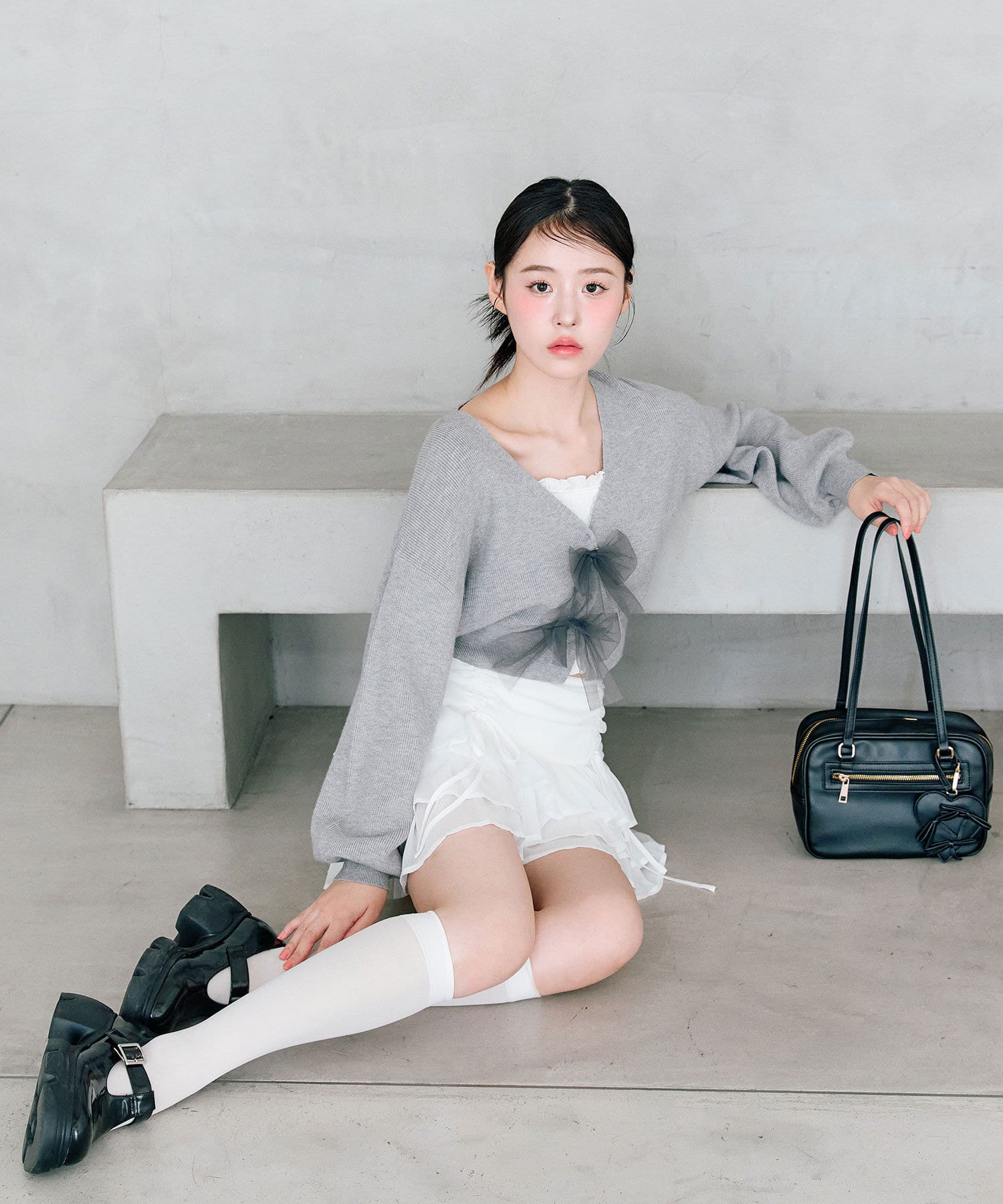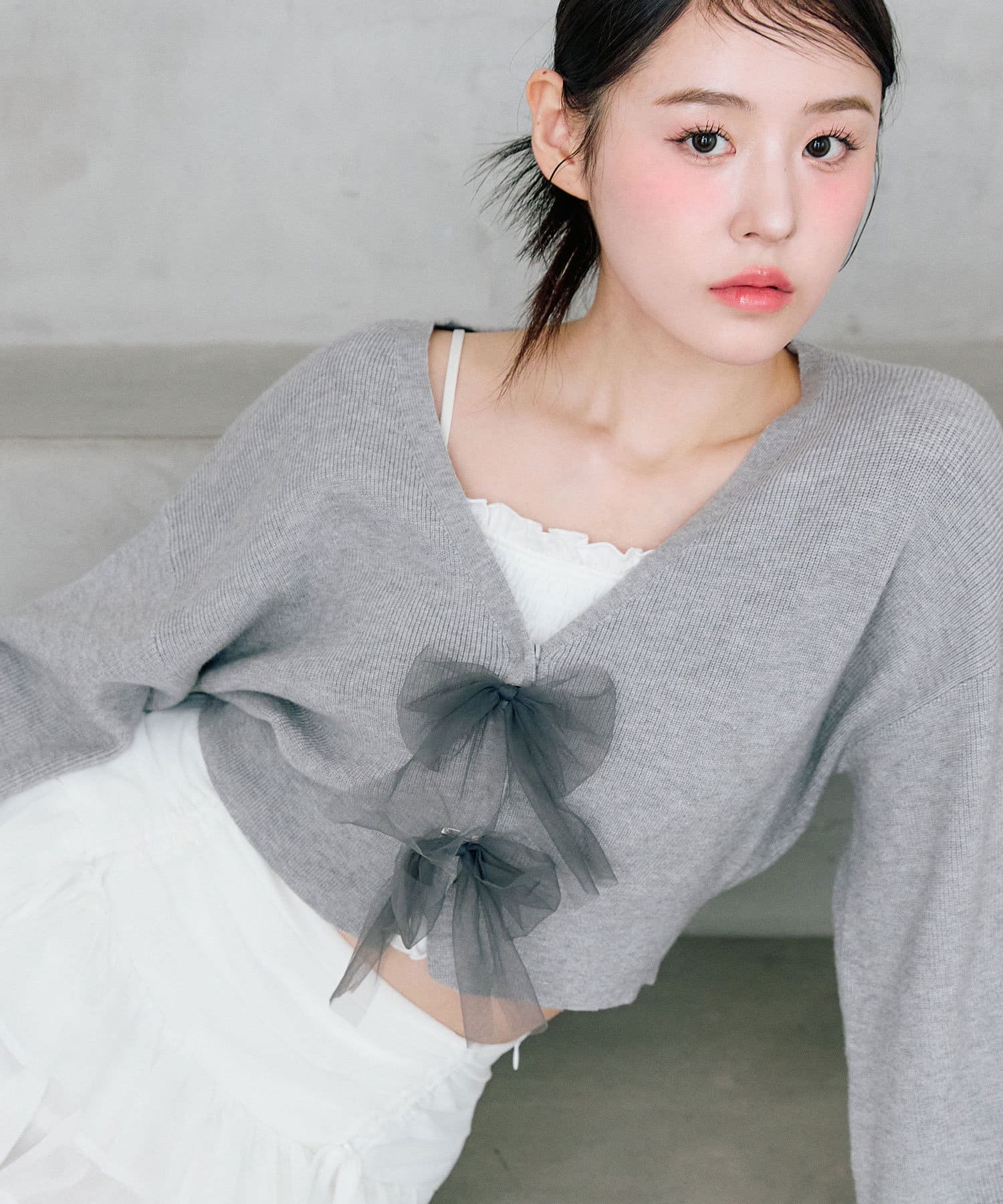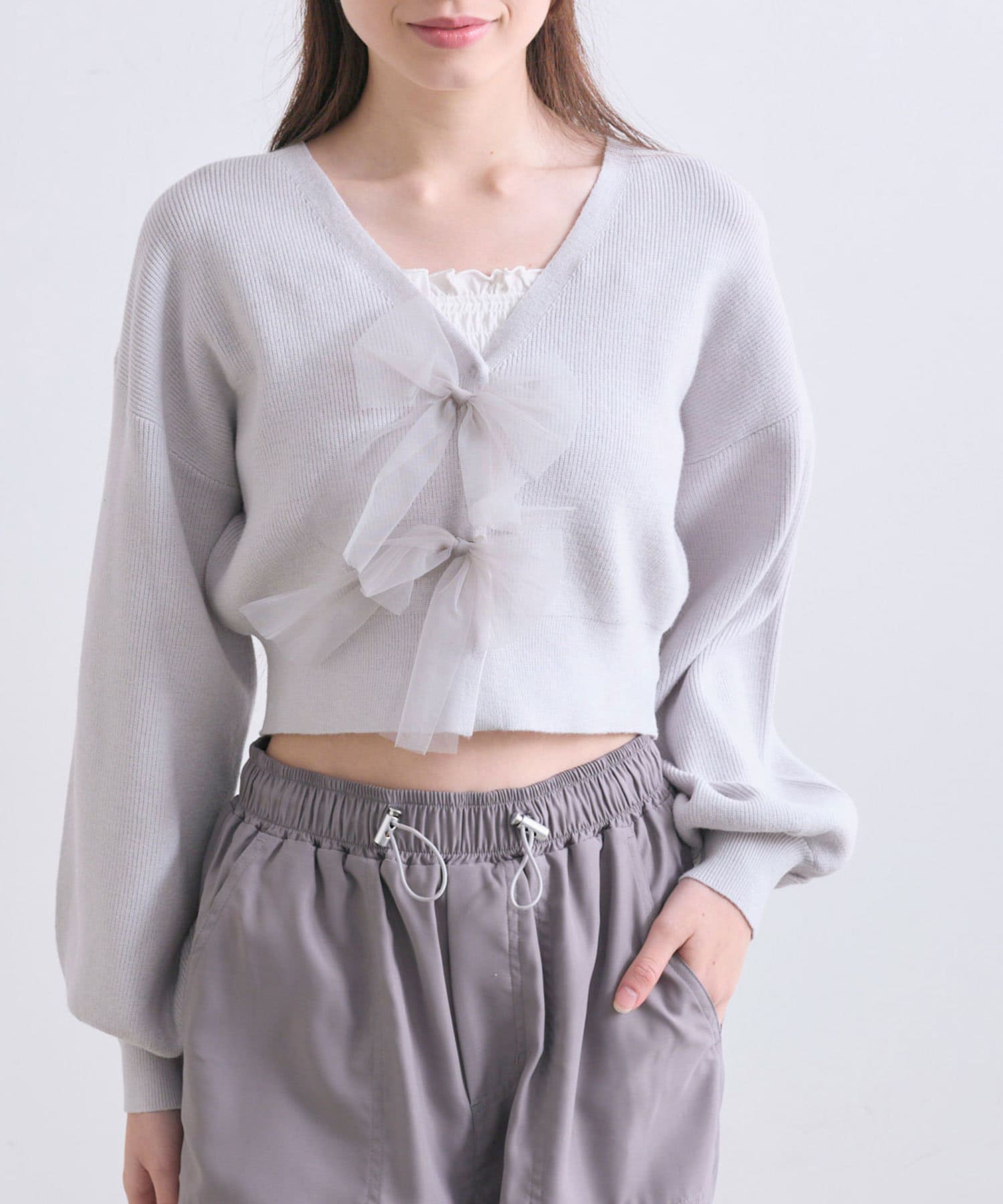 ・チュールのリボンがコーデに甘さと華やかさをプラスします。