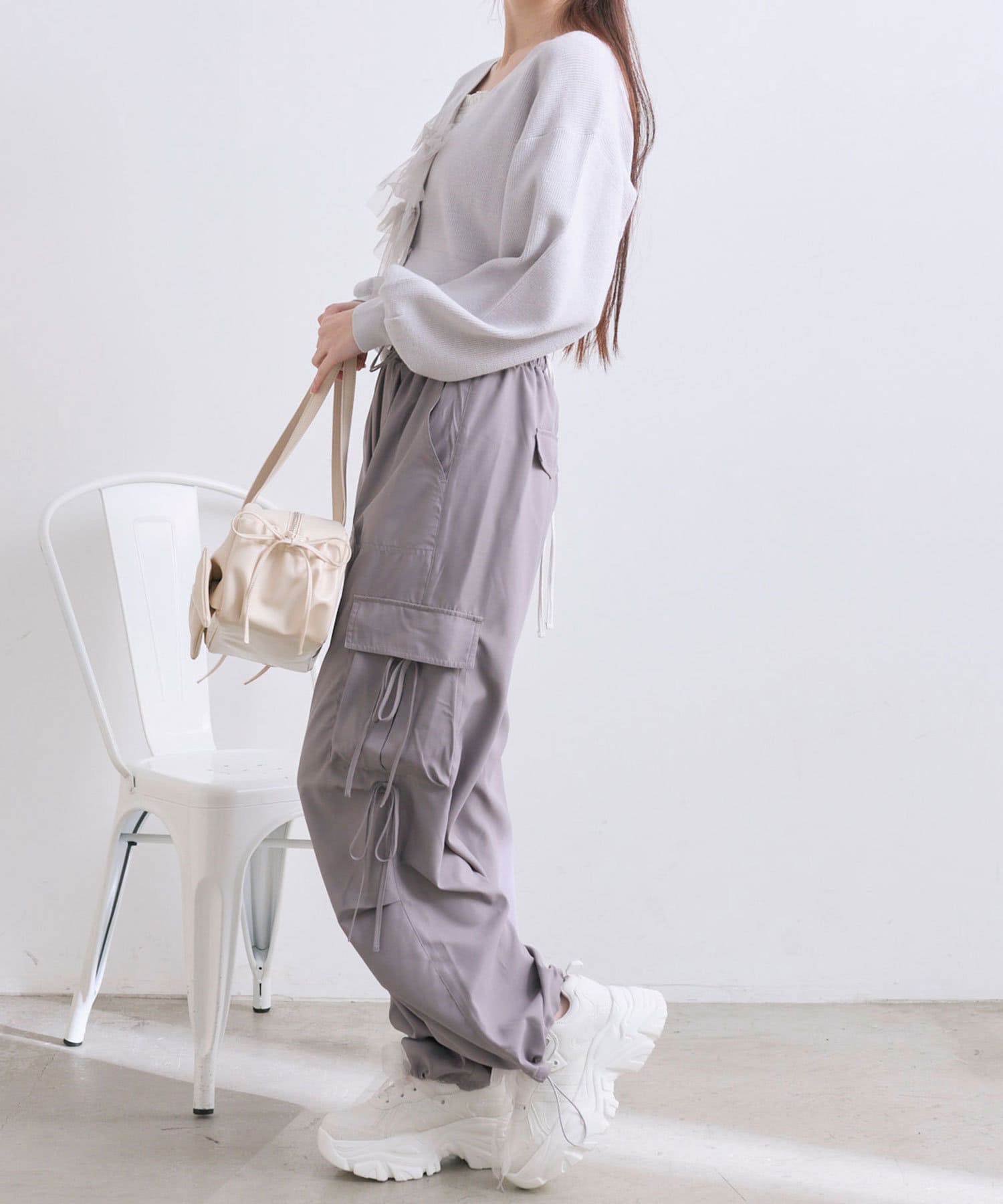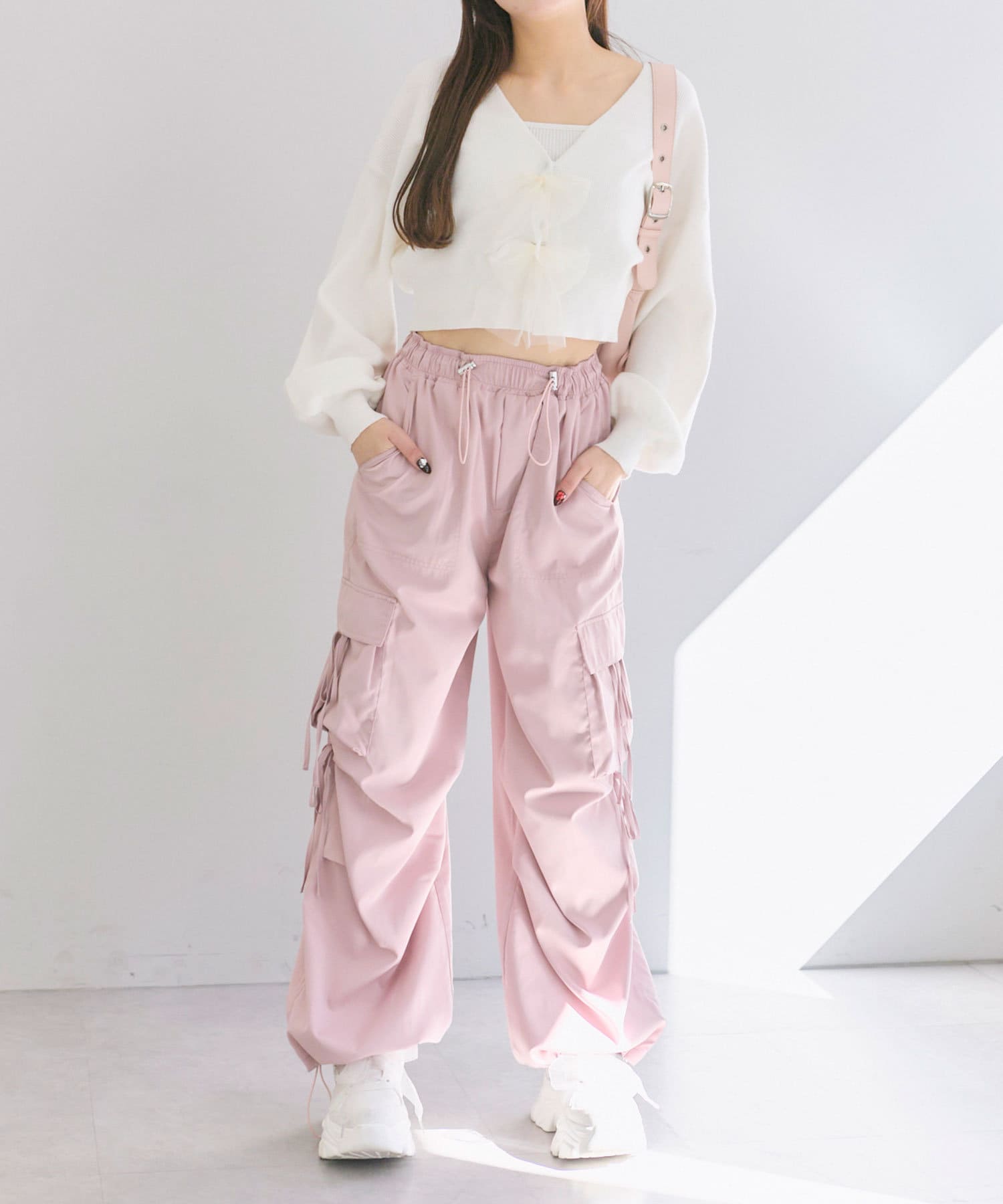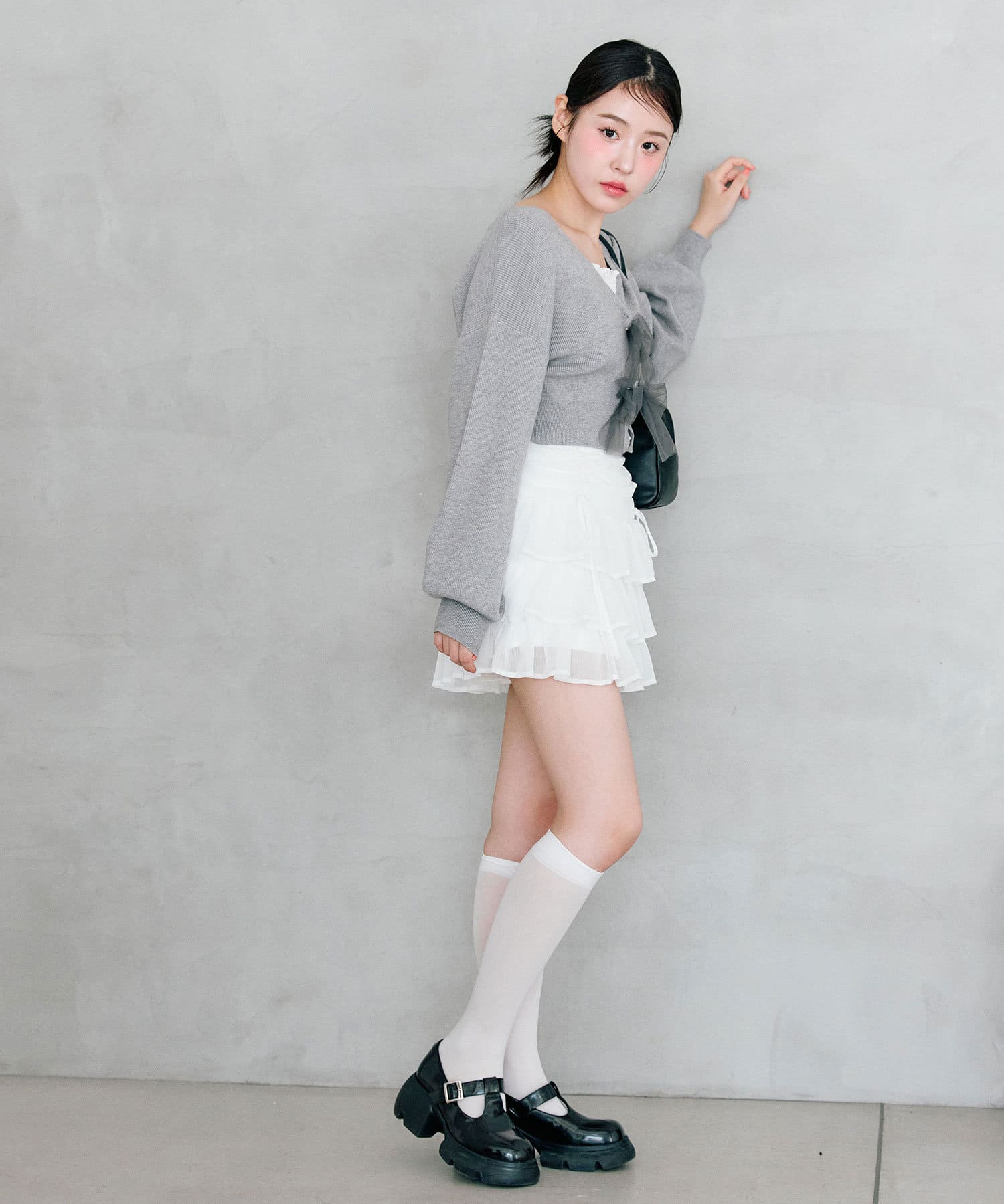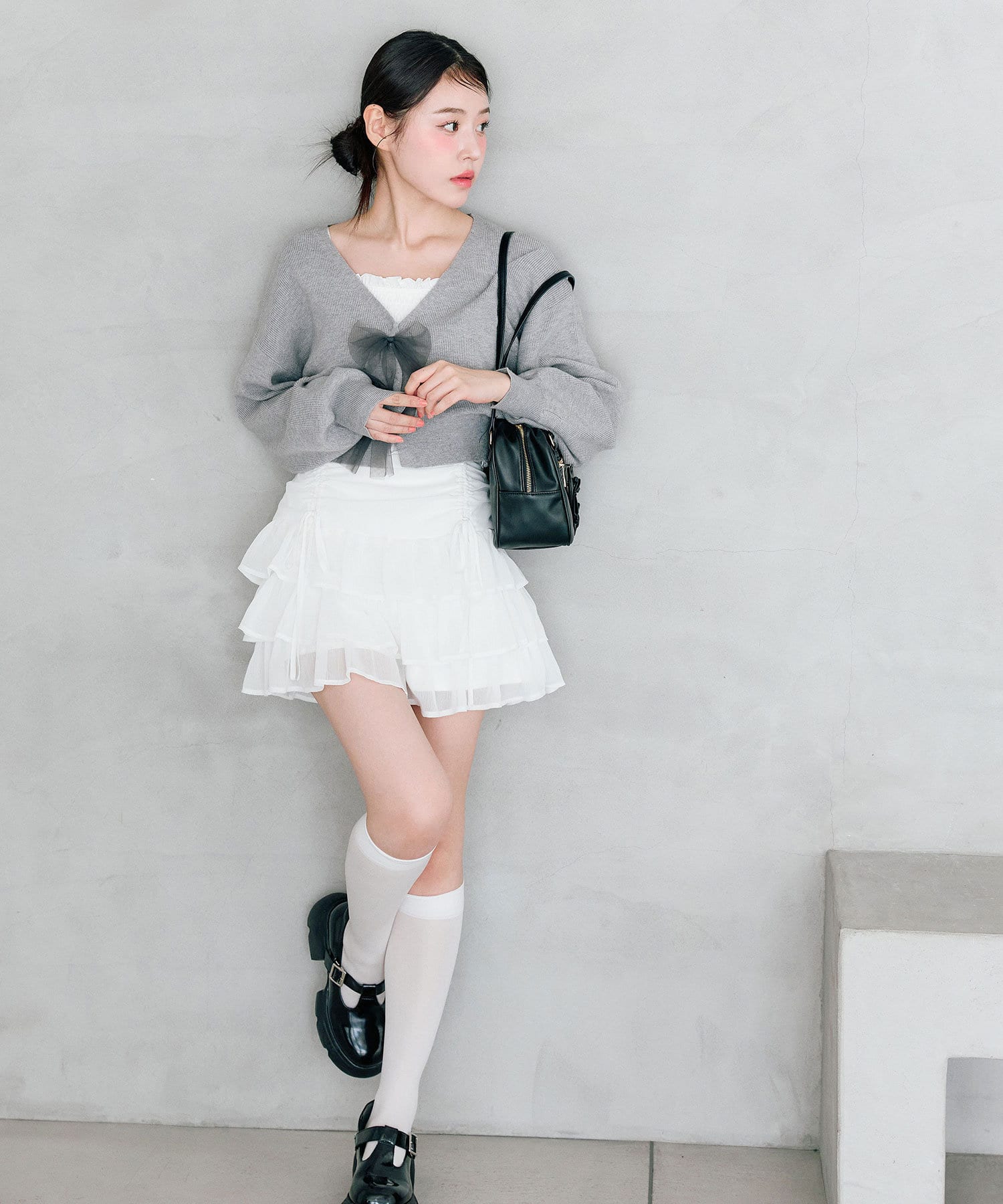 ・チュールのリボンがコーデに甘さと華やかさをプラスします。