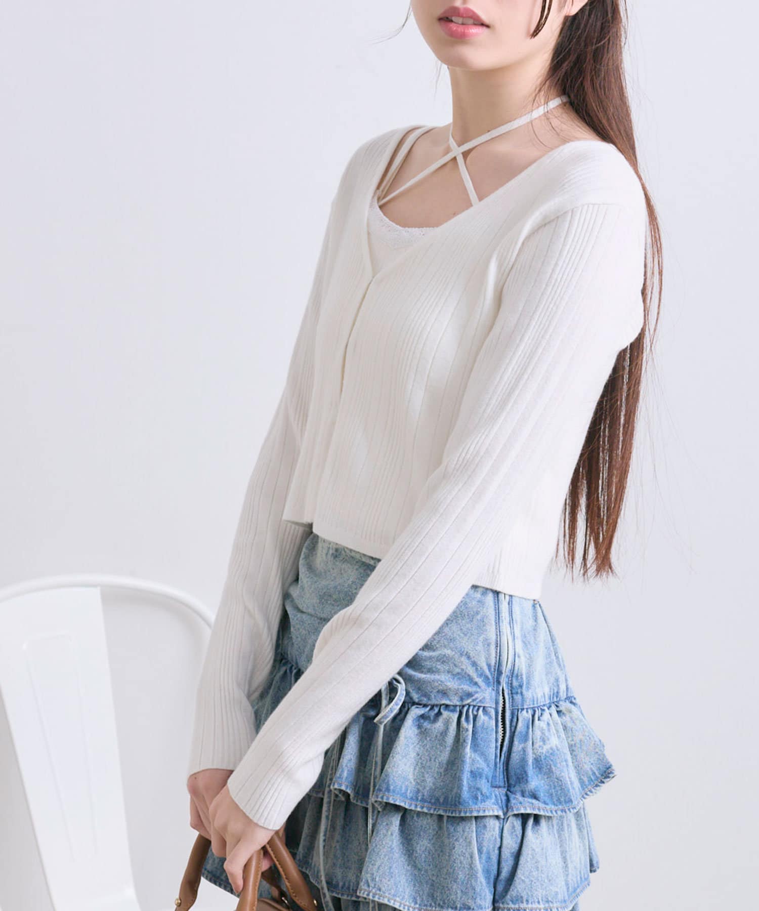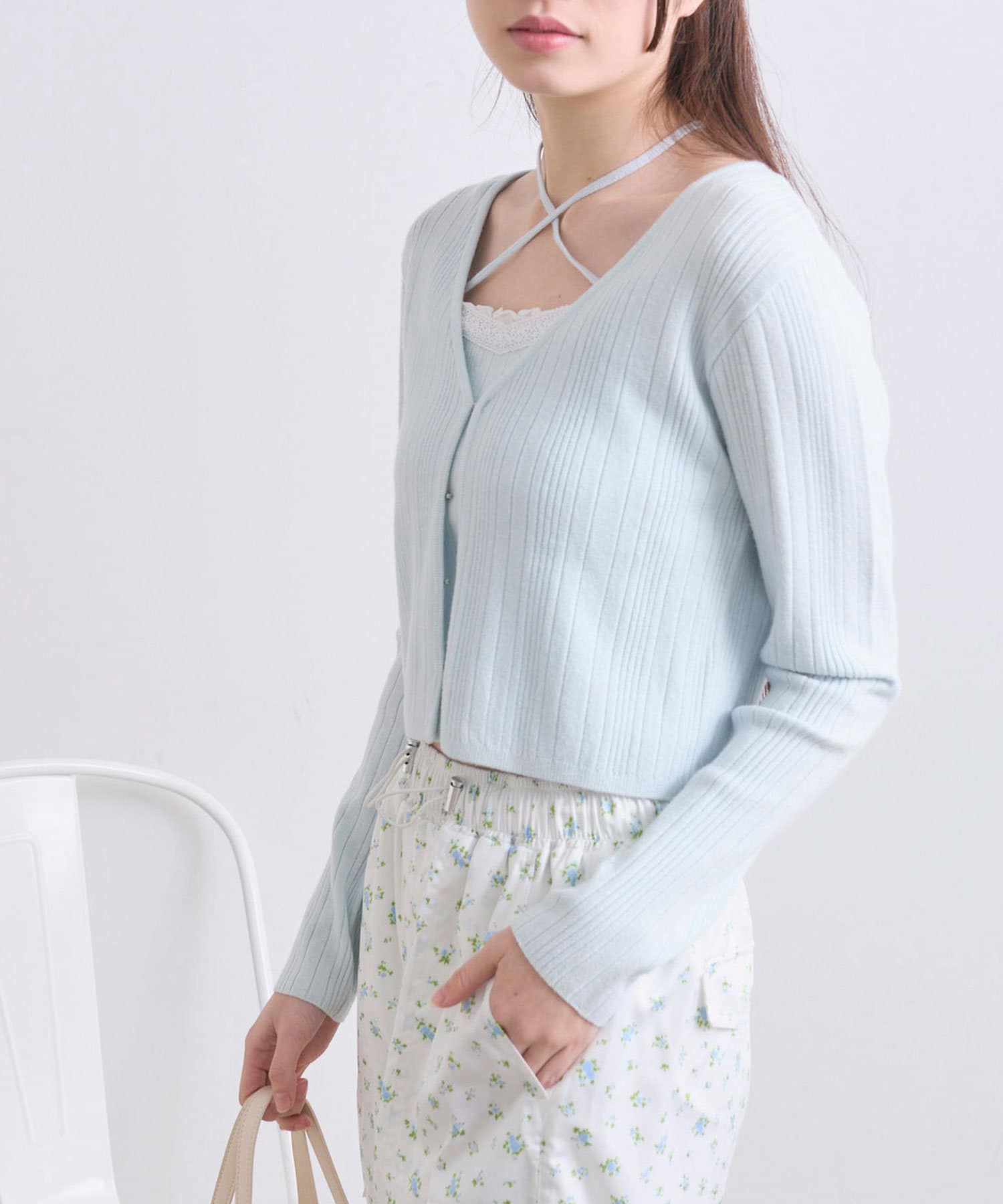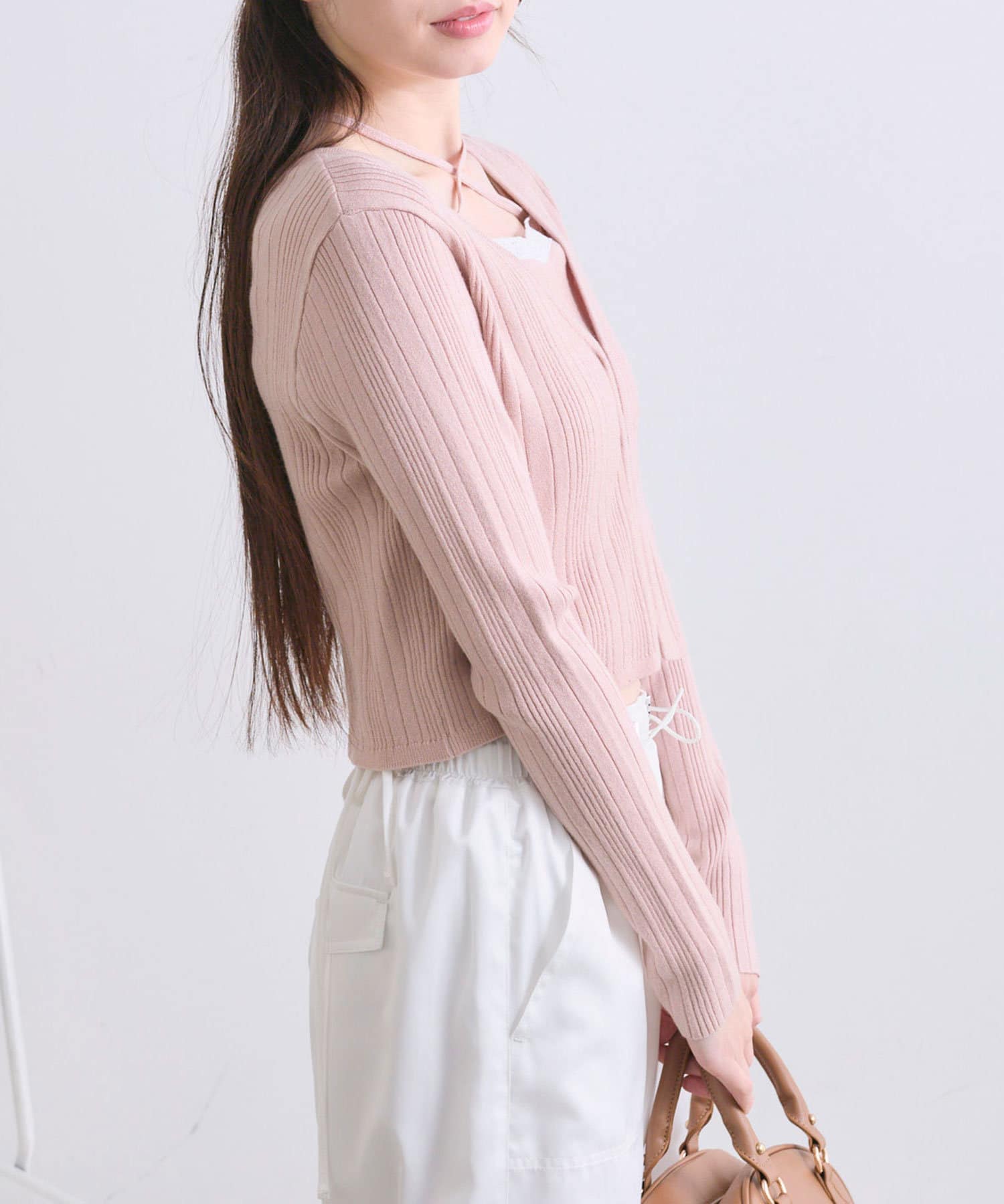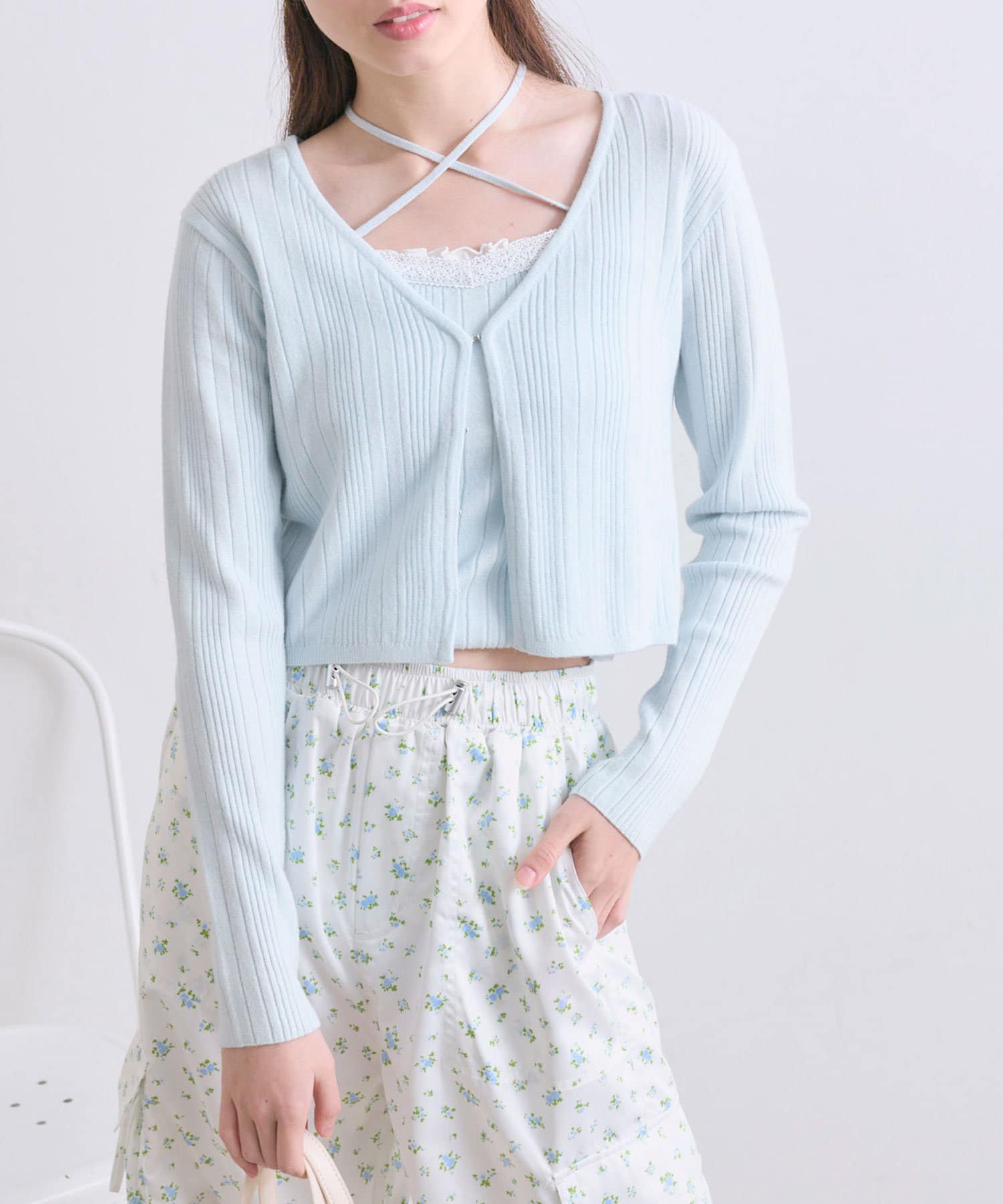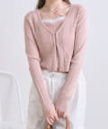 ・コンパクトなサイズ感のカーディガンとキャミインナーがセットになったアイテム。