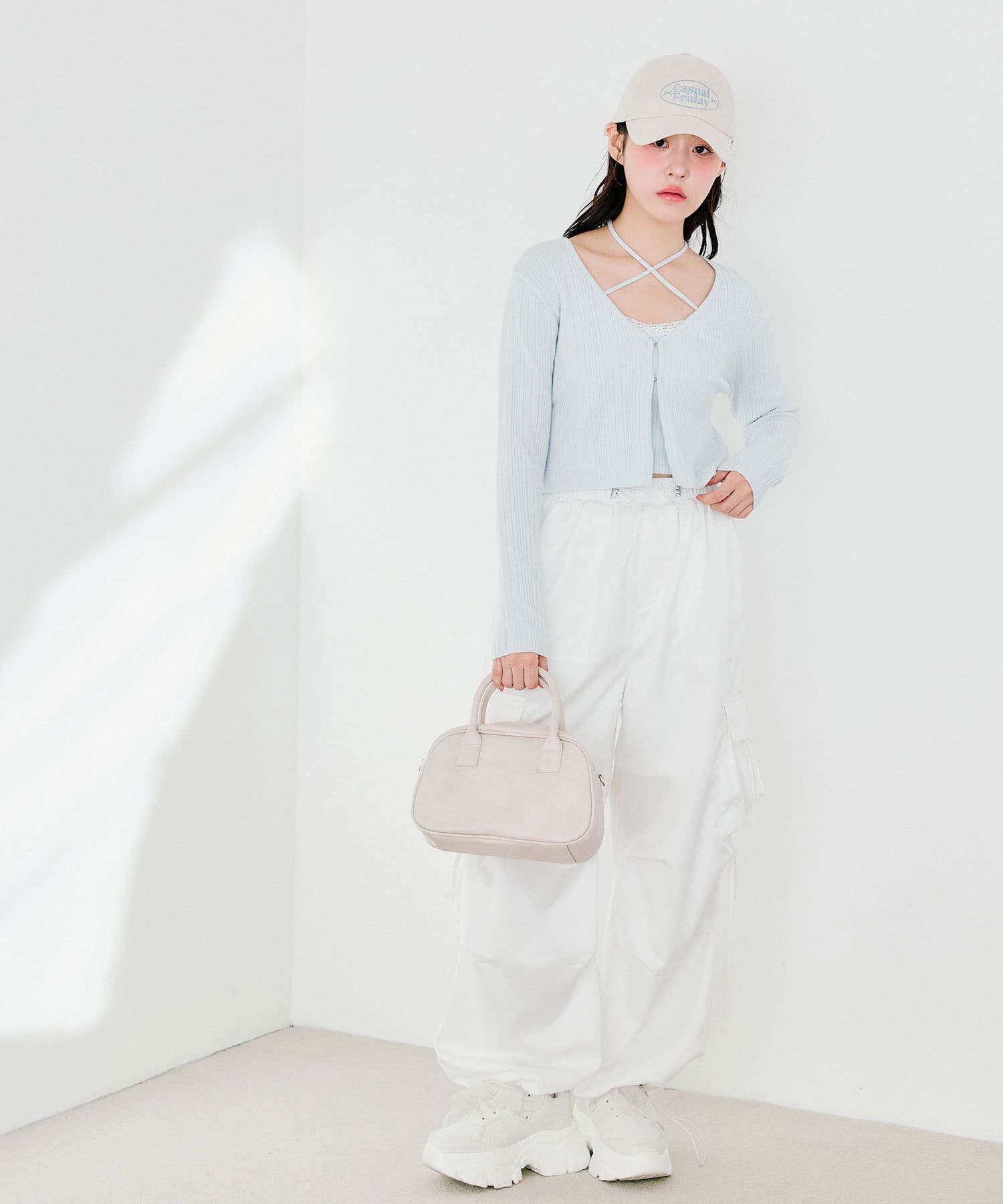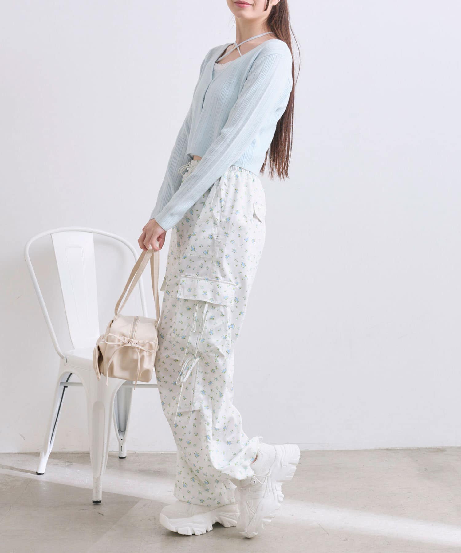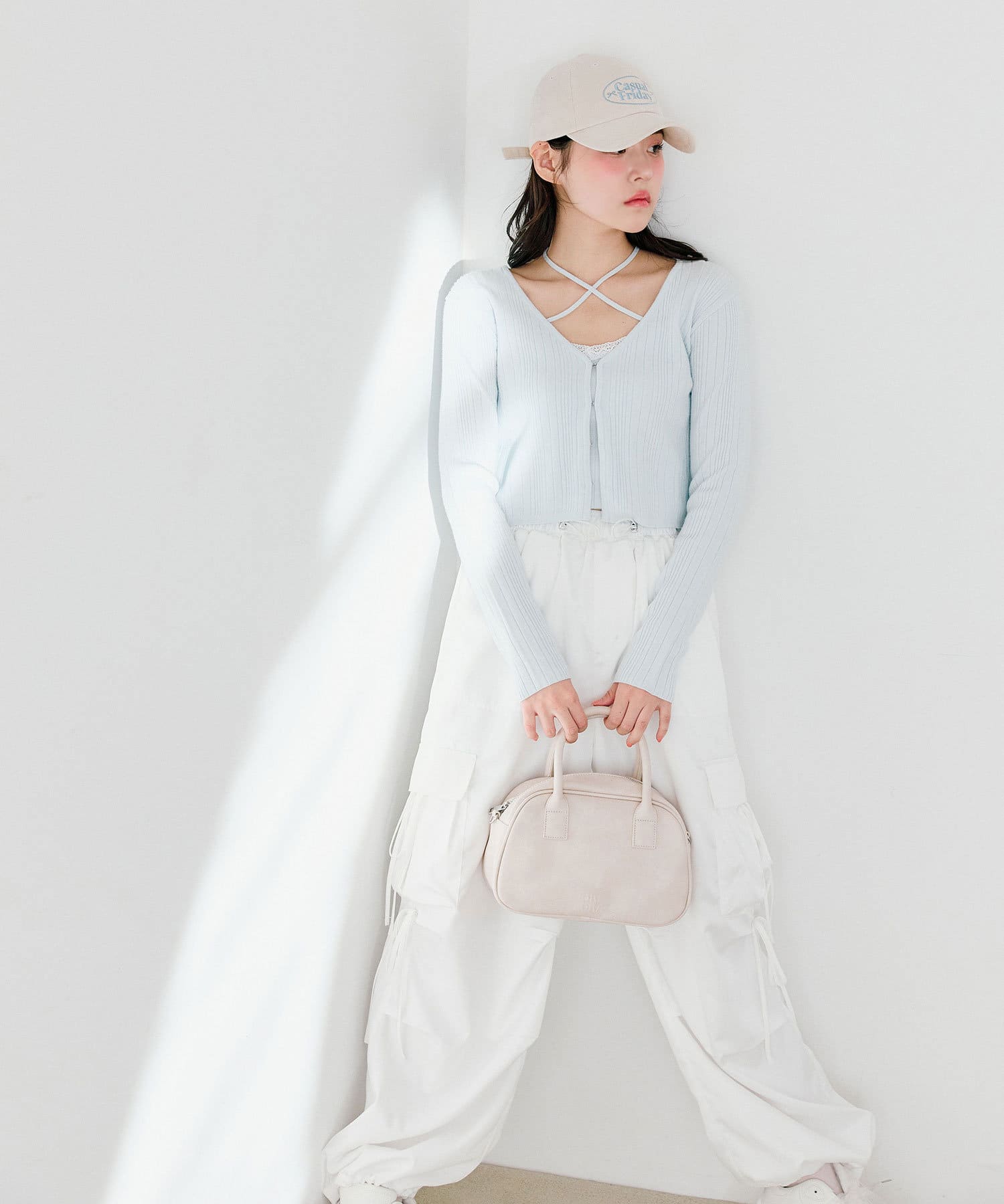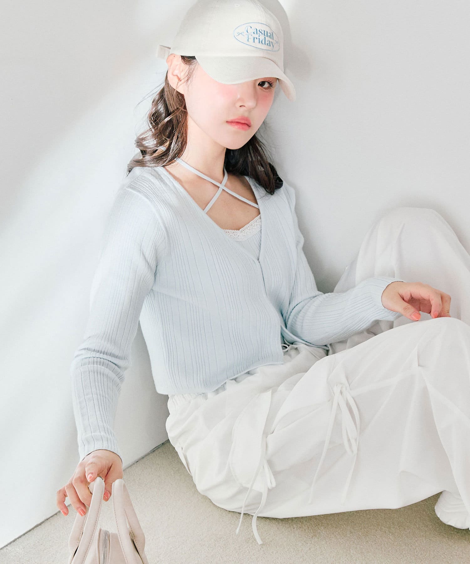 ・コンパクトなサイズ感のカーディガンとキャミインナーがセットになったアイテム。