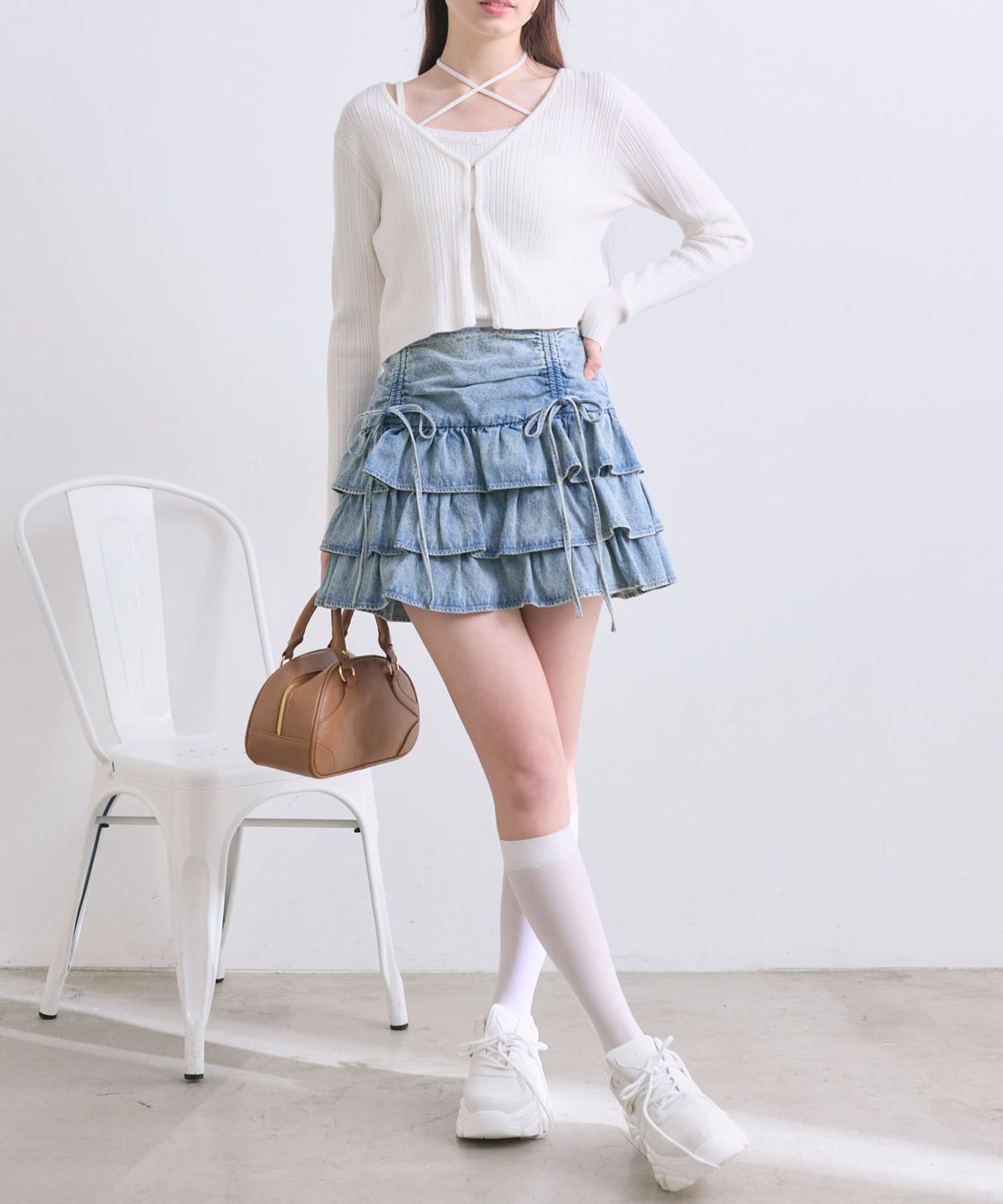 ・ガーリー好きな方はミニスカートを合わせるのがおすすめです。