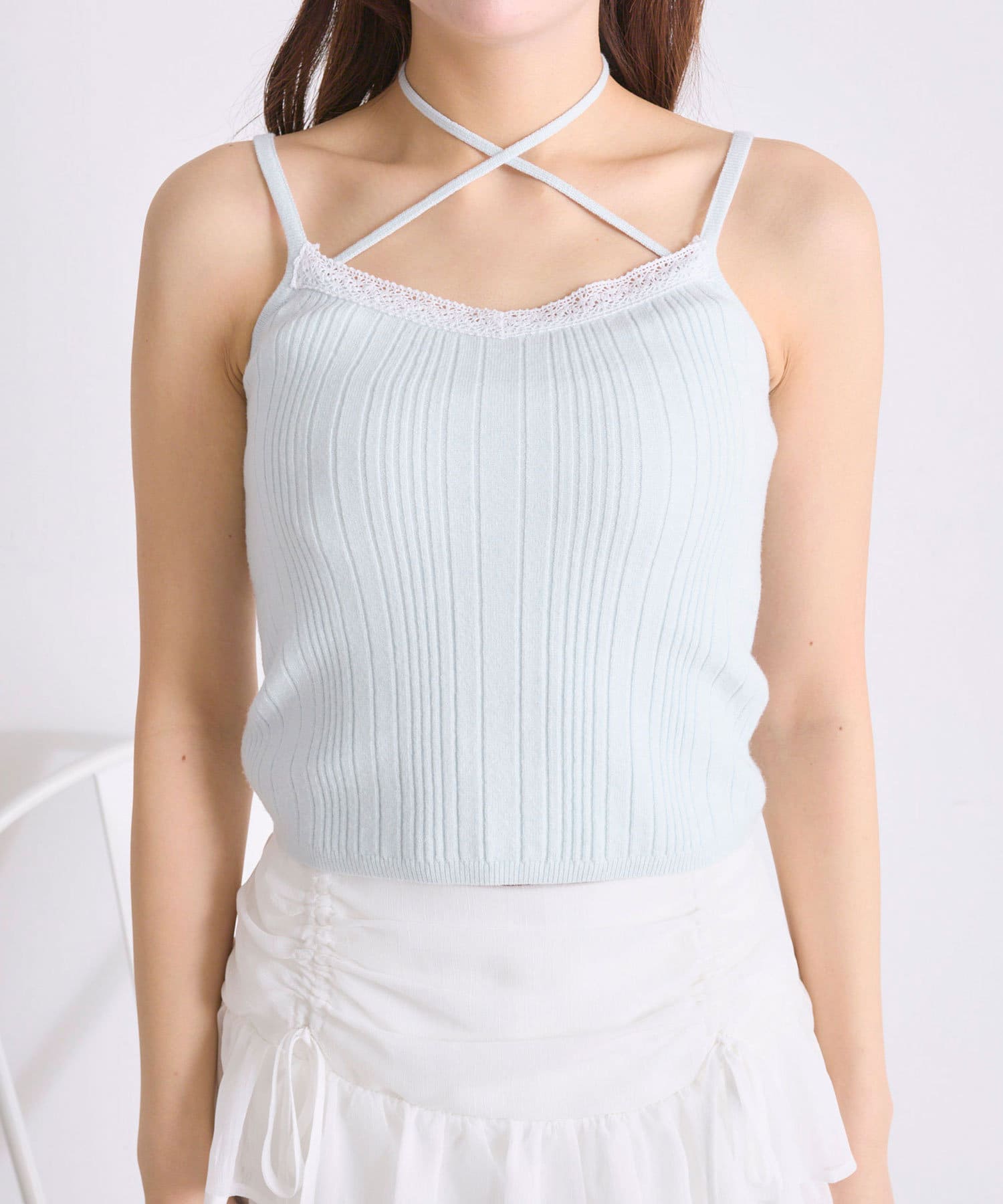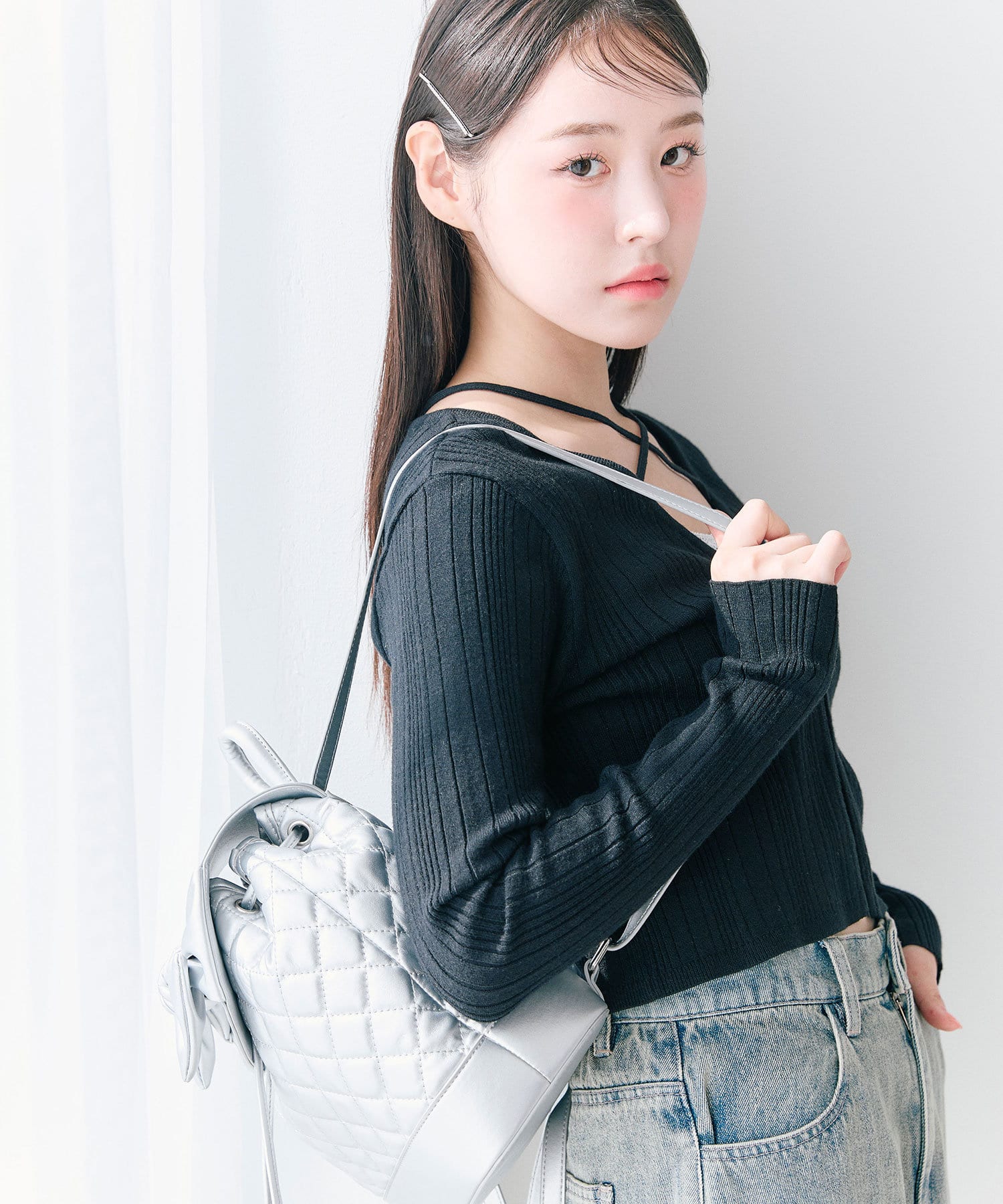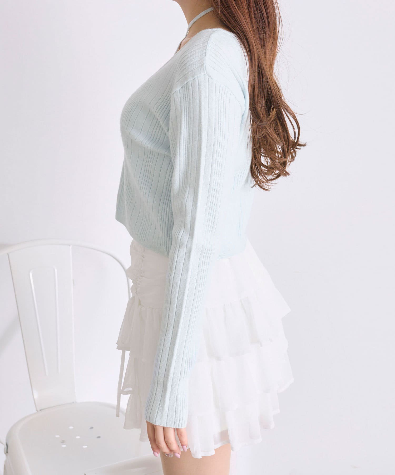 ・インナーは伸縮性のあるリブ素材で着心地よく、ホルターネックデザインなので顔周り華やかになります。