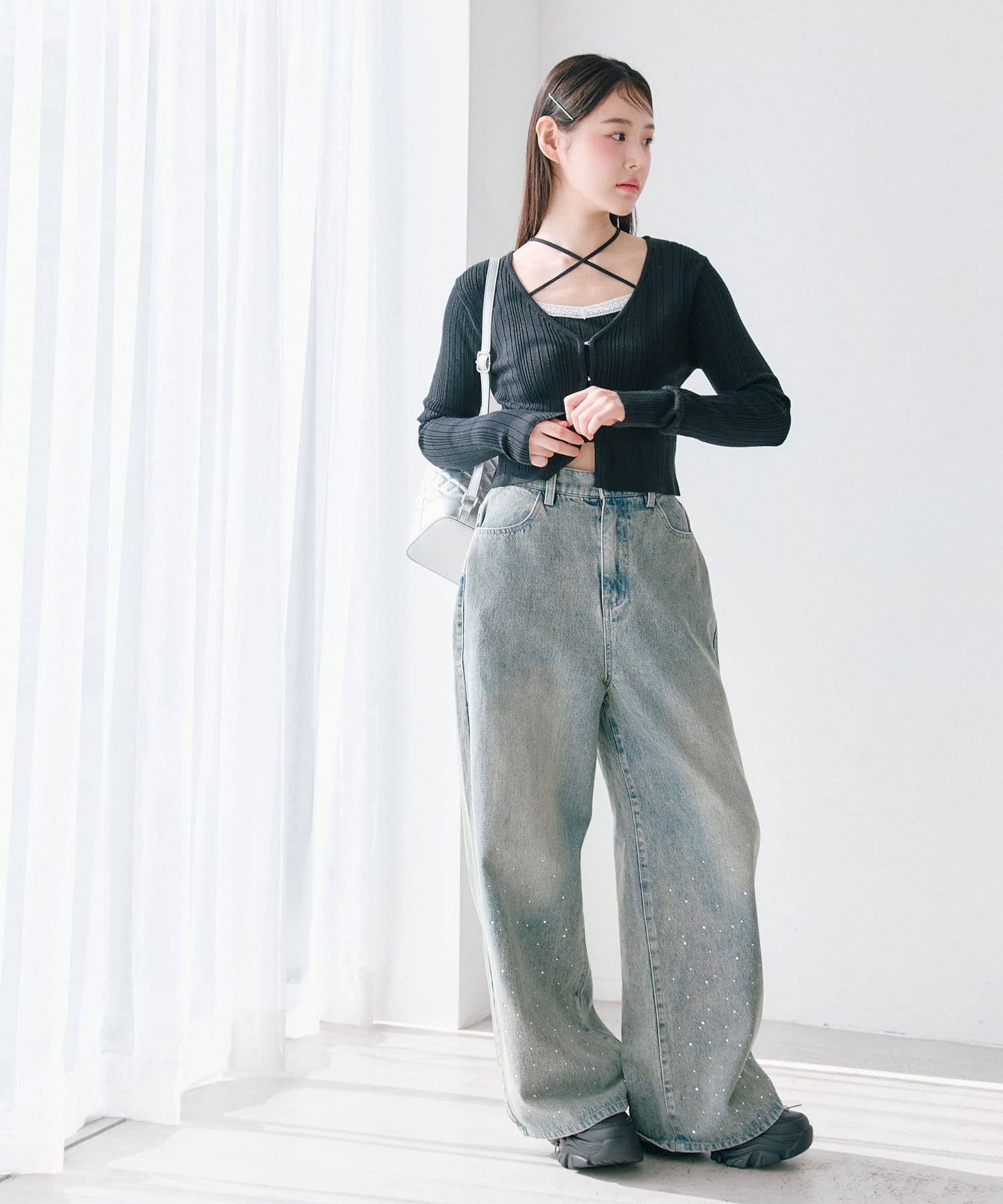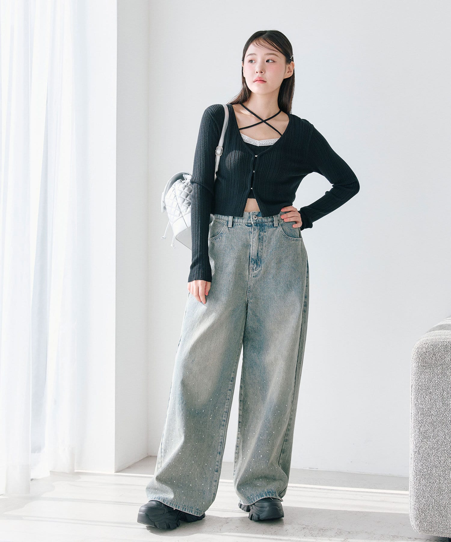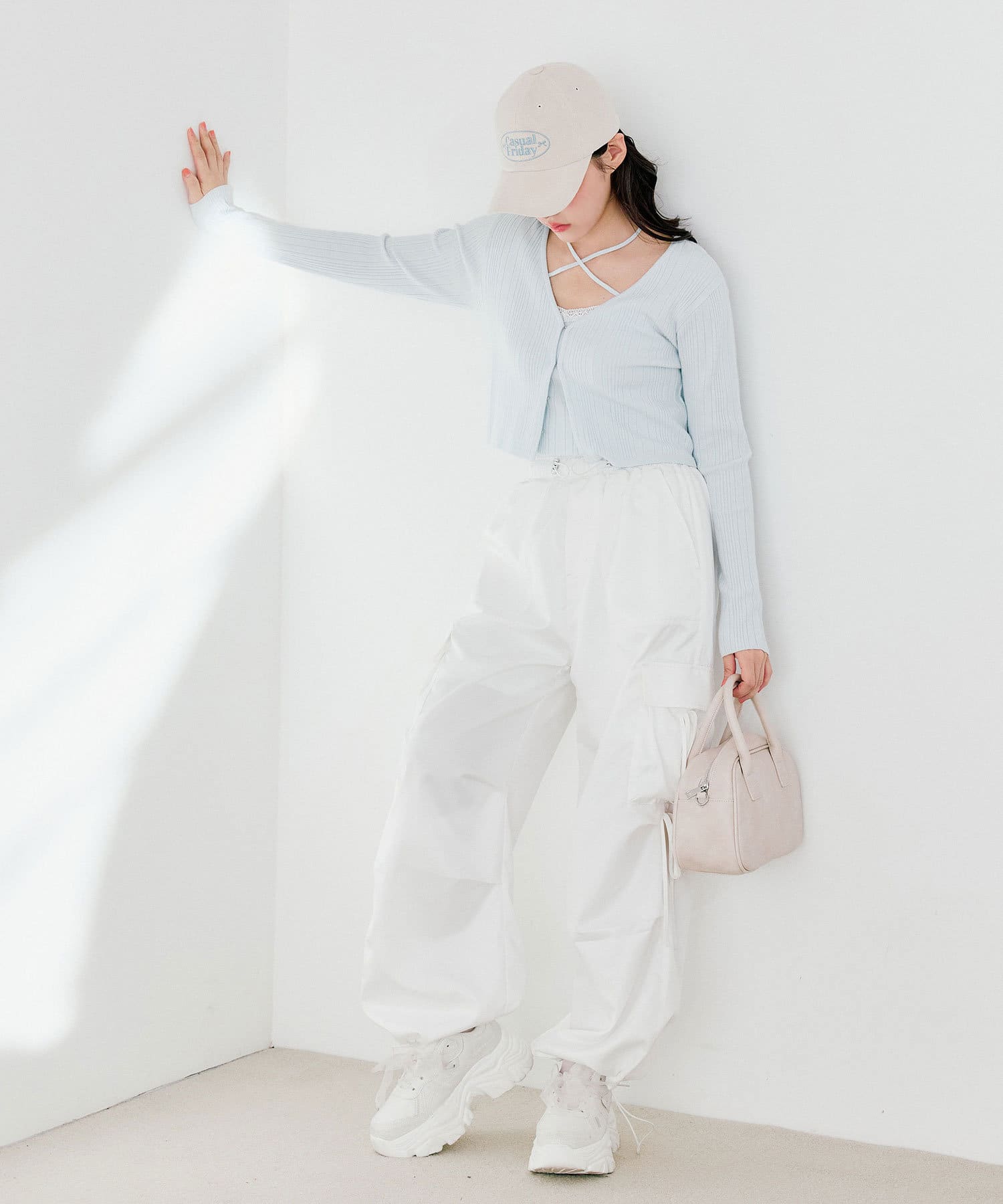 ・デニムやカーゴパンツを合わせると、韓国っぽいカジュアルガーリーな着こなしに。