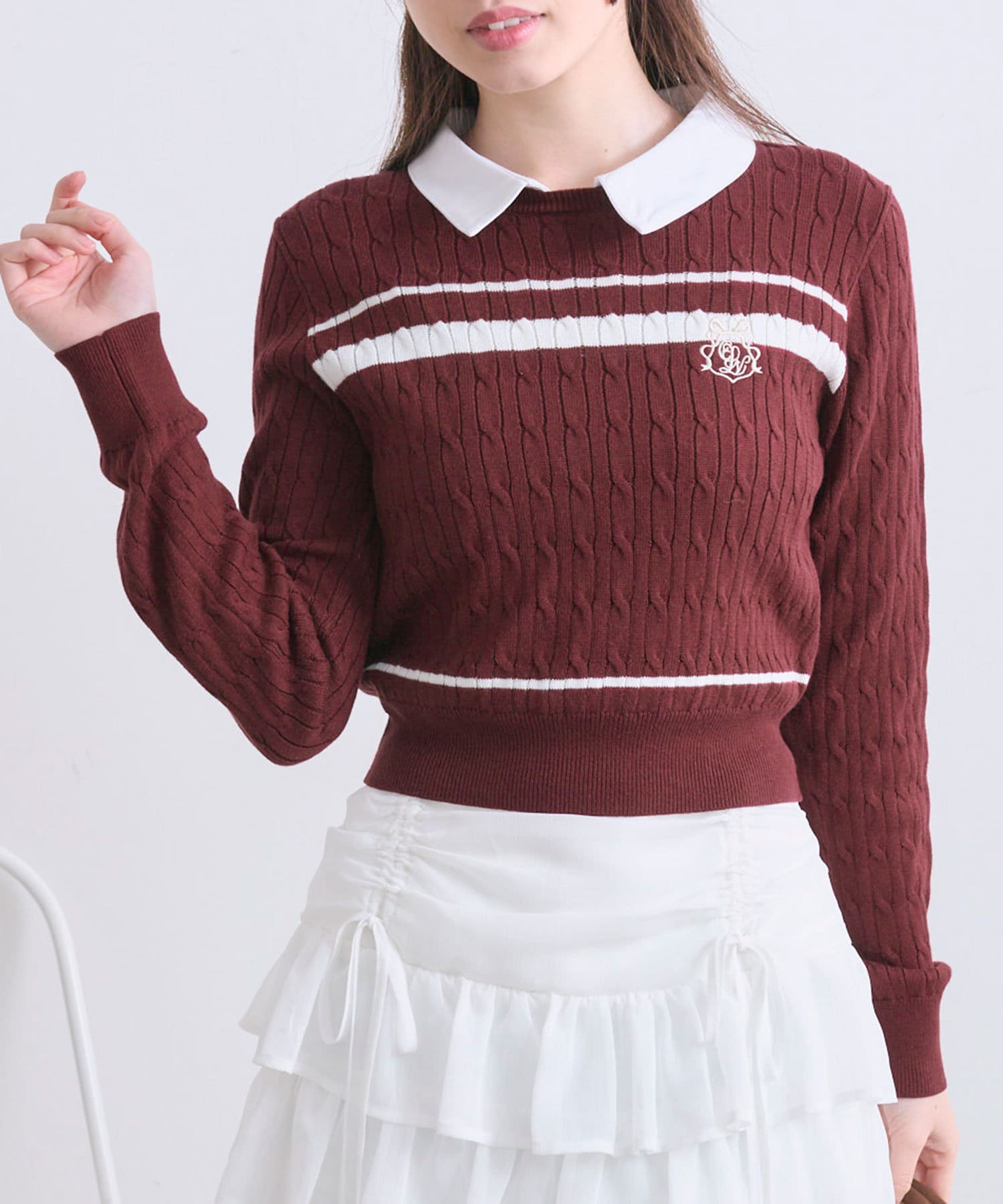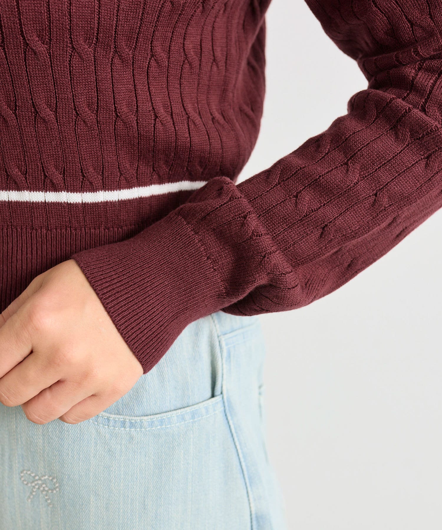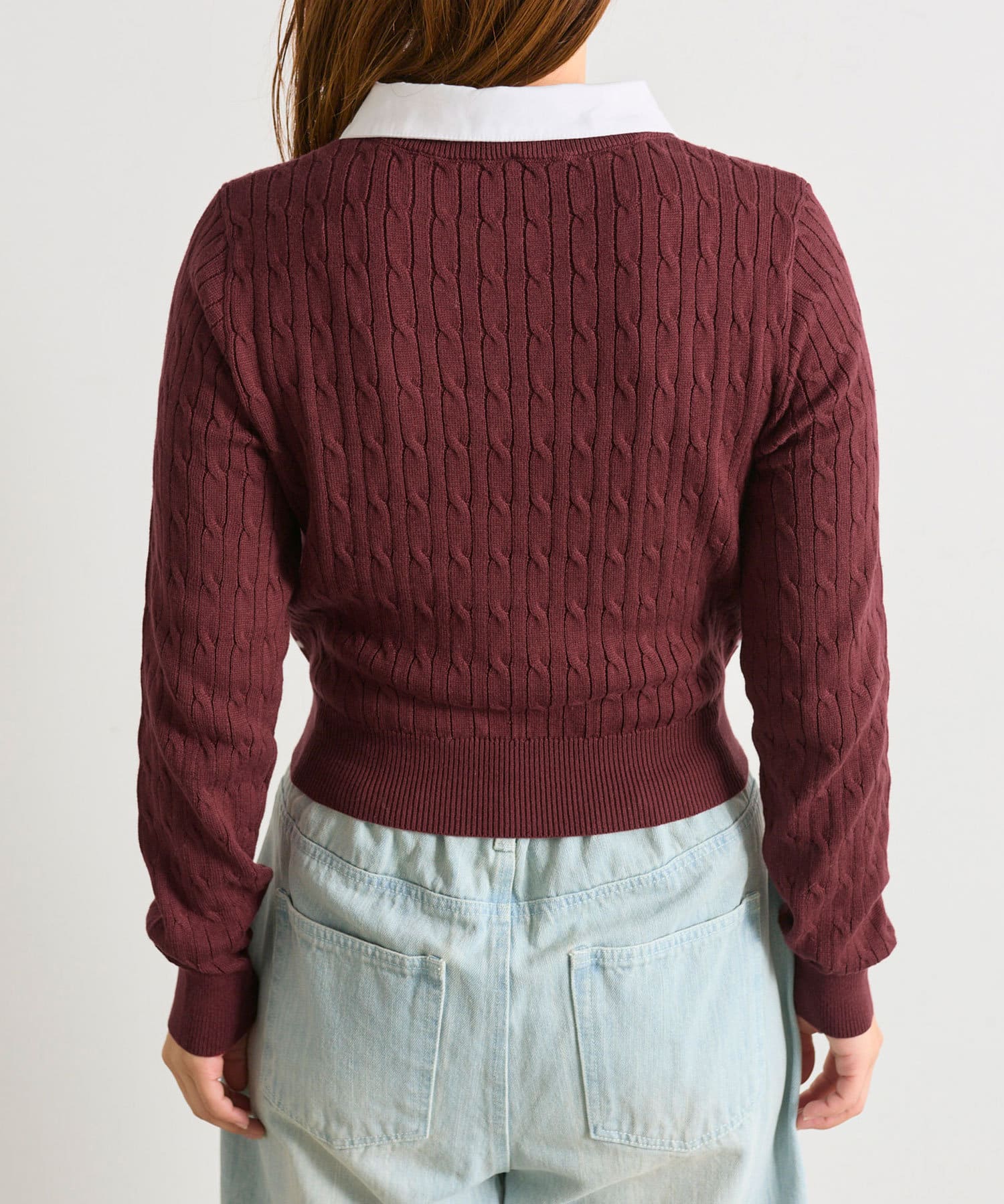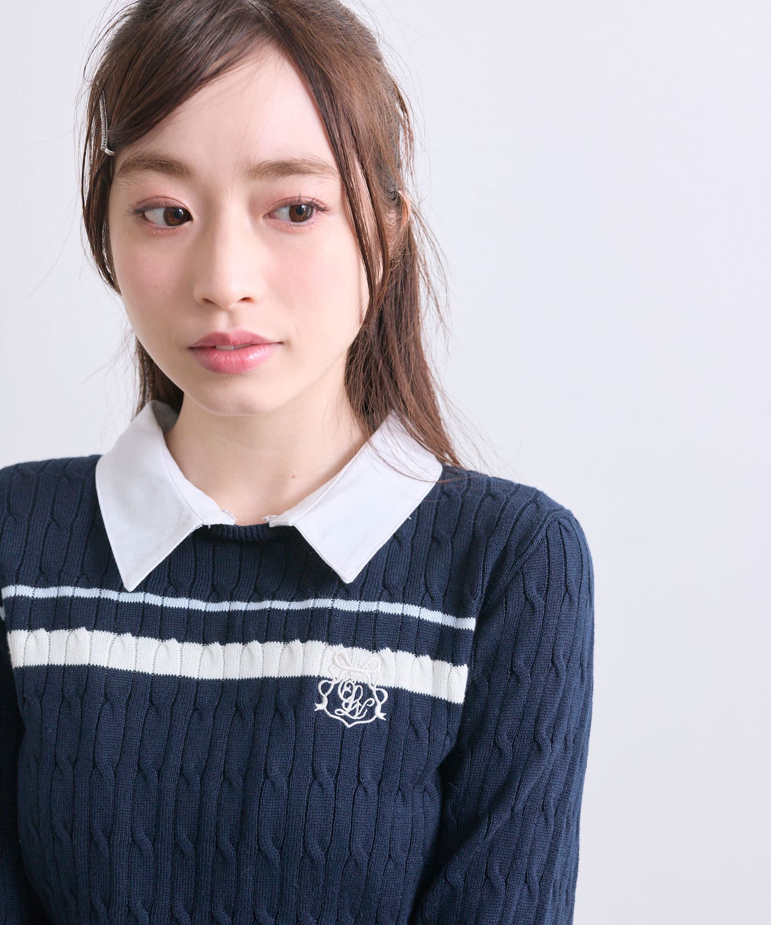 ・ケーブル編みに衿付きでプレッピーに仕上げたニット。