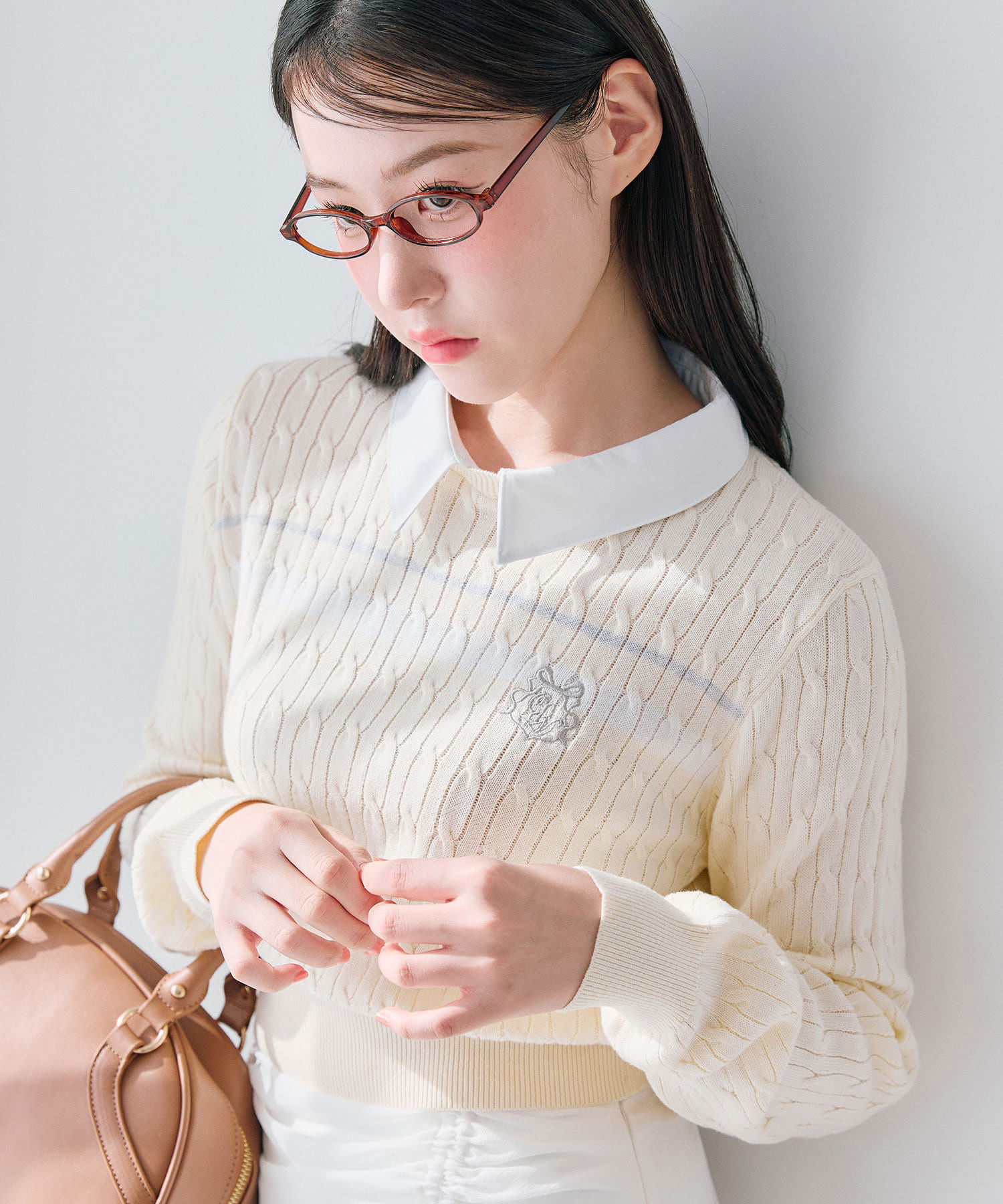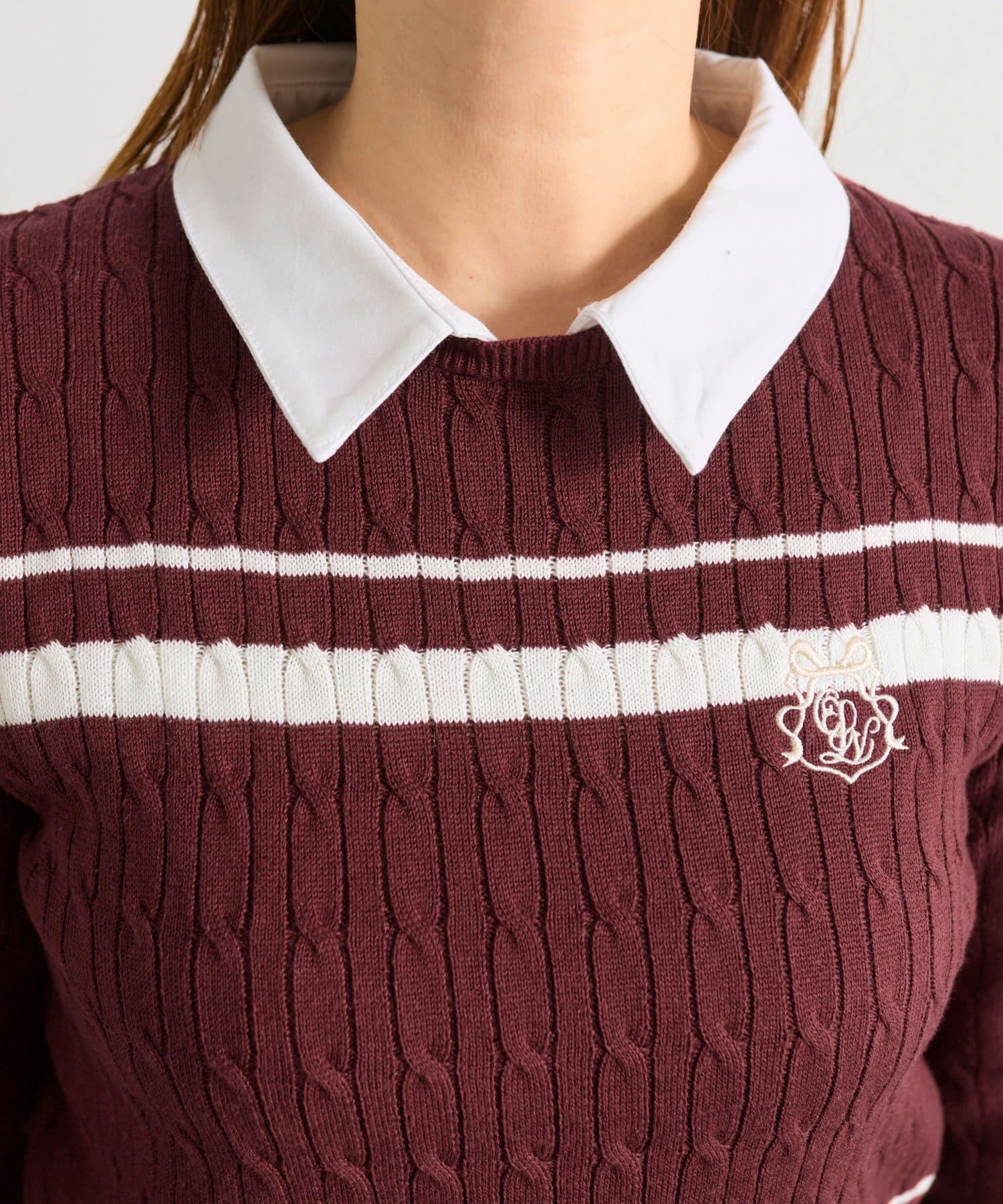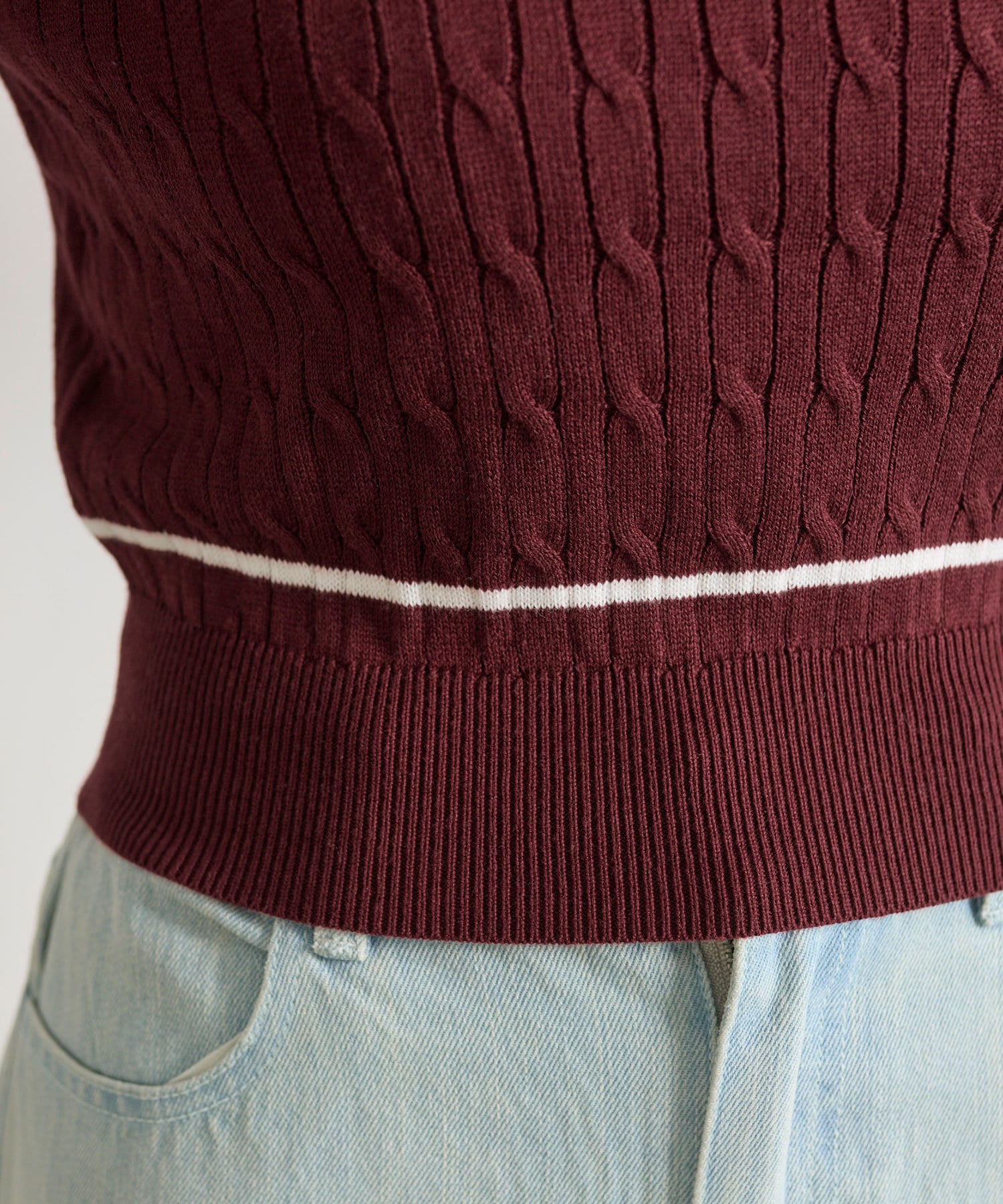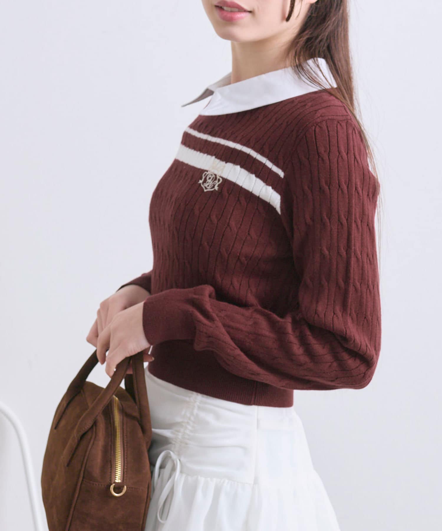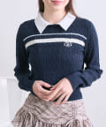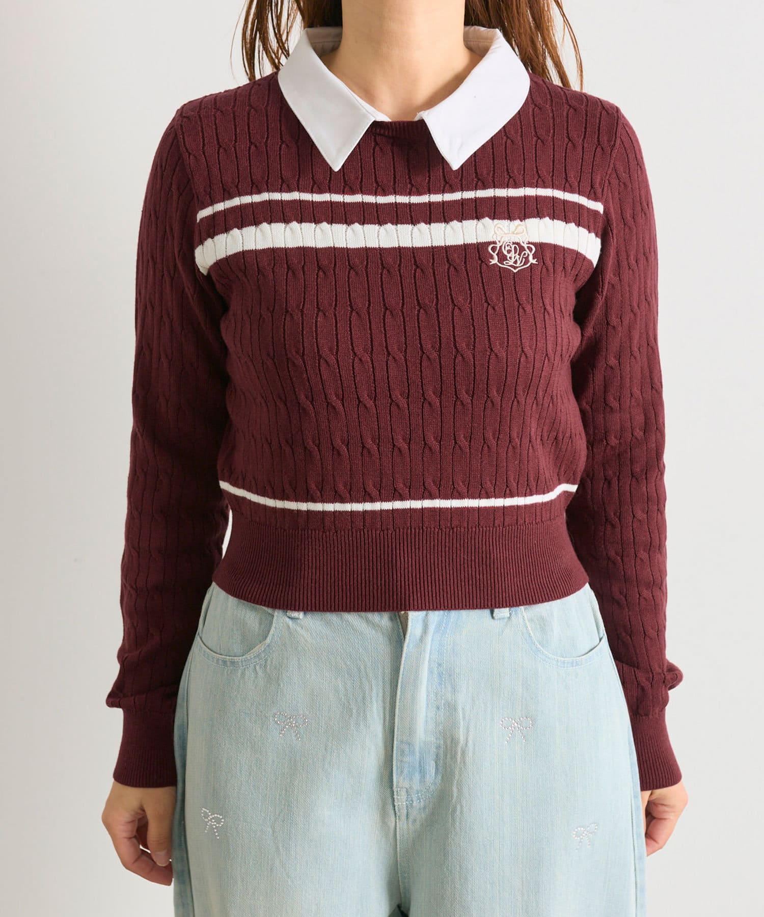・ケーブル編みに衿付きでプレッピーに仕上げたニット。