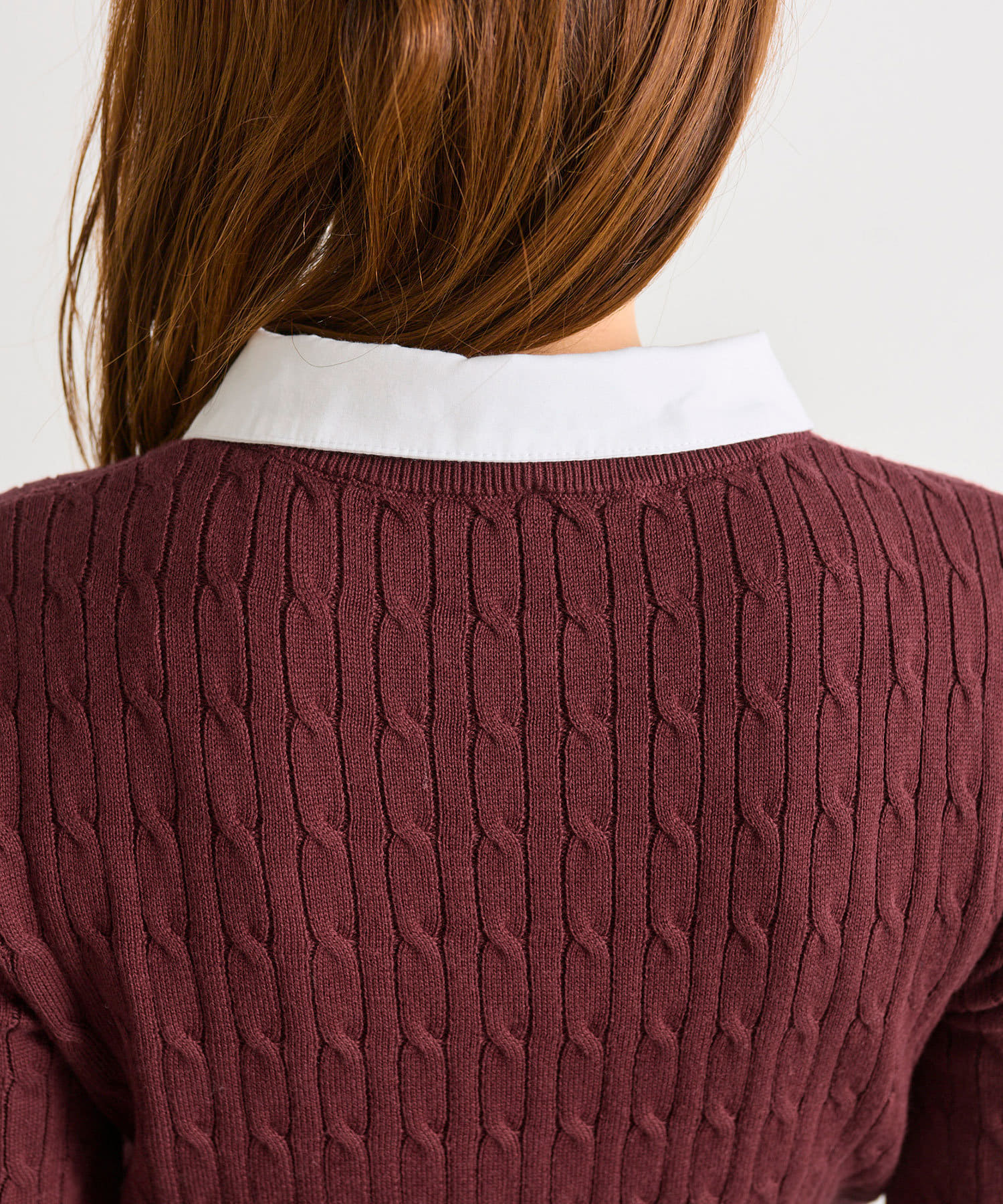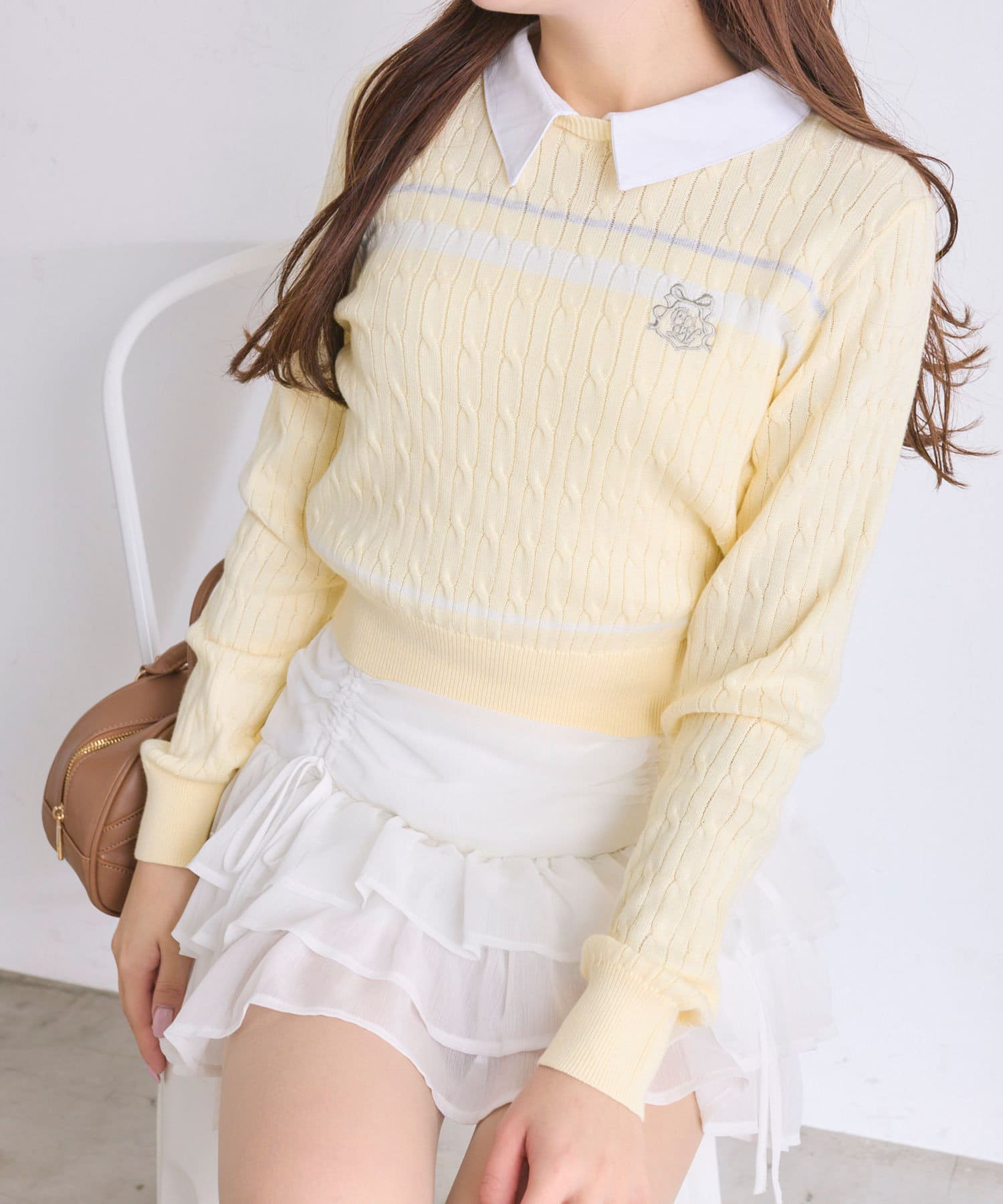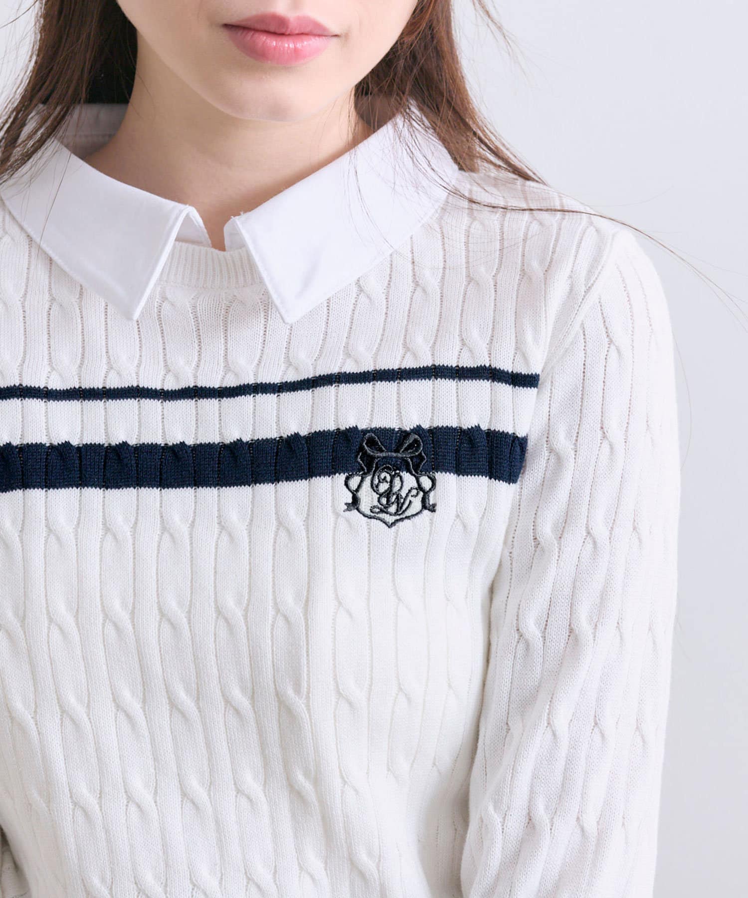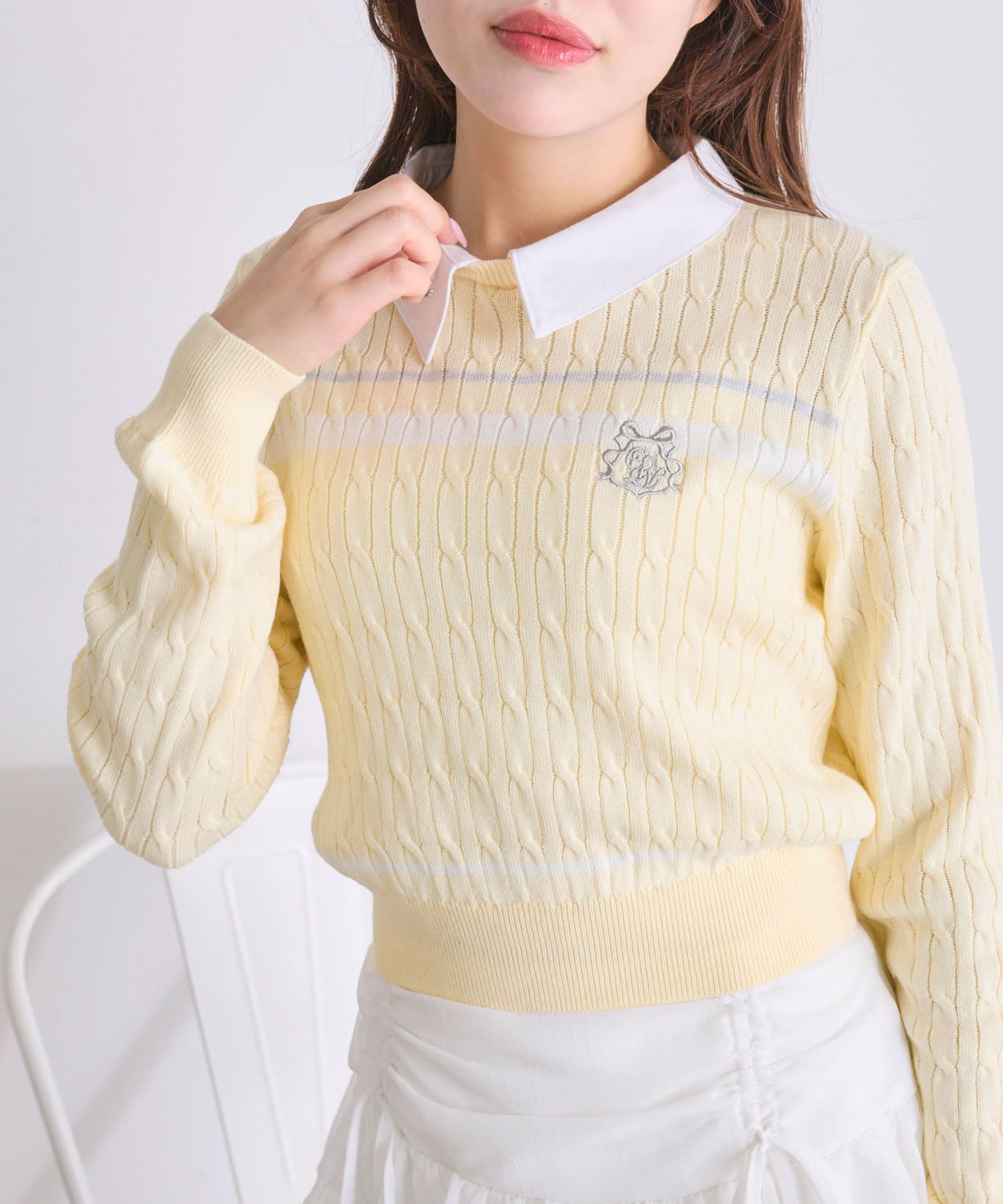 ・ケーブル編みに衿付きでプレッピーに仕上げたニット。
