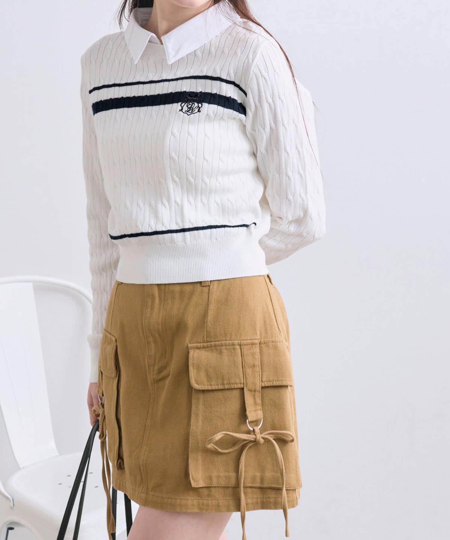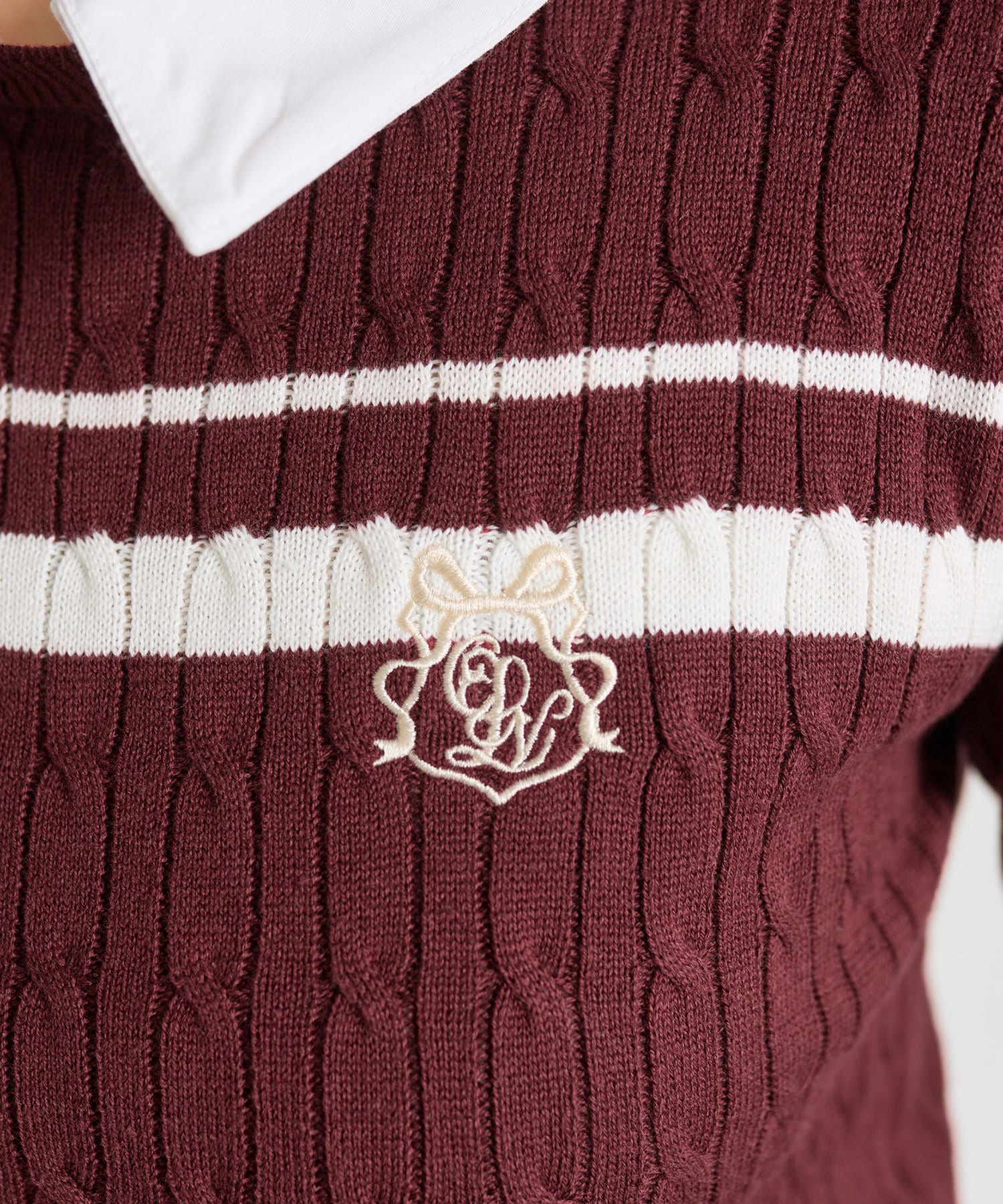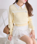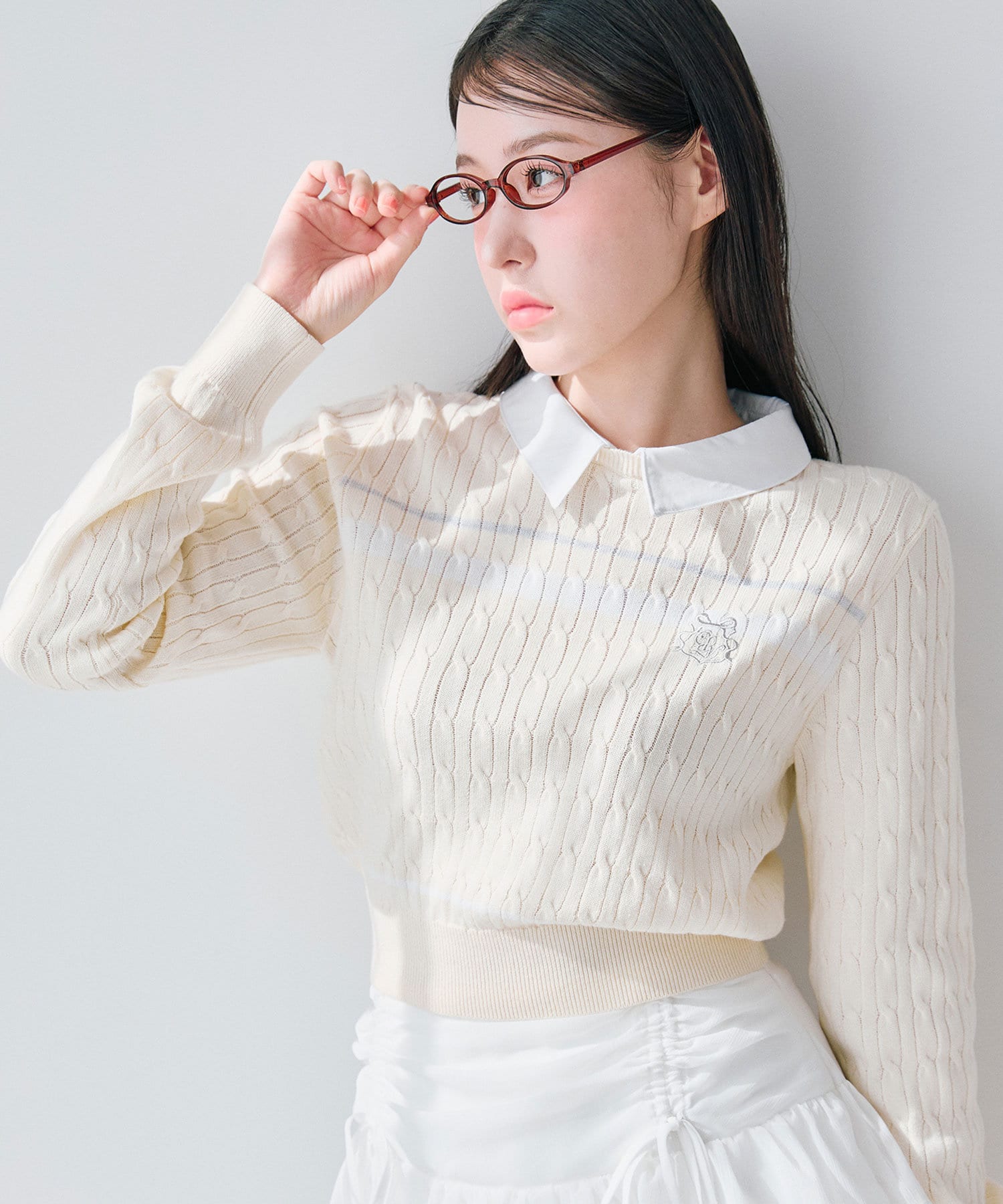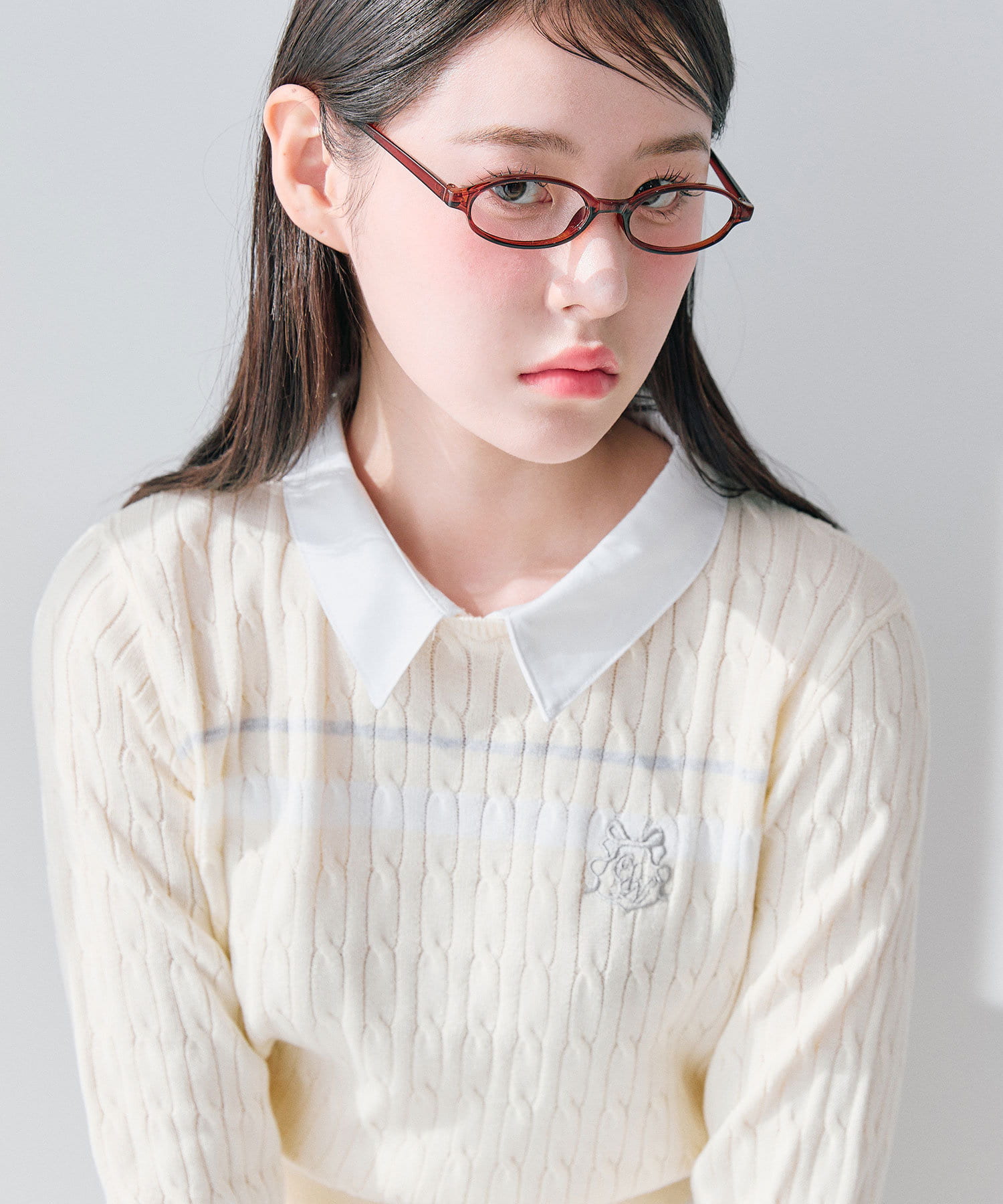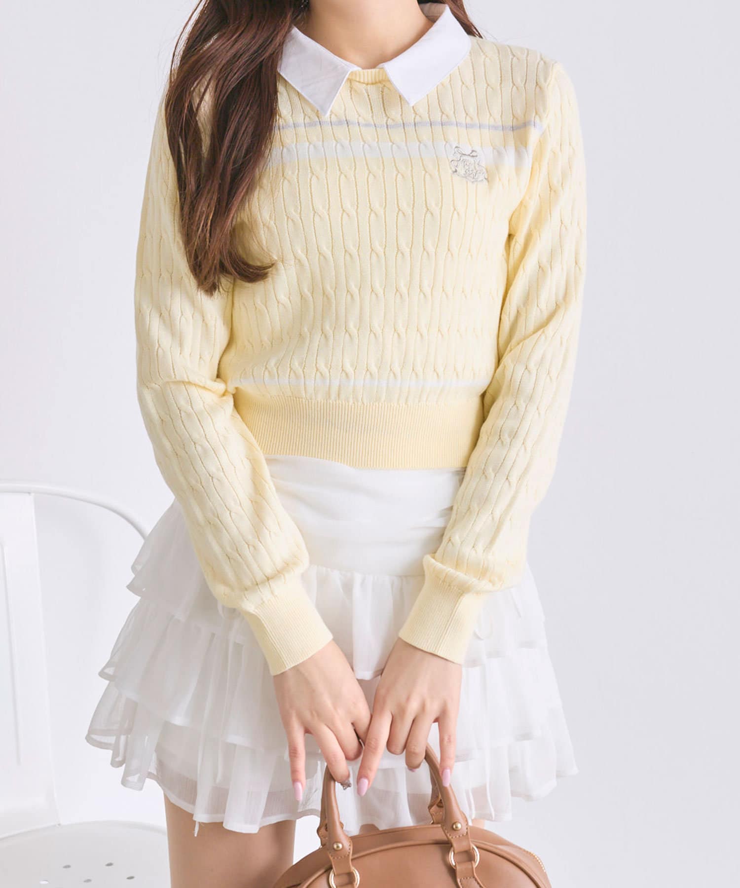 ・ケーブル編みに衿付きでプレッピーに仕上げたニット。