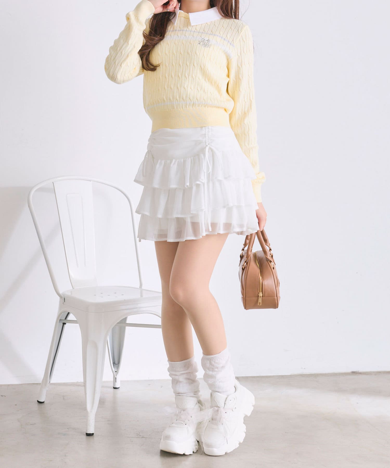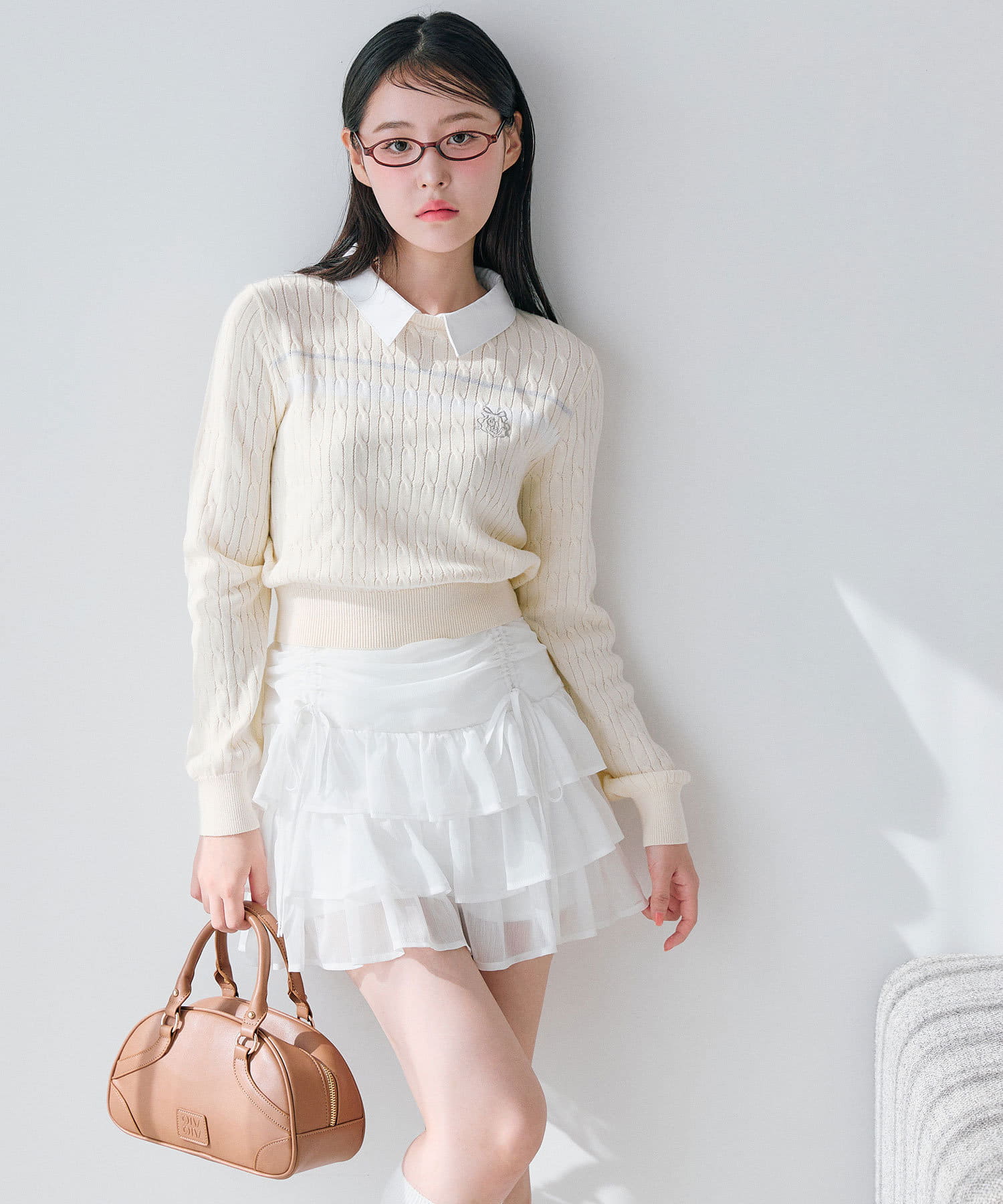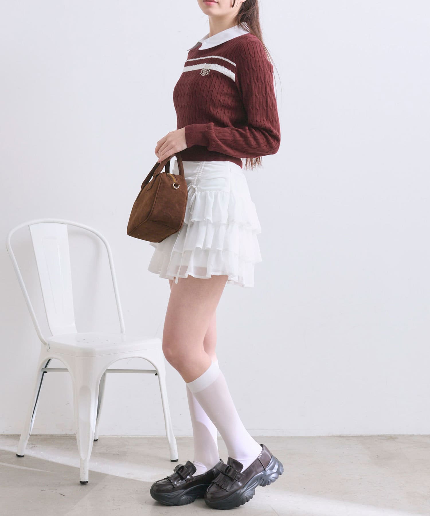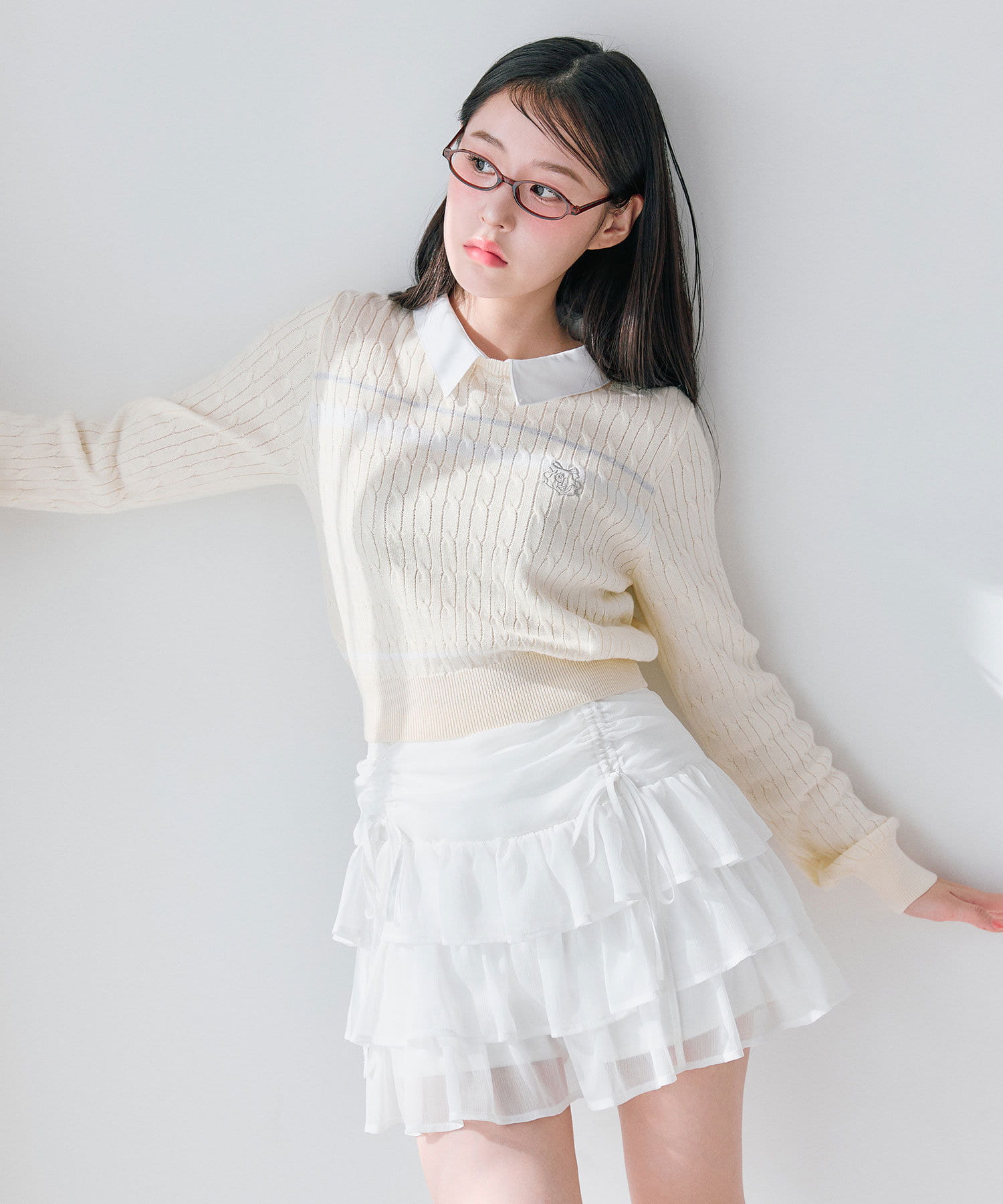 ・ケーブル編みに衿付きでプレッピーに仕上げたニット。