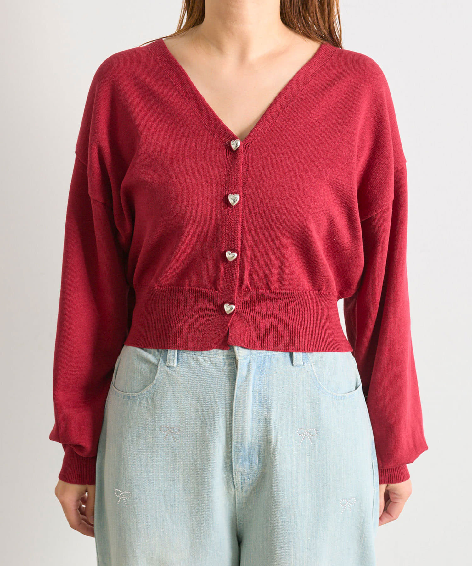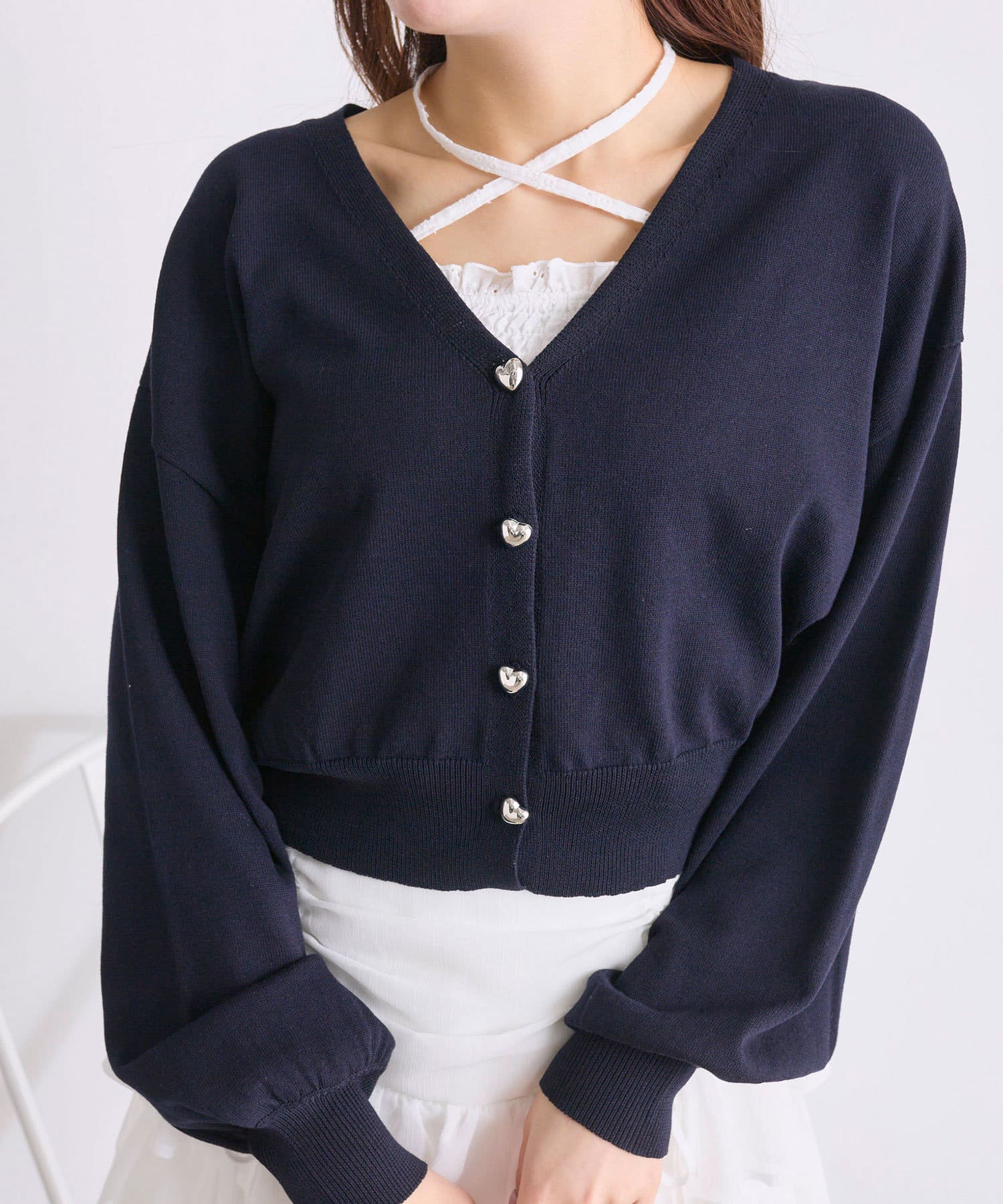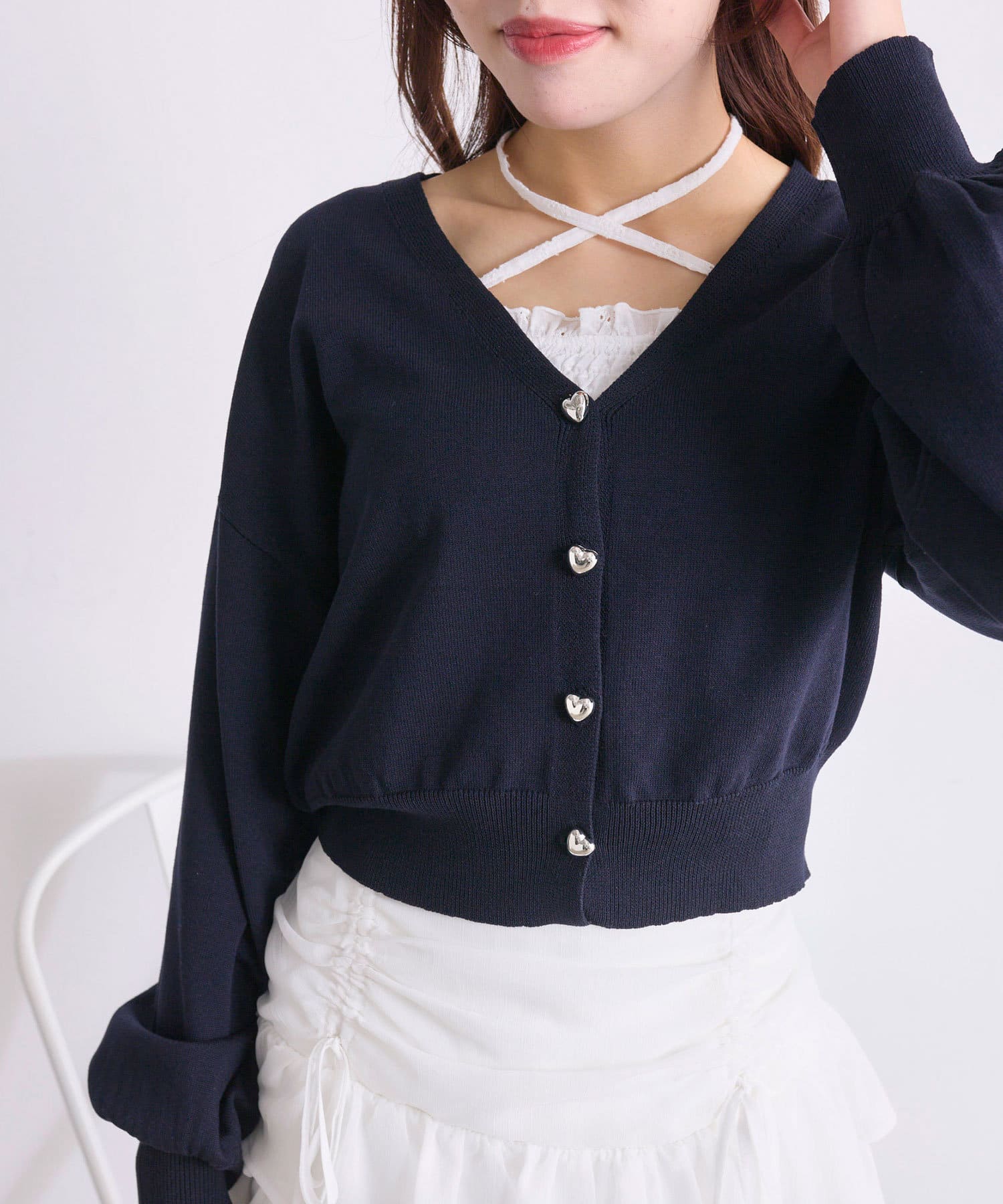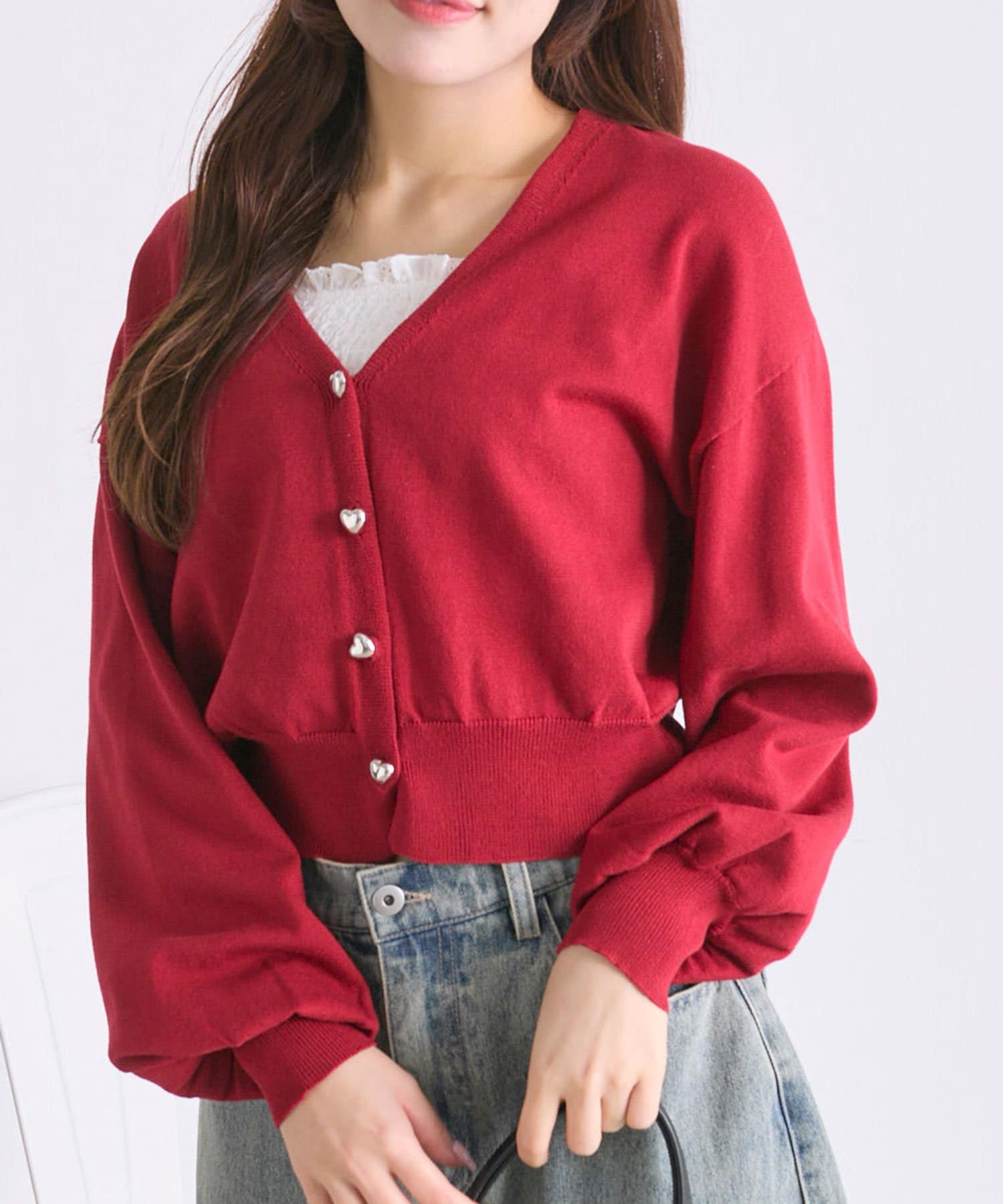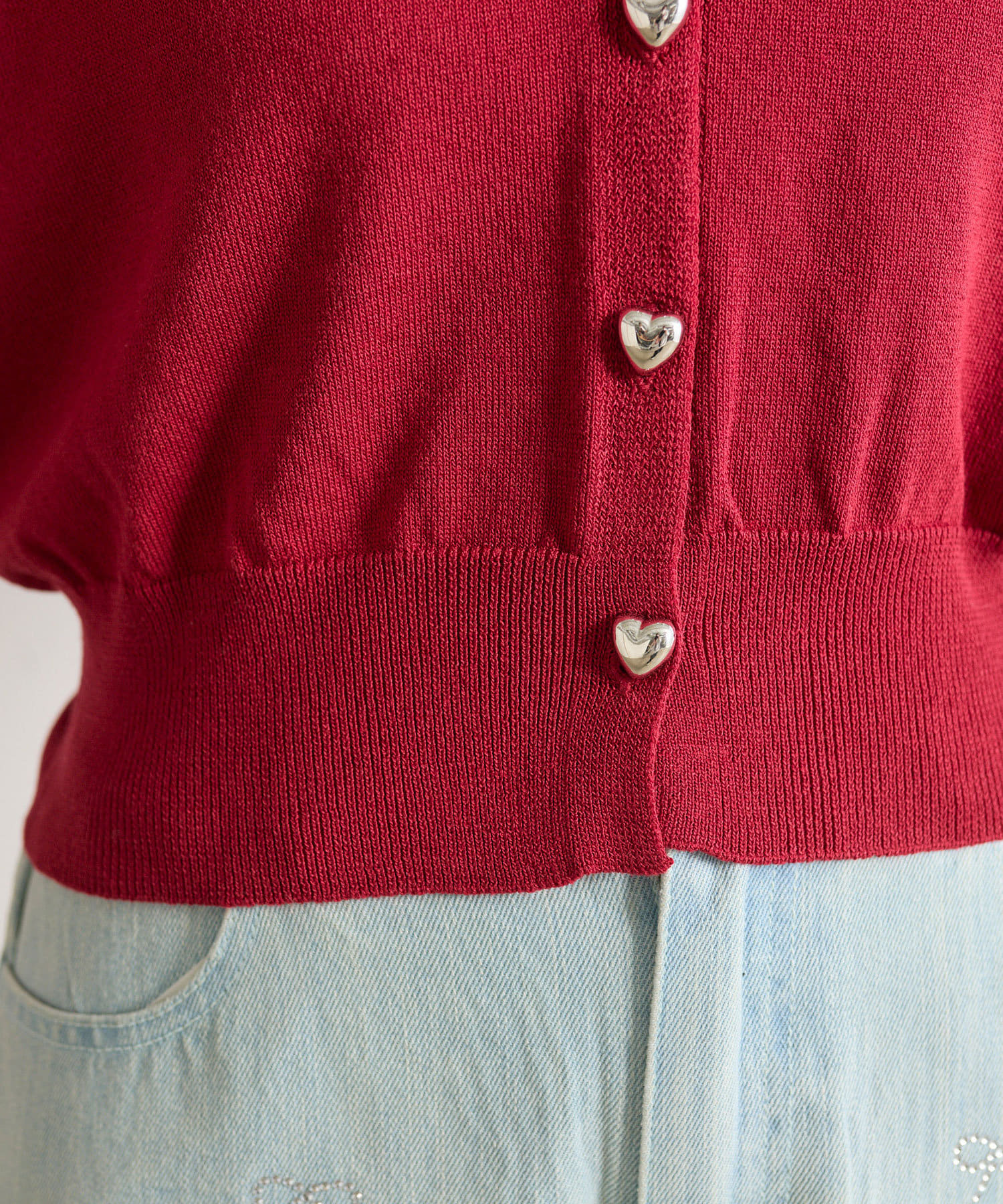 ・ぷっくりした大きめのハートボタンがかわいいデザインです。