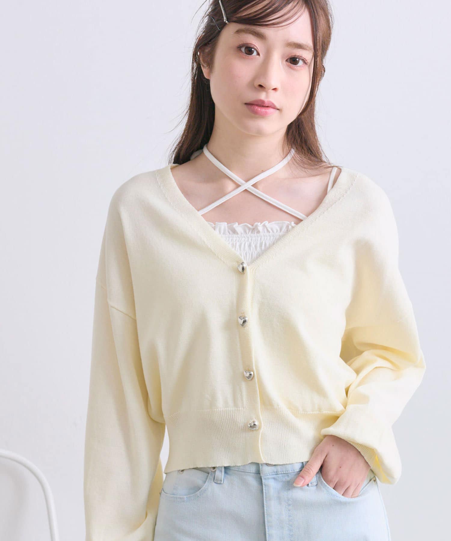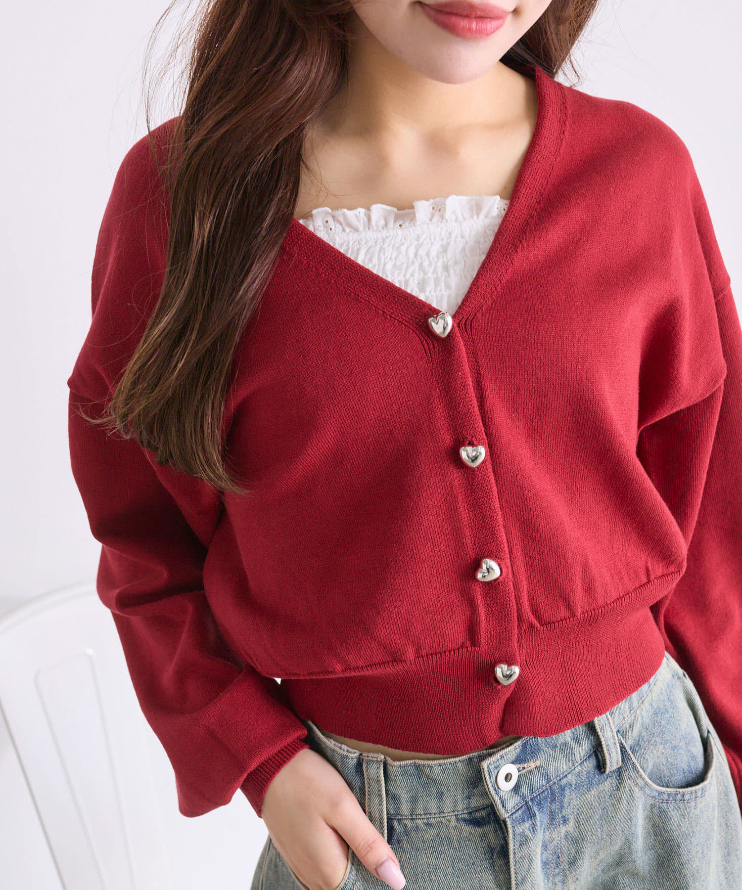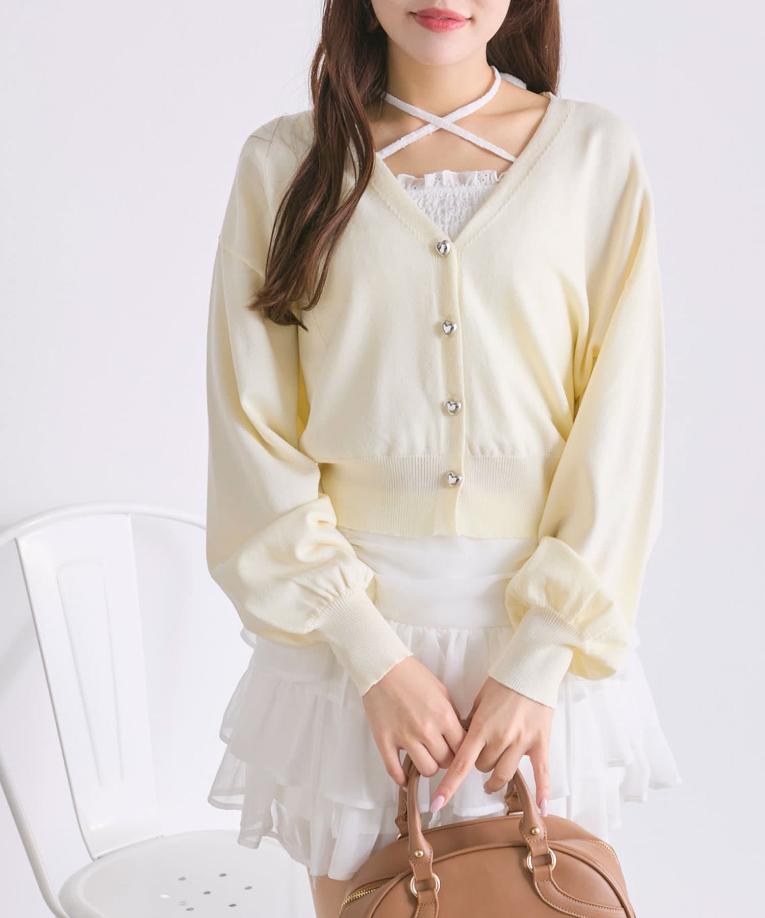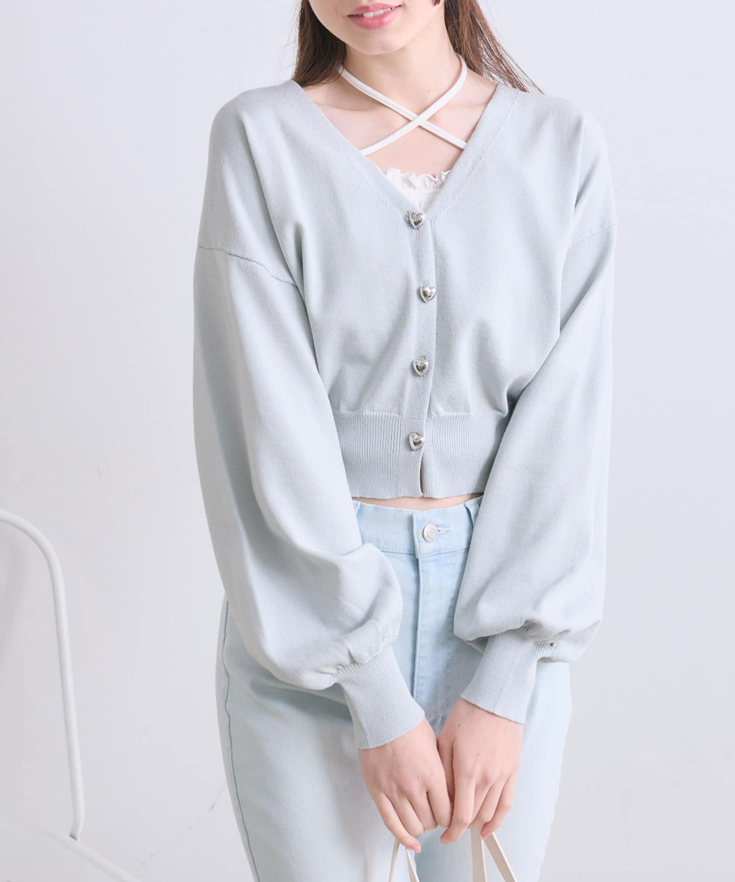 ・ぷっくりした大きめのハートボタンがかわいいデザインです。