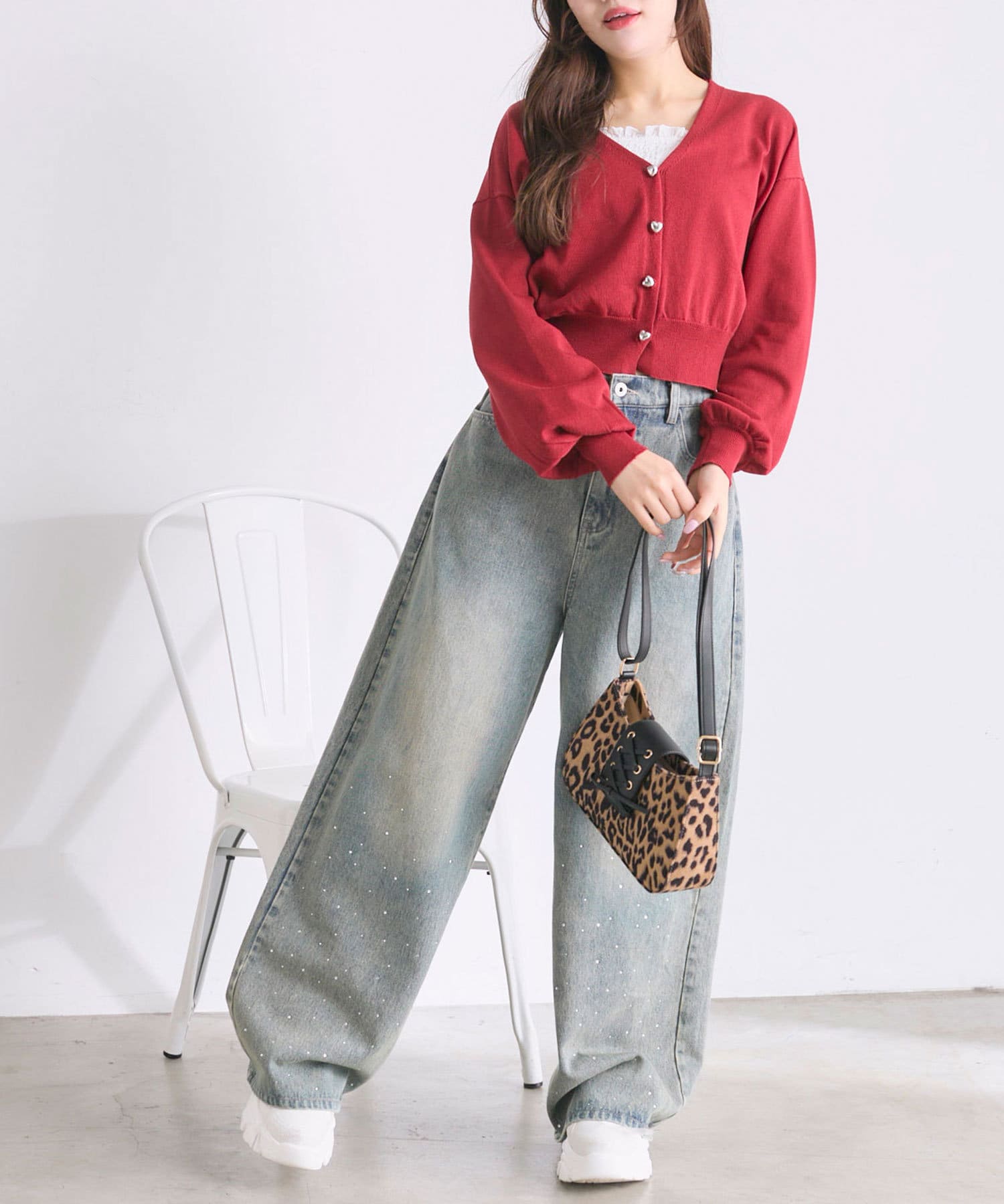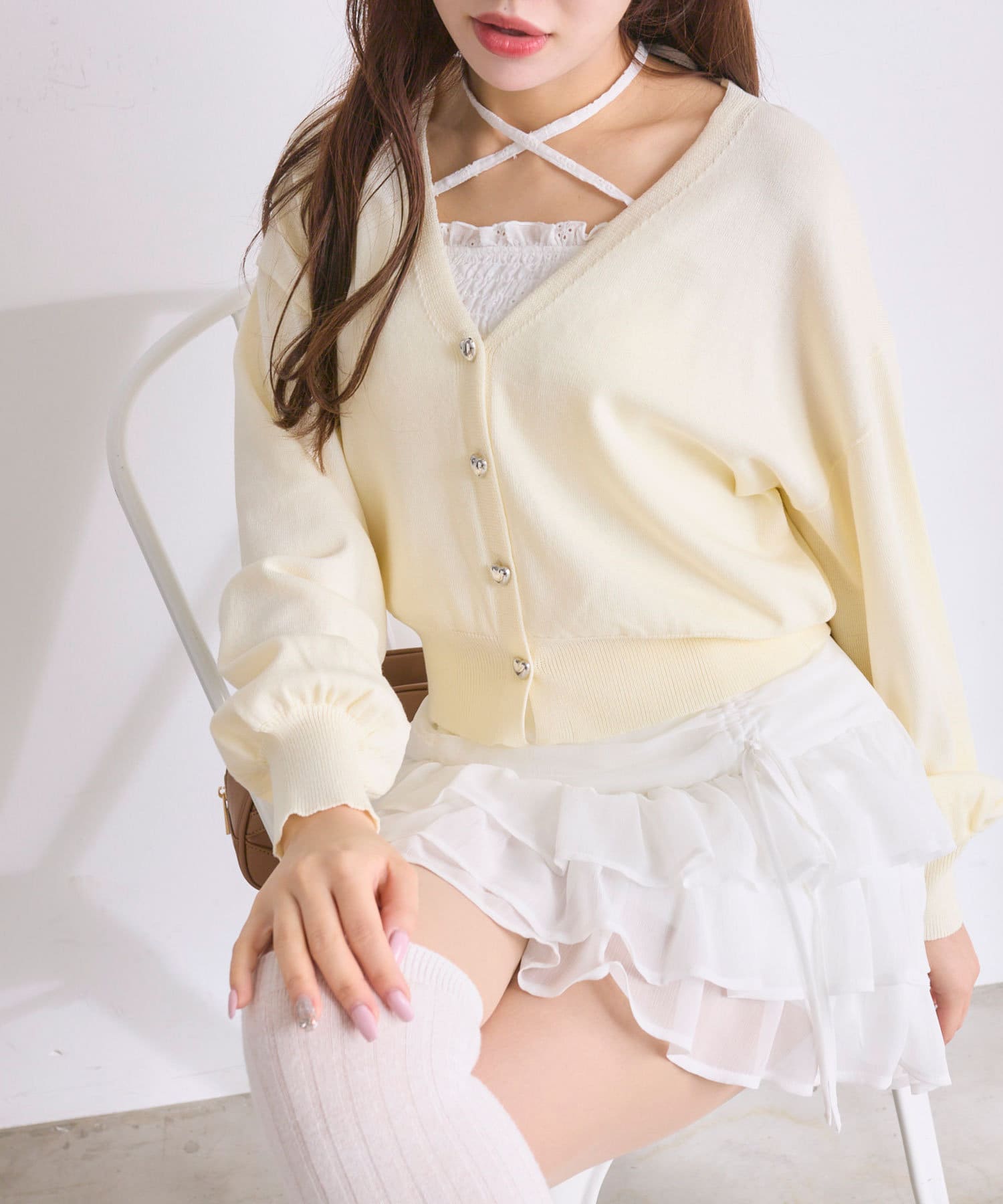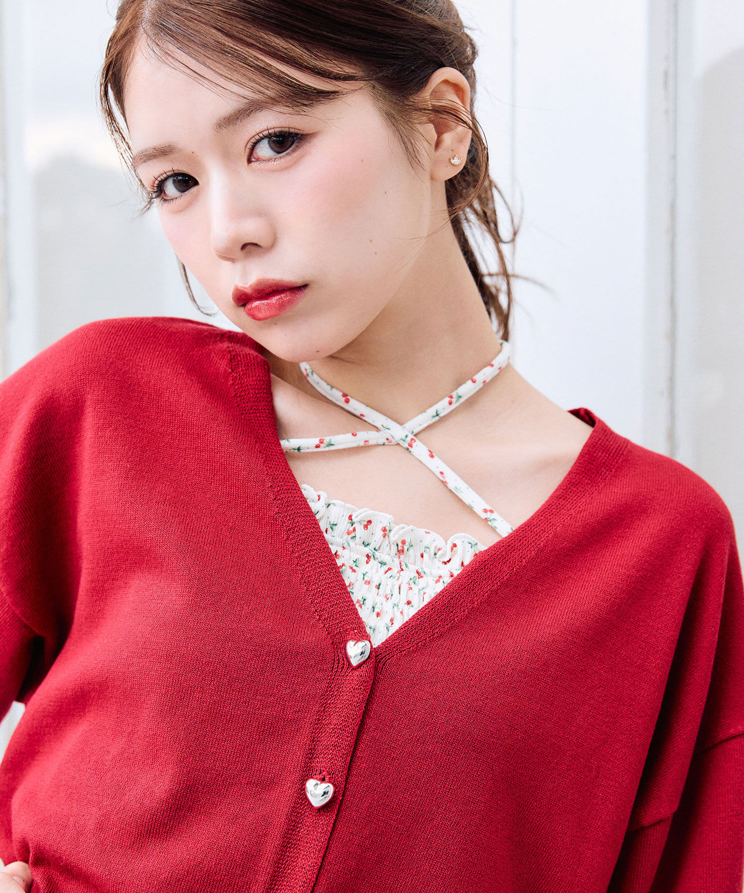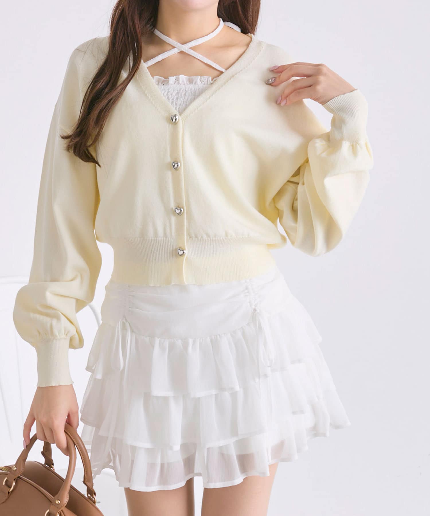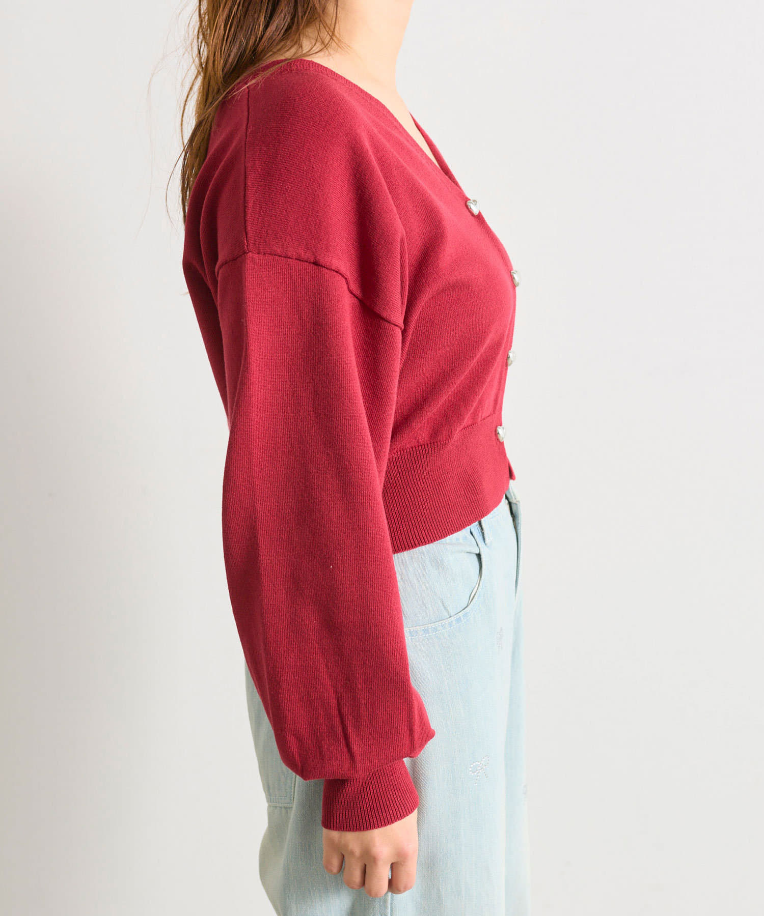 ・ぷっくりした大きめのハートボタンがかわいいデザインです。