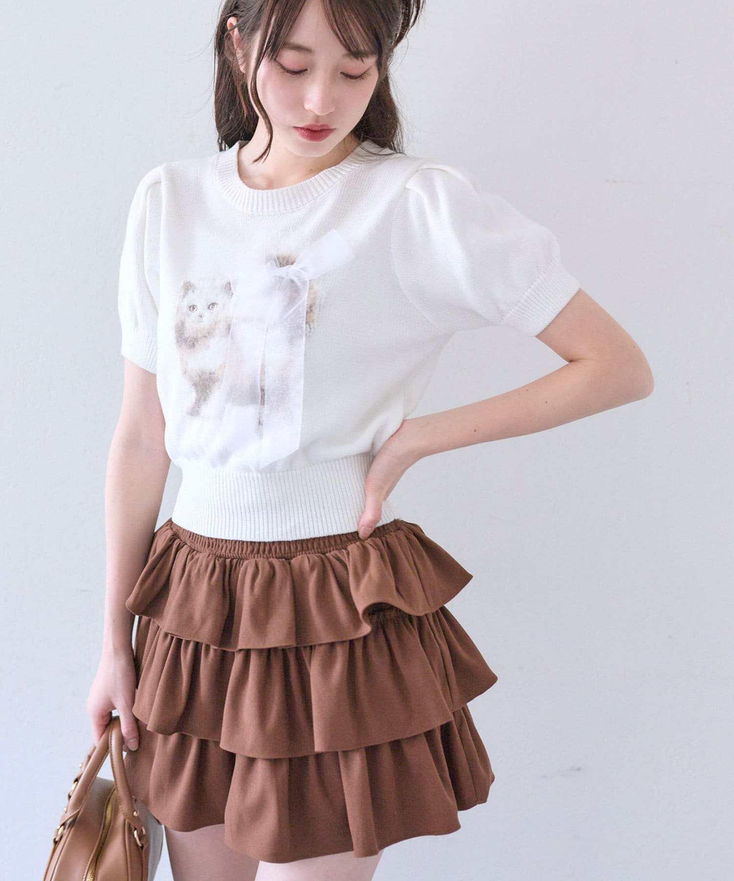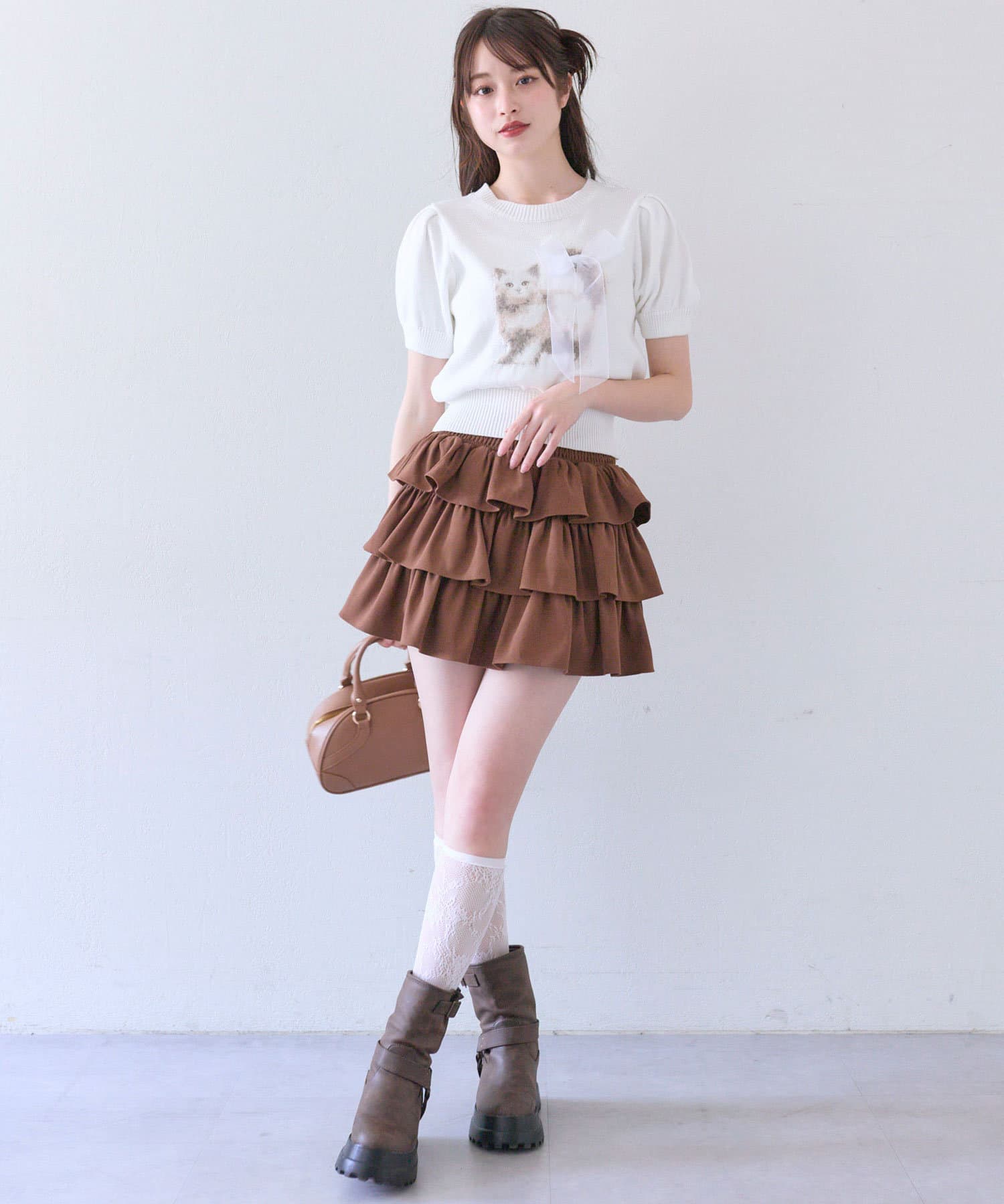 ・ティアードスカートやプリーツミニスカートと合わせて、可愛らしいフェミニンスタイルがおすすめ。