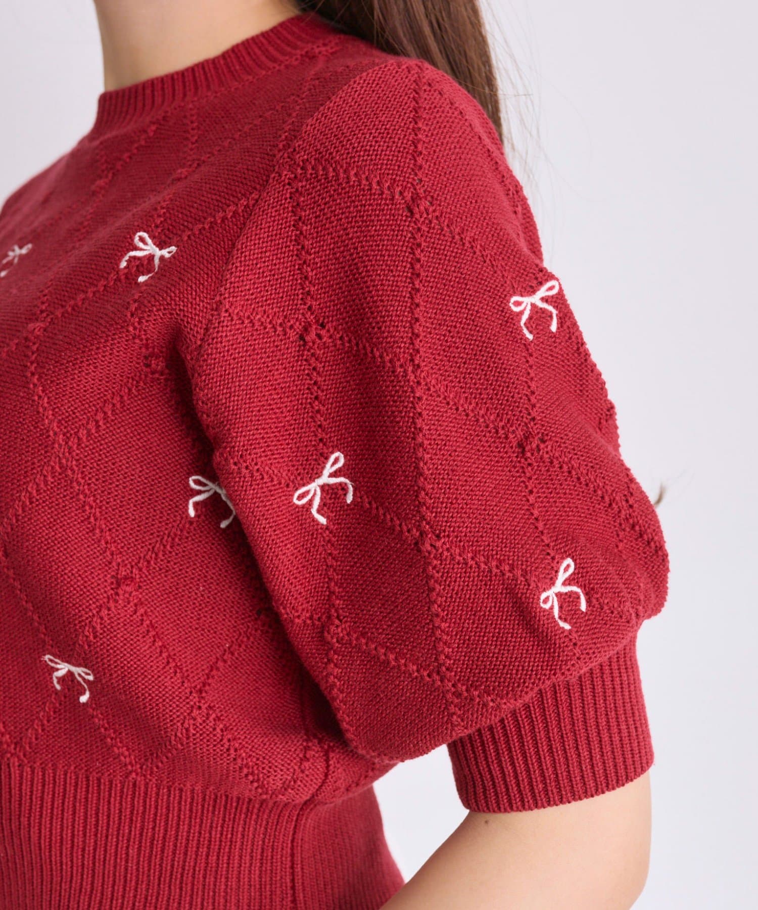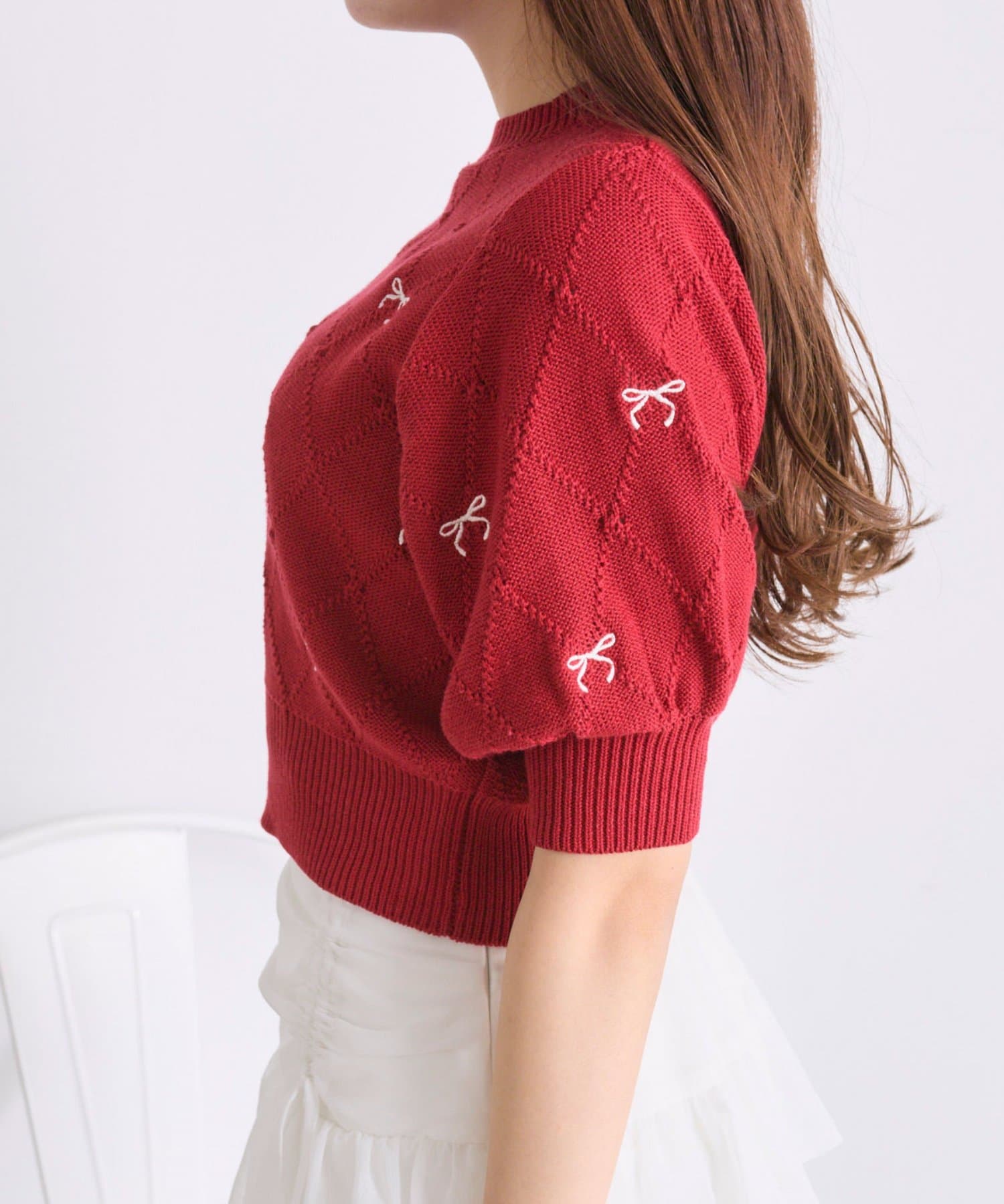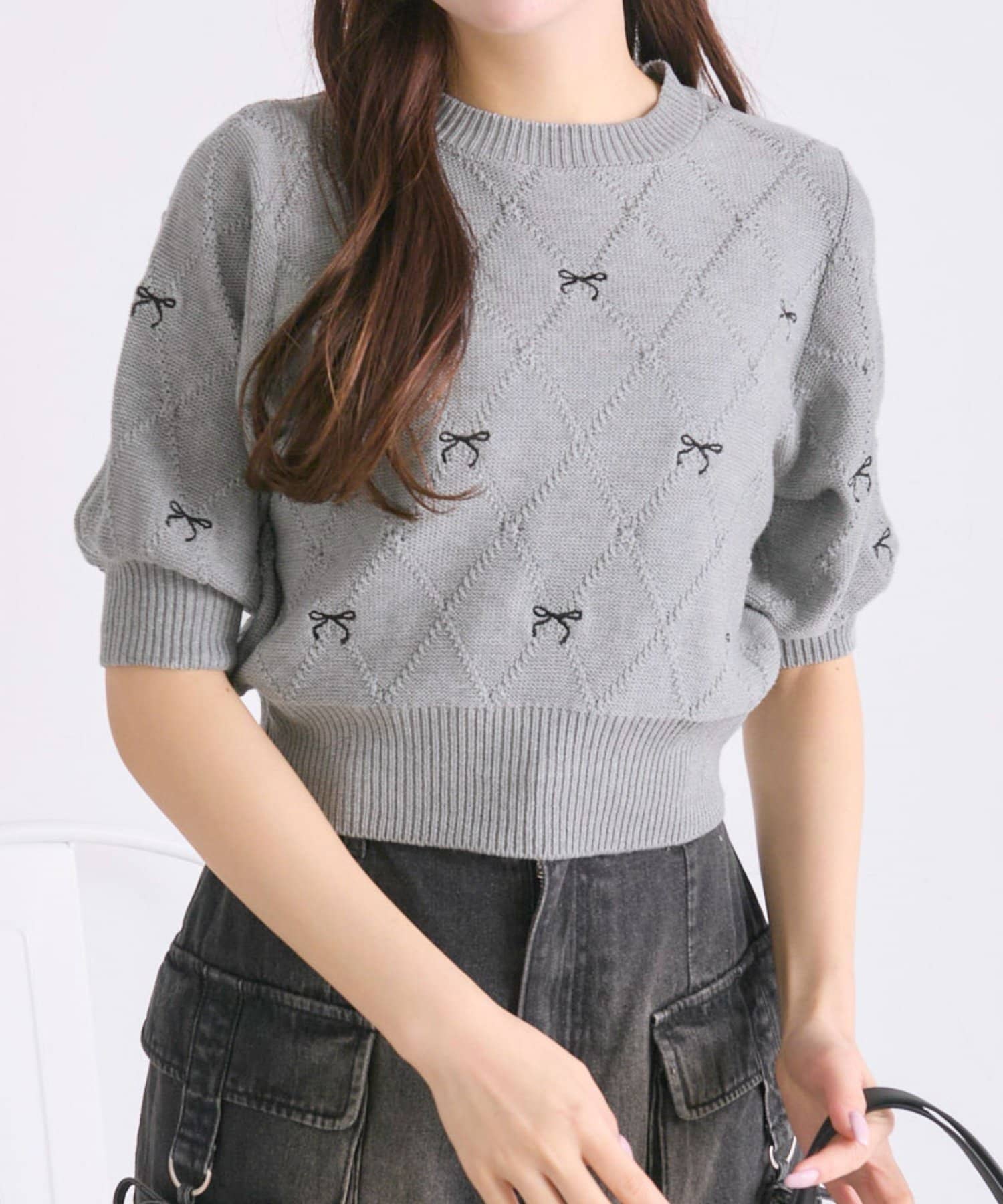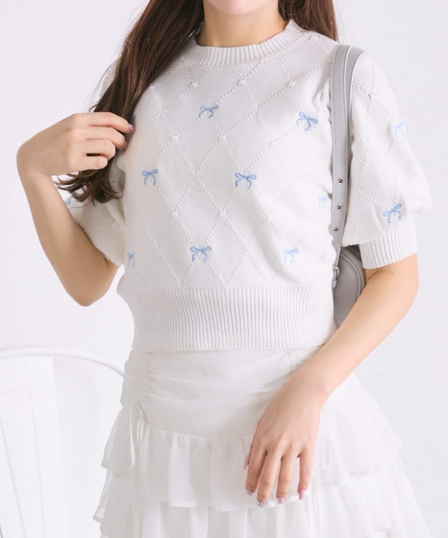 ・リボン刺繍がフェミニンで大人可愛いニット。