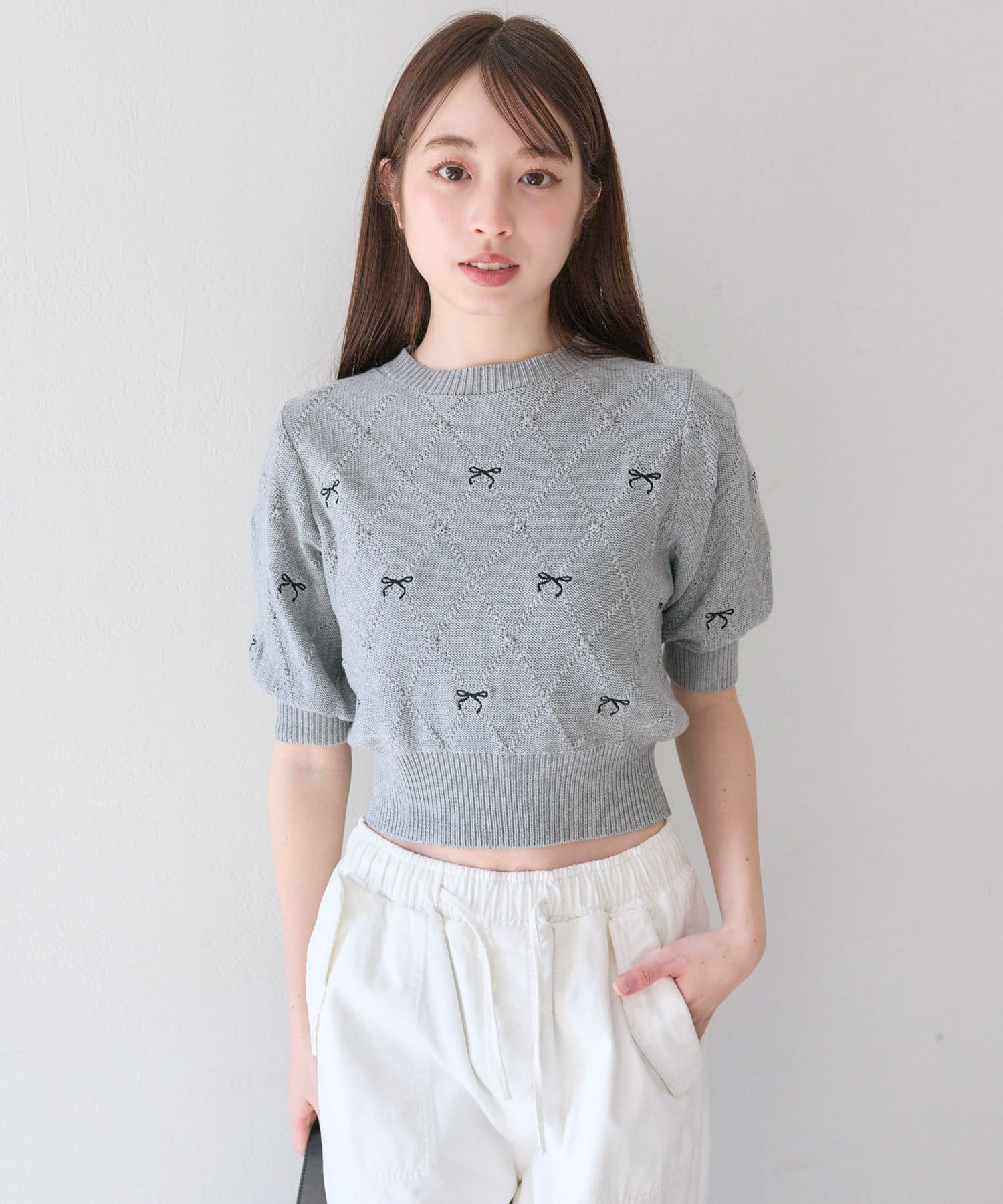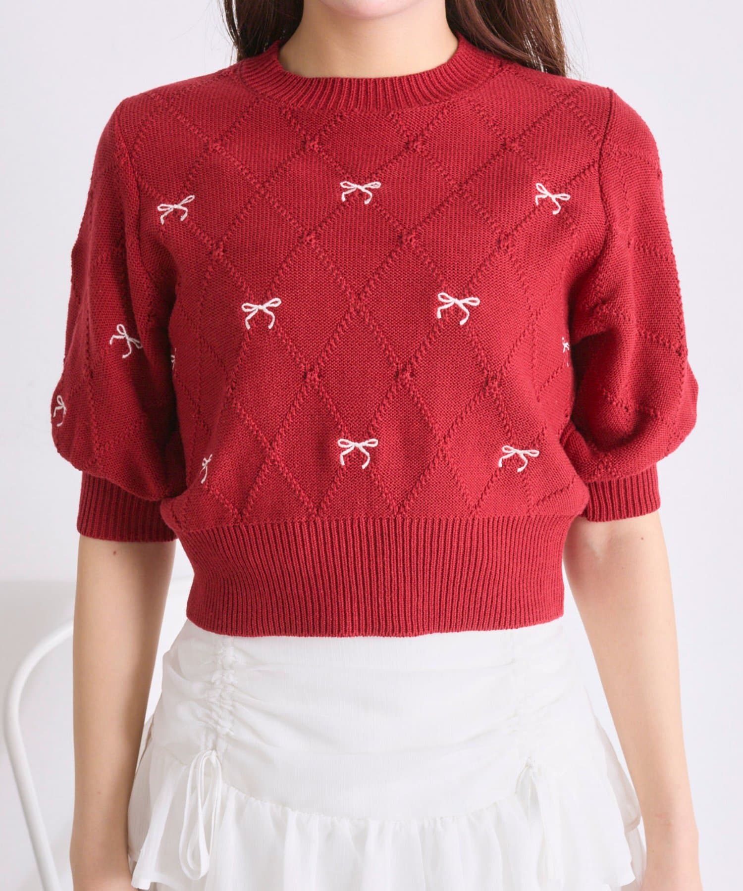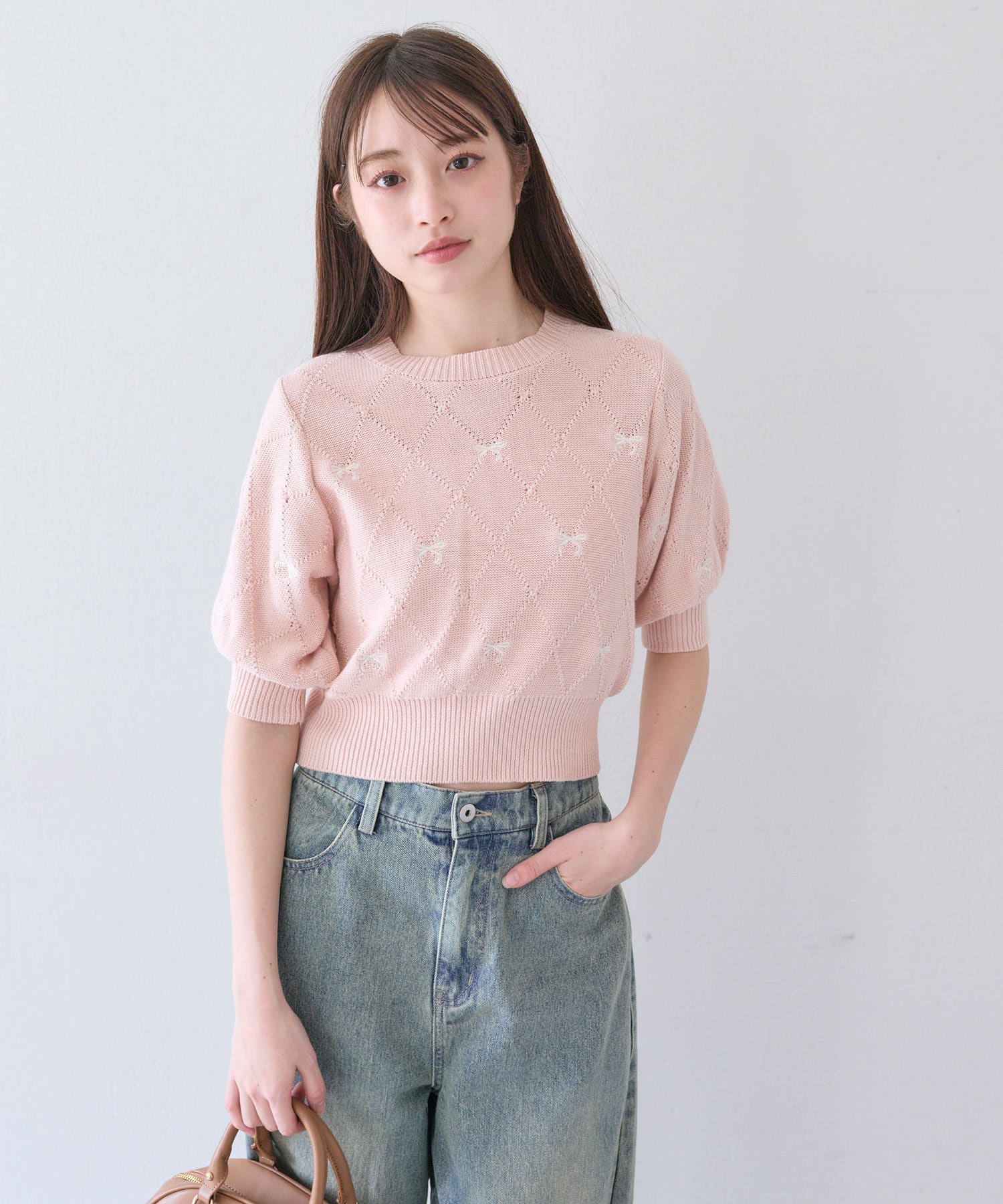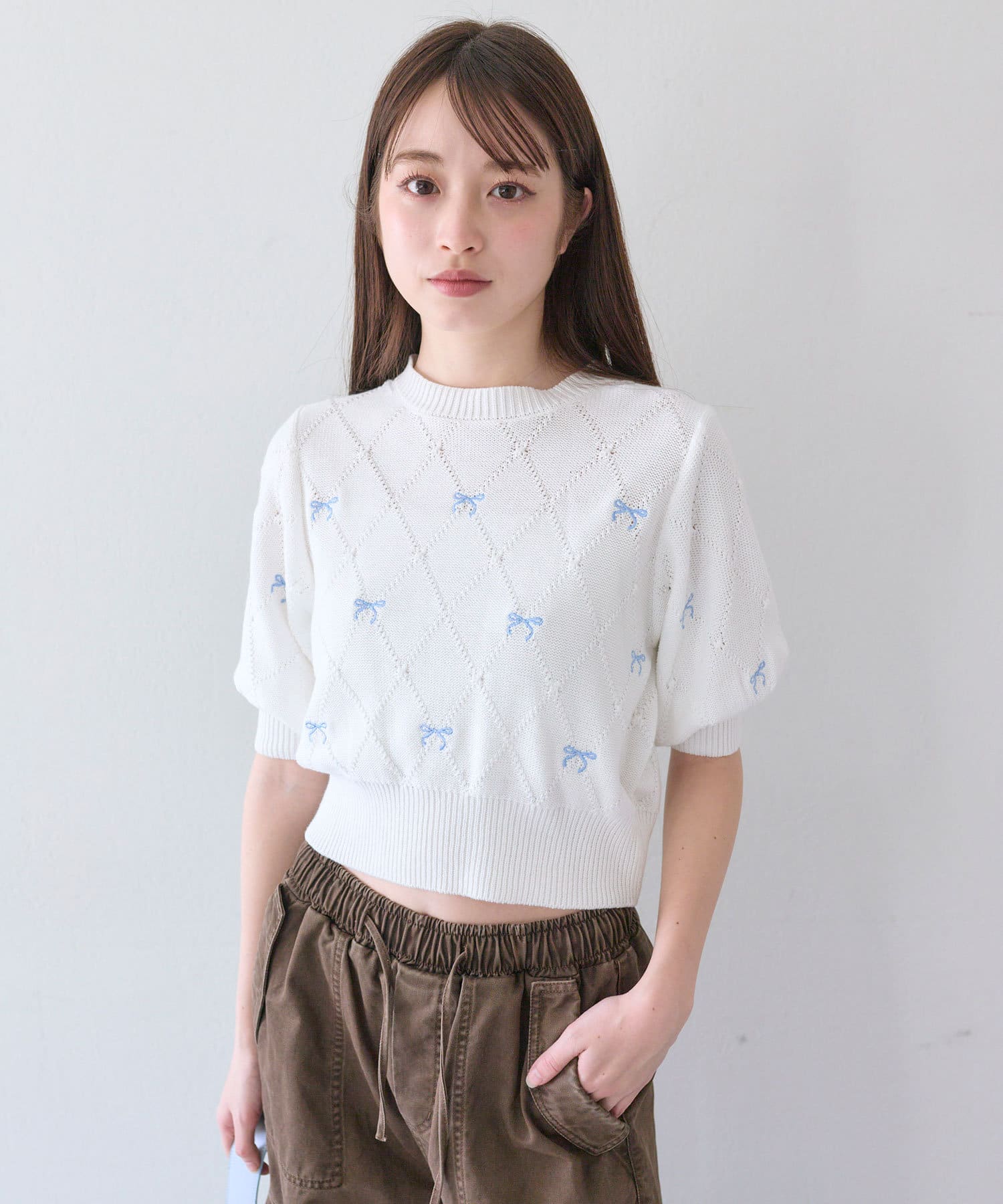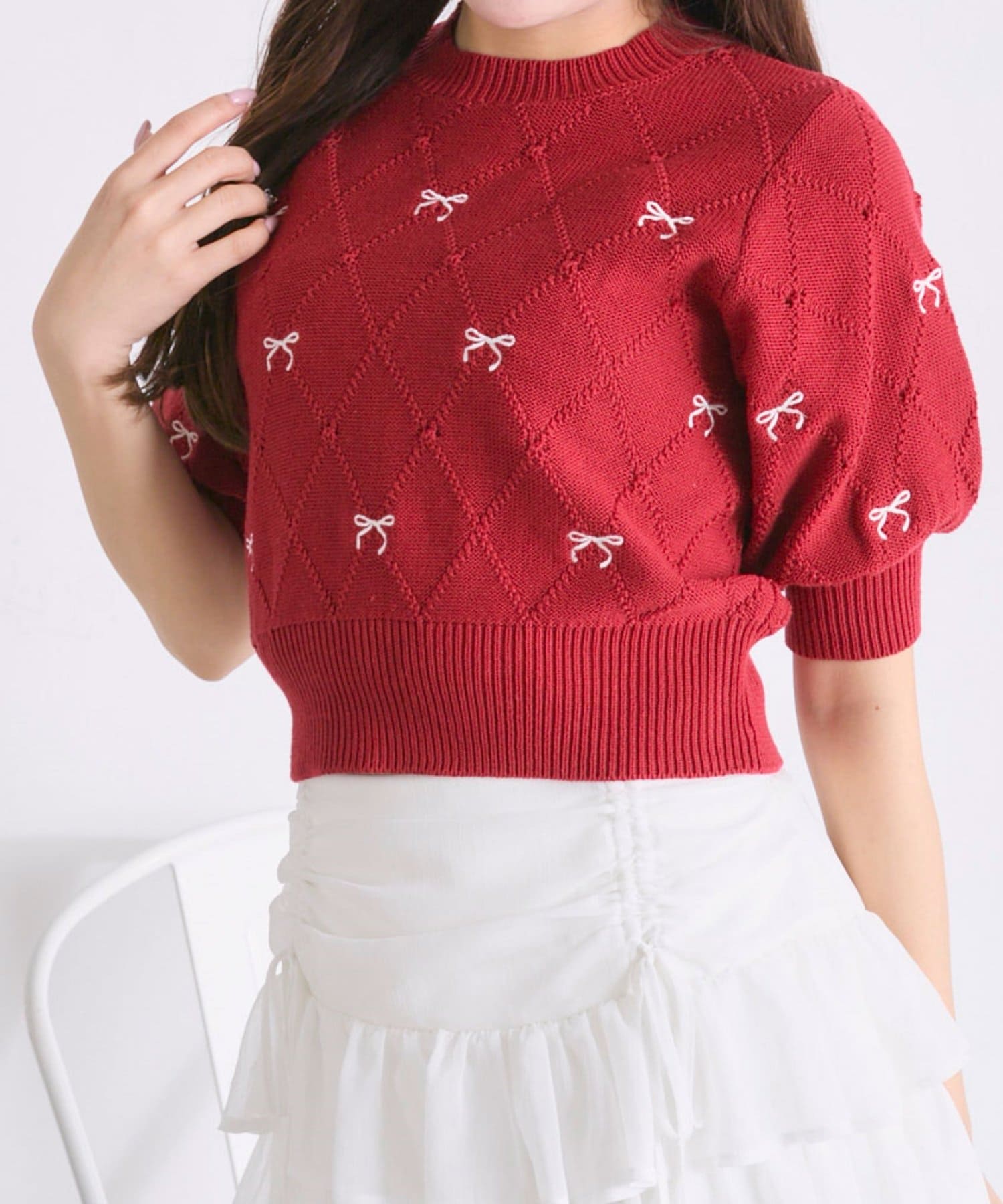・リボン刺繍がフェミニンで大人可愛いニット。