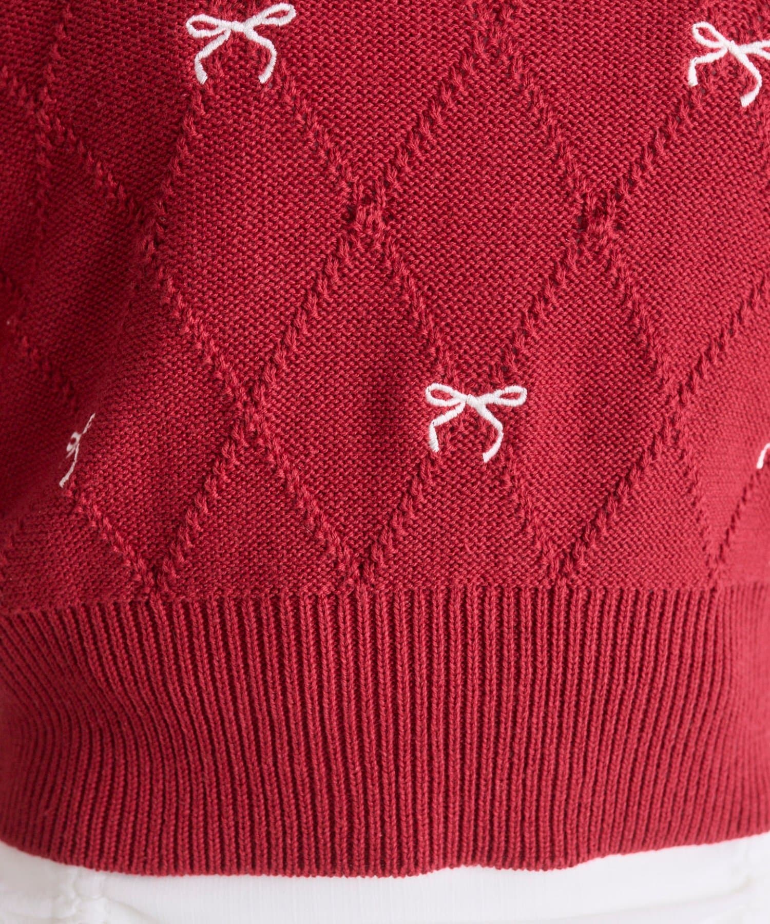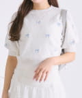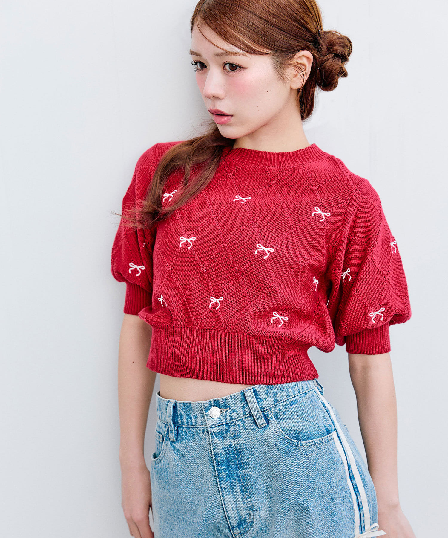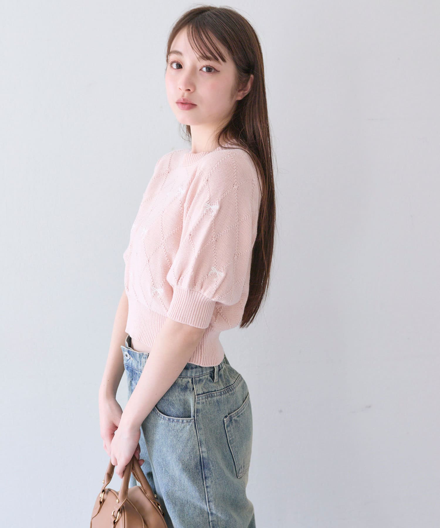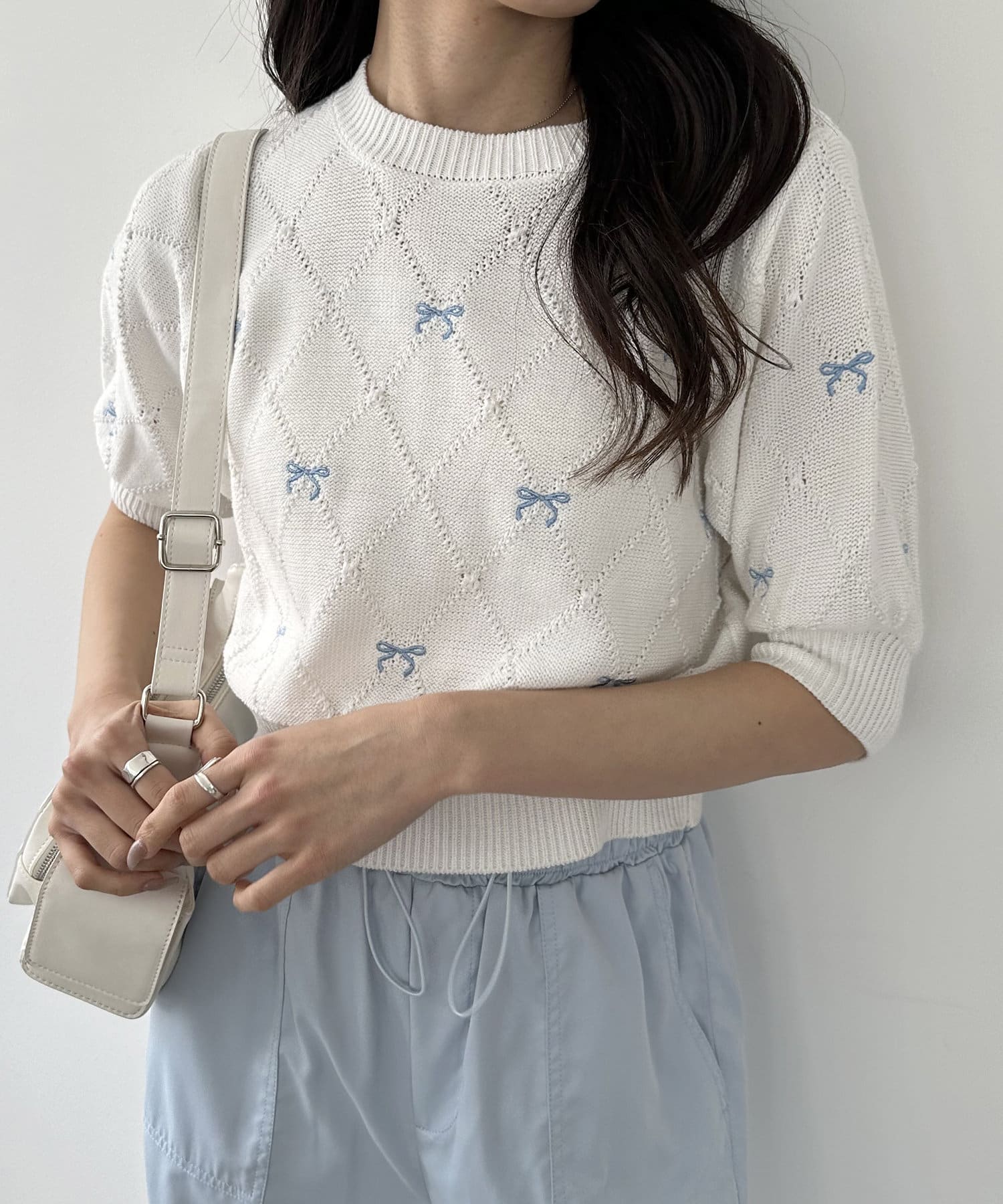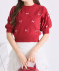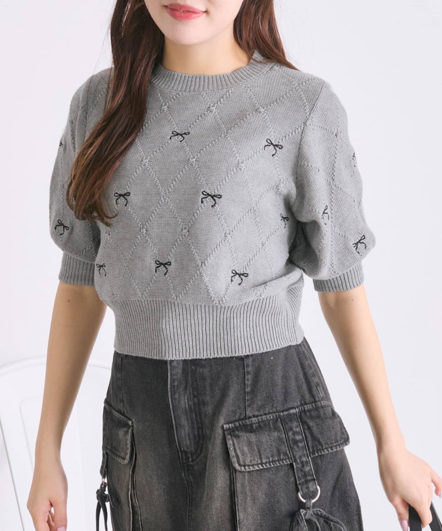 ・リボン刺繍がフェミニンで大人可愛いニット。