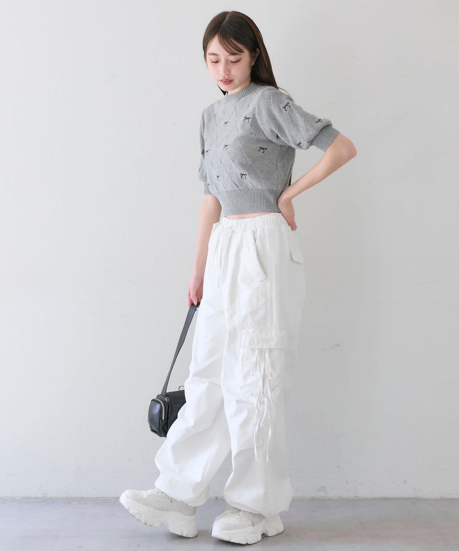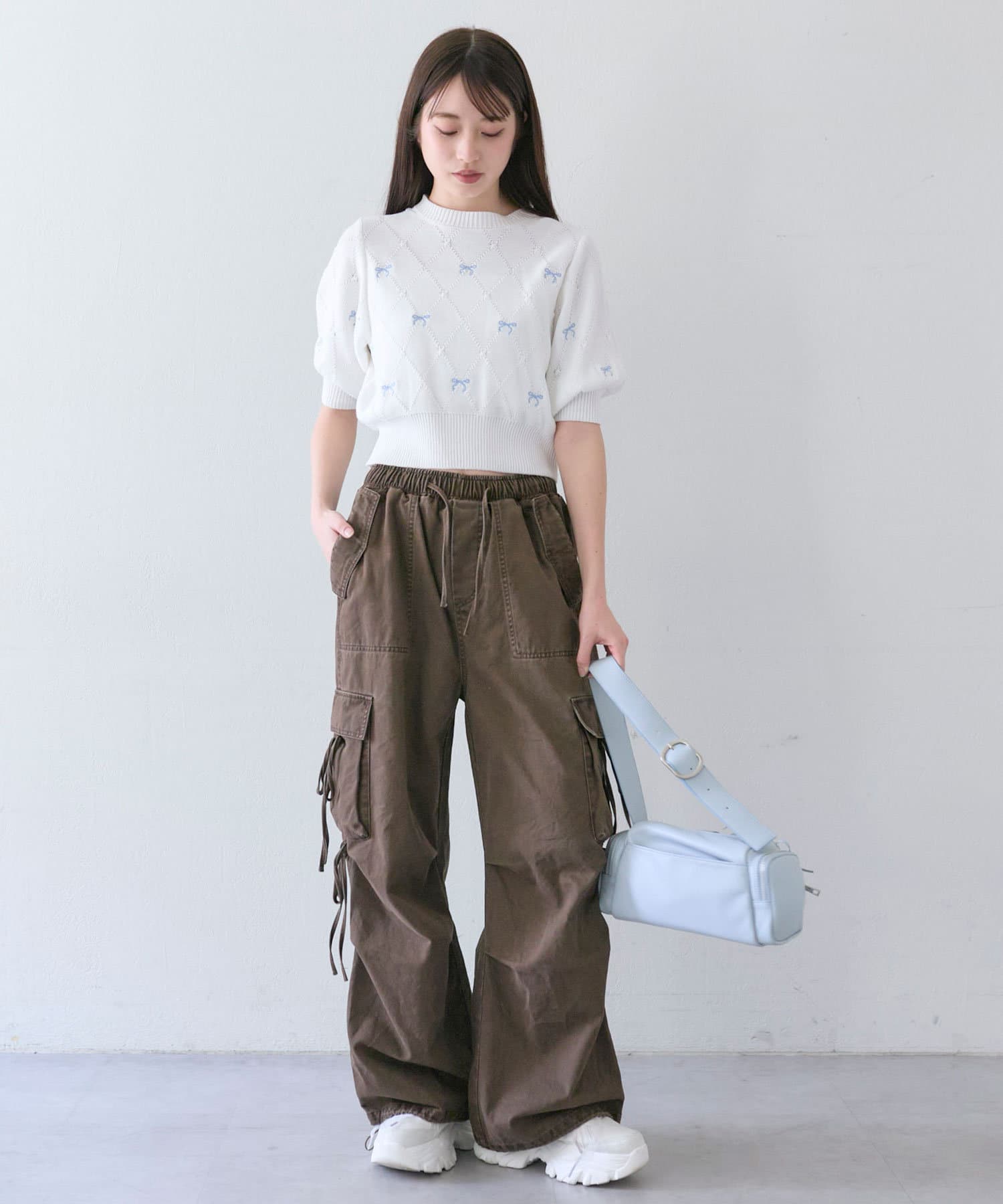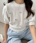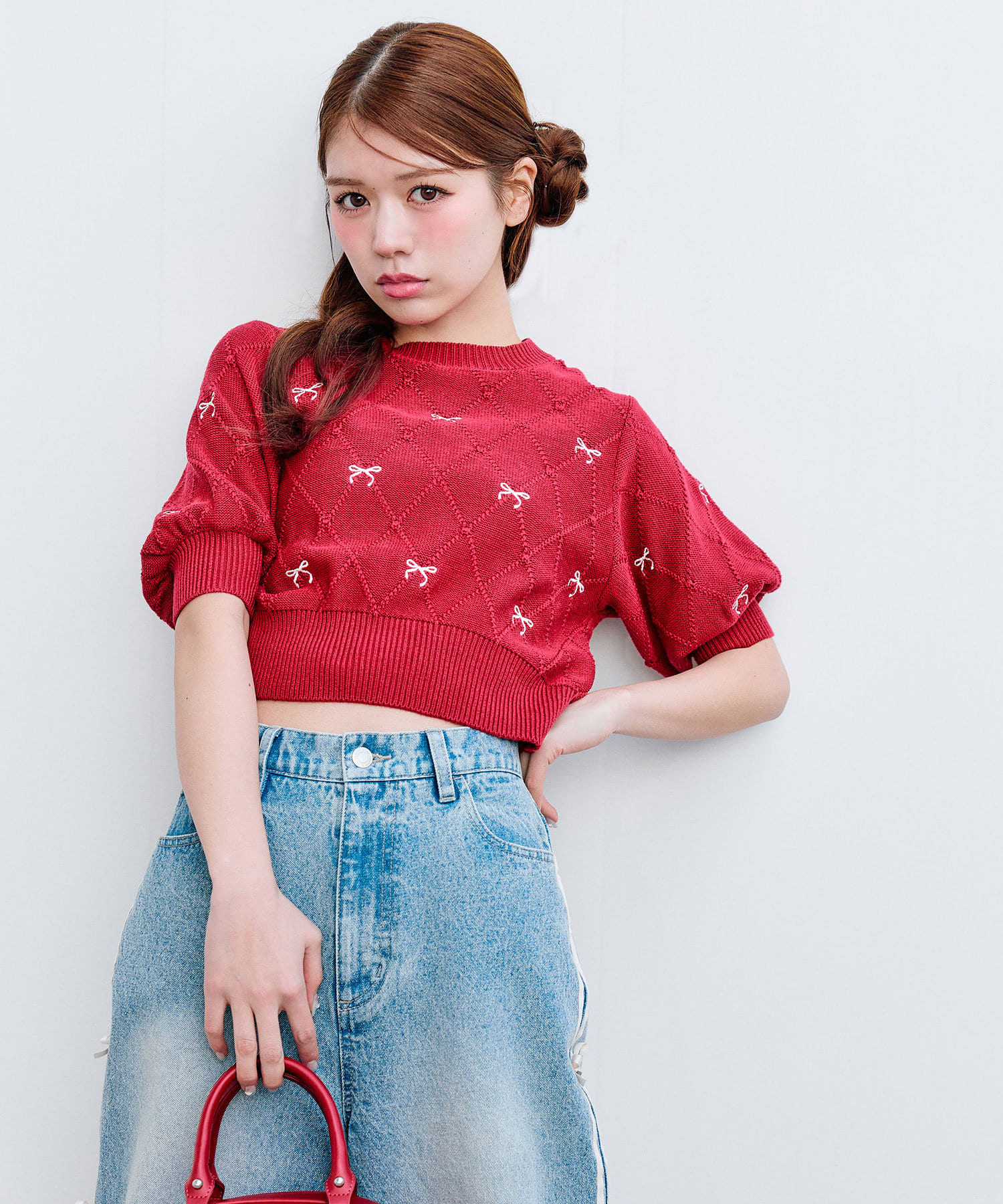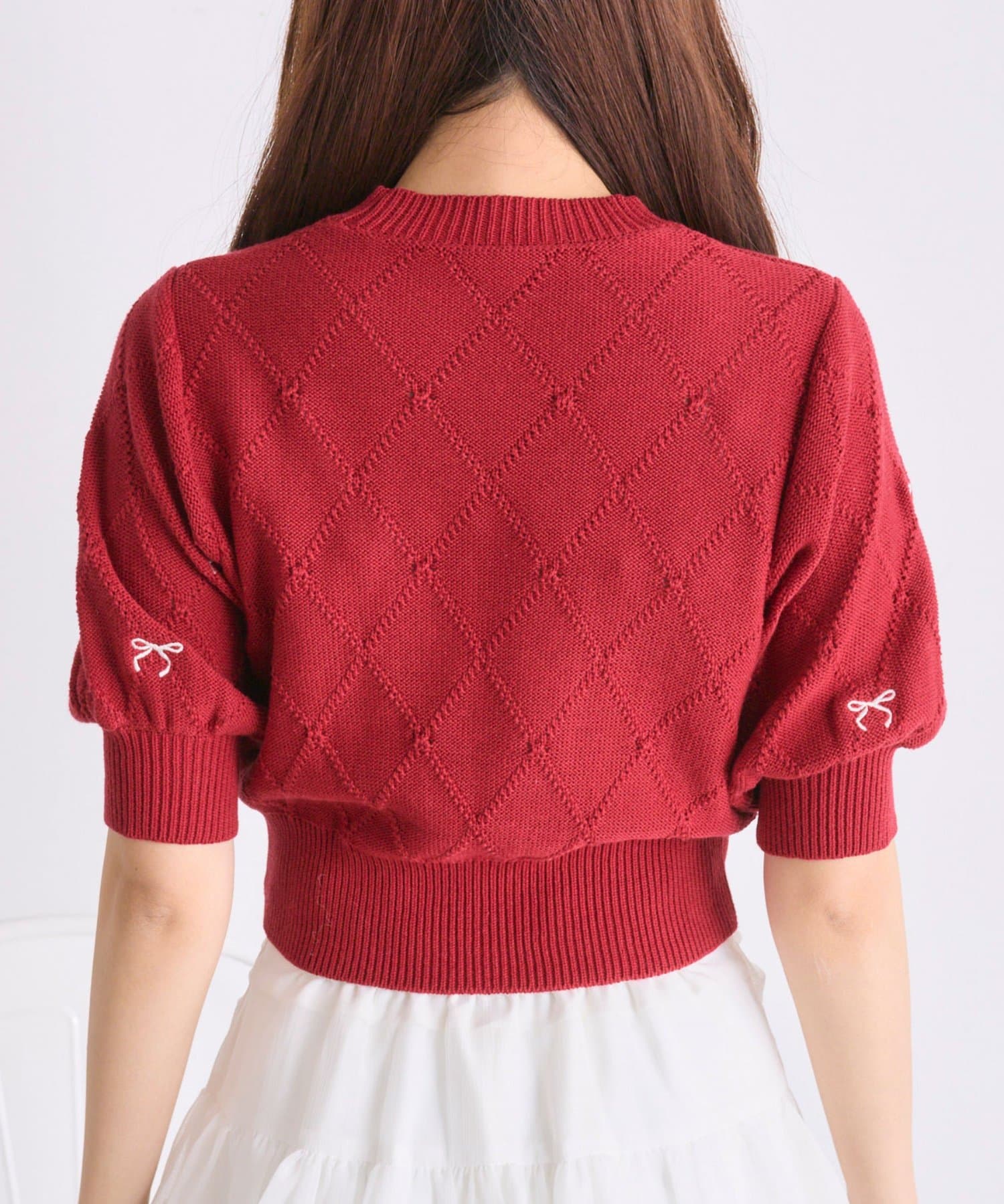 ・リボン刺繍がフェミニンで大人可愛いニット。