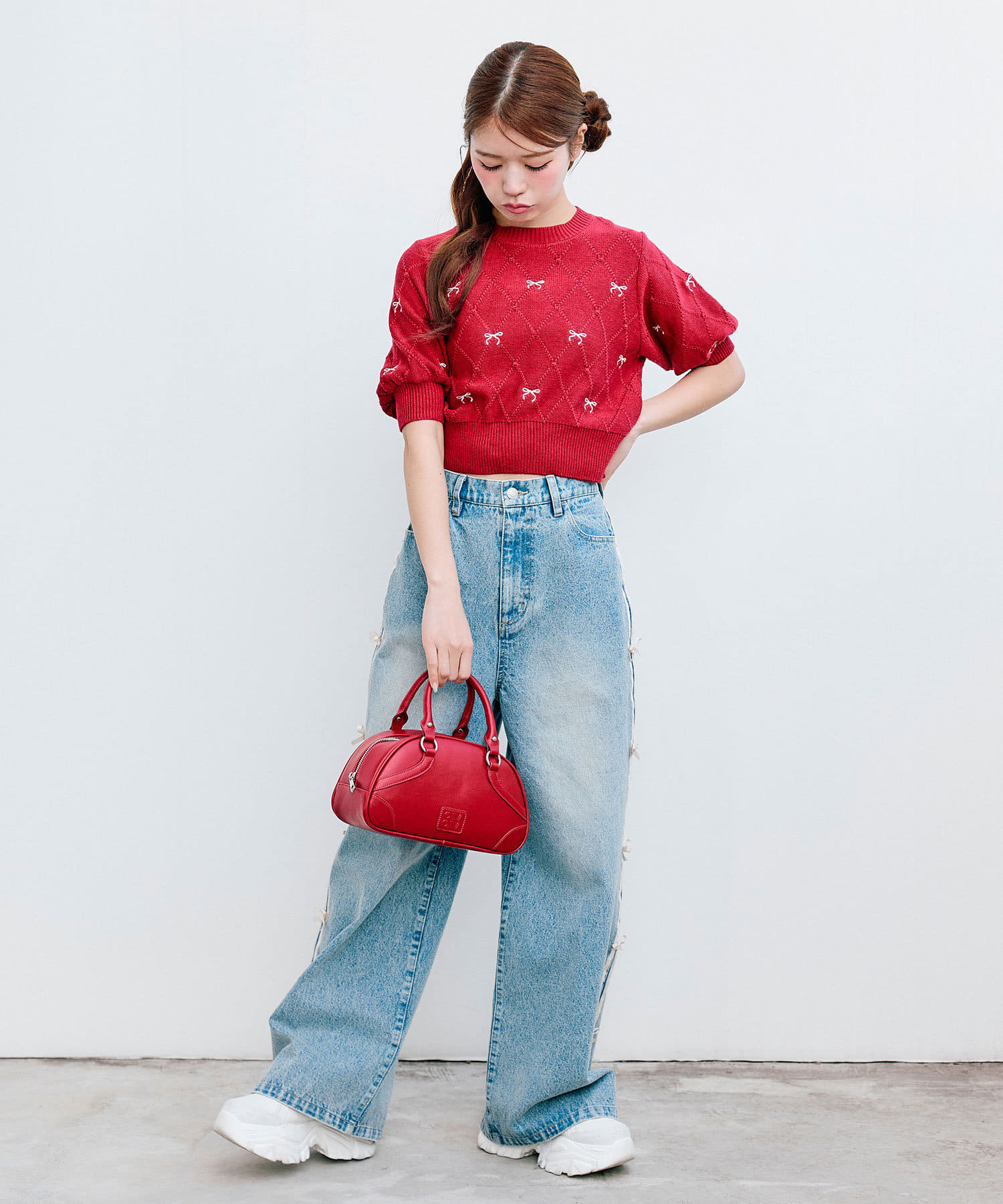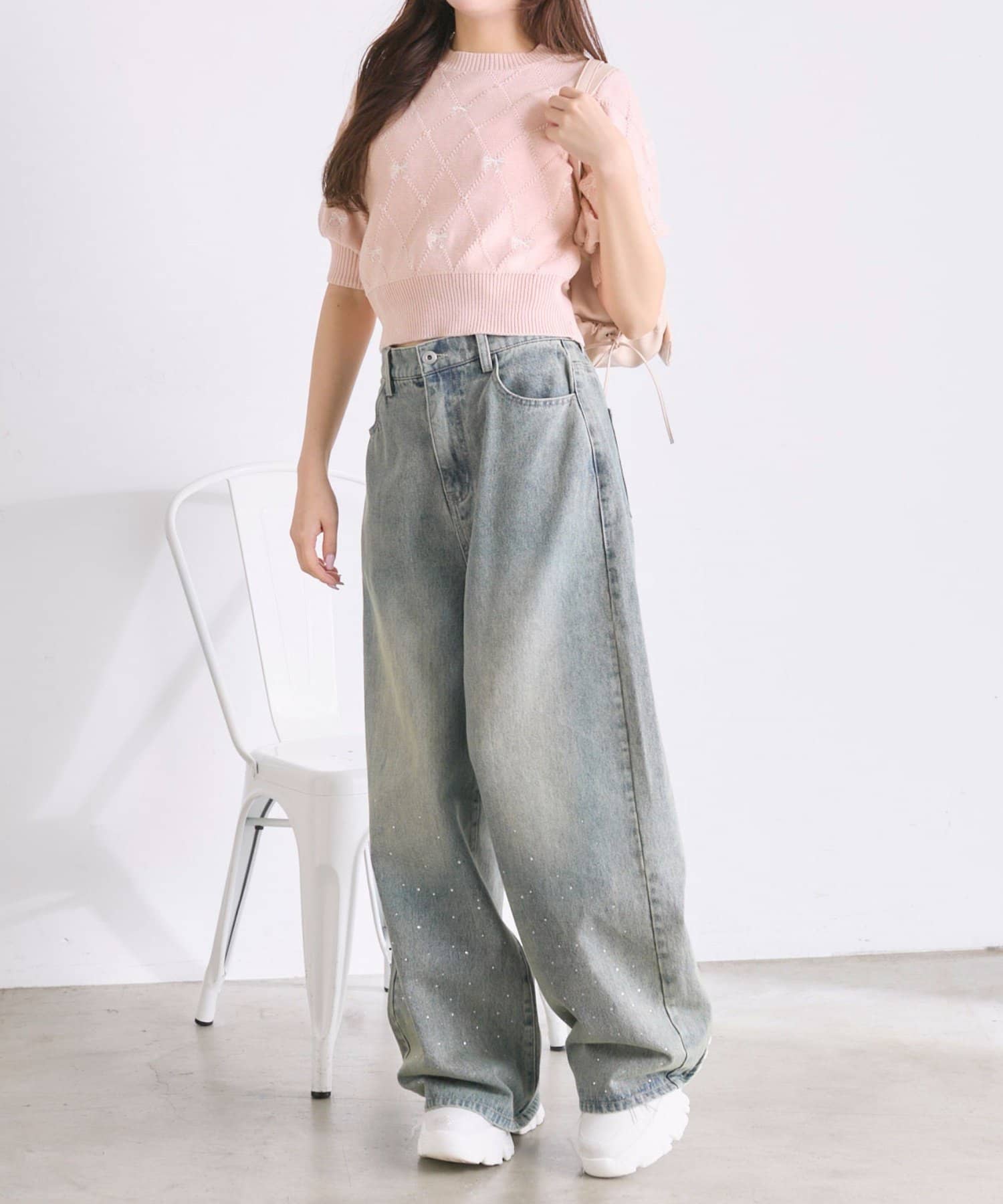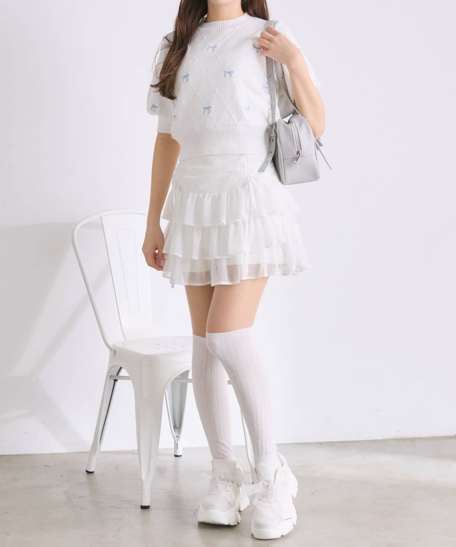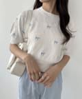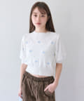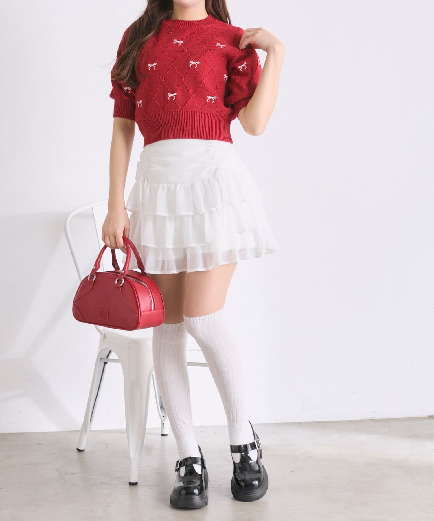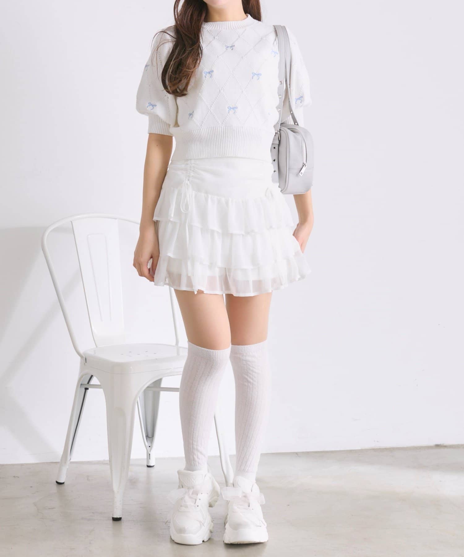 ・リボン刺繍がフェミニンで大人可愛いニット。