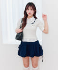 ・プリーツスカートと合わせてプレッピーコーデがおすすめ。