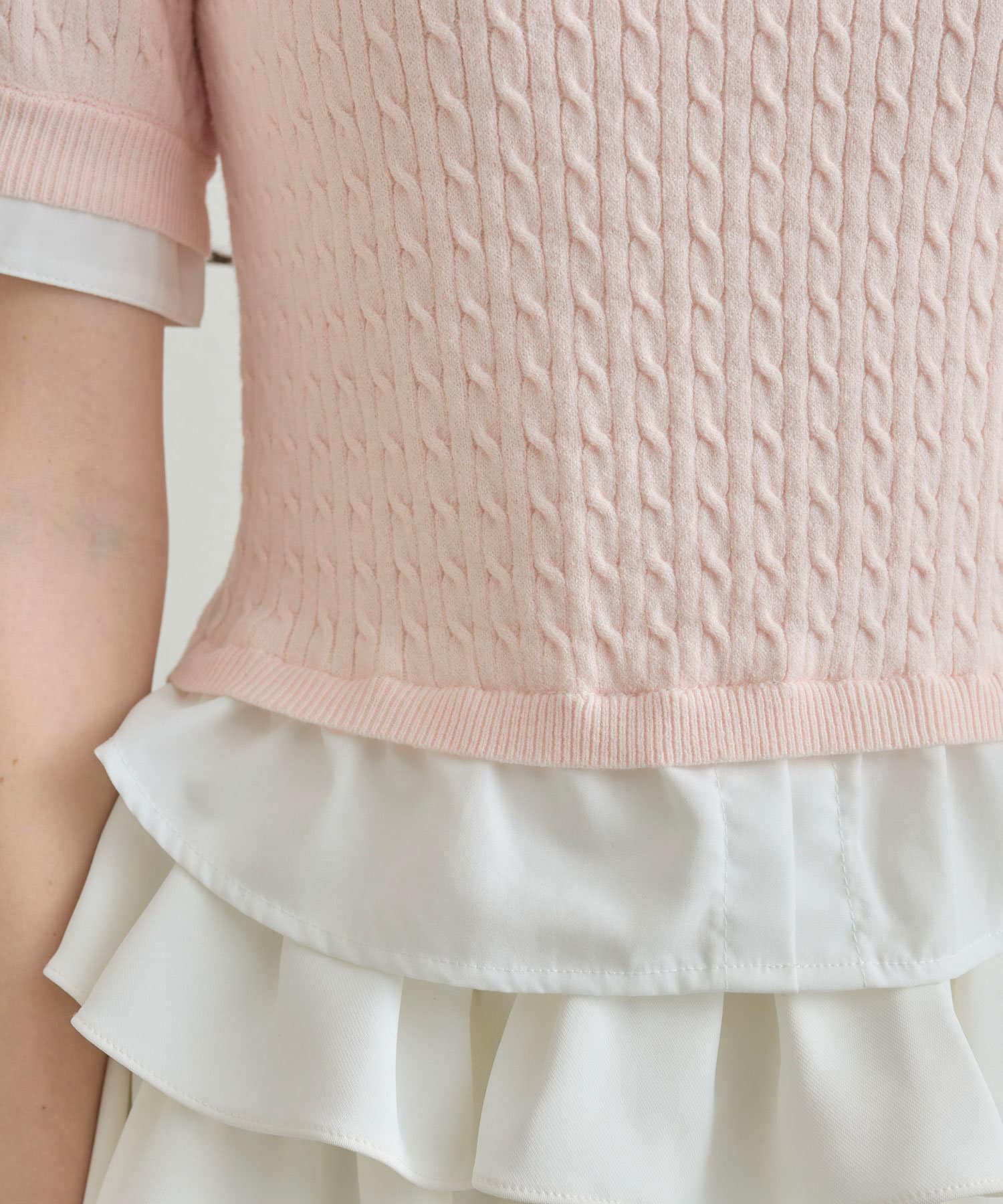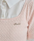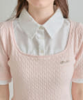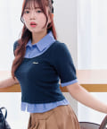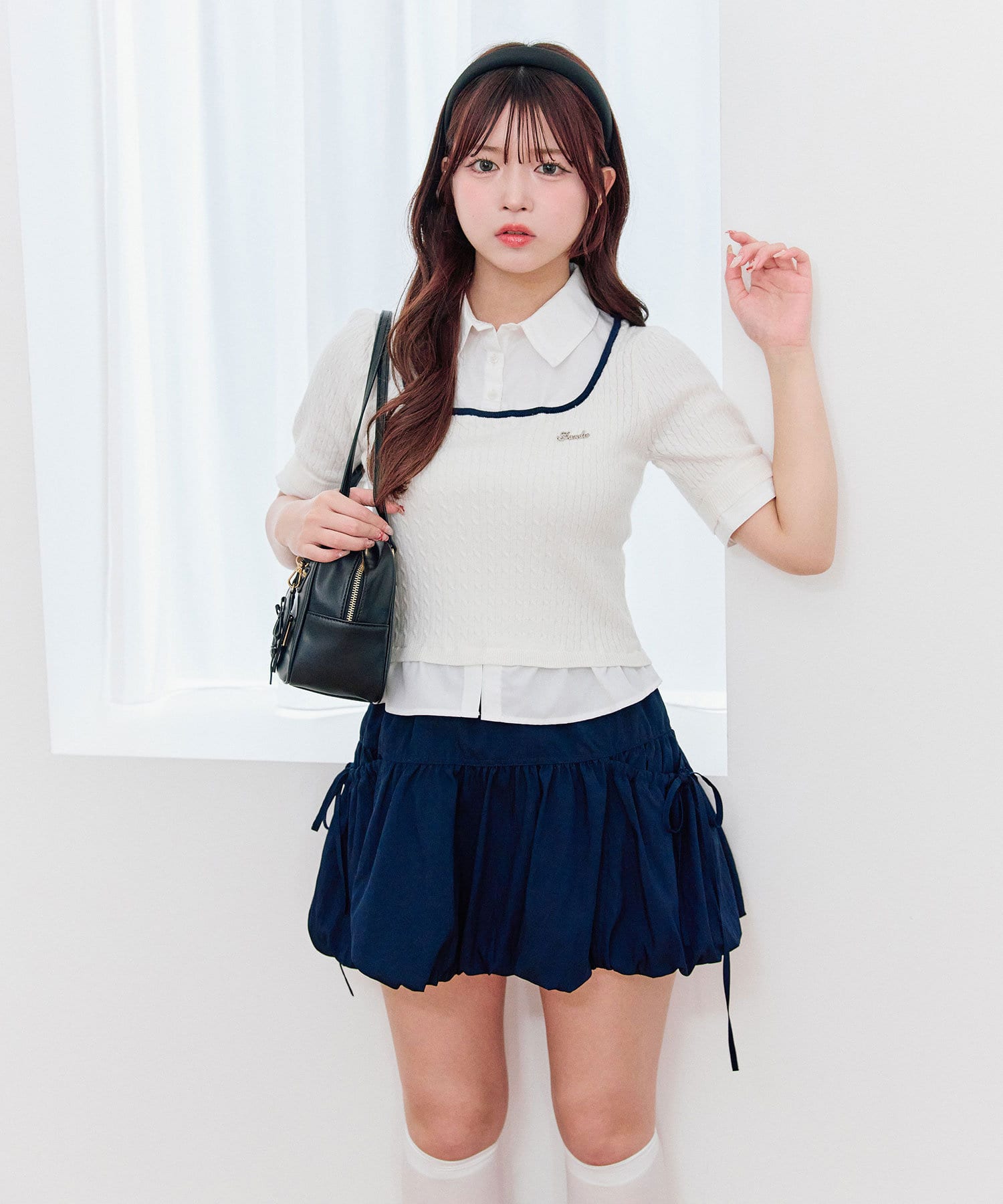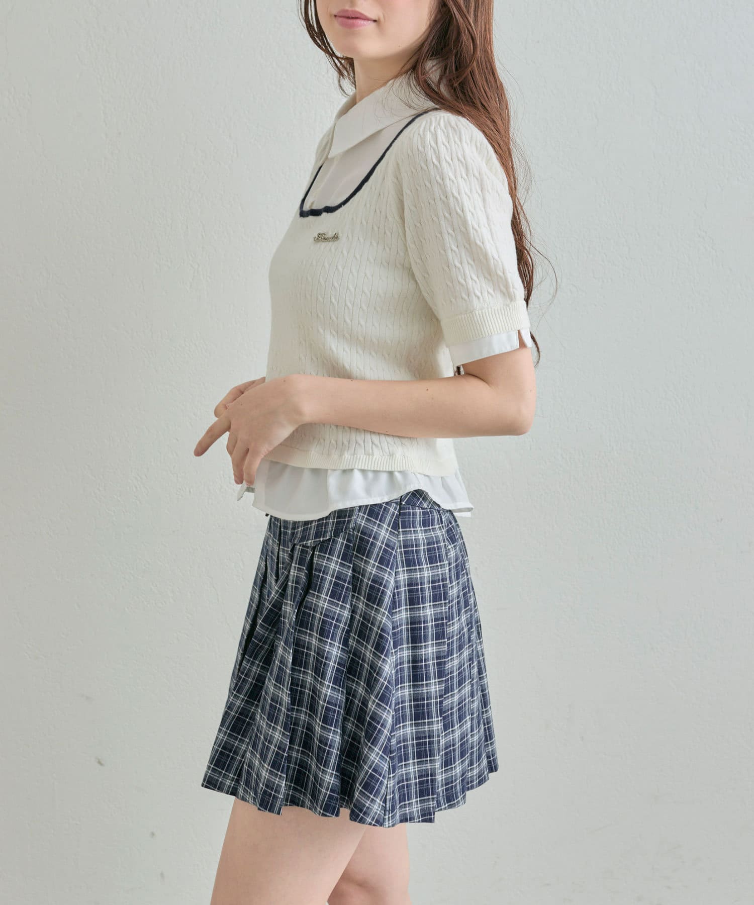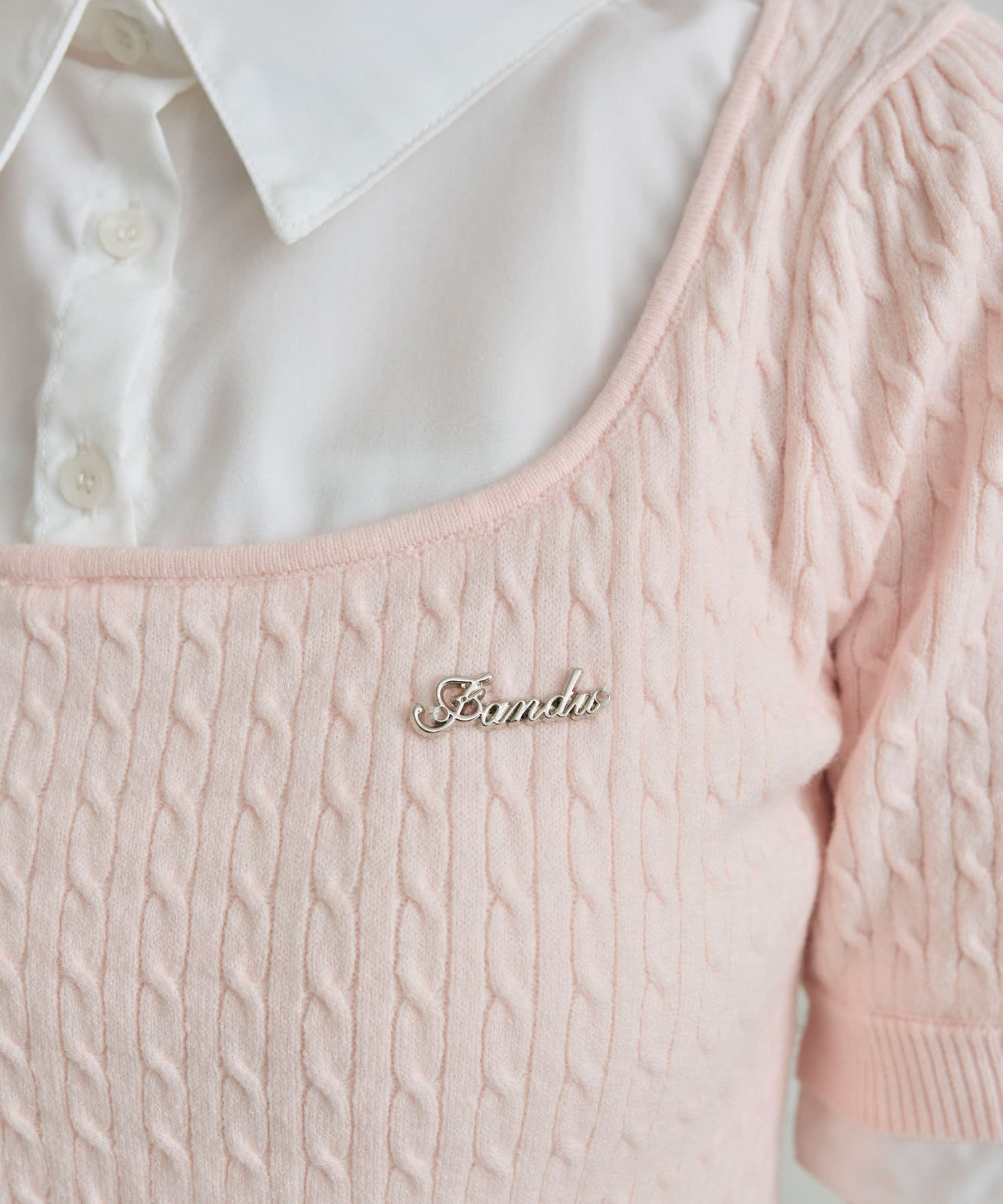 ・シャツとニットのレイヤードデザインで、1枚着るだけでトレンドコーデに仕上がります。